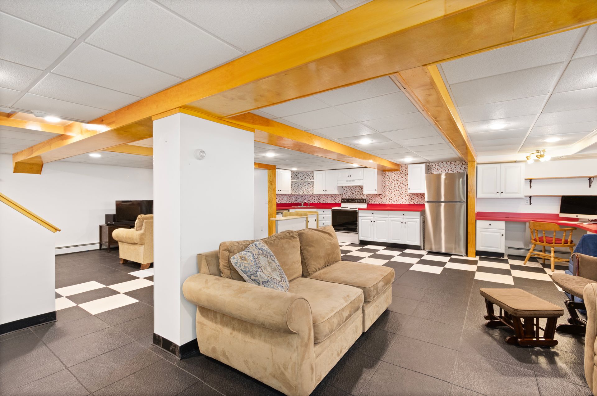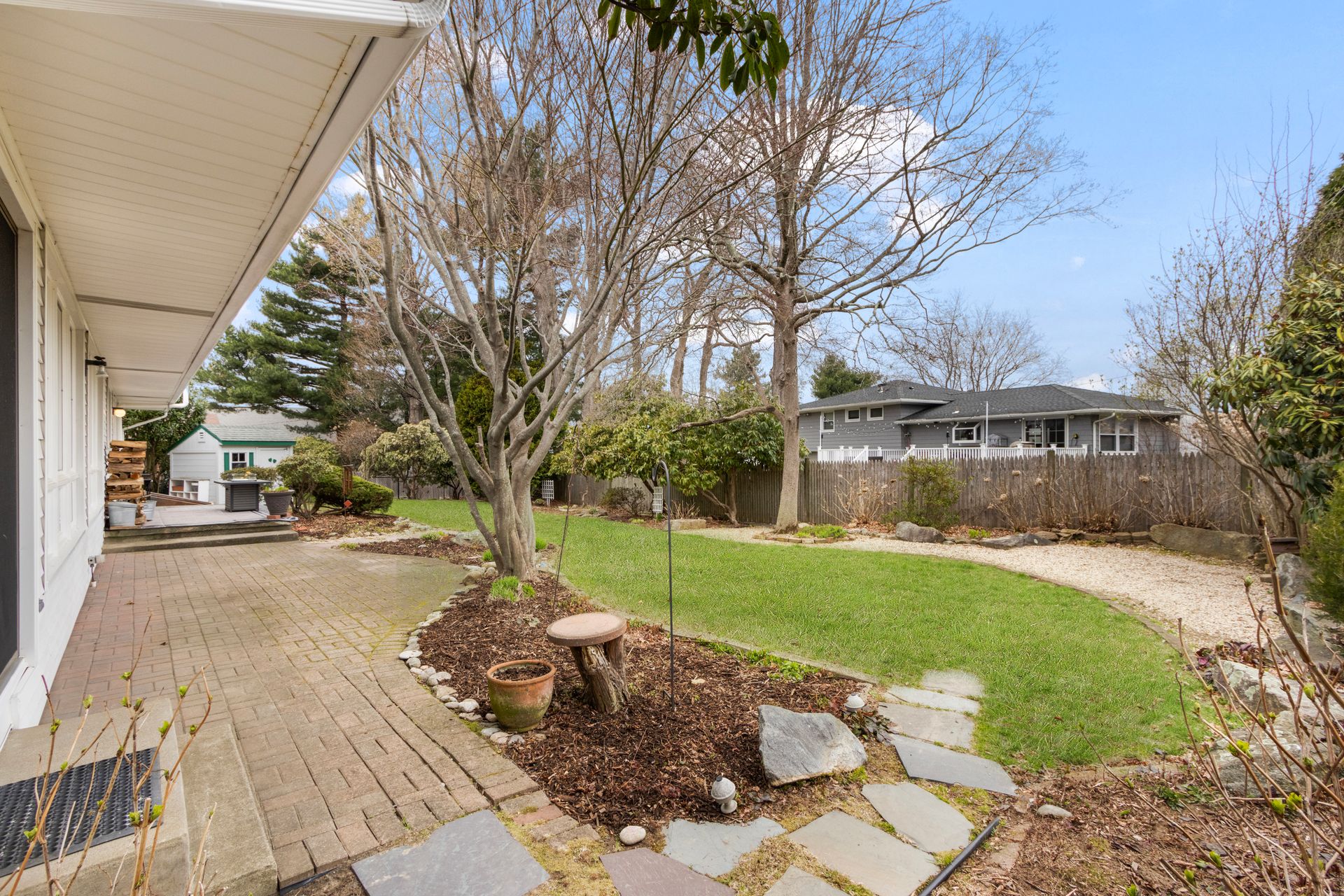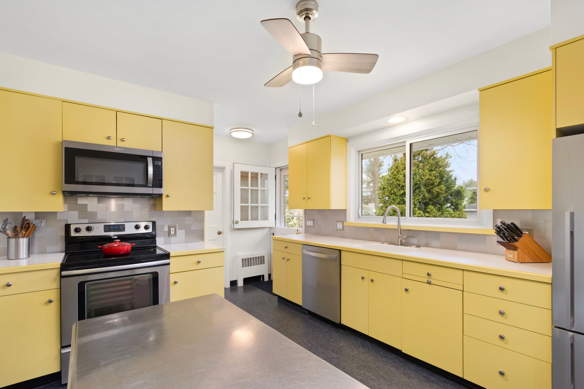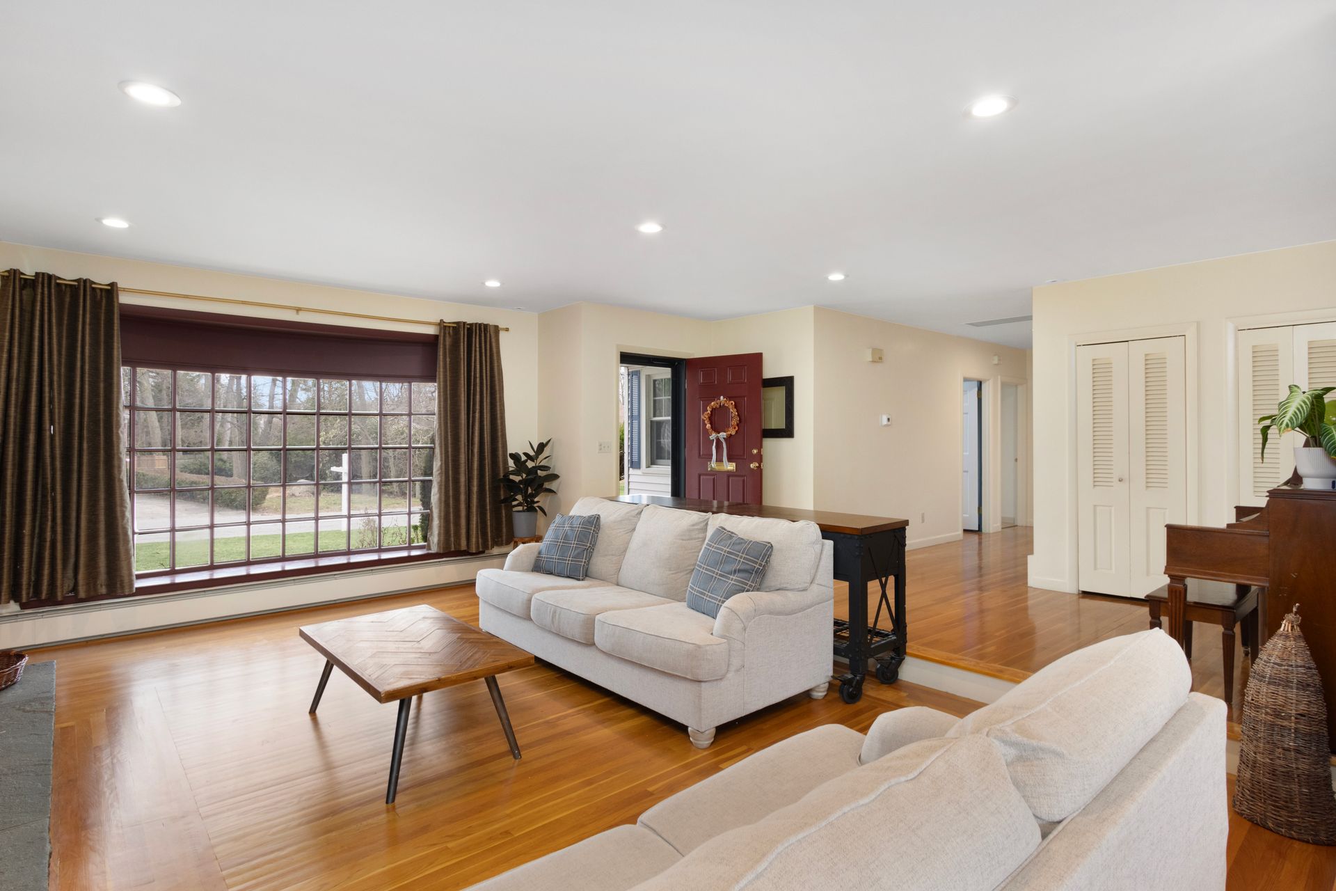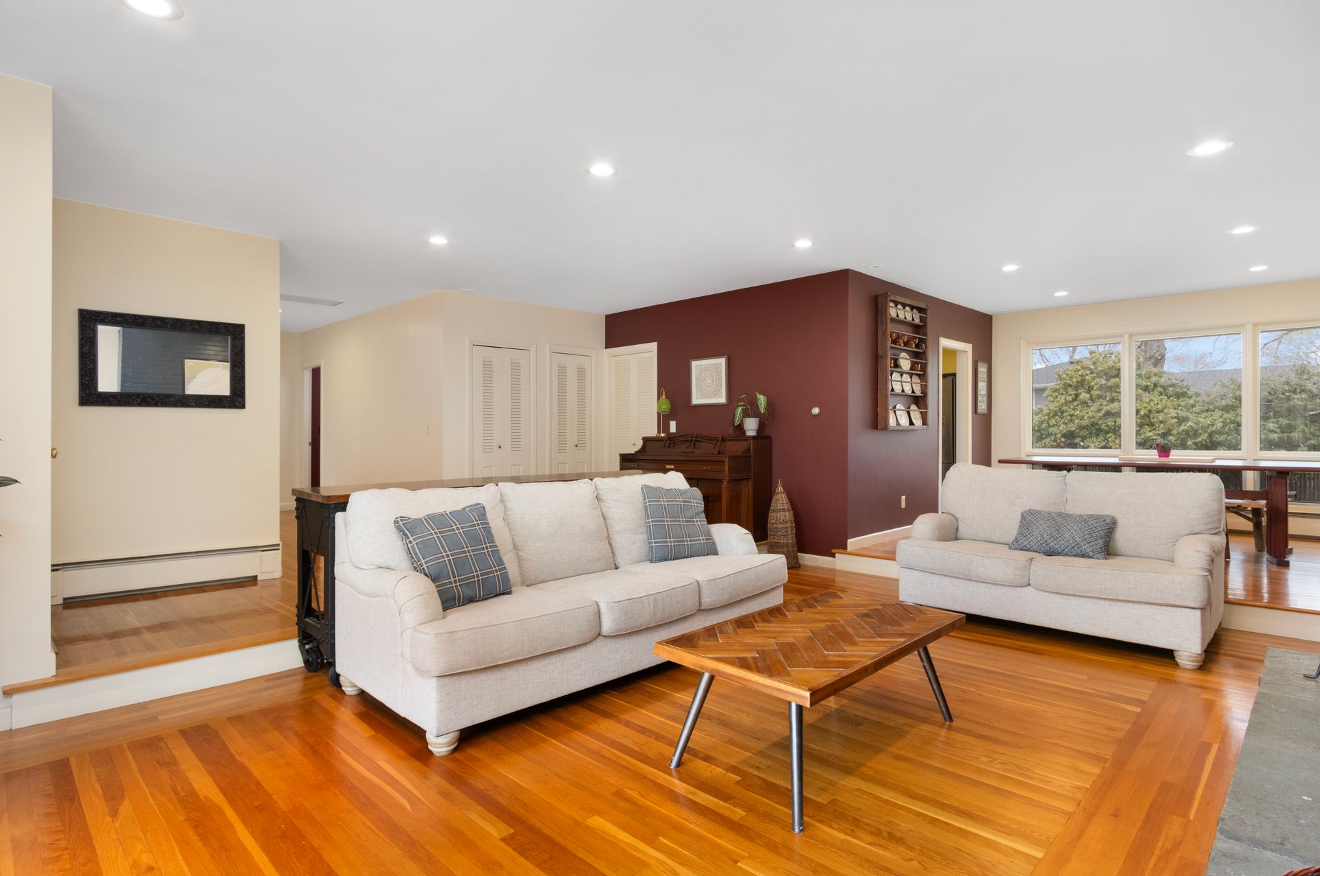 Experience true one-level living, complemented by a fully finished lower level ready to adapt to your needs. Natural light pours into the sunken living room, where a wood-burning fireplace anchors the space and invites you to settle in. The retro-style kitchen flows seamlessly into the dining area and den, creating a layout that works just as well for everyday living as it does for entertaining. The primary bedroom features an ensuite bath with a large soaking tub and separate shower, while two additional full bathrooms offer flexibility for family or guests. The finished lower level expands your living options with a second kitchen, built-in office, and ample storage, ideal for guests, working from home, or finally claiming a dedicated space for your hobbies. Outside, a paved driveway and walkway lead to a thoughtfully landscaped yard with mature plantings, perennials, underground sprinklers, and a storage shed. Additional highlights include central A/C, main-level laundry, and oil heat with gas available on the street for future conversion. Inquire for details on a potential assumable loan opportunity. A rare opportunity in sought-after Dean Estates, don’t miss it!