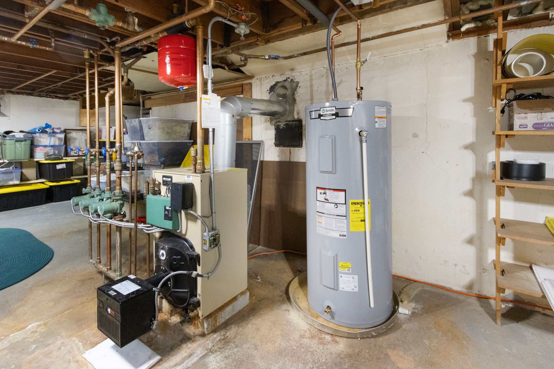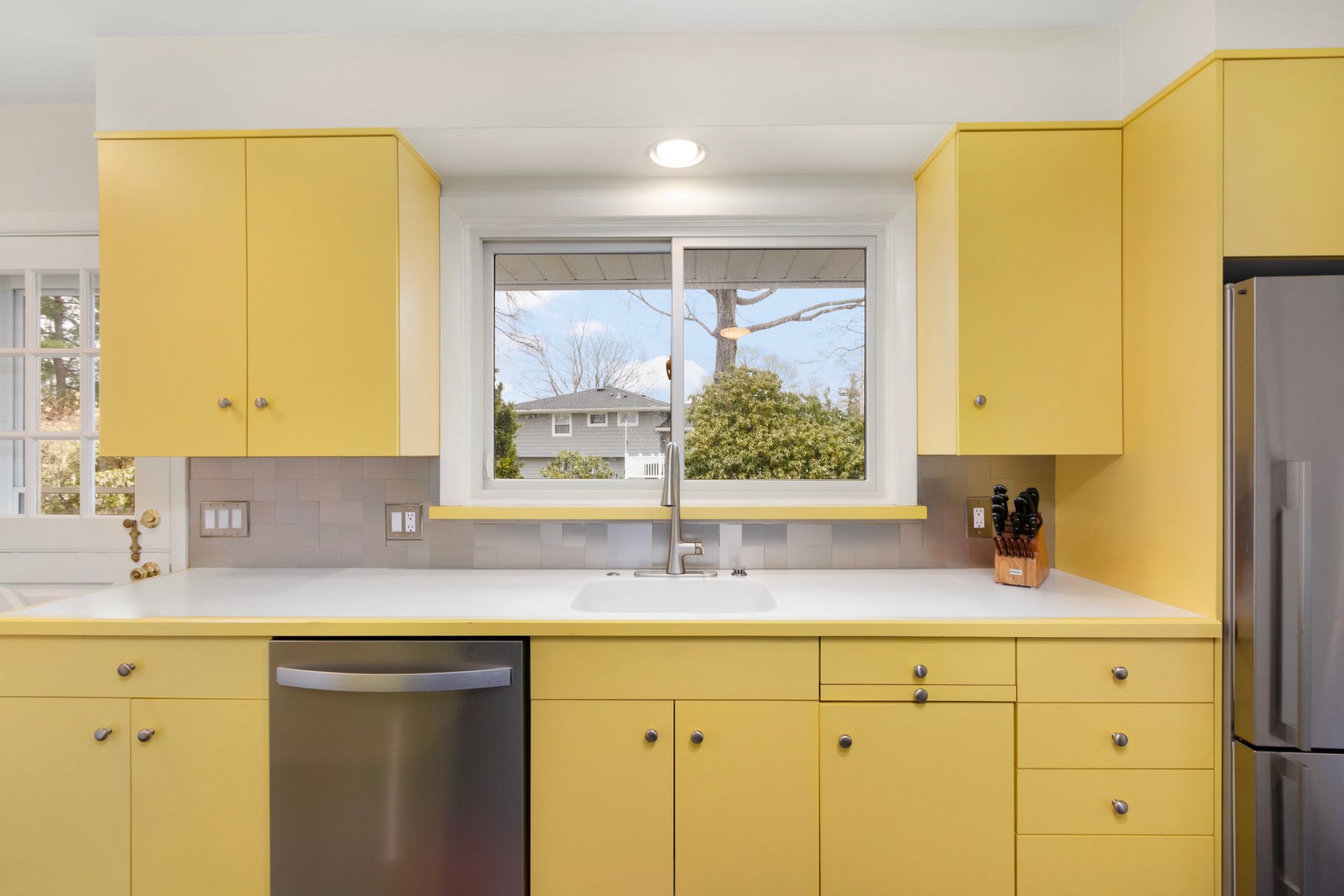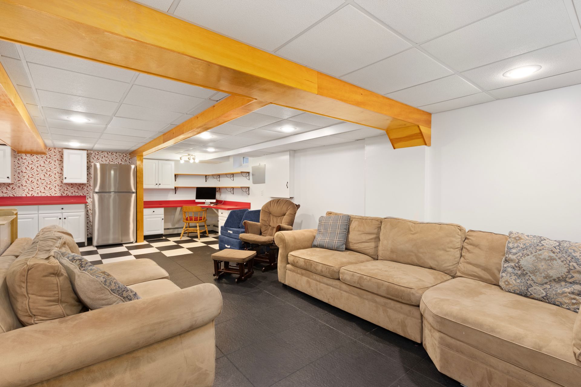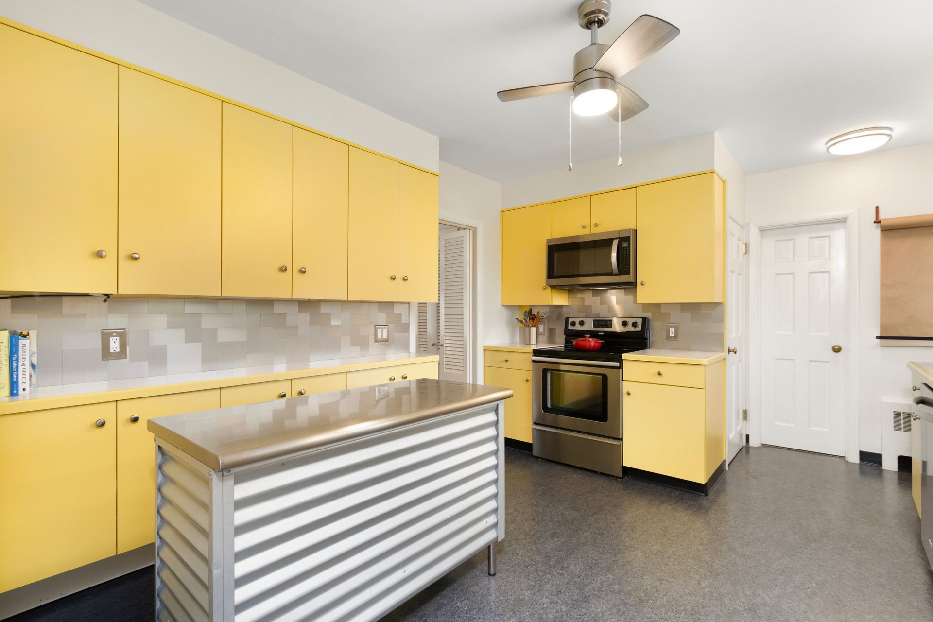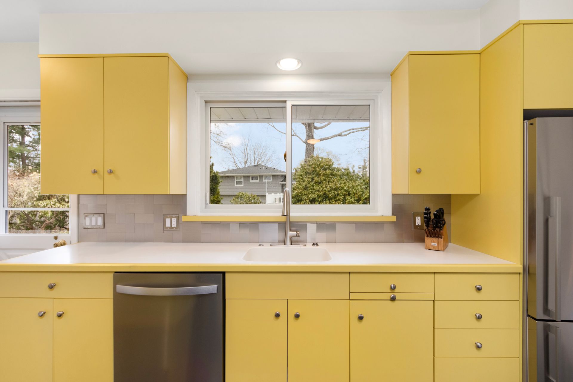 Experience true one-level living, complemented by a fully finished lower level ready to adapt to your needs. Natural light pours into the sunken living room, where a wood-burning fireplace anchors the space and invites you to settle in. The retro-style kitchen flows seamlessly into the dining area and den, creating a layout that works just as well for everyday living as it does for entertaining. The primary bedroom features an ensuite bath with a large soaking tub and separate shower, while two additional full bathrooms offer flexibility for family or guests. The finished lower level expands your living options with a second kitchen, built-in office, and ample storage, ideal for guests, working from home, or finally claiming a dedicated space for your hobbies. Outside, a paved driveway and walkway lead to a thoughtfully landscaped yard with mature plantings, perennials, underground sprinklers, and a storage shed. Additional highlights include central A/C, main-level laundry, and oil heat with gas available on the street for future conversion. Inquire for details on a potential assumable loan opportunity. A rare opportunity in sought-after Dean Estates, don’t miss it!