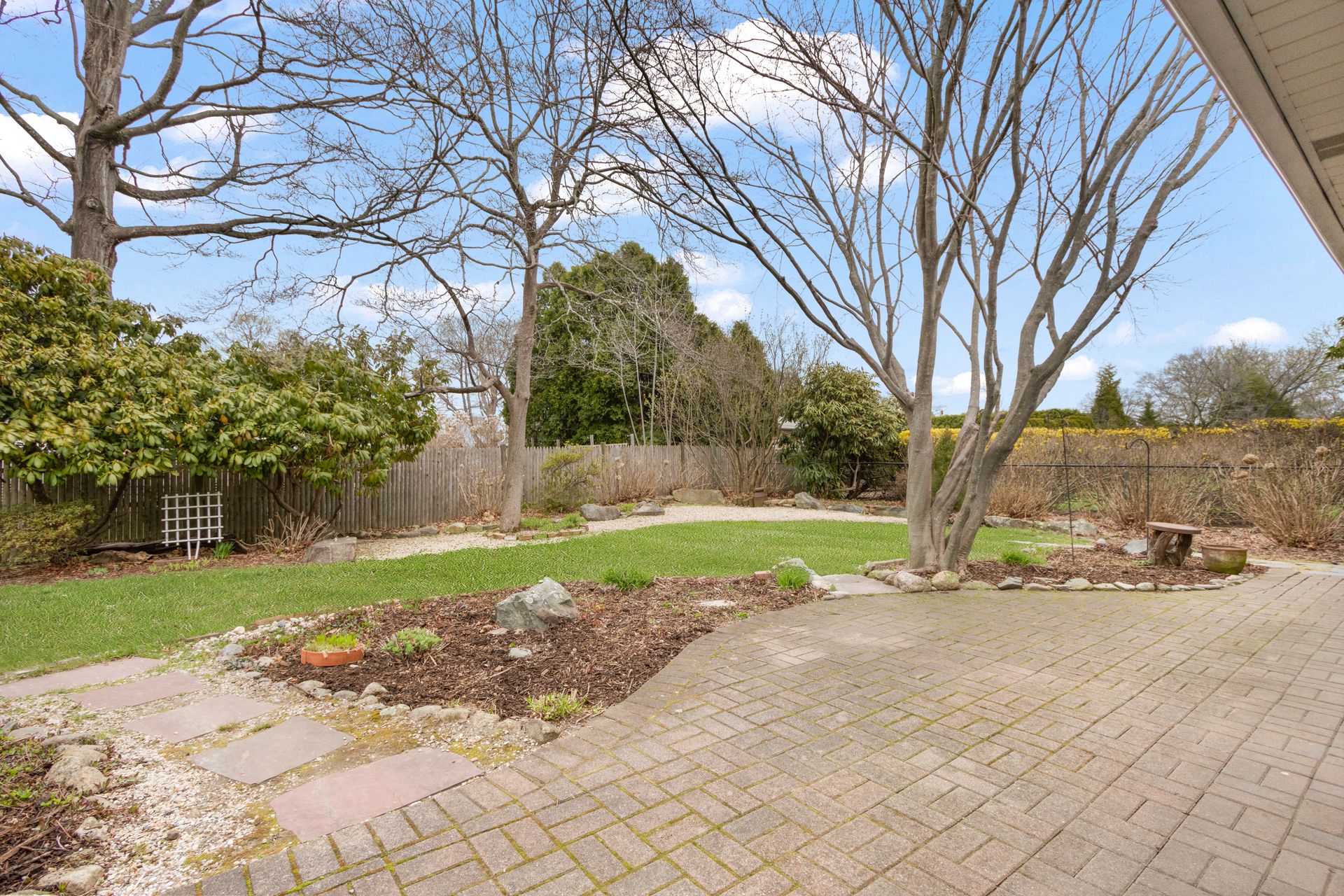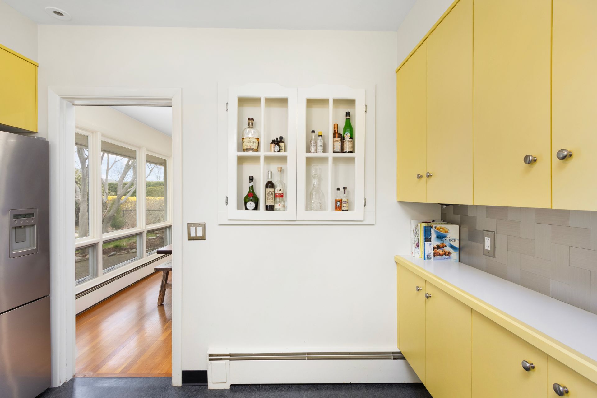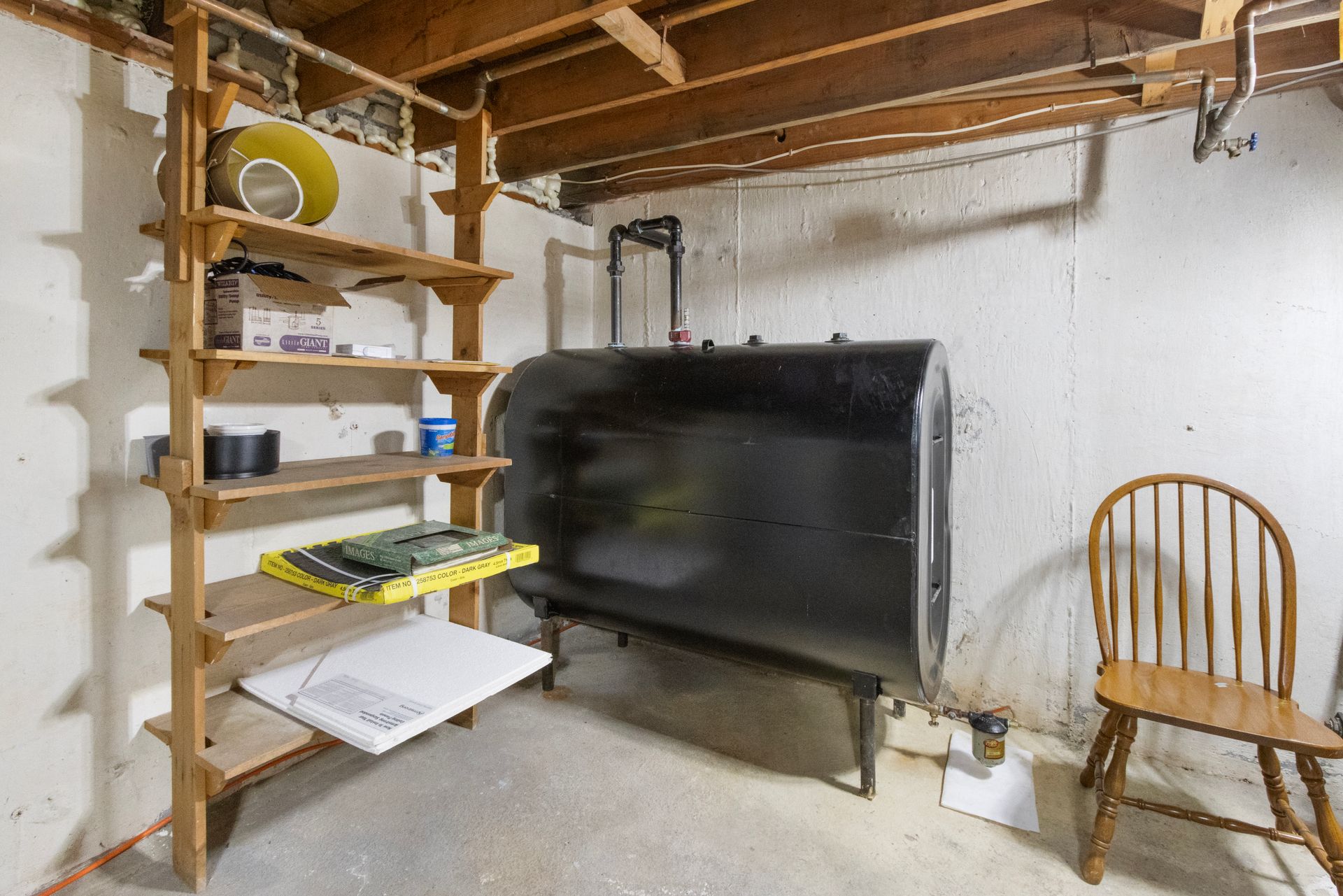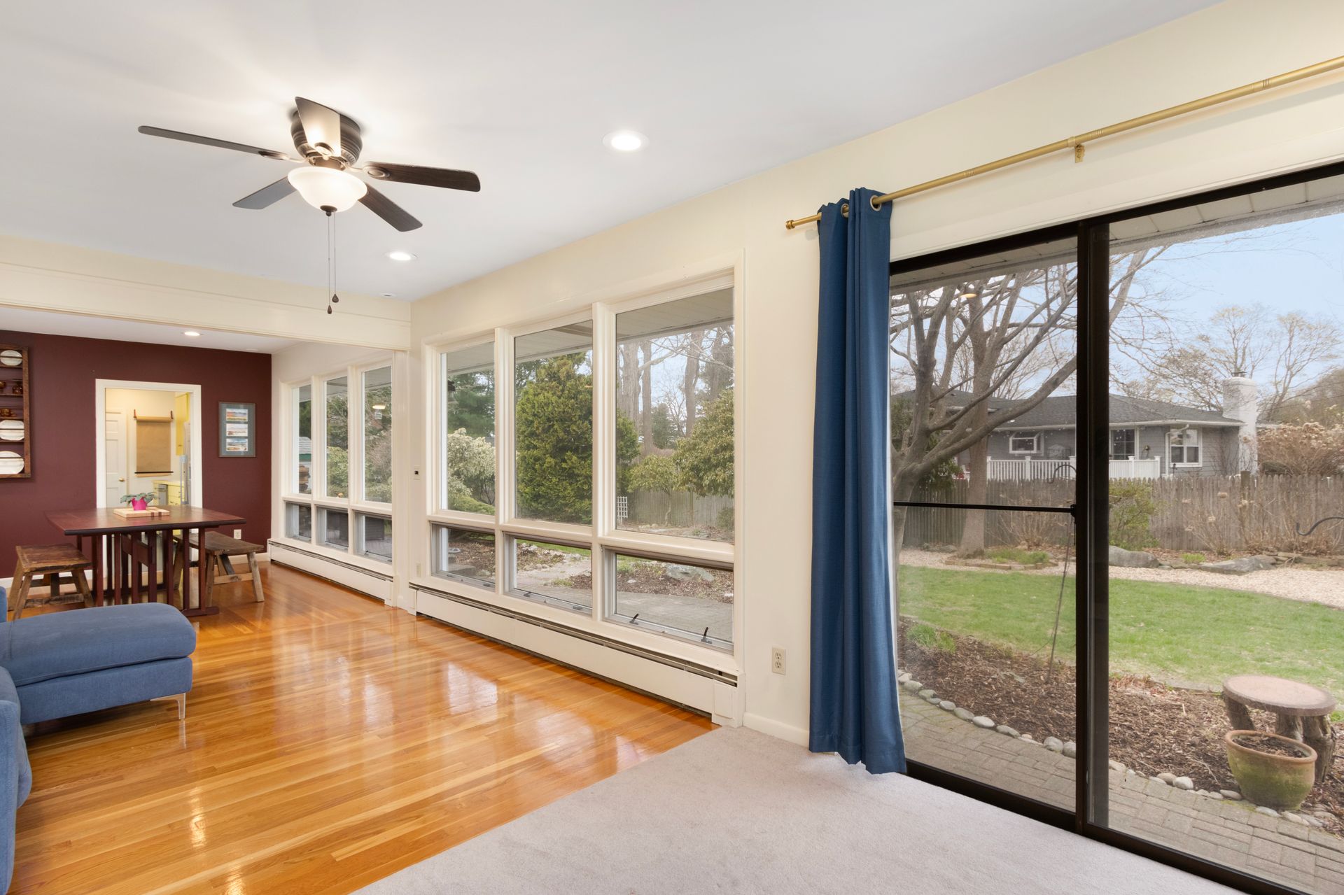 Experience true one-level living, complemented by a fully finished lower level ready to adapt to your needs. Natural light pours into the sunken living room, where a wood-burning fireplace anchors the space and invites you to settle in. The retro-style kitchen flows seamlessly into the dining area and den, creating a layout that works just as well for everyday living as it does for entertaining. The primary bedroom features an ensuite bath with a large soaking tub and separate shower, while two additional full bathrooms offer flexibility for family or guests. The finished lower level expands your living options with a second kitchen, built-in office, and ample storage, ideal for guests, working from home, or finally claiming a dedicated space for your hobbies. Outside, a paved driveway and walkway lead to a thoughtfully landscaped yard with mature plantings, perennials, underground sprinklers, and a storage shed. Additional highlights include central A/C, main-level laundry, and oil heat with gas available on the street for future conversion. Inquire for details on a potential assumable loan opportunity. A rare opportunity in sought-after Dean Estates, don’t miss it!