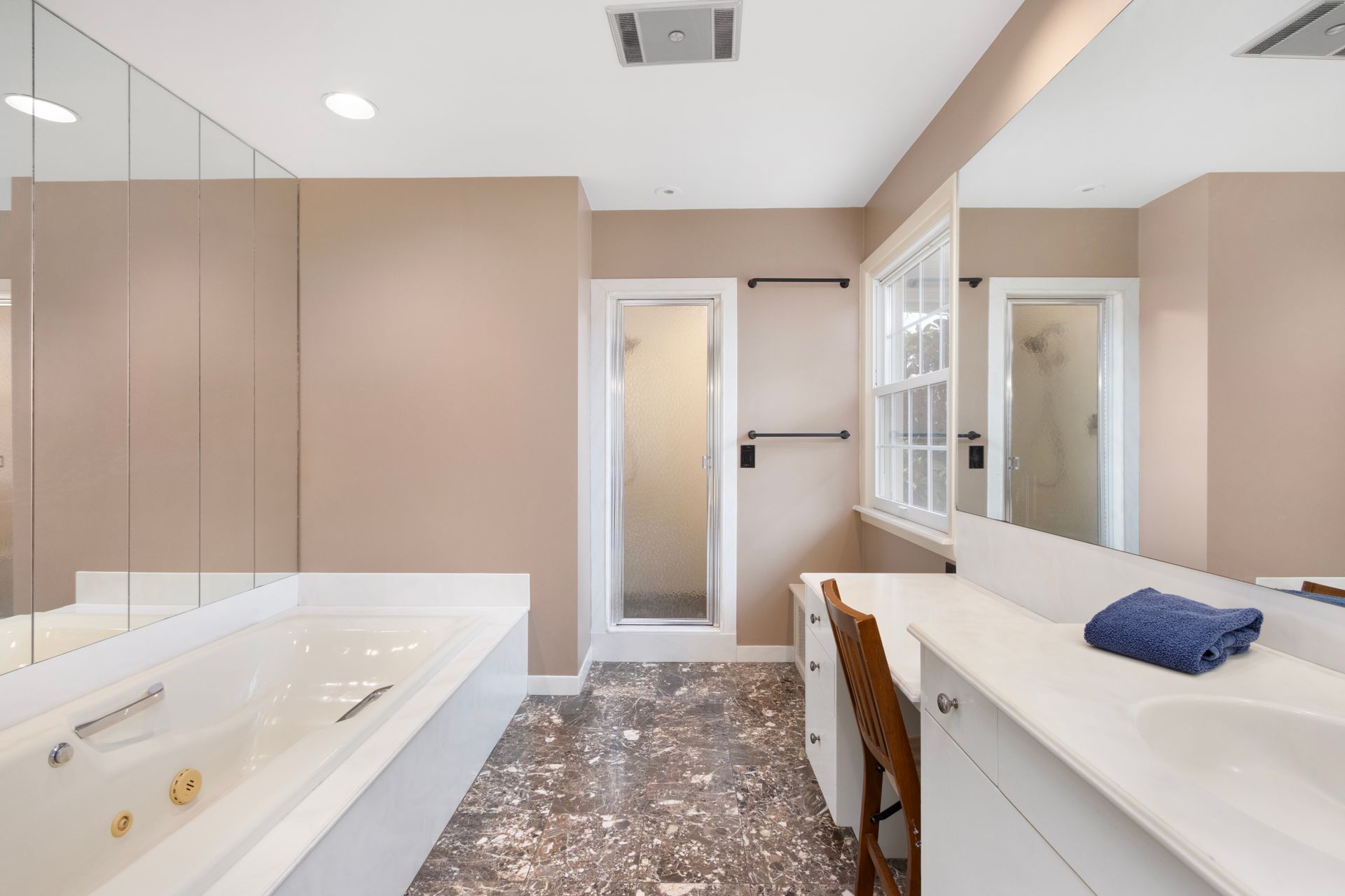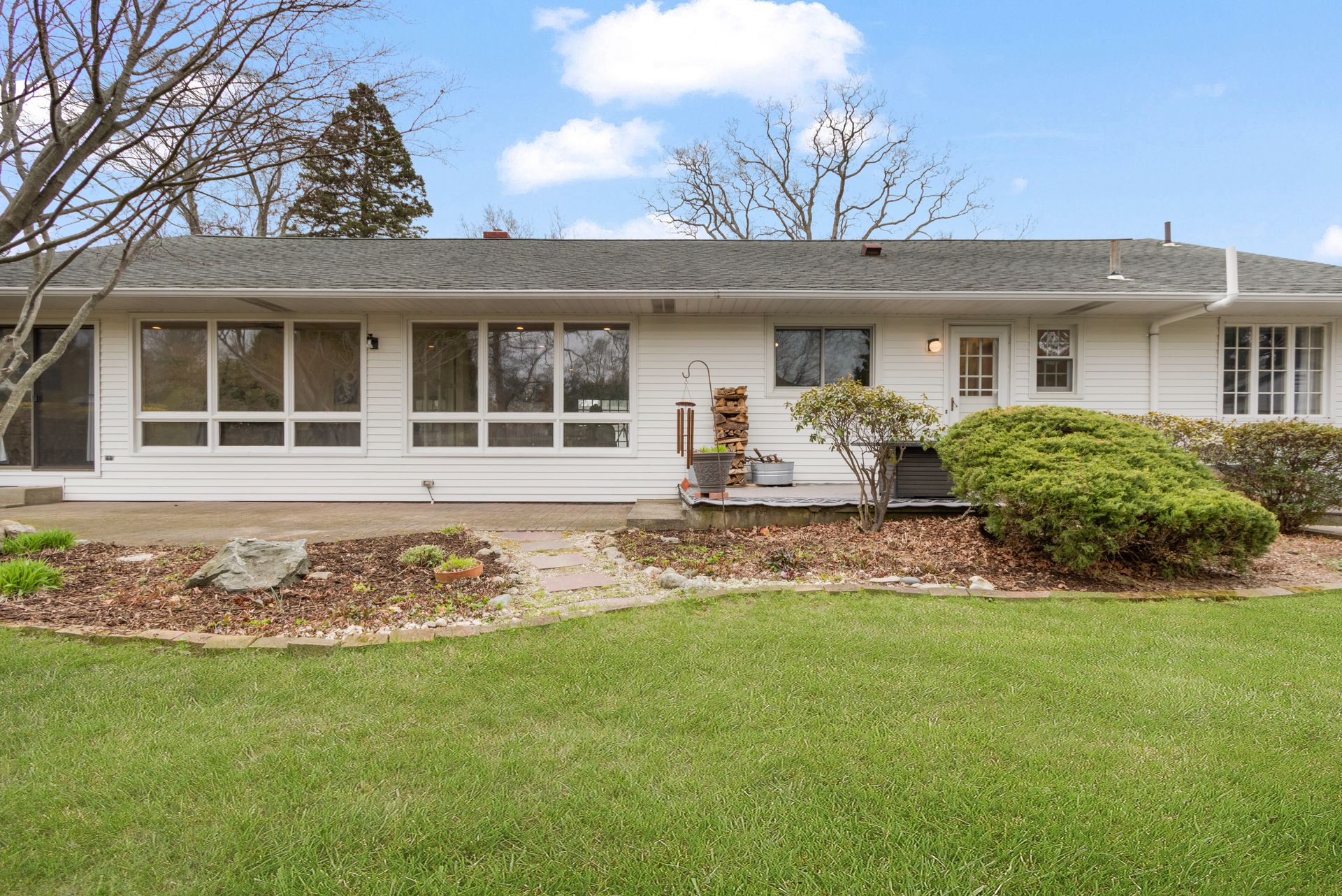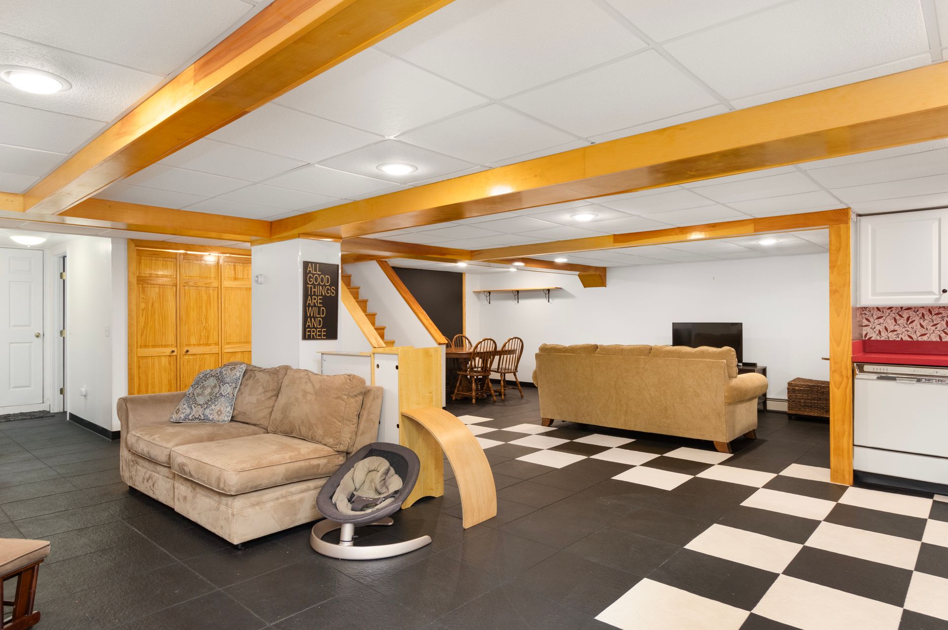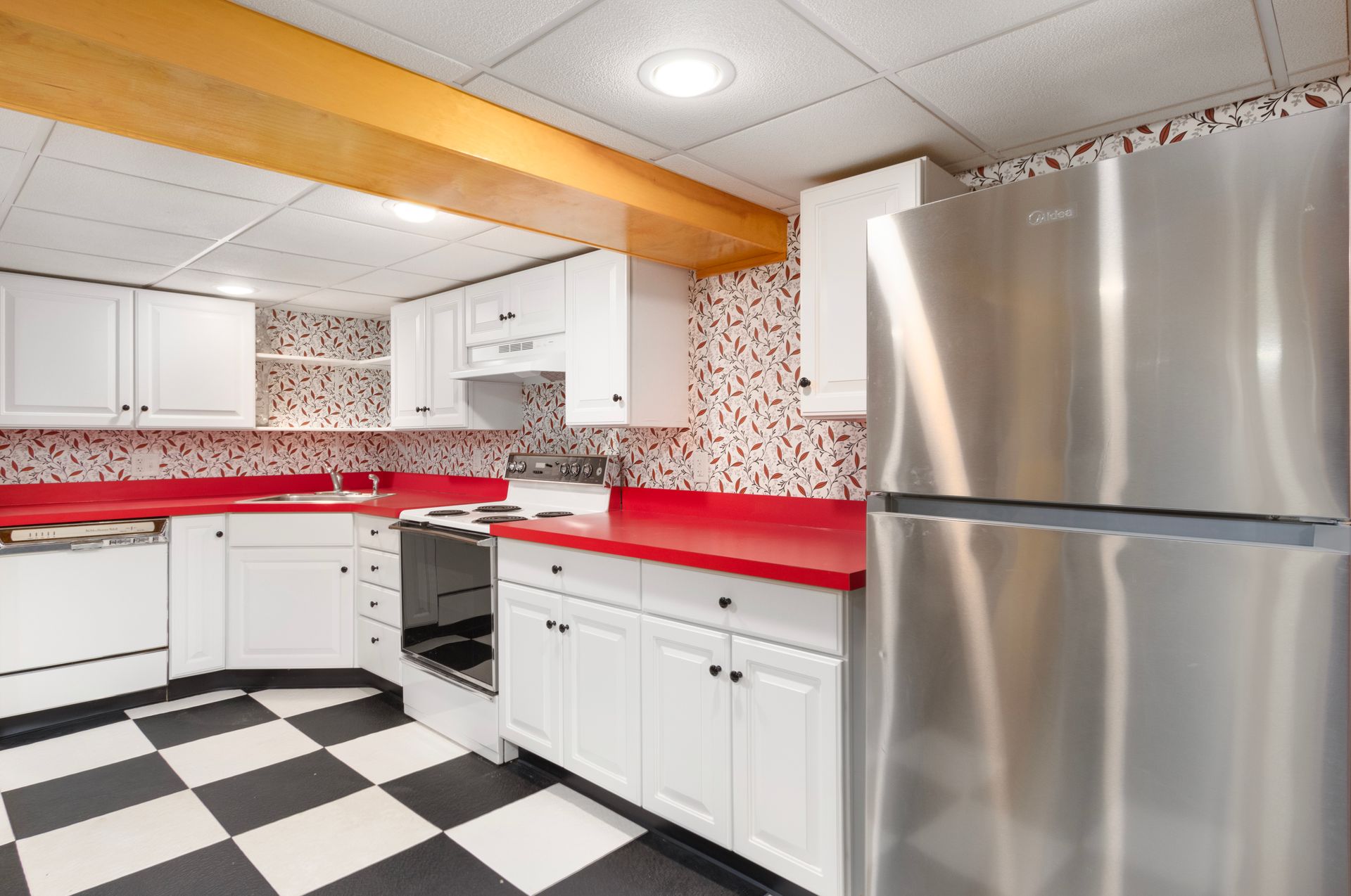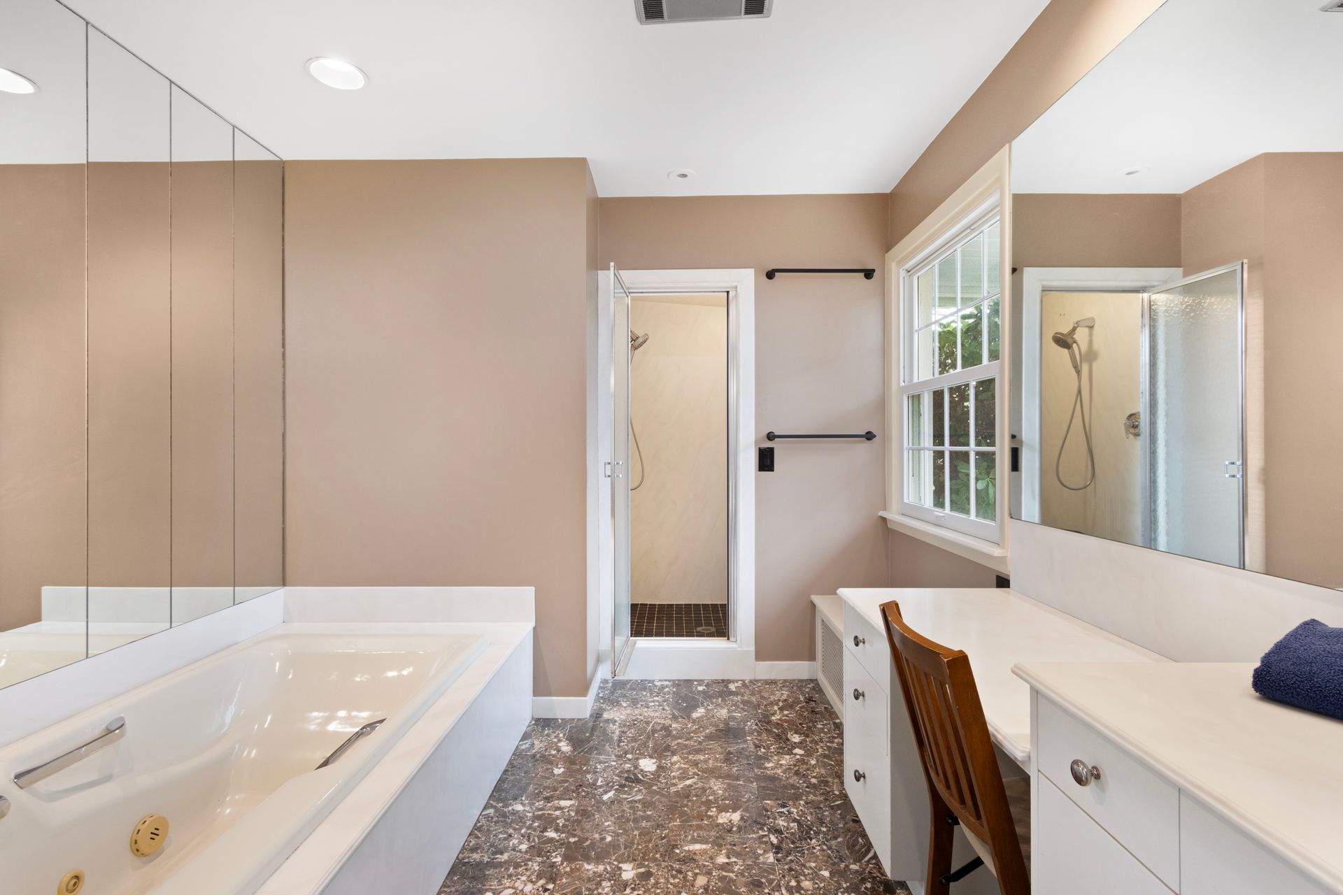 Experience true one-level living, complemented by a fully finished lower level ready to adapt to your needs. Natural light pours into the sunken living room, where a wood-burning fireplace anchors the space and invites you to settle in. The retro-style kitchen flows seamlessly into the dining area and den, creating a layout that works just as well for everyday living as it does for entertaining. The primary bedroom features an ensuite bath with a large soaking tub and separate shower, while two additional full bathrooms offer flexibility for family or guests. The finished lower level expands your living options with a second kitchen, built-in office, and ample storage, ideal for guests, working from home, or finally claiming a dedicated space for your hobbies. Outside, a paved driveway and walkway lead to a thoughtfully landscaped yard with mature plantings, perennials, underground sprinklers, and a storage shed. Additional highlights include central A/C, main-level laundry, and oil heat with gas available on the street for future conversion. Inquire for details on a potential assumable loan opportunity. A rare opportunity in sought-after Dean Estates, don’t miss it!
