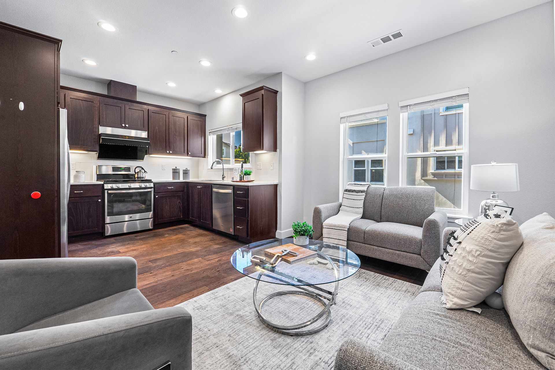 Welcome to this beautifully updated townhome in the highly sought-after Villas at Florio community, located within the top-rated Irvington High School district. Featuring 3 bedrooms, 3.5 bathrooms, and 1,818 sq. ft. of living space, this home offers comfort, style, and functionality for today’s lifestyle. Private In-Law Suite: Convenient 1 bed/1 bath on the ground floor—ideal for guests, extended family, or a home office. Open-Concept Living: Bright second floor with a spacious living room, cozy gas fireplace, and seamless flow into the dining area and kitchen. Chef’s Kitchen: Hardwood cabinetry, quartz countertops, stainless steel appliances, freestanding gas cooktop & powerful hood—perfect for cooking and entertaining. Dual Master Suites: Two generous suites on the third floor, each with walk-in closets, double windows, and elegant tile finishes. Modern Comforts: Central heating & cooling, double-pane windows, tankless water heater, newly refreshed hardwood flooring, and low HOA dues. Walk to Irvington schools, parks, shopping, library, community center, supermarkets & restaurants. Easy access to I-680, I-880, Dumbarton Bridge & BART. This home combines contemporary design, modern upgrades, and an unbeatable location—a true gem in one of Fremont’s most desirable neighborhood.