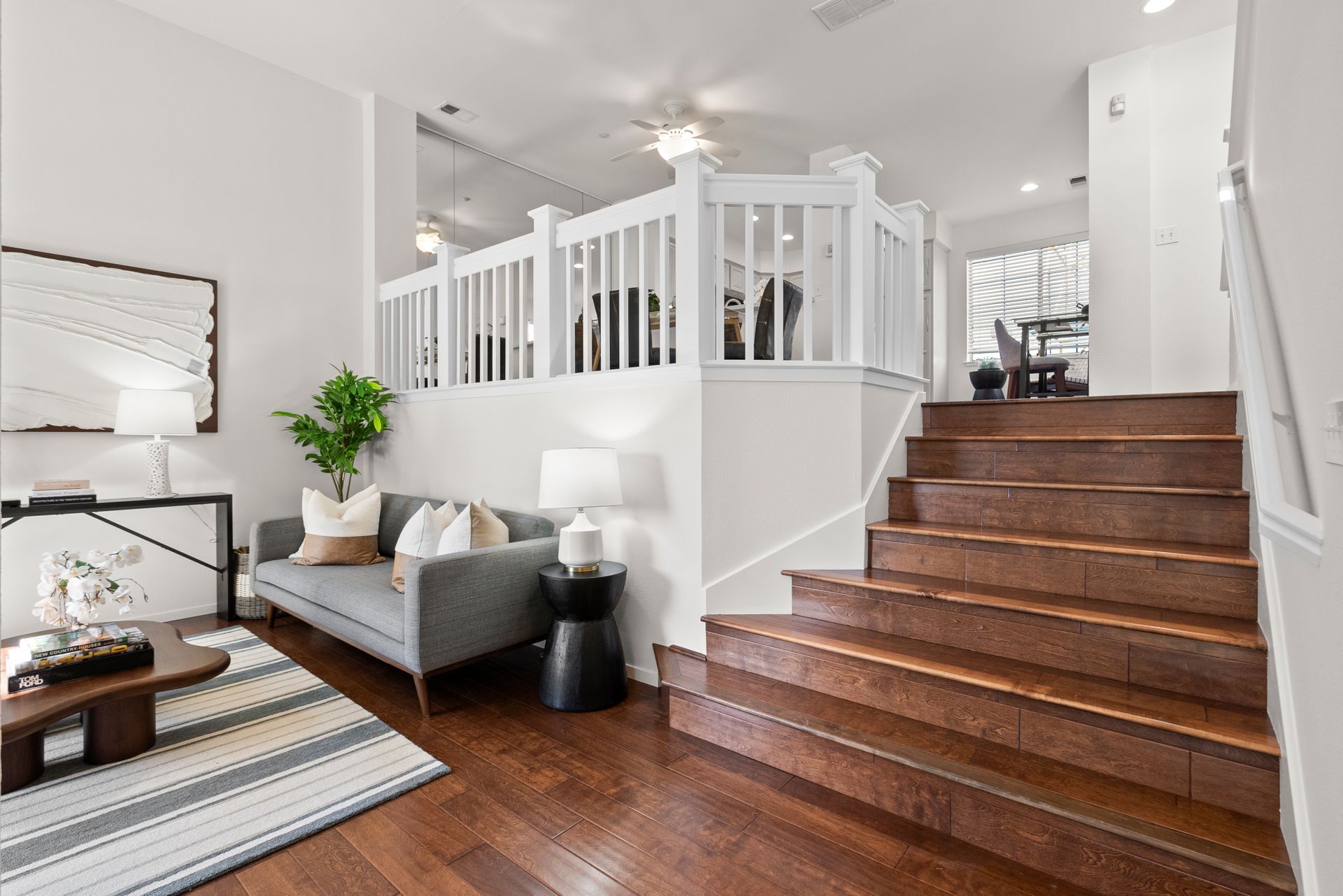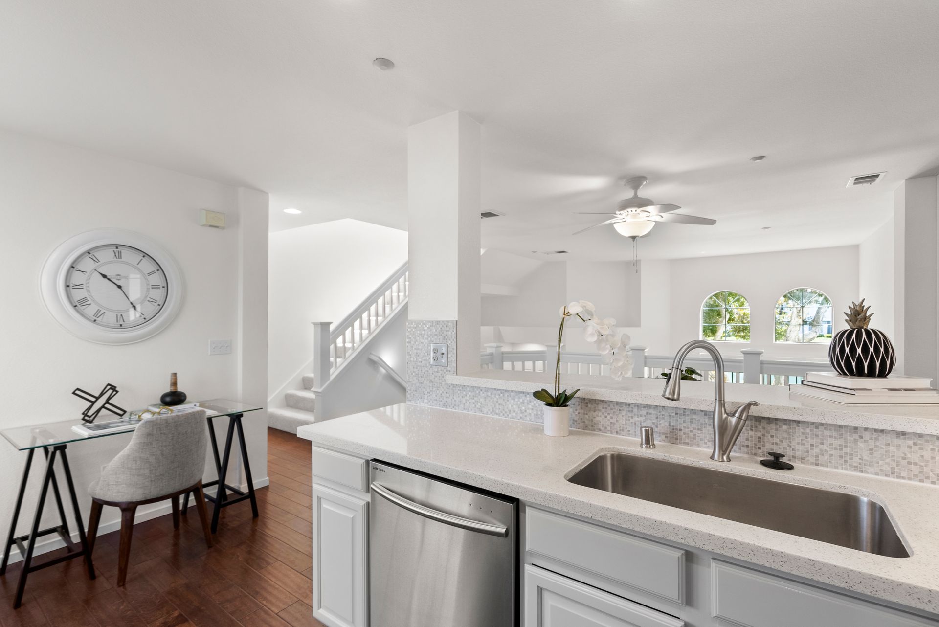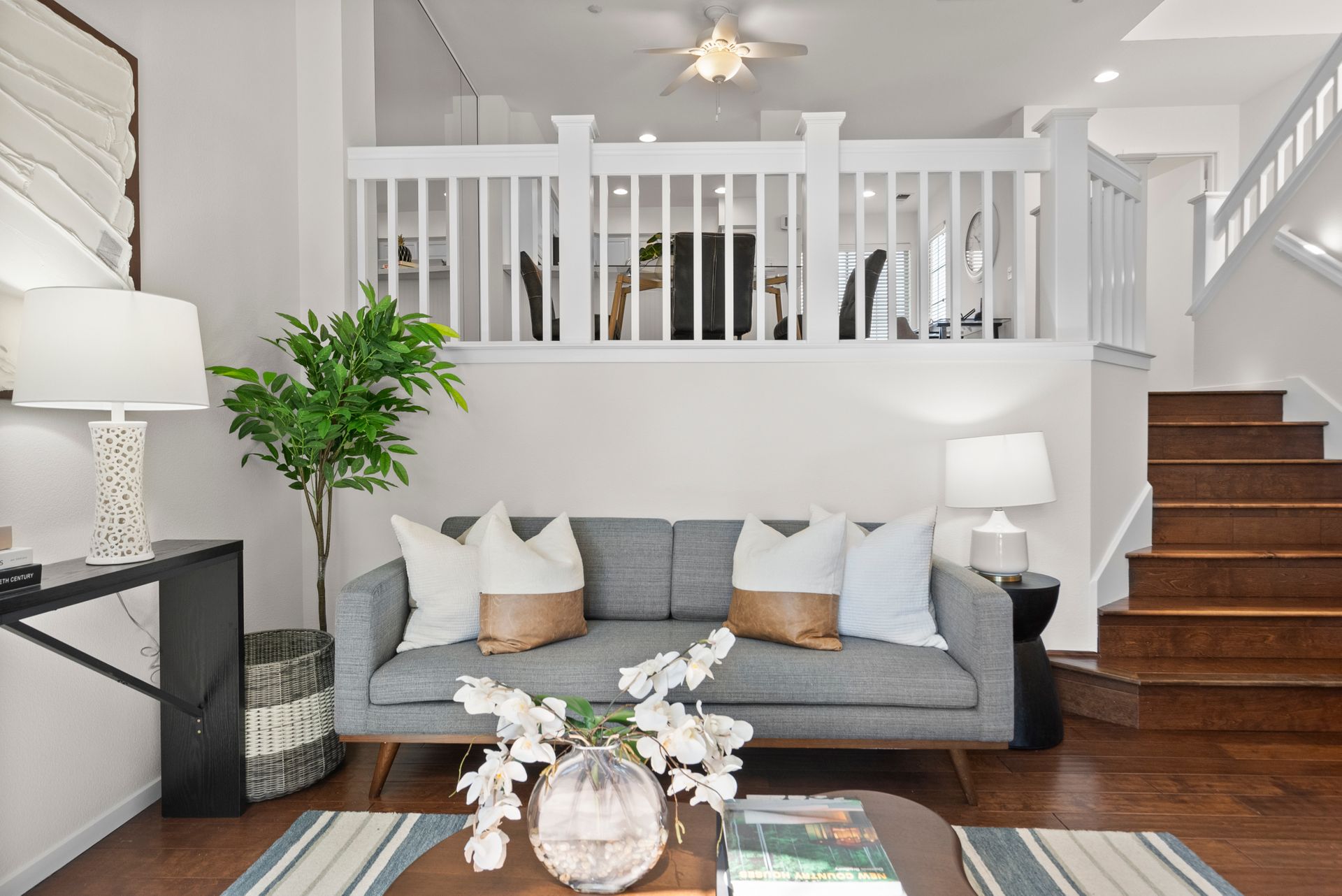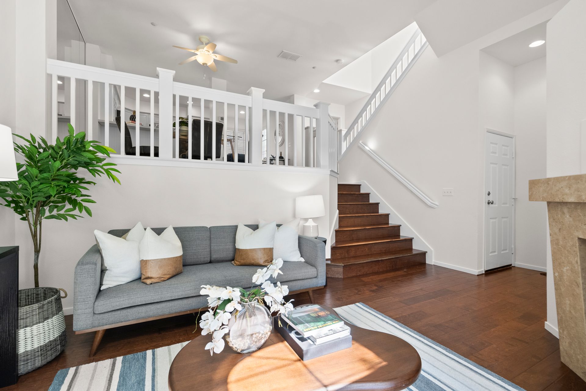 Located in the sought-after Redwood Shores community, this light-filled two-bedroom, two-and-one-half bath townhome is ready to move in and enjoy the serene setting and water views. Enter into the living room with soaring ceilings and lovely deck area for your morning coffee, generous dining area for all to gather, delightful updated Kitchen featuring stainless steel appliances, sparkling granite counter tops, recessed lighting, and ample cabinet space. A half-bath is conveniently located on the main level. Upstairs, you will discover two generous sun-filled bedrooms, each with attached en-suite bathrooms. Conveniently located in the hall between the bedrooms is the laundry area.