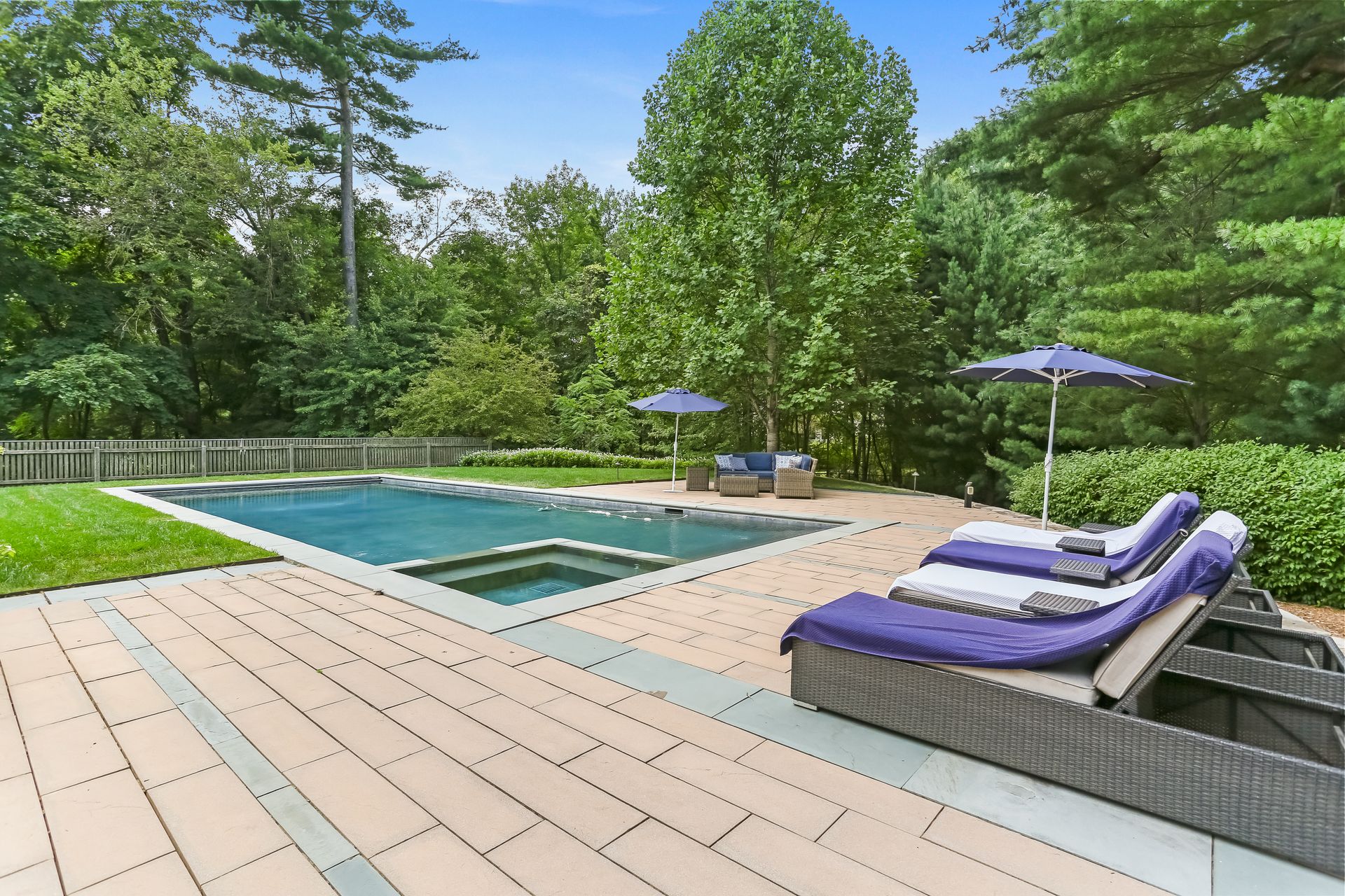 Welcome to this exceptional five bedroom, four full and two half-bath home in the heart of Westport. Thoughtfully designed for both luxury and everyday ease, it offers the rare flexibility of a first or second floor ensuite primary bedroom. Rebuilt in 2005, further renovated in 2015, and featuring a showstopping new kitchen in 2022, this home is truly move-in ready. The kitchen is a chef's dream with quartz countertops, a spacious island, crisp white cabinetry, and top-tier Wolf and Subzero appliances. Designed for seamless living, the home flows effortlessly between spaces to relax, entertain, or work from home. An elevator connects the garage level to the first and second floors for added convenience. A large bonus room on the second floor is ideal as a gym or secondary family room. The 1+/- acre property is a private retreat, with mature landscaping by a renowned NY architect, including specimen trees, ornamental grasses, stone walls, and an ADA-compliant walking path. A level yard provides the ideal space for lawn games. The showpiece 50-foot gunite saltwater pool is surrounded by a generous patio, while an additional terrace off the kitchen and family room offers multiple areas for dining and lounging. Set on a quiet cul-de-sac within a close distance of top-rated middle and high schools, this location offers the best of town and tranquility. A full-house generator ensures uninterrupted comfort. Don't miss the opportunity to make this extraordinary property your own.