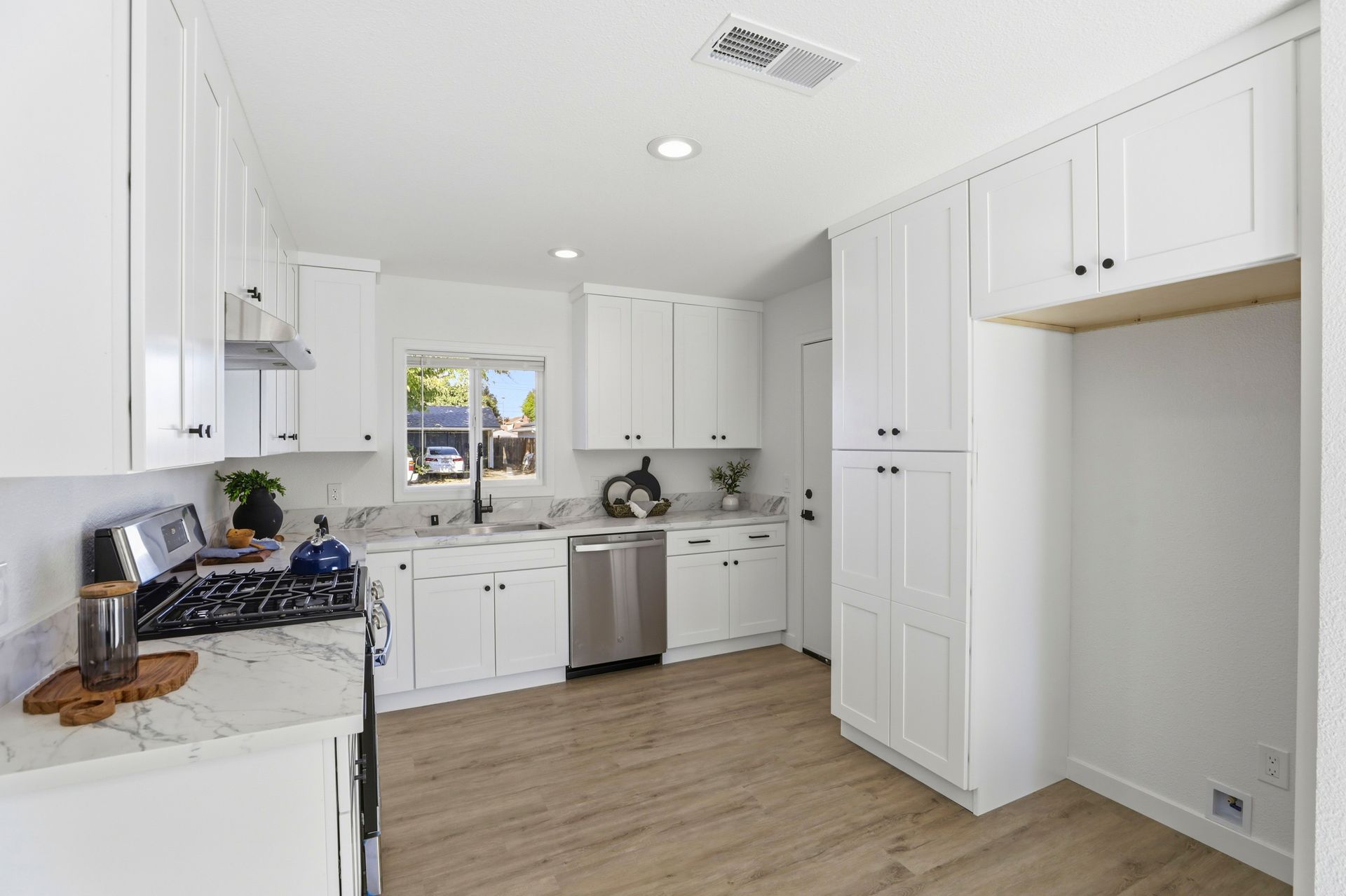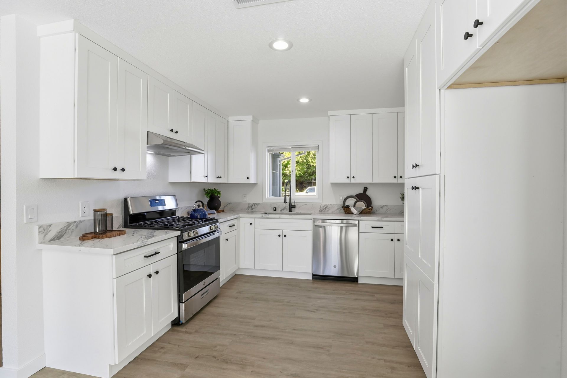 What an opportunity!! Become the proud owner of this beautifully remodeled, 3 bed, 2 bath, 1,167 square foot house. Sitting on a large, .17 acre lot, this home has been redone from top to bottom with gorgeous, modern finishes. Enter the lovely living room with luxury vinyl plank flooring, LED lighting and tons of natural light. A chef’s delight kitchen awaits with all new cabinets, quartz countertops, stainless steel appliances and a large pantry. The dining area provides a great space for sharing meals and hosting guests and flows to the outdoor patio for summer bar-b-ques or a morning cup of coffee. This house has it all: new roof, new AC, new water heater, updated plumbing and electrical, 2 car garage, dual-pane windows, new bathrooms, the list is endless….The backyard provides a huge blank slate for your visions and dreams to come to life. Enjoy a great location on a cul de sac street, near Robla Community Park, shops, restaurants, schools and easy access to downtown Sacramento.