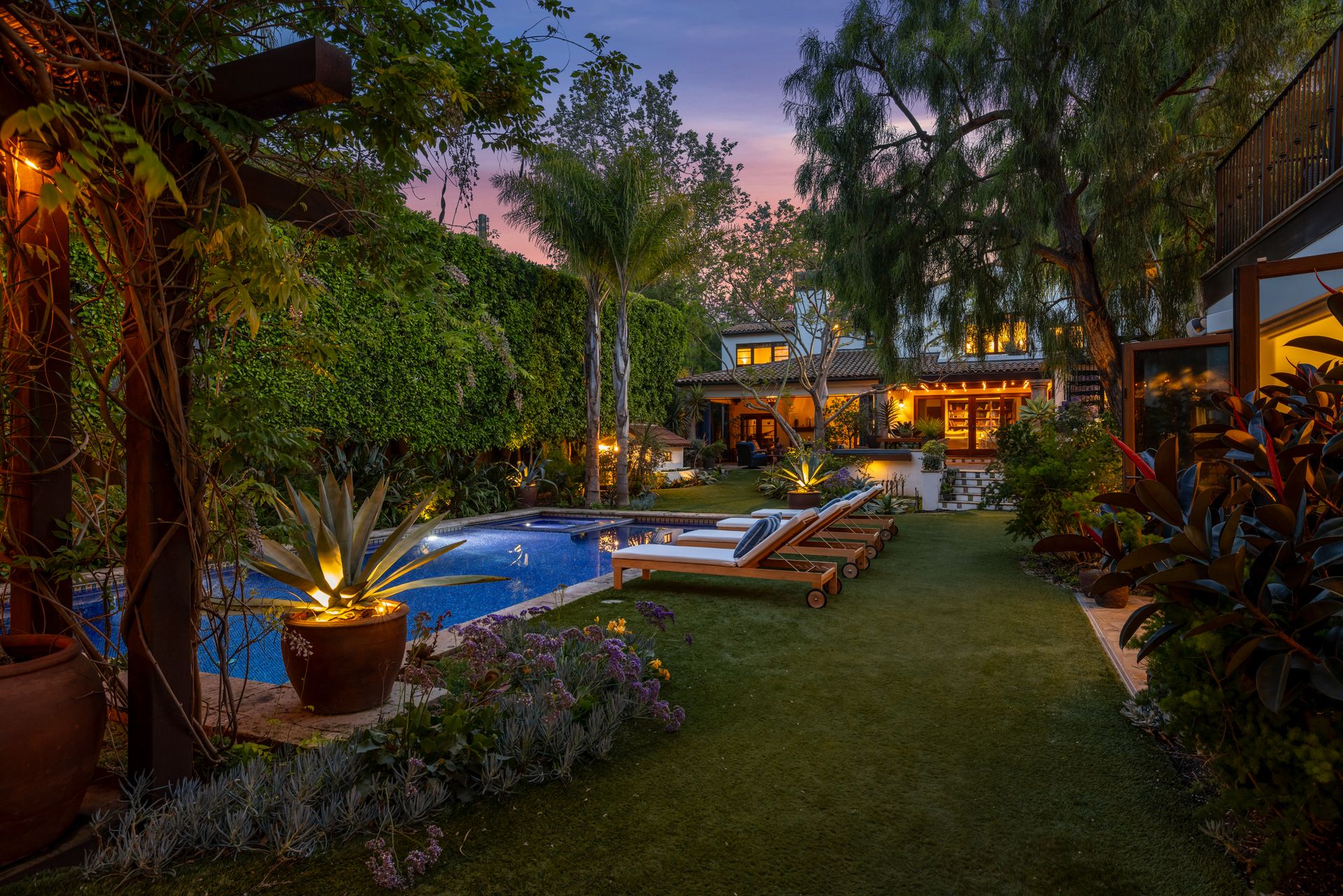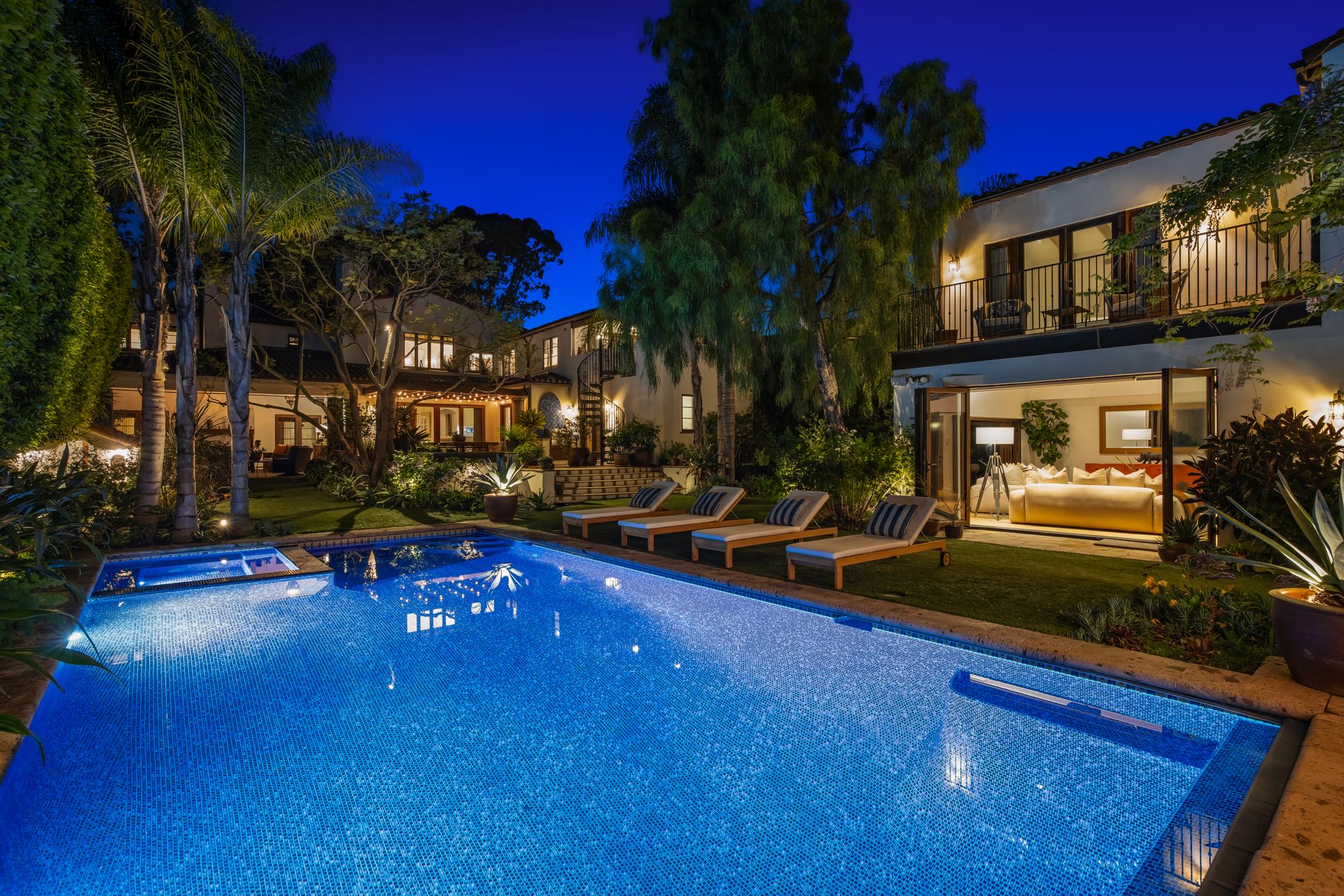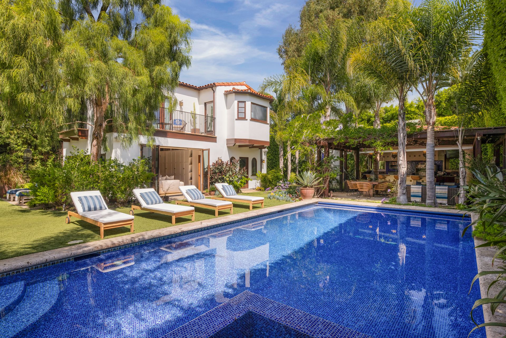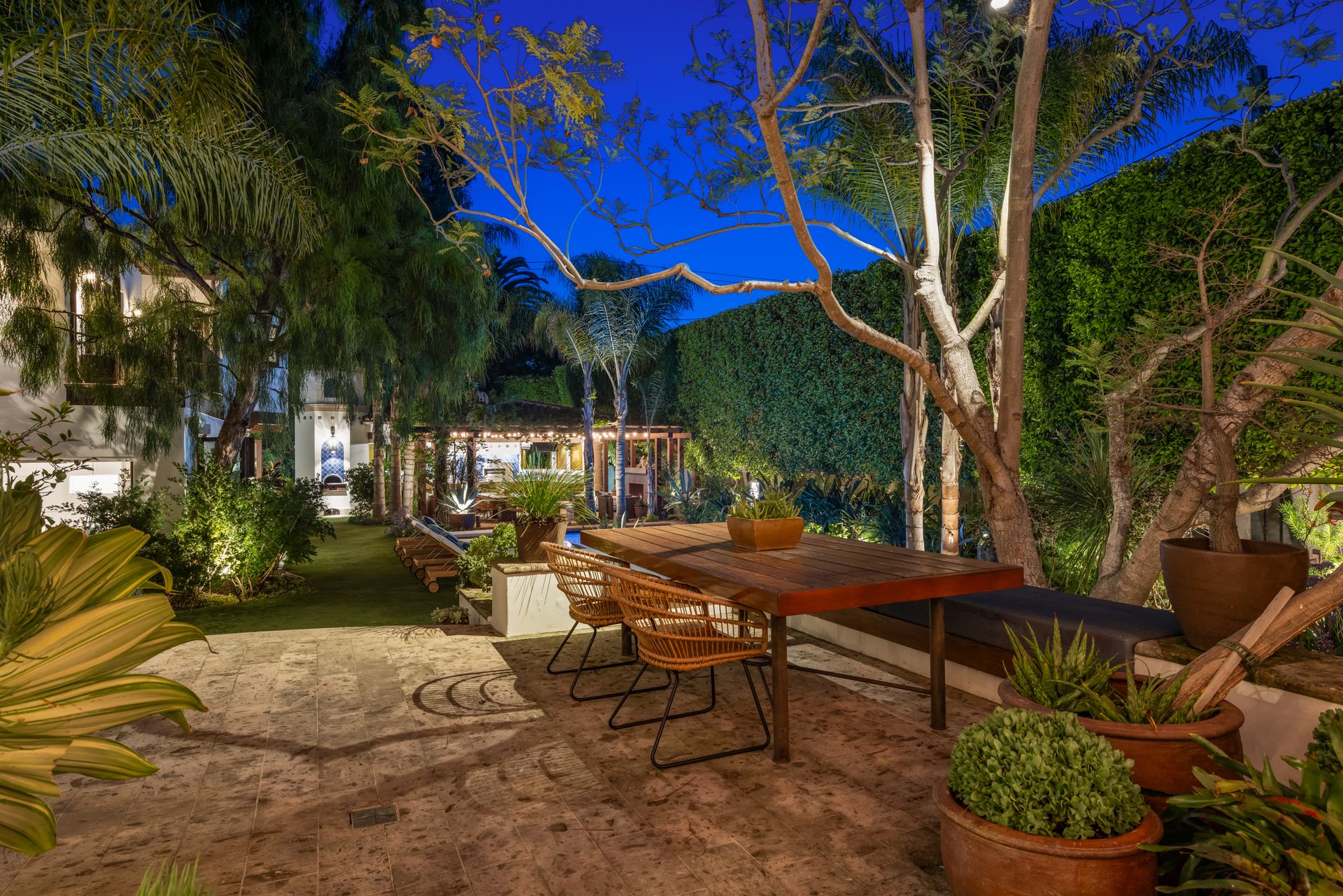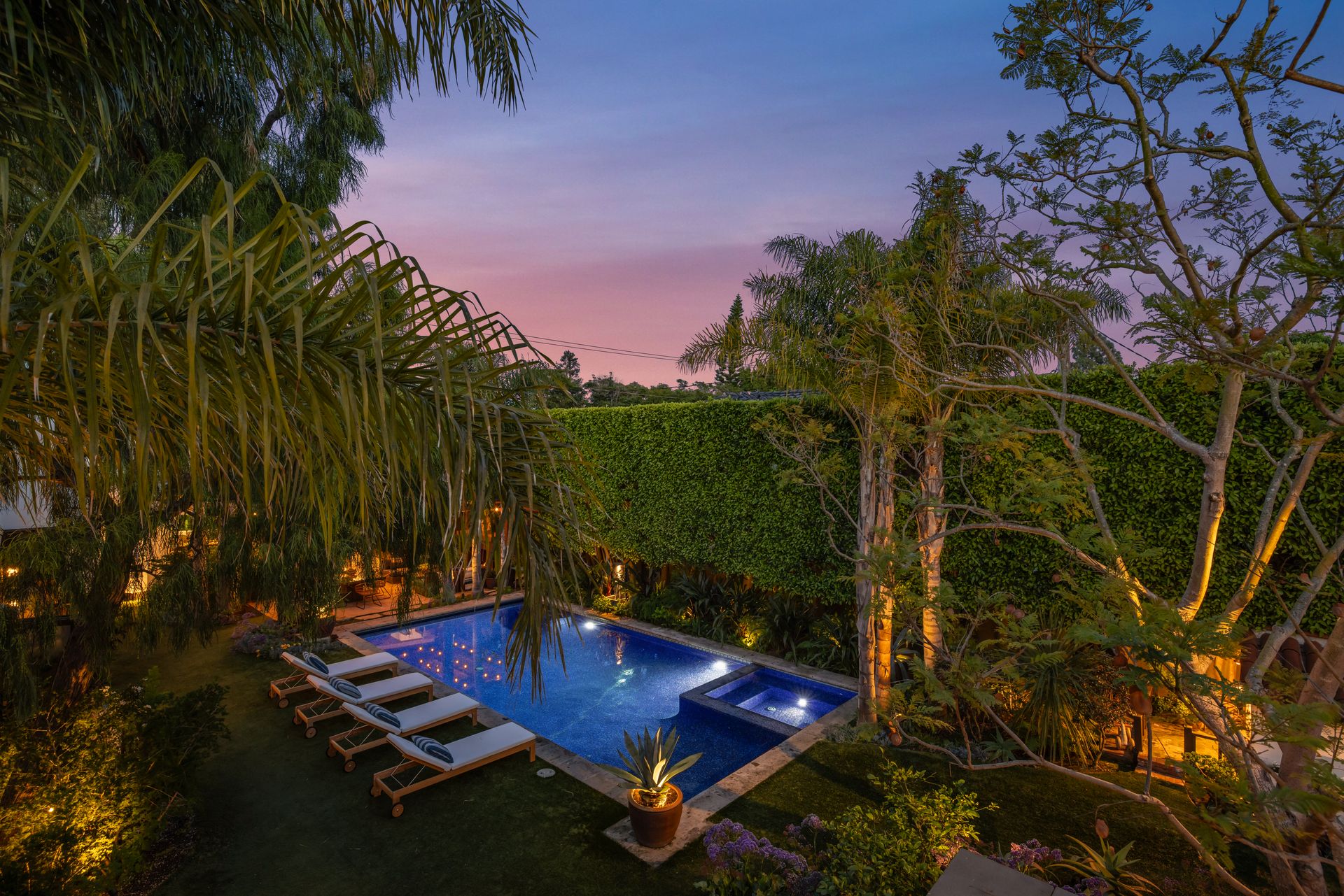 This private resort unfolds with a sophisticated pavilion with a decorative tower housing a fully appointed commercial-grade outdoor kitchen, complete with top-tier appliances, and a pergola with twinkling string lights over a large dining area, which sets the stage for al fresco meals, warmed by a gas fireplace. The centerpiece of the yard is a magnificent pool/spa, and an adjacent half-court basketball court. Completing the oasis is a sophisticated two-story guest house and office, providing refined accommodations for guests. This meticulously landscaped sanctuary with world-class amenities creates a true private paradise. The ideal blend of elegance and convenience by being moments away from the Brentwood Country Mart, charming Montana Avenue shops, Palisades Park, iconic Santa Monica Stairs, 3rd Street Promenade, and the beach that defines this sought-after coastal enclave.