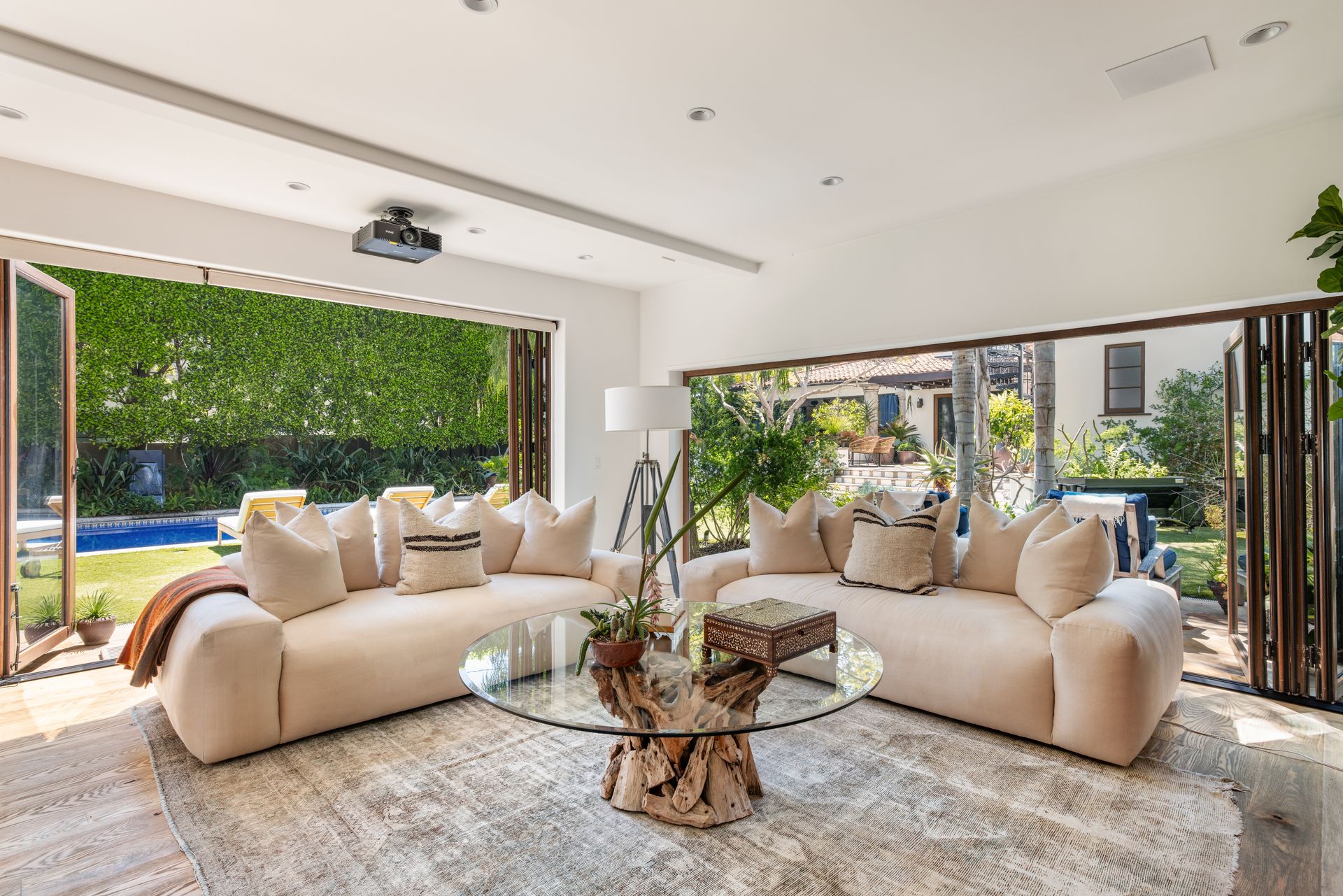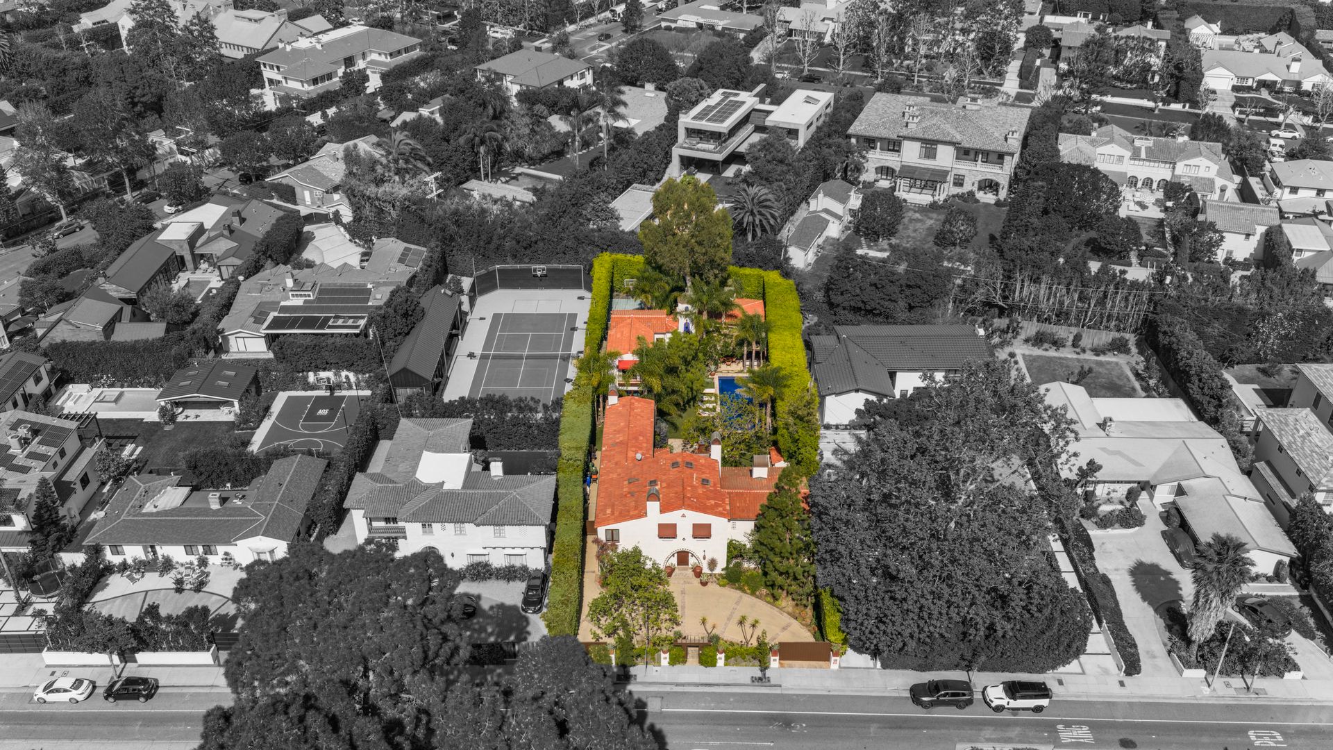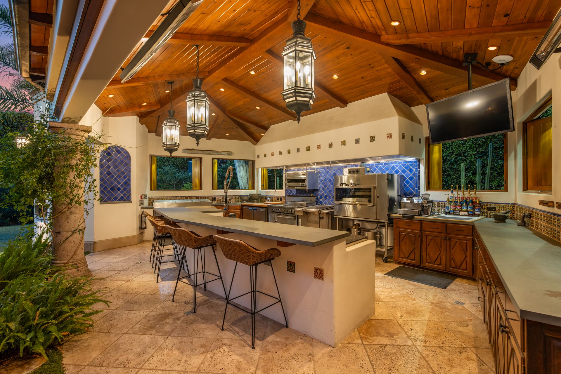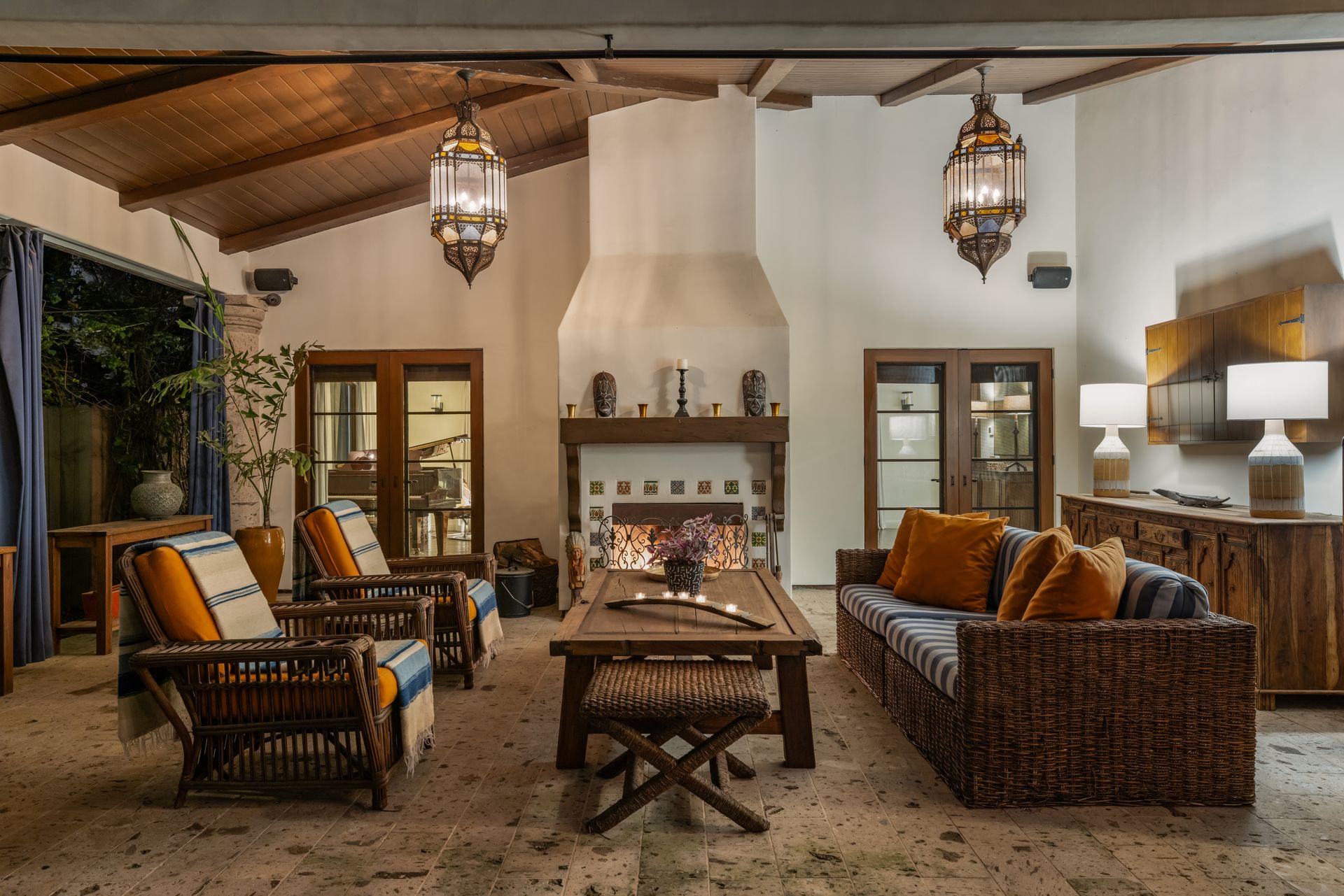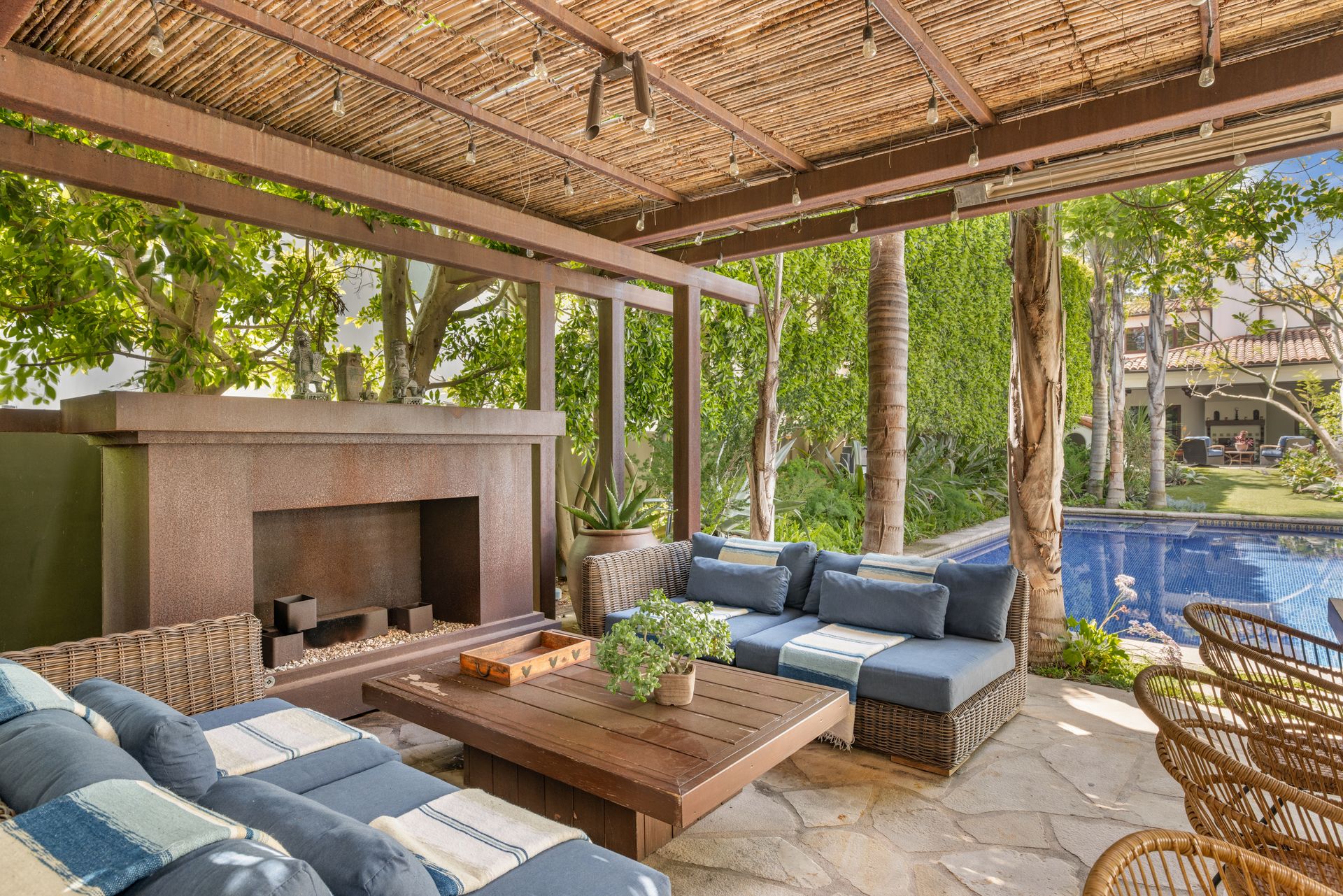 This private resort unfolds with a sophisticated pavilion with a decorative tower housing a fully appointed commercial-grade outdoor kitchen, complete with top-tier appliances, and a pergola with twinkling string lights over a large dining area, which sets the stage for al fresco meals, warmed by a gas fireplace. The centerpiece of the yard is a magnificent pool/spa, and an adjacent half-court basketball court. Completing the oasis is a sophisticated two-story guest house and office, providing refined accommodations for guests. This meticulously landscaped sanctuary with world-class amenities creates a true private paradise. The ideal blend of elegance and convenience by being moments away from the Brentwood Country Mart, charming Montana Avenue shops, Palisades Park, iconic Santa Monica Stairs, 3rd Street Promenade, and the beach that defines this sought-after coastal enclave.