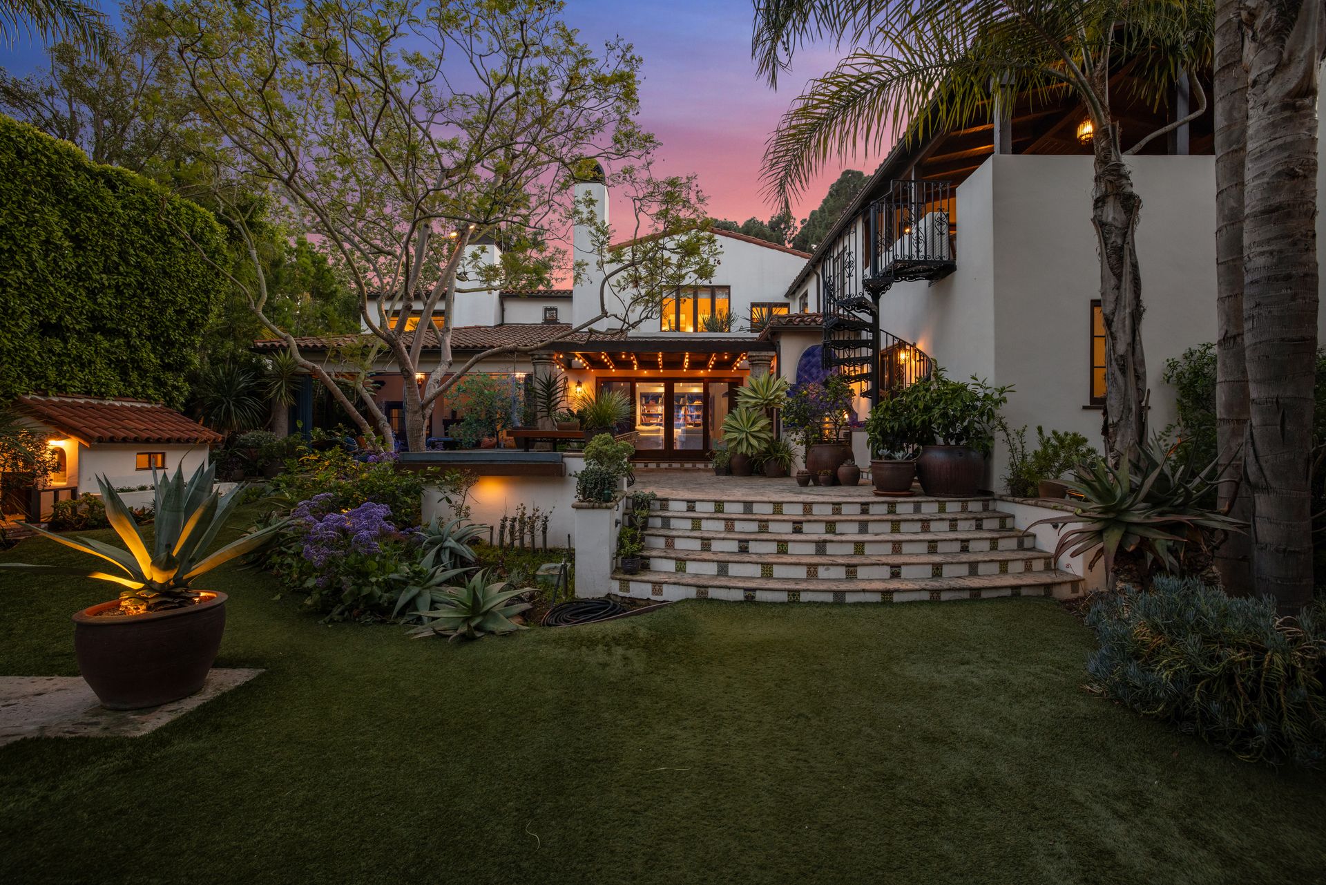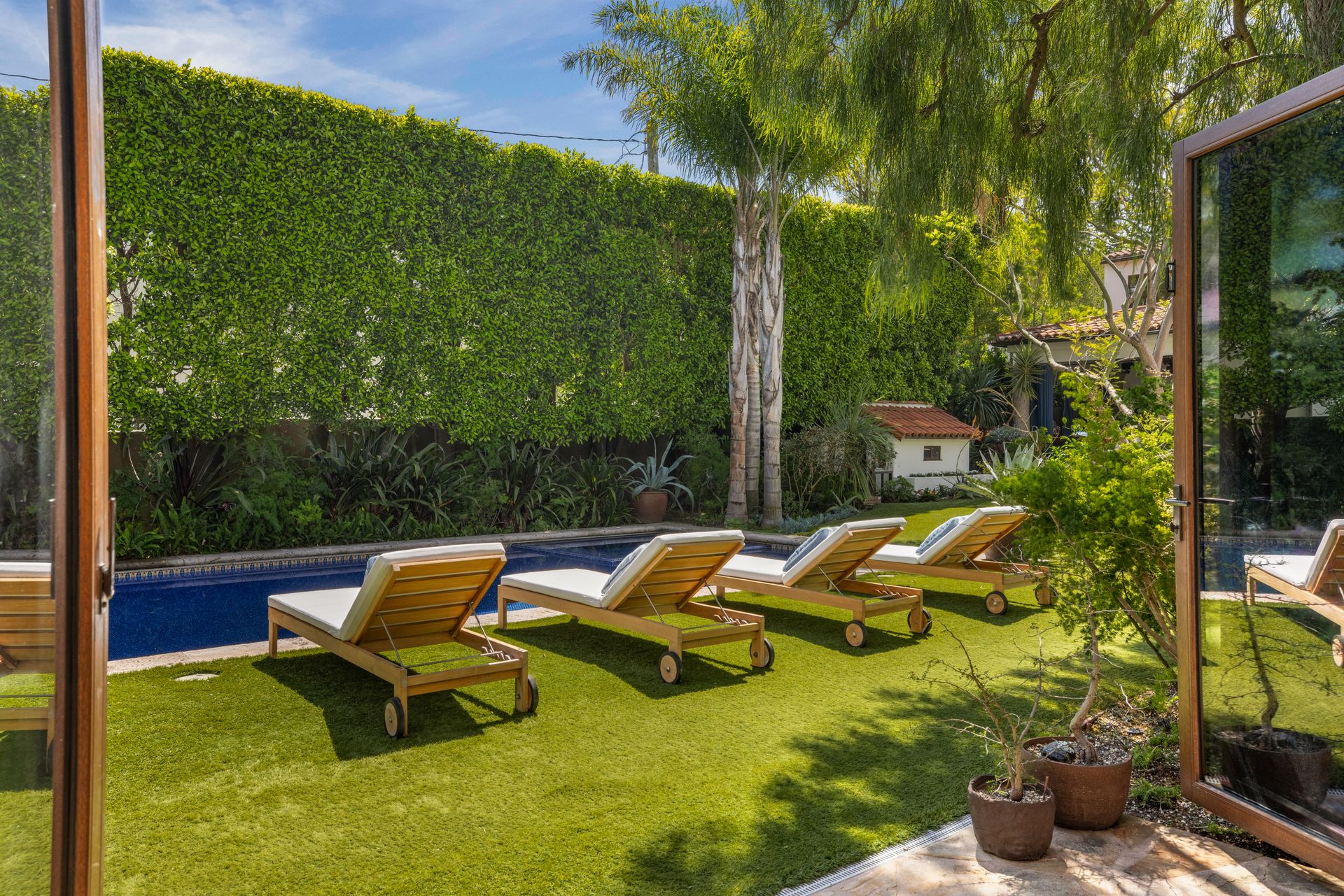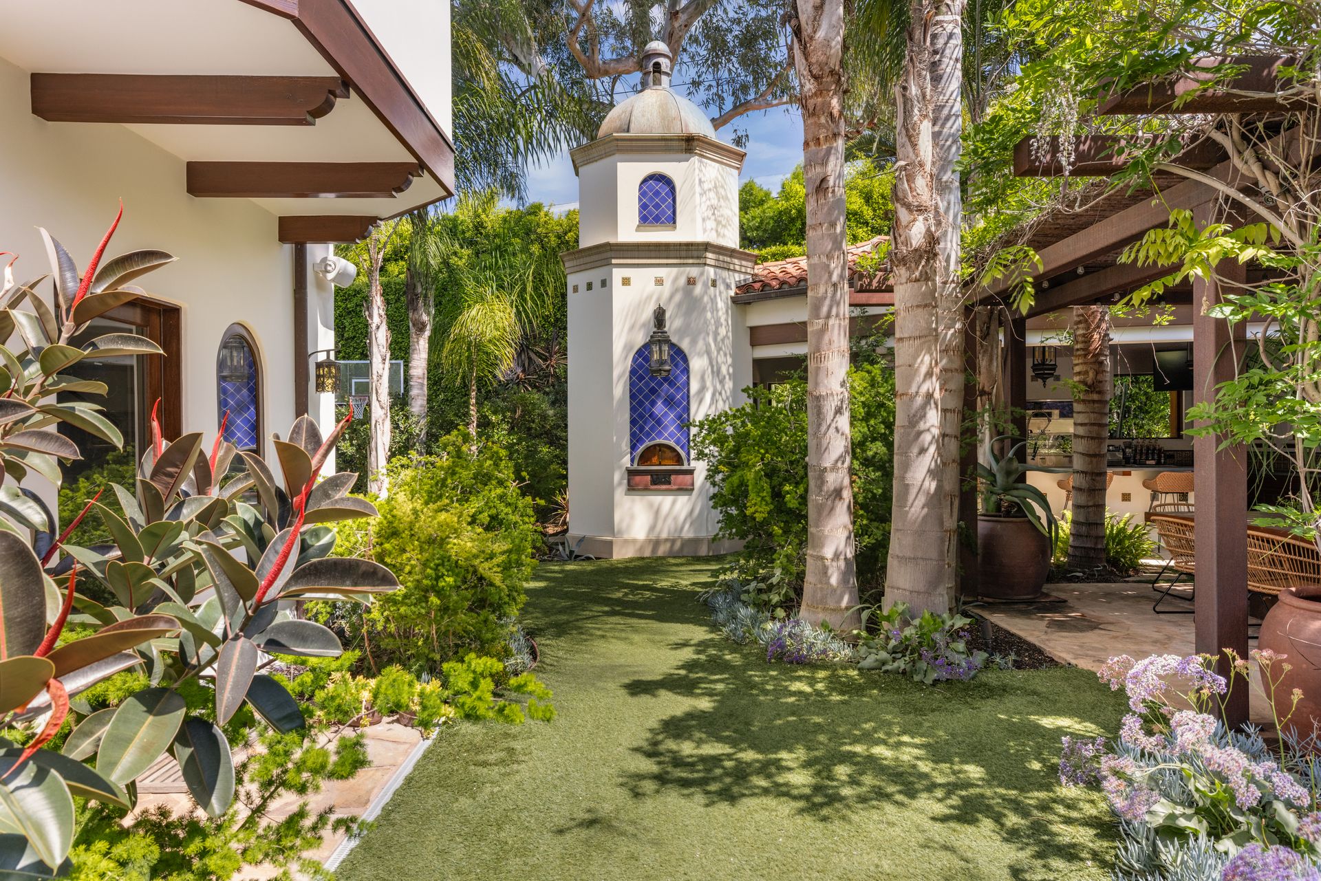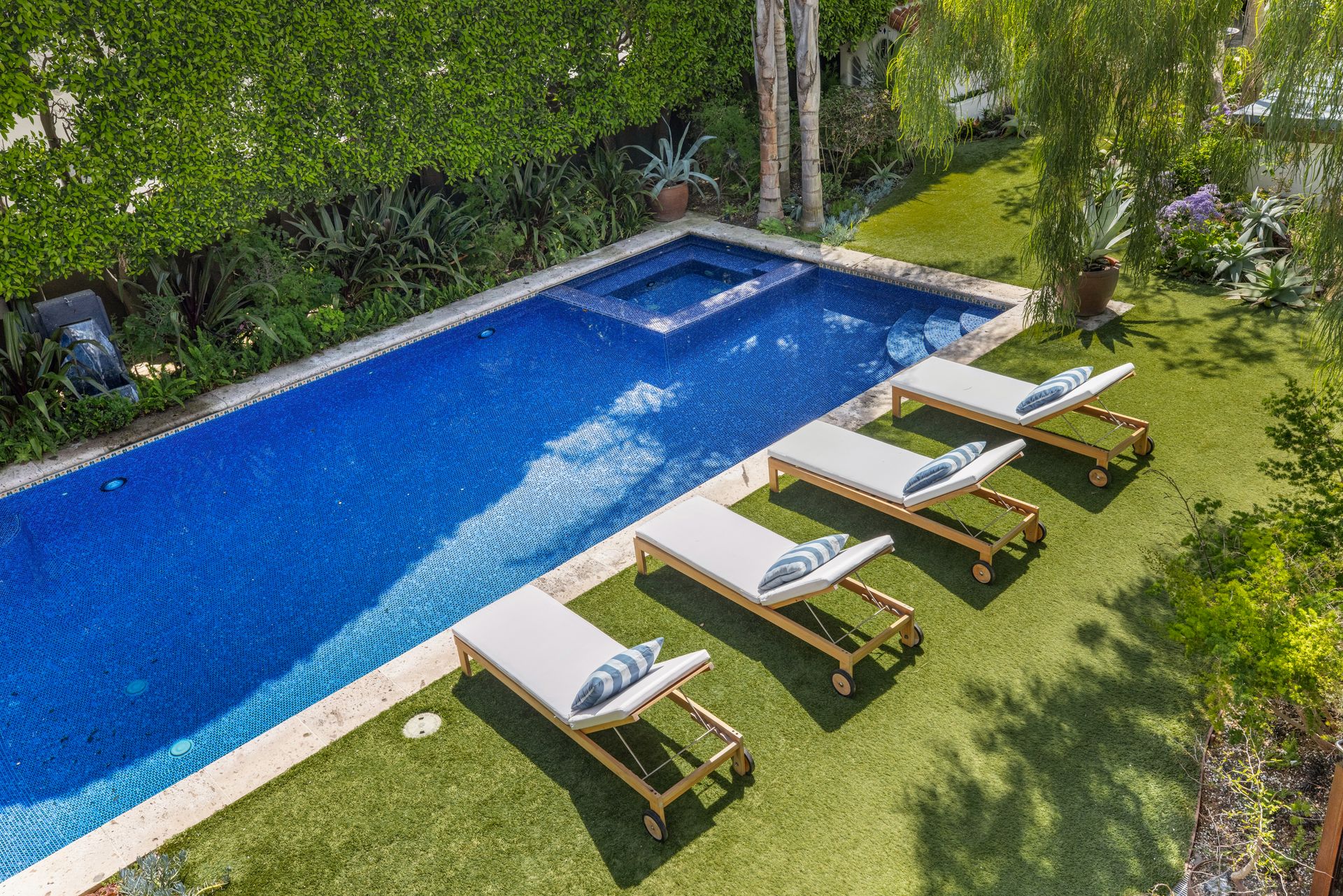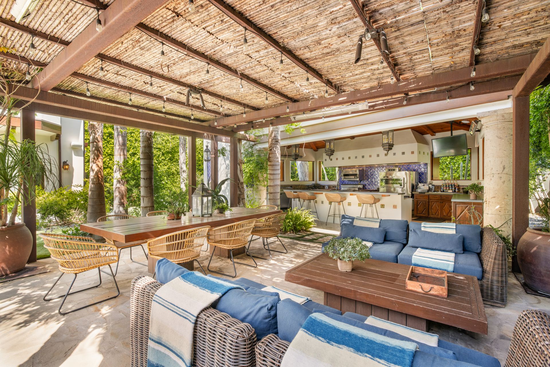 This private resort unfolds with a sophisticated pavilion with a decorative tower housing a fully appointed commercial-grade outdoor kitchen, complete with top-tier appliances, and a pergola with twinkling string lights over a large dining area, which sets the stage for al fresco meals, warmed by a gas fireplace. The centerpiece of the yard is a magnificent pool/spa, and an adjacent half-court basketball court. Completing the oasis is a sophisticated two-story guest house and office, providing refined accommodations for guests. This meticulously landscaped sanctuary with world-class amenities creates a true private paradise. The ideal blend of elegance and convenience by being moments away from the Brentwood Country Mart, charming Montana Avenue shops, Palisades Park, iconic Santa Monica Stairs, 3rd Street Promenade, and the beach that defines this sought-after coastal enclave.