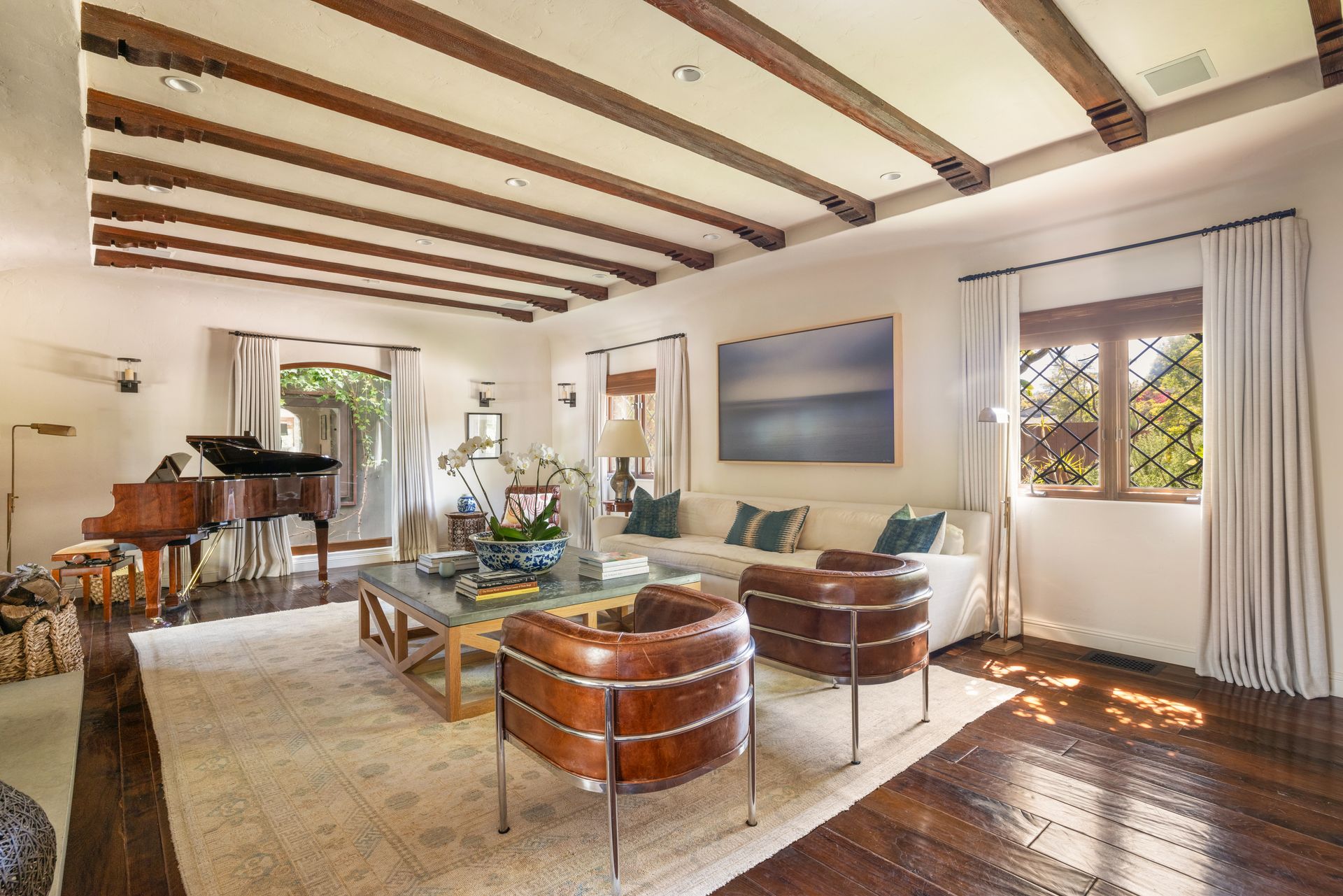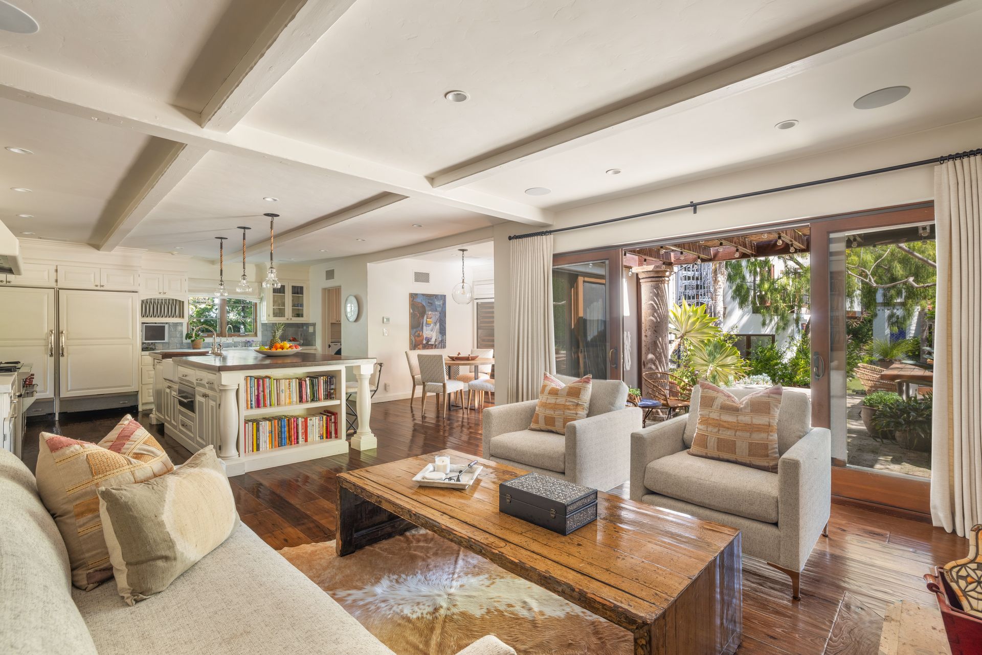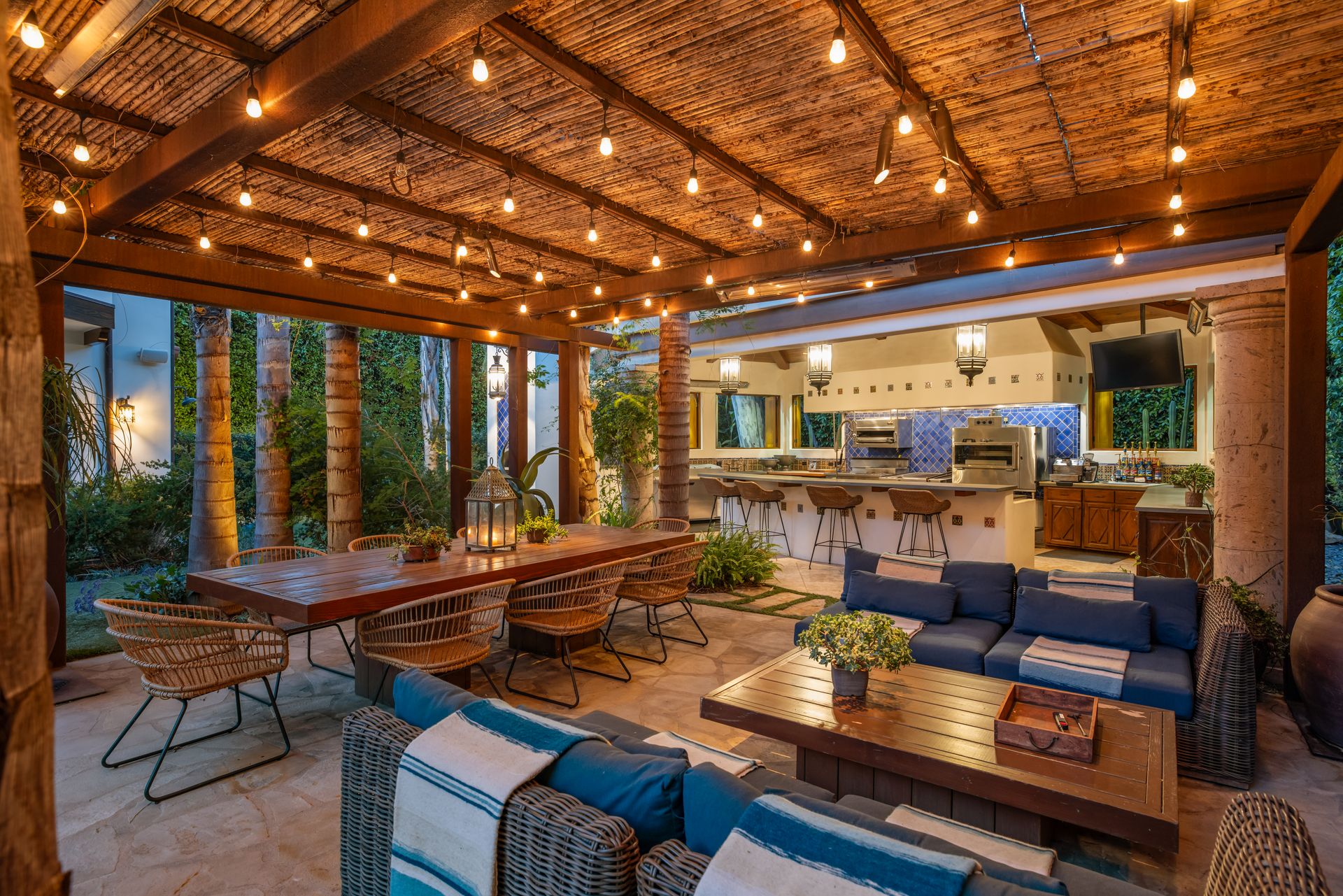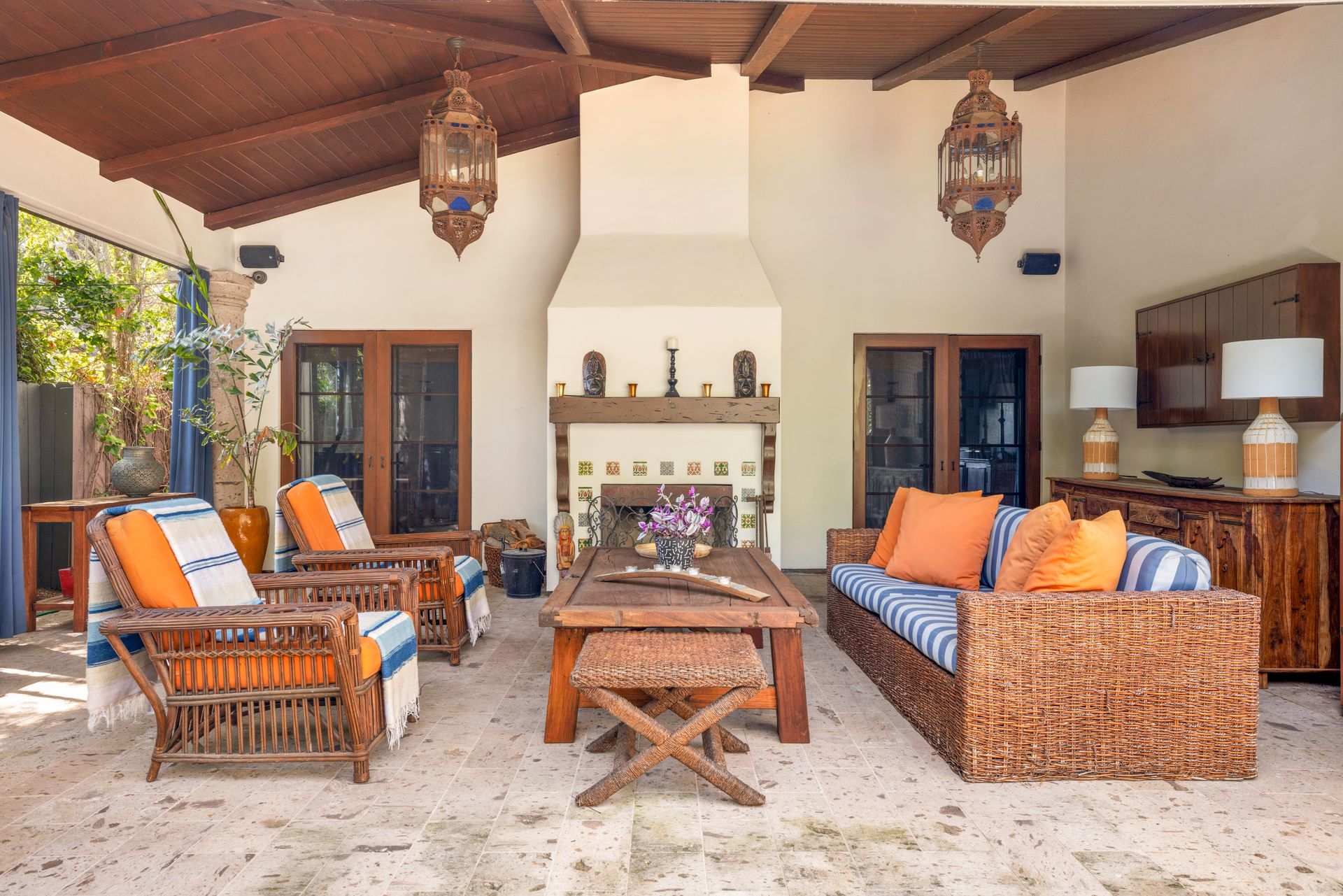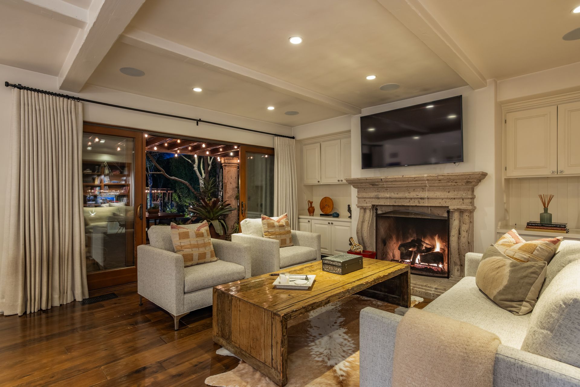 This private resort unfolds with a sophisticated pavilion with a decorative tower housing a fully appointed commercial-grade outdoor kitchen, complete with top-tier appliances, and a pergola with twinkling string lights over a large dining area, which sets the stage for al fresco meals, warmed by a gas fireplace. The centerpiece of the yard is a magnificent pool/spa, and an adjacent half-court basketball court. Completing the oasis is a sophisticated two-story guest house and office, providing refined accommodations for guests. This meticulously landscaped sanctuary with world-class amenities creates a true private paradise. The ideal blend of elegance and convenience by being moments away from the Brentwood Country Mart, charming Montana Avenue shops, Palisades Park, iconic Santa Monica Stairs, 3rd Street Promenade, and the beach that defines this sought-after coastal enclave.