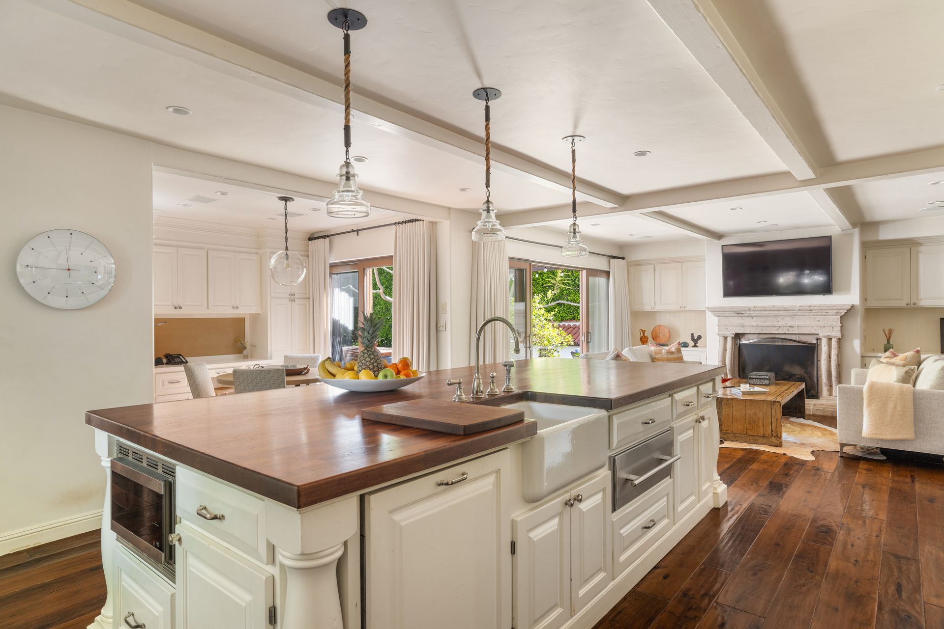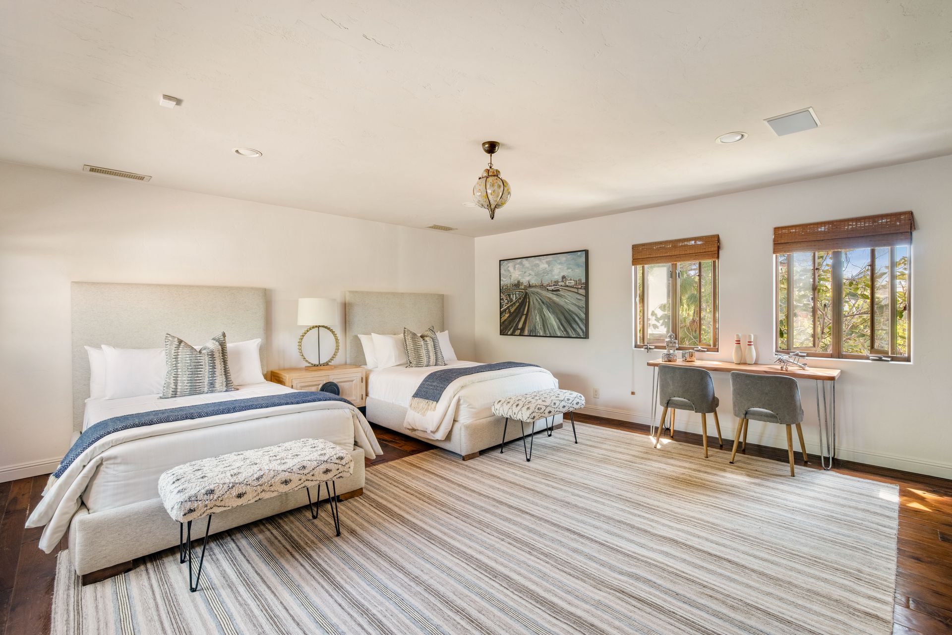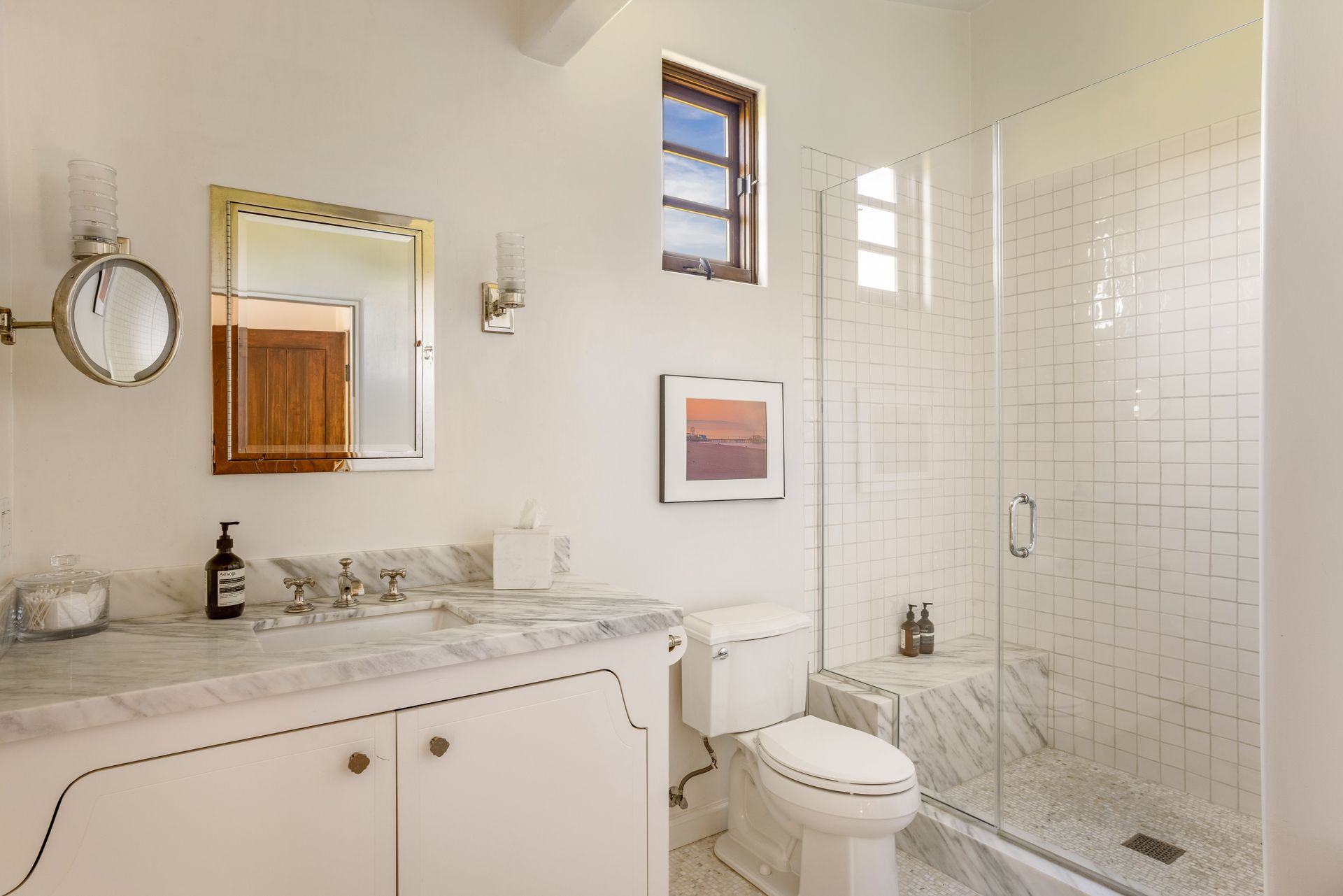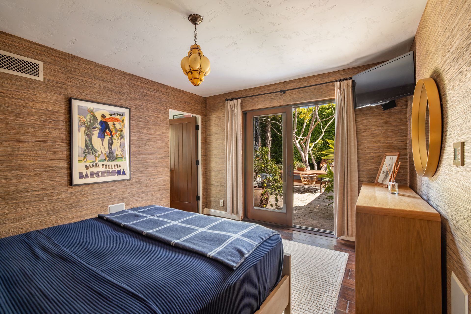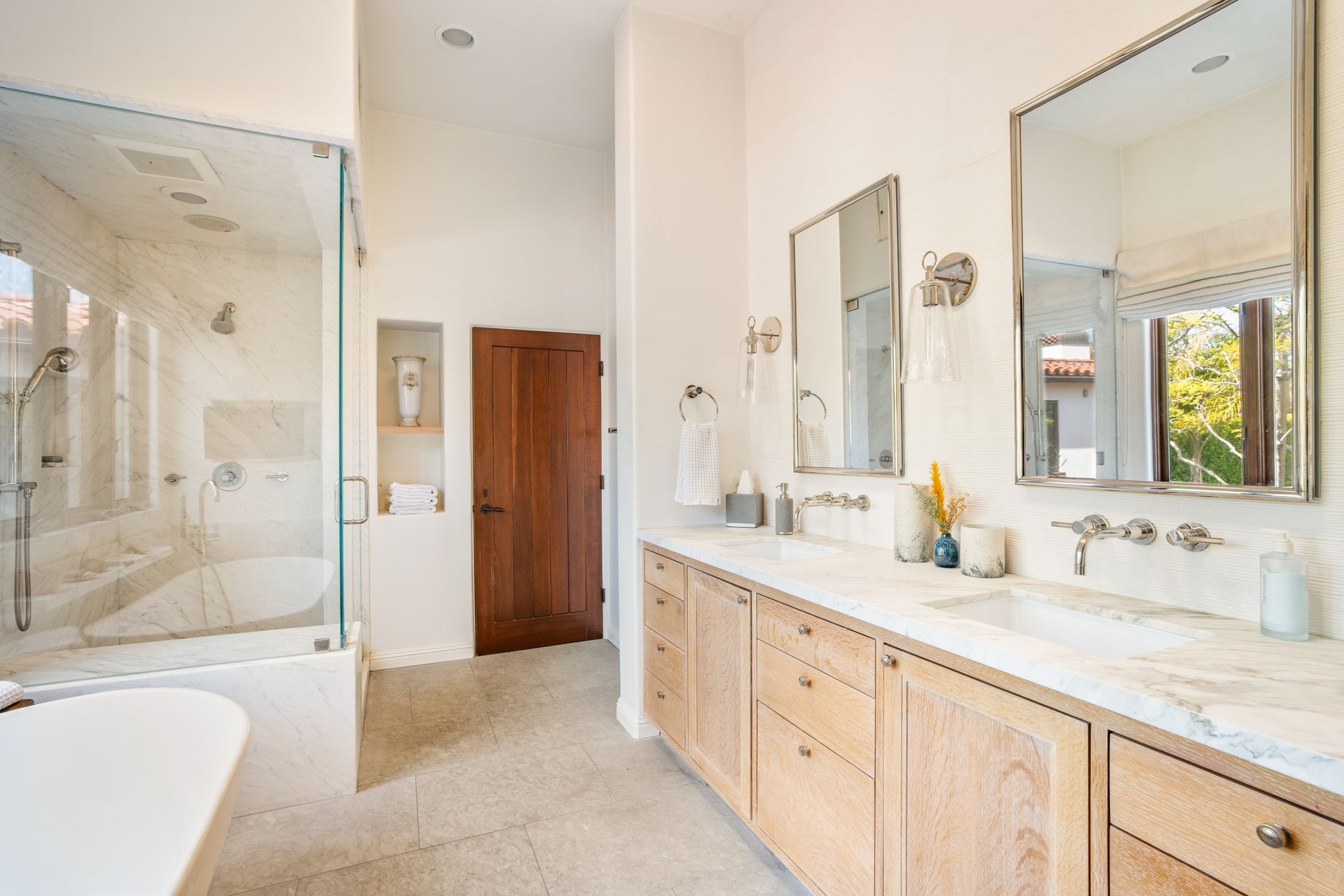 This private resort unfolds with a sophisticated pavilion with a decorative tower housing a fully appointed commercial-grade outdoor kitchen, complete with top-tier appliances, and a pergola with twinkling string lights over a large dining area, which sets the stage for al fresco meals, warmed by a gas fireplace. The centerpiece of the yard is a magnificent pool/spa, and an adjacent half-court basketball court. Completing the oasis is a sophisticated two-story guest house and office, providing refined accommodations for guests. This meticulously landscaped sanctuary with world-class amenities creates a true private paradise. The ideal blend of elegance and convenience by being moments away from the Brentwood Country Mart, charming Montana Avenue shops, Palisades Park, iconic Santa Monica Stairs, 3rd Street Promenade, and the beach that defines this sought-after coastal enclave.
