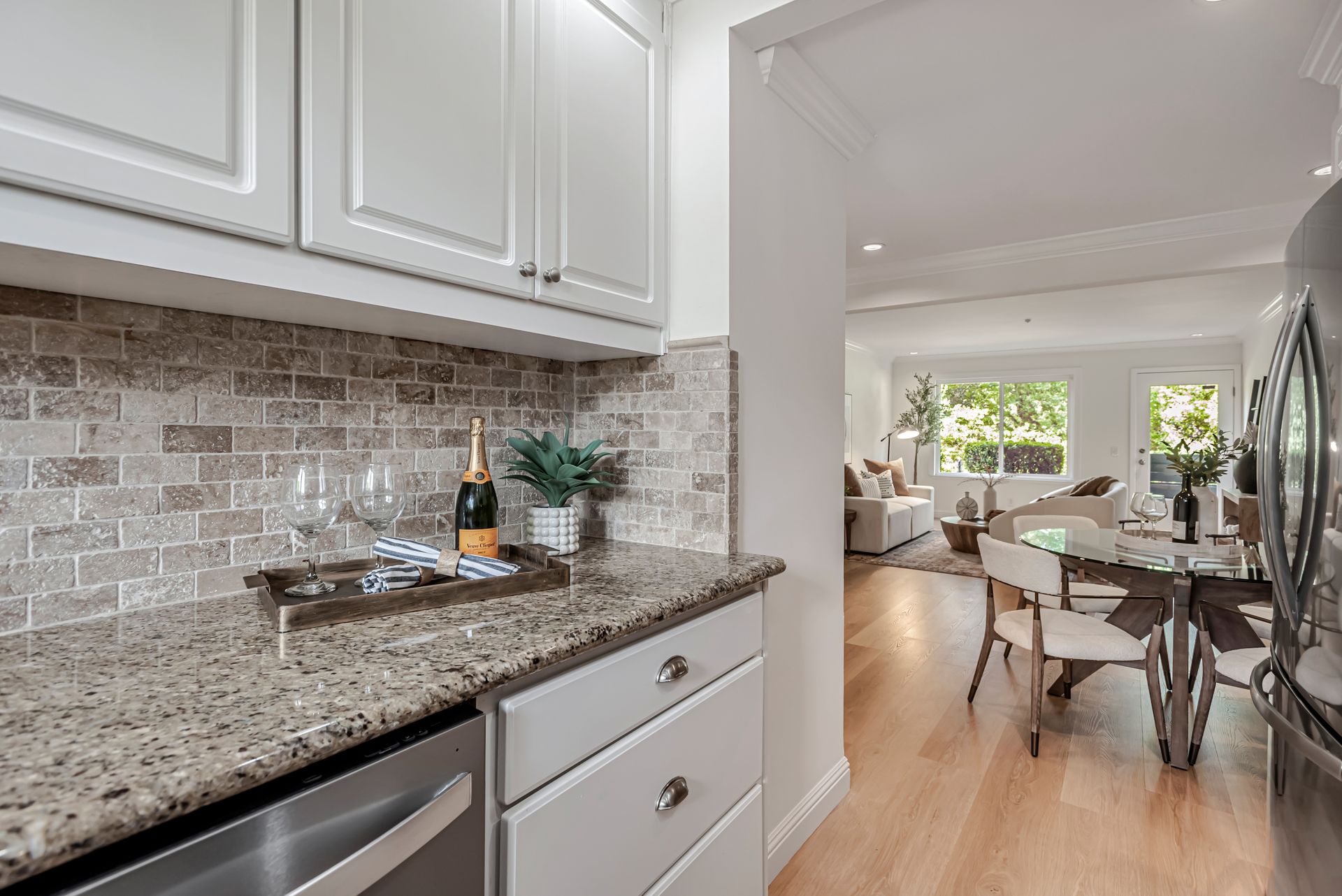 This beautifully updated ground floor unit is ideally located within the highly sought after Farm Hill Vista community. The living room, private deck, and primary bedroom overlook Emerald Hills Golf Course and open space. Offering optimal views and privacy, this peaceful, sunny unit is not to be missed. An updated kitchen with granite counters, travertine backsplash, and newly installed appliances seamlessly flows into the dining and living room with newly installed floors, recessed lights, and crown molding. The in-unit full size washer and dryer provide convenience. There is newly installed carpet in the bedrooms, an updated bathroom, plus fresh paint throughout. The HOA offers a community pool, clubhouse, community garden, and grass area for your enjoyment. Pets are welcome! Close to Canada College Athletic Center with a state of the art gym, pools, and fitness classes, and only a short drive to downtown Redwood City featuring year-round community events, coveted restaurants, and shopping. Stulsaft Park is also nearby with wooded trails, playground, summer water feature, off-leash dog park, and picnic area. Served by highly acclaimed Roy Cloud School and providing easy commute options from 280 and 101, this remarkable condo is a 10!