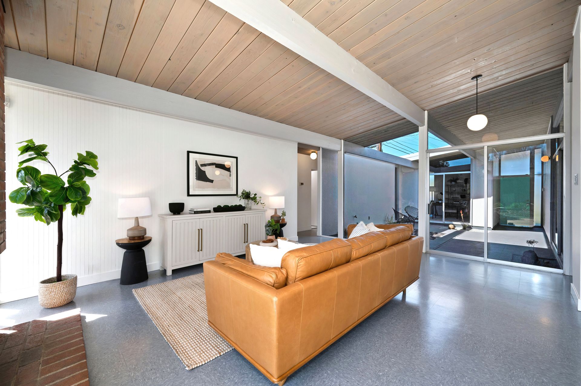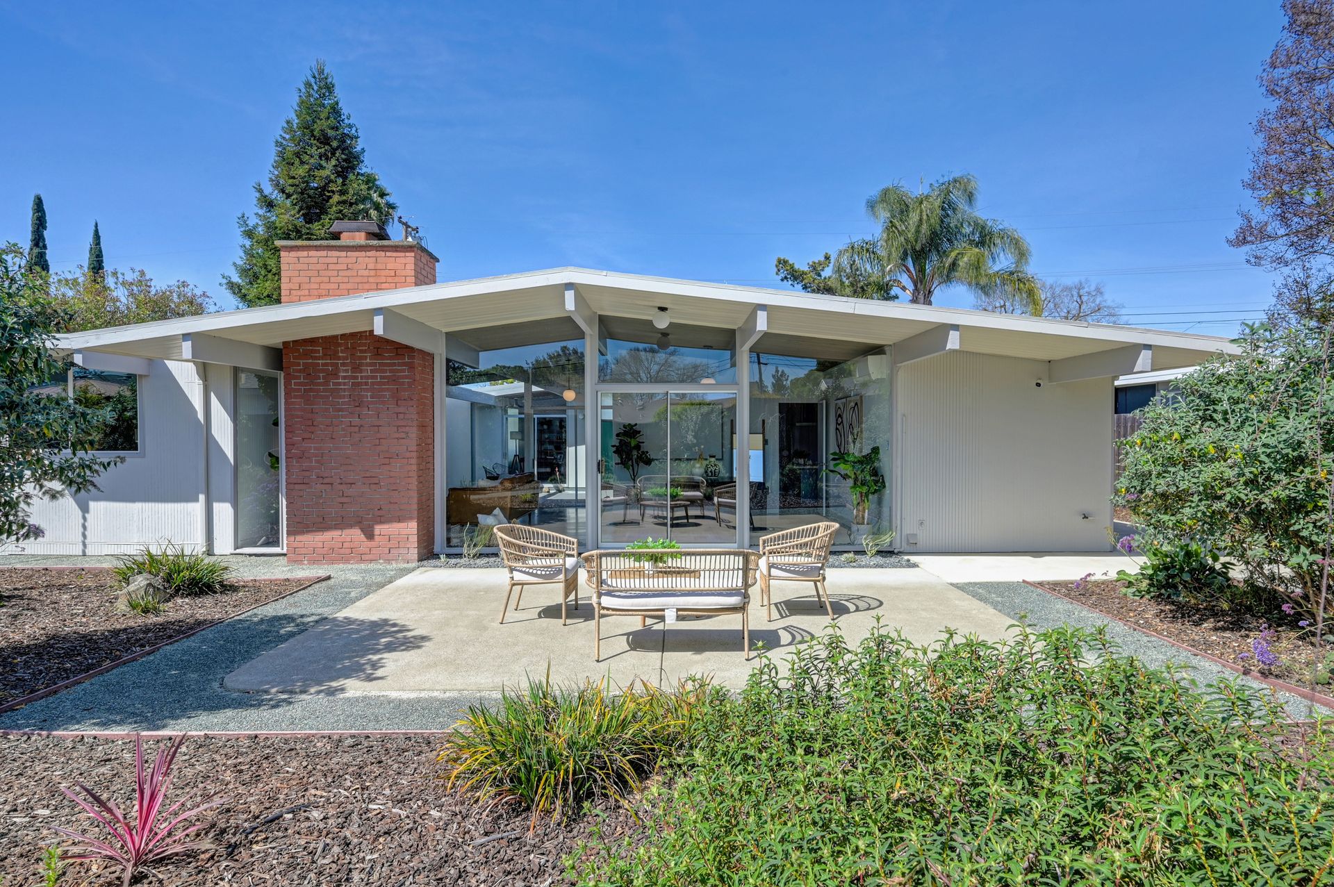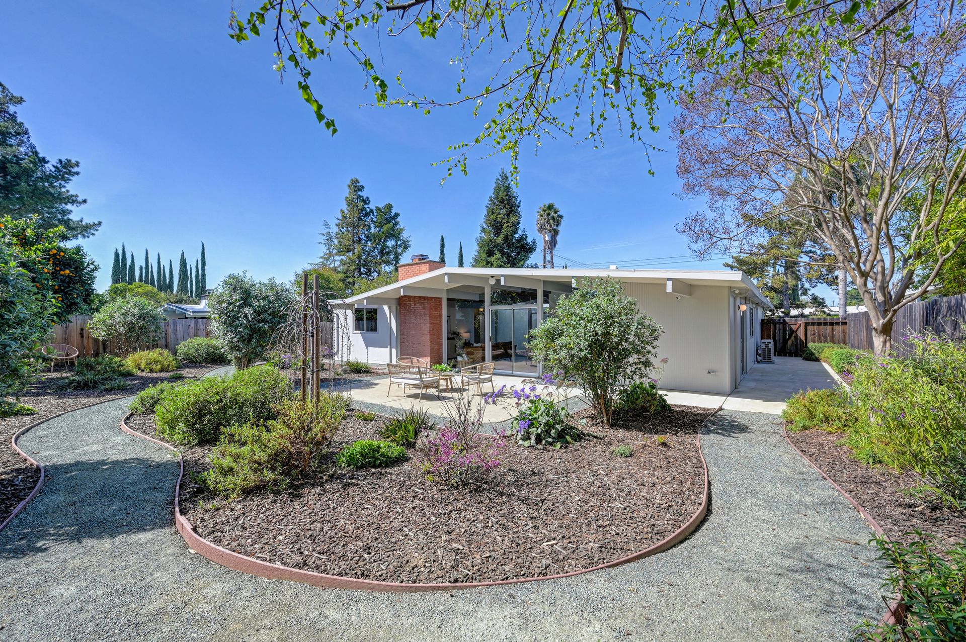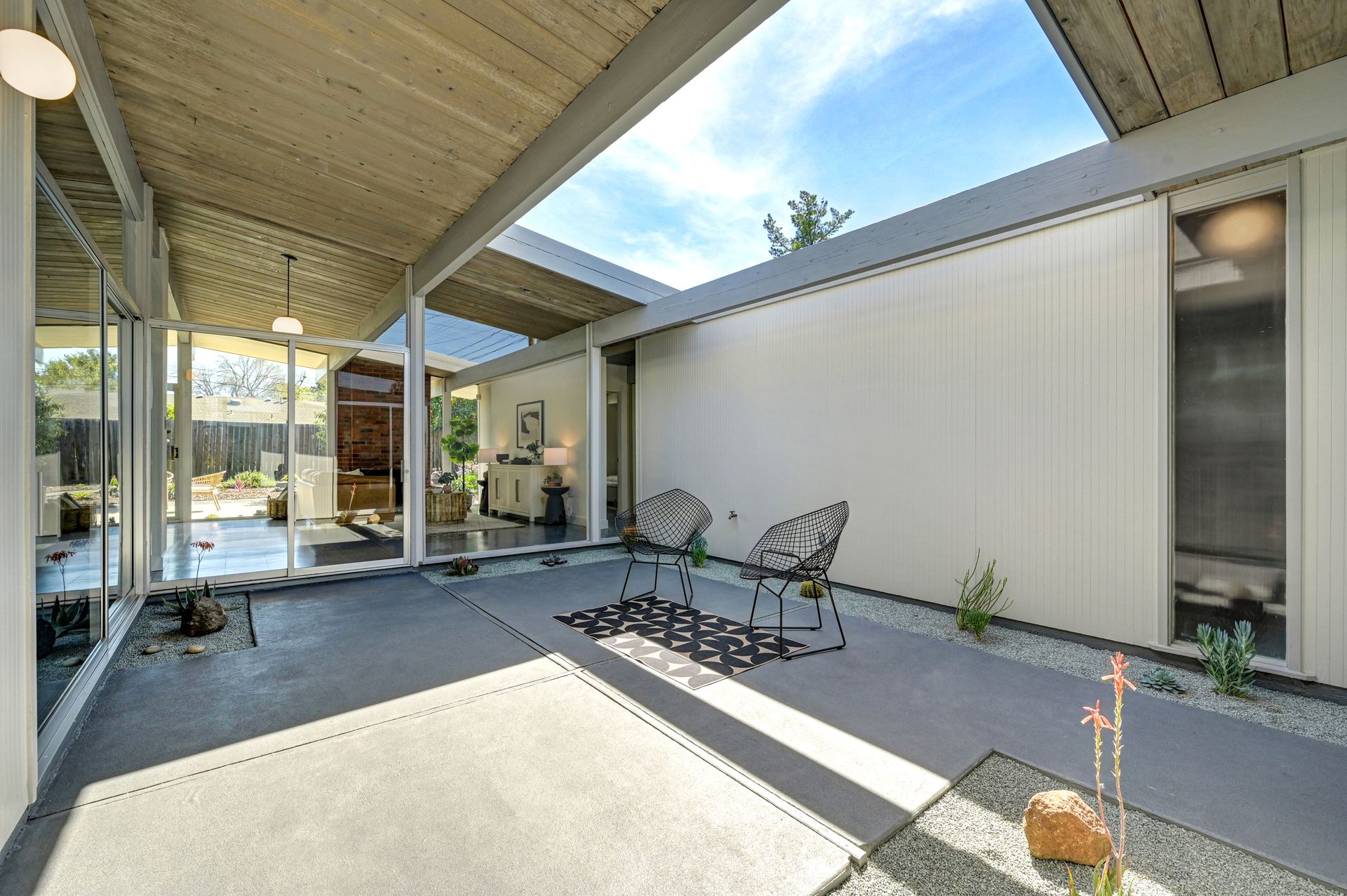 Beautiful iconic Eichler located in charming Rancho de los Santos, thoughtfully refreshed with authentic mid-century details and modern upgrades. Enter through the coveted open-air atrium, featuring a tranquil Zen succulent garden that immediately sets the tone for the home’s timeless design. Inside, enjoy the seamless indoor-outdoor living and classic post-and-beam architecture that Eichlers are renowned for. Lovingly maintained by a family for decades, this mid-century gem offers versatility with four bedrooms PLUS a bonus laundry/office space. Period-correct features include pristine unpainted tongue-and-groove ceilings, restored VCT flooring, globe lighting and genuine reproduction Eichler Numbers. Best of all, enjoy luxurious radiant floor heating powered by a newer radiant boiler for ultimate comfort. Modern upgrades include new AC/heating mini-splits, electrical panel, quartz kitchen countertop, stainless steel appliances, bathrooms, epoxy garage flooring and more. Rest easy with smart-home features like the A3 doorbell & camera system and a Hydrawise automatic drip irrigation. Ideally located near BART, major freeways and all of life's necessities, this move-in-ready Eichler is ready to welcome its next owners and the many lovely memories yet to be made.