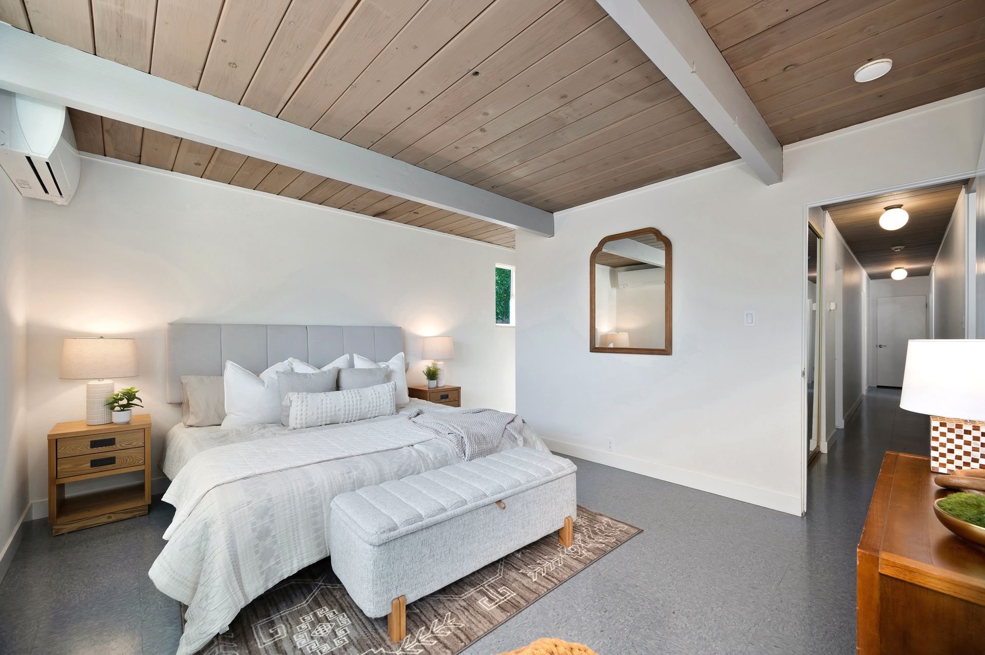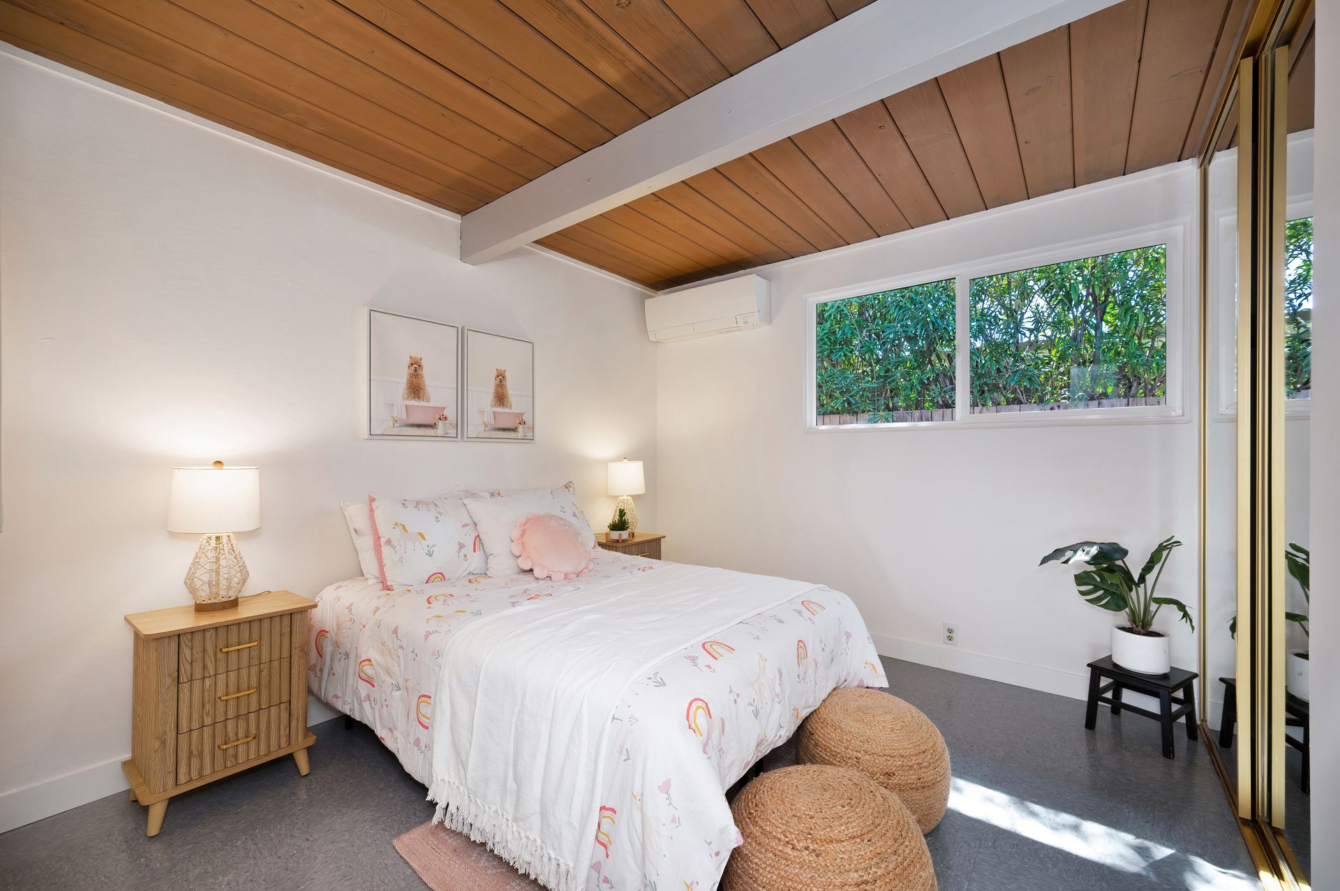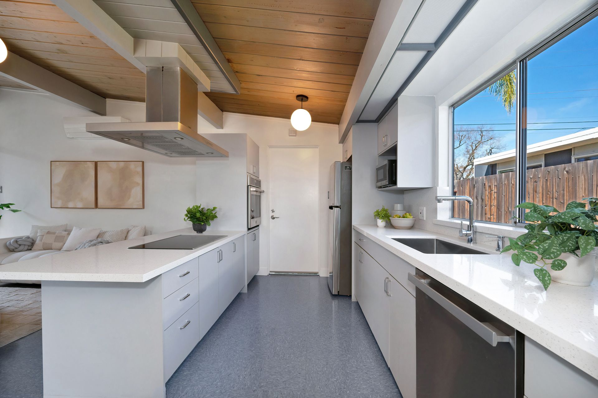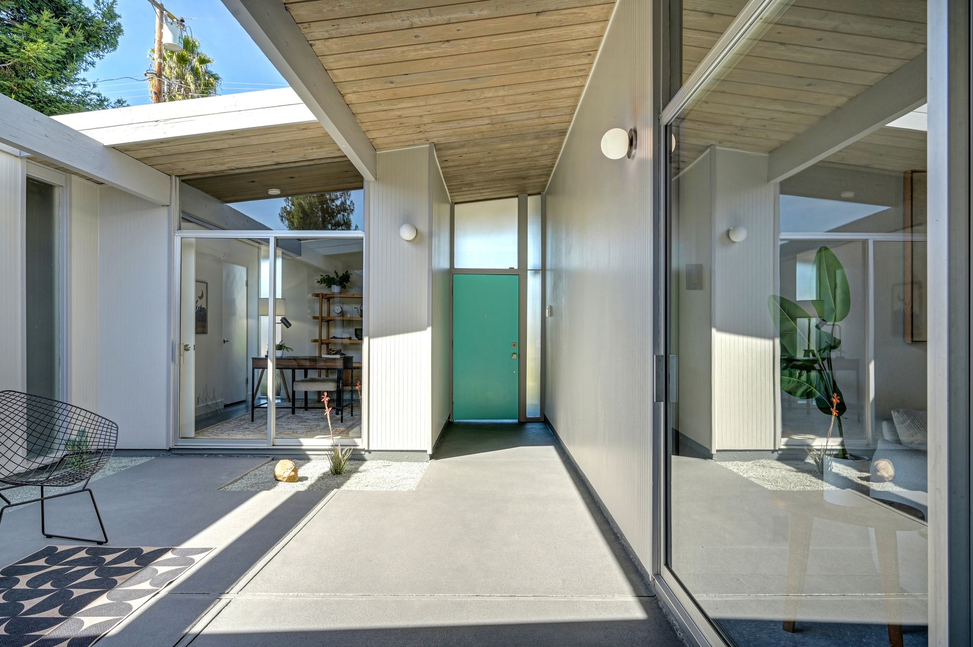 Beautiful iconic Eichler located in charming Rancho de los Santos, thoughtfully refreshed with authentic mid-century details and modern upgrades. Enter through the coveted open-air atrium, featuring a tranquil Zen succulent garden that immediately sets the tone for the home’s timeless design. Inside, enjoy the seamless indoor-outdoor living and classic post-and-beam architecture that Eichlers are renowned for. Lovingly maintained by a family for decades, this mid-century gem offers versatility with four bedrooms PLUS a bonus laundry/office space. Period-correct features include pristine unpainted tongue-and-groove ceilings, restored VCT flooring, globe lighting and genuine reproduction Eichler Numbers. Best of all, enjoy luxurious radiant floor heating powered by a newer radiant boiler for ultimate comfort. Modern upgrades include new AC/heating mini-splits, electrical panel, quartz kitchen countertop, stainless steel appliances, bathrooms, epoxy garage flooring and more. Rest easy with smart-home features like the A3 doorbell & camera system and a Hydrawise automatic drip irrigation. Ideally located near BART, major freeways and all of life's necessities, this move-in-ready Eichler is ready to welcome its next owners and the many lovely memories yet to be made.