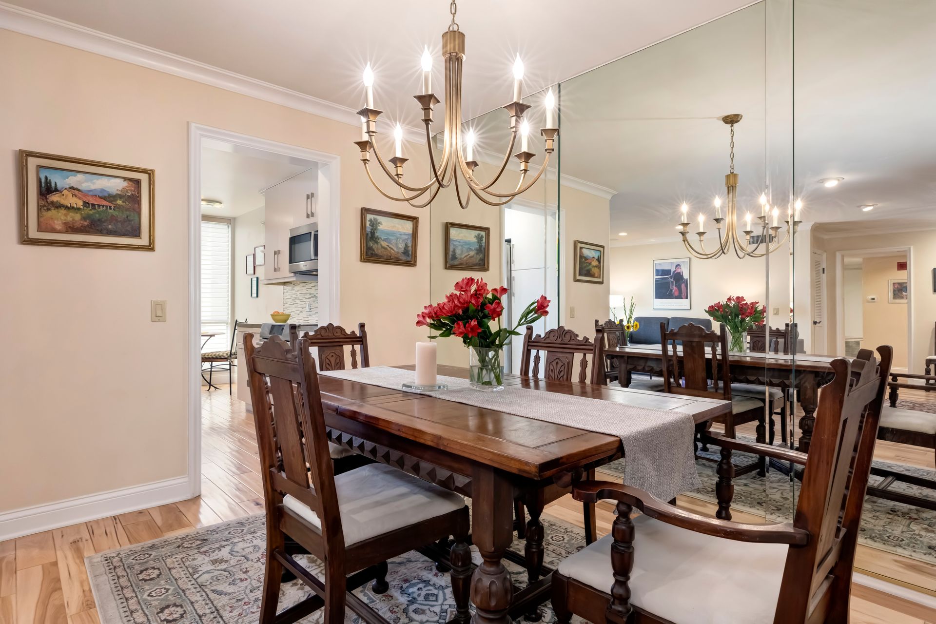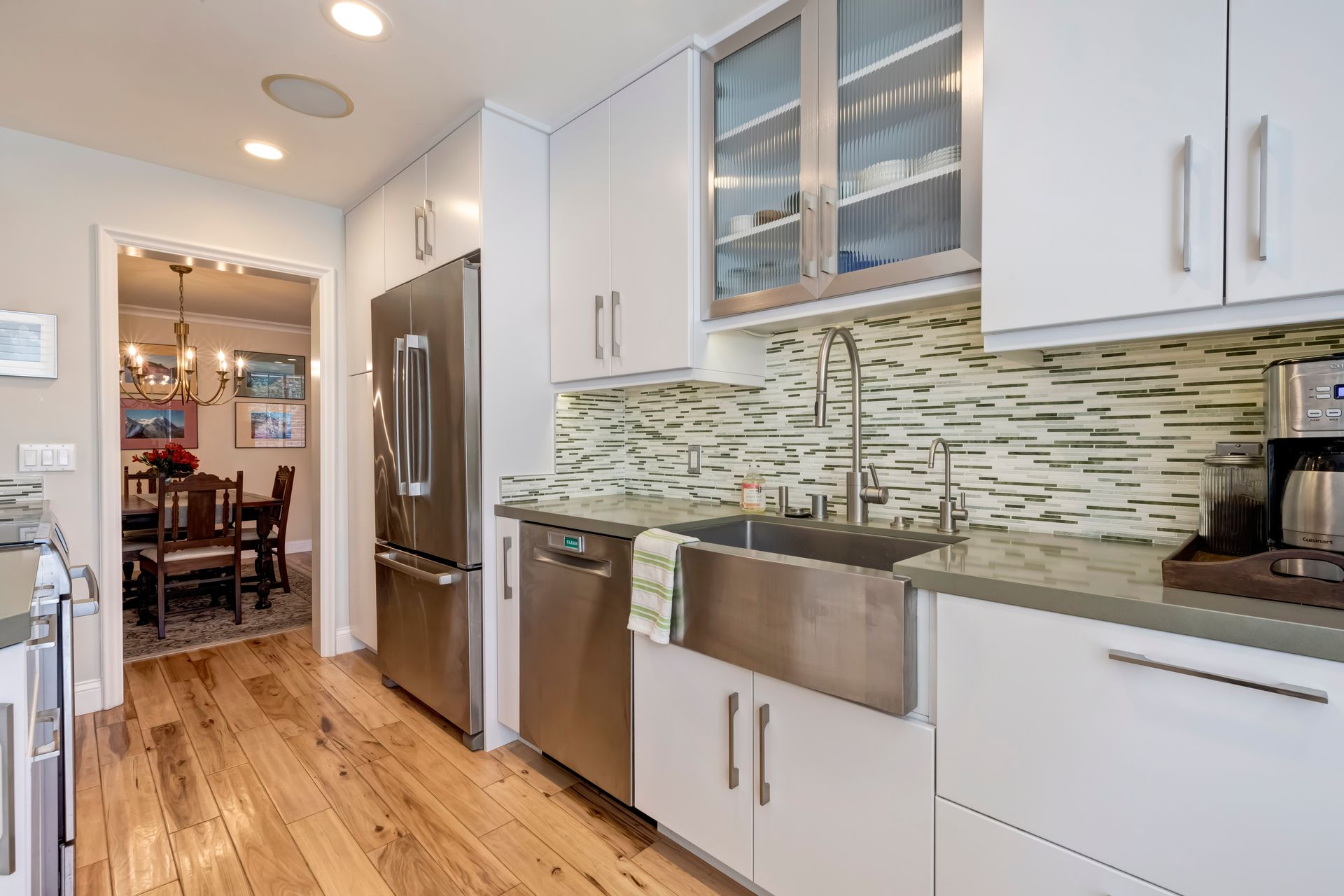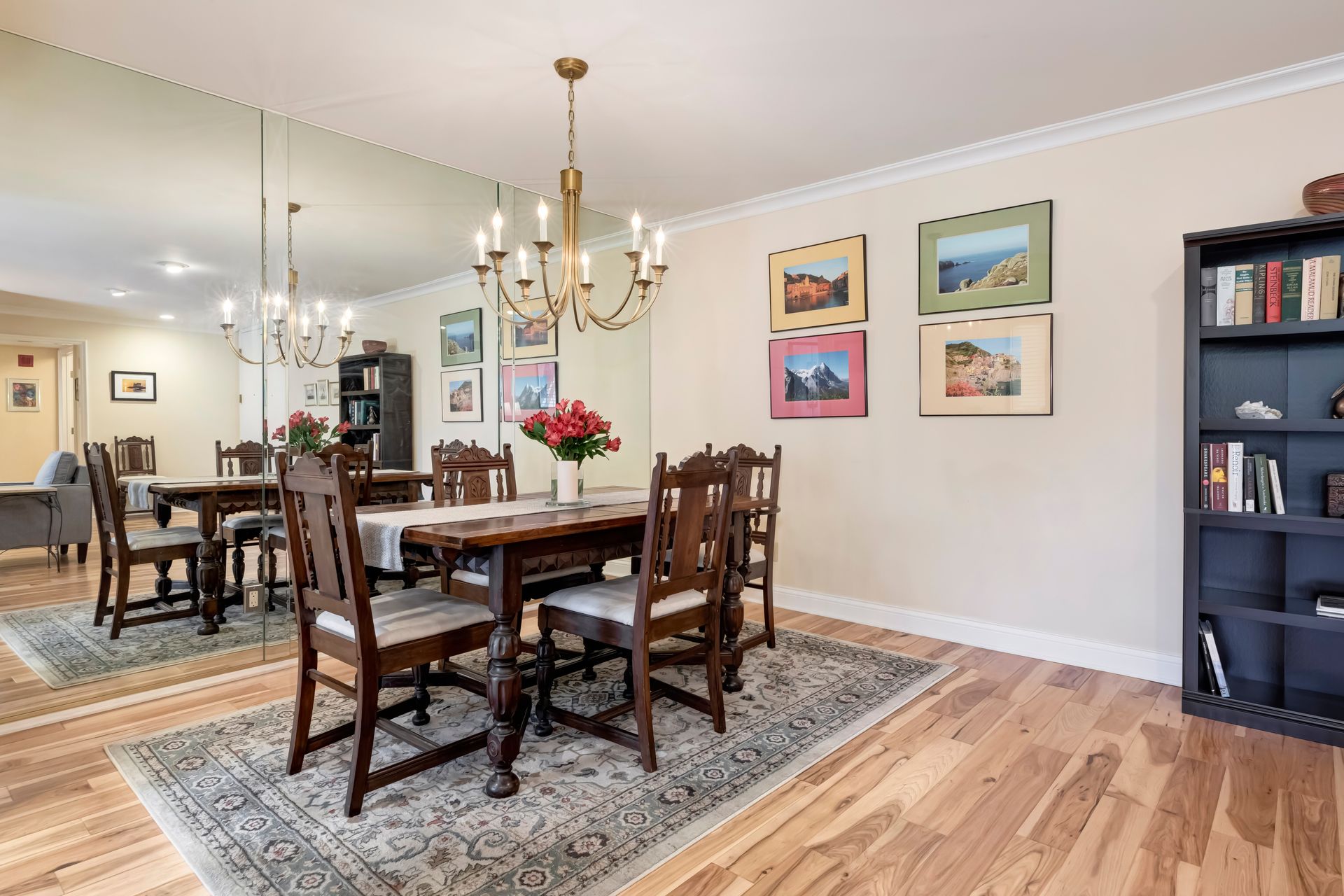 The formal dining area is ideally positioned next to a beautifully upgraded kitchen that boasts custom cabinetry, exquisite quartz countertops and top-of-the-line Bosch stainless steel appliances, including an induction range. The charming breakfast nook, graced by a generous window, basks in natural light—making it the ideal spot for savoring your morning coffee.