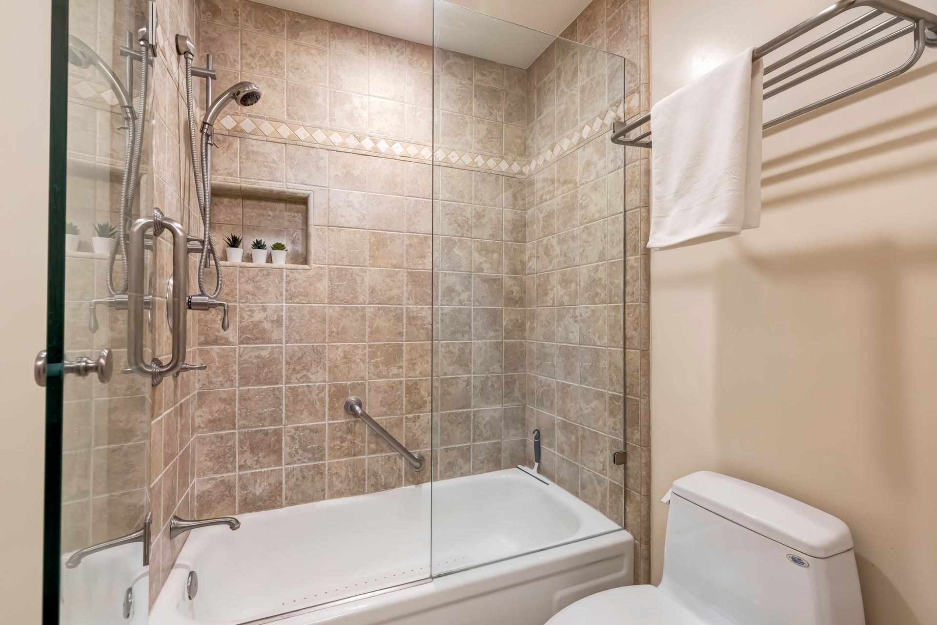 The primary suite, your private sanctuary, features multiple closets and a spa-style bathroom for ultimate relaxation. The inviting second bedroom with custom built-in cabinetry offers comfort and practicality.