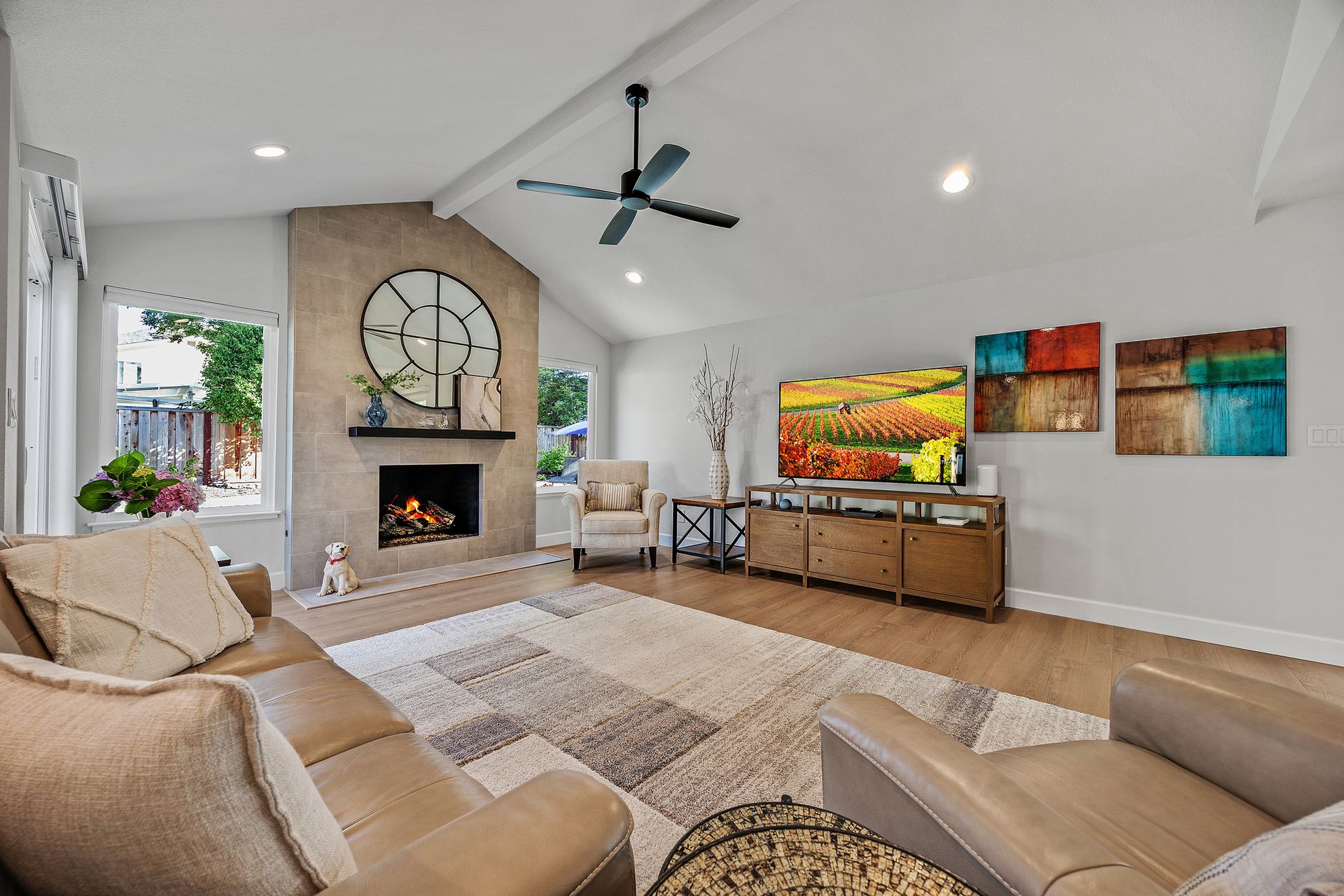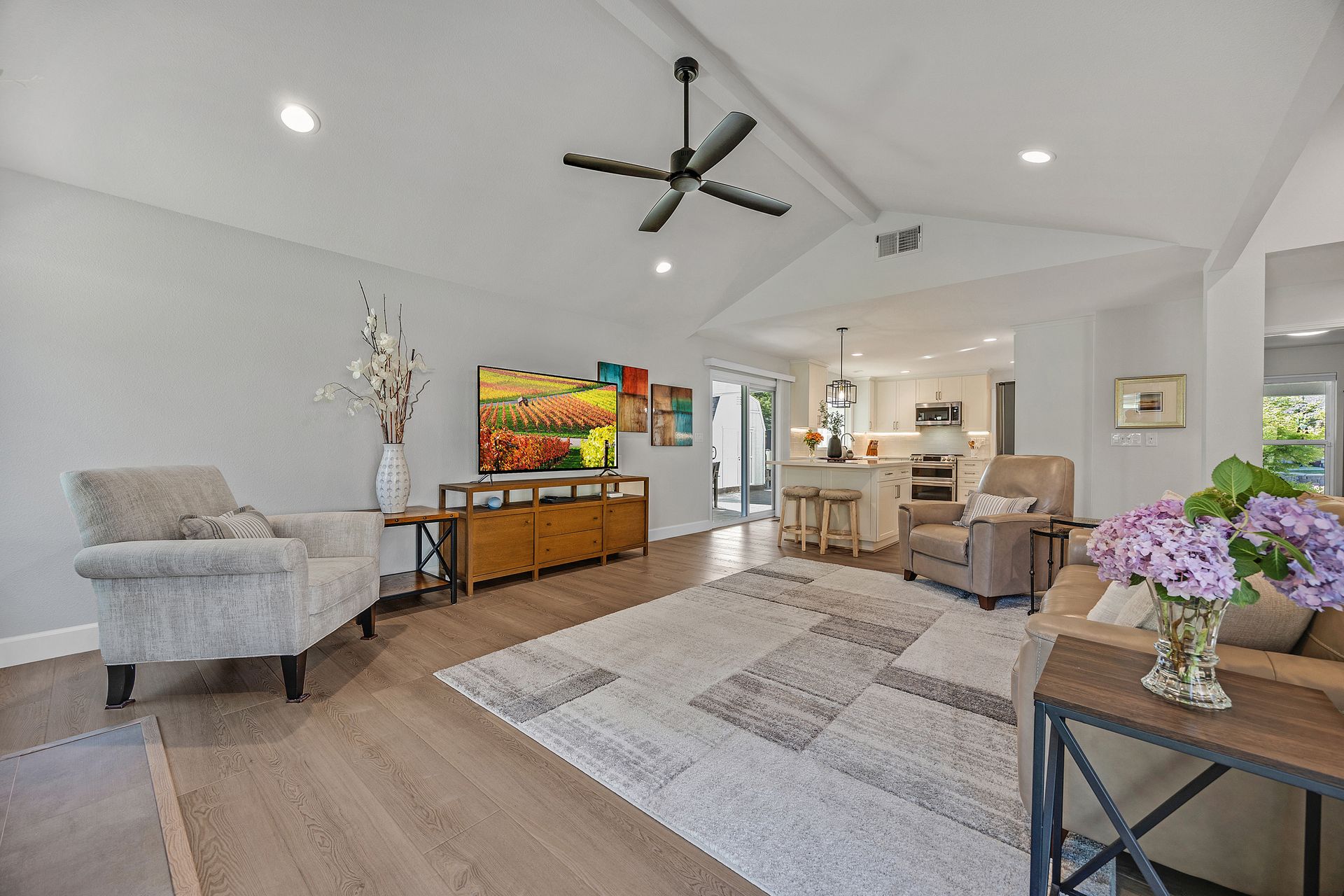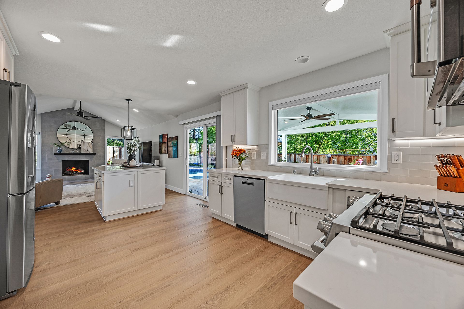Welcome home to this gorgeous, updated single-story rancher in the coveted Easley Estates neighborhood. This four-bedroom, two and one-half bath, approximately 2062 square foot home has a generously sized lot with RV parking and a resort-style backyard. Inside, enjoy a versatile floor plan that is tastefully updated throughout. The open-concept kitchen features an island that flows into the family room with a gas-burning fireplace. It is newly equipped with quartz countertops, Café stainless appliances, a farmhouse sink, and a pantry with pull-out shelving. The formal dining area provides an elegant entertaining space to enjoy a meal together. The laundry is conveniently located adjacent to the kitchen in the butler pantry area that has extra storage and a beverage refrigerator.