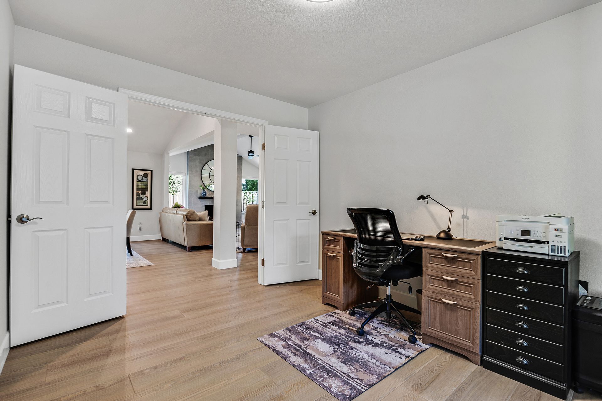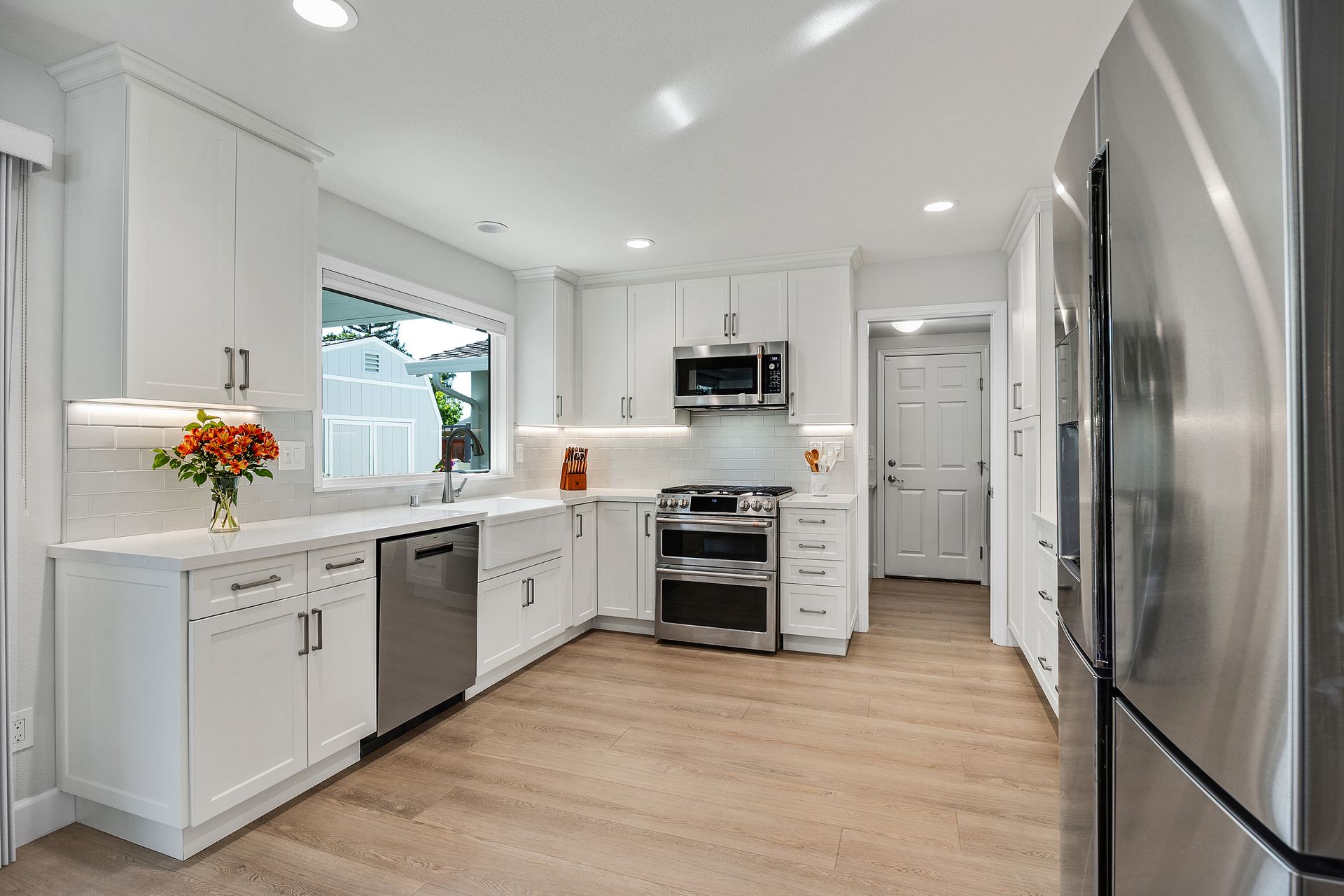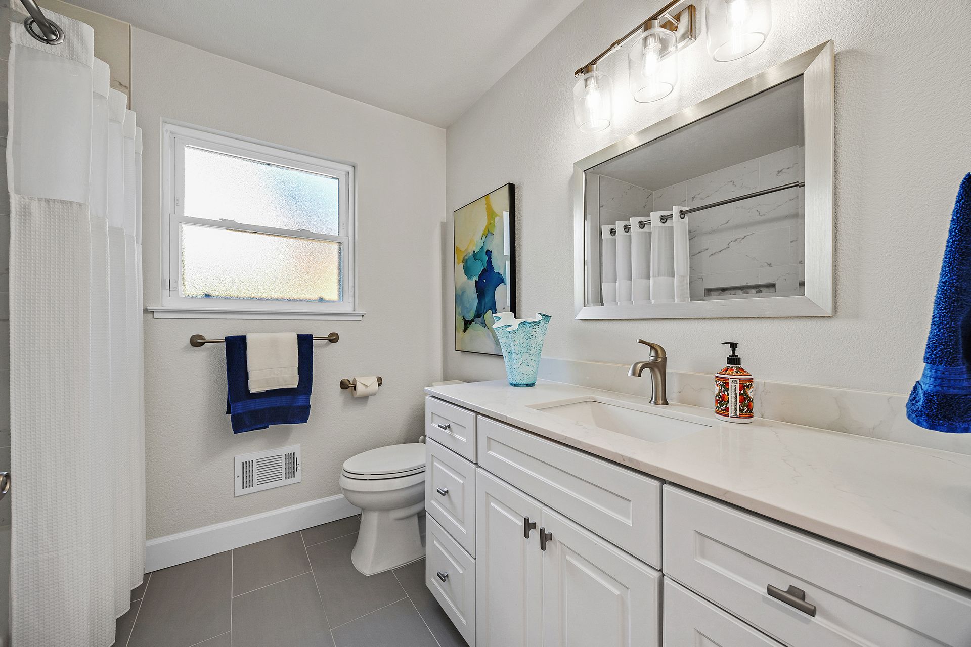 Welcome home to this gorgeous, updated single-story rancher in the coveted Easley Estates neighborhood. This four-bedroom, two and one-half bath, approximately 2062 square foot home has a generously sized lot with RV parking and a resort-style backyard. Inside, enjoy a versatile floor plan that is tastefully updated throughout. The open-concept kitchen features an island that flows into the family room with a gas-burning fireplace. It is newly equipped with quartz countertops, Café stainless appliances, a farmhouse sink, and a pantry with pull-out shelving. The formal dining area provides an elegant entertaining space to enjoy a meal together. The laundry is conveniently located adjacent to the kitchen in the butler pantry area that has extra storage and a beverage refrigerator.