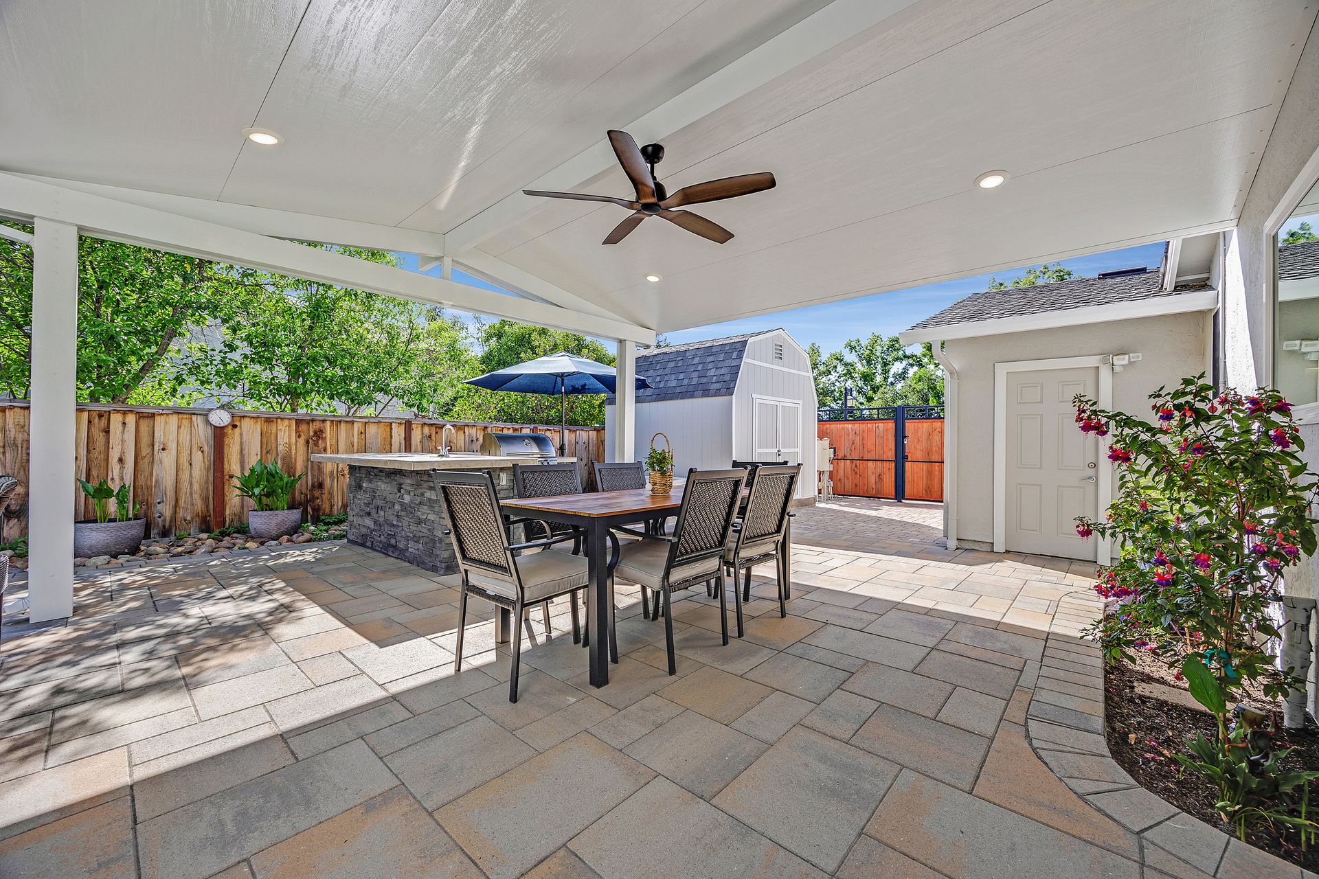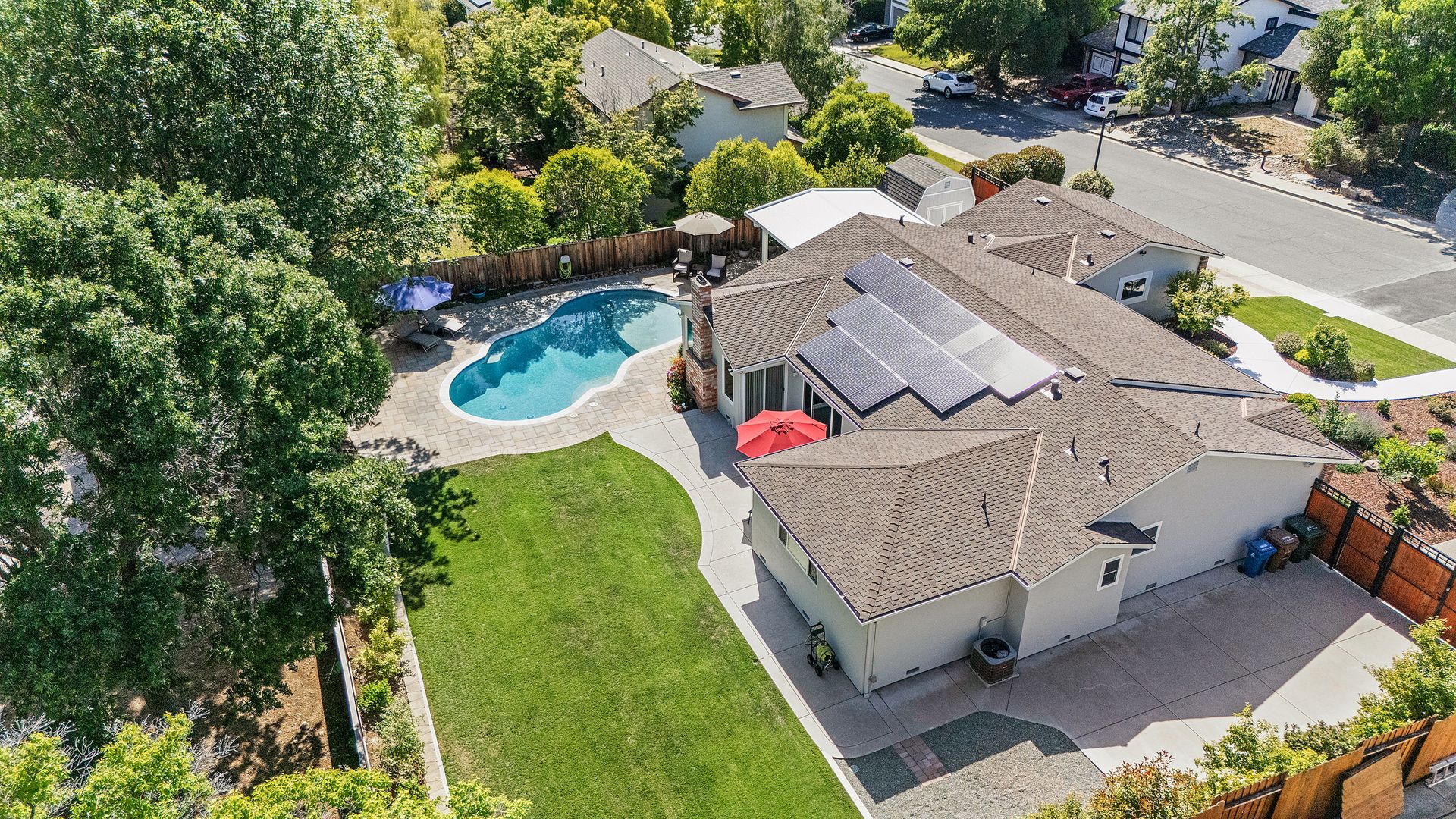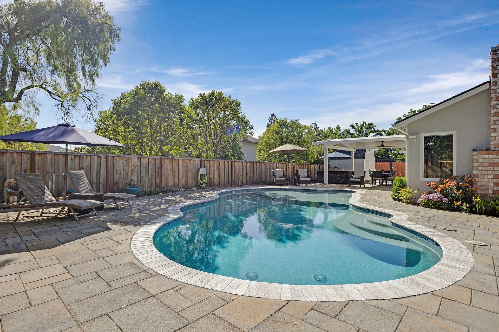 Unwind at the end of the day in the spacious primary suite with views of the backyard or relax in the spa-like soaking tub. The dream yard is ideal for outdoor living and entertaining. Cool off in the sparkling pool with a Cabo shelf surrounded by beautiful views of Mt. Diablo. The built-in BBQ area, complete with a grill, burner, sink, and a covered patio area, makes hosting cookouts a breeze. There is also a huge lawn area, citrus trees, and RV parking for your recreational vehicle or boat. Keep your energy costs low with owned solar. Other recent updates include: LVP Flooring, interior and exterior paint, remodeled pool with Pebble Finish, built-in garage cabinets and epoxy flooring, upgraded electrical panel, updated bathrooms, recessed lighting, front yard landscaping, and newer fencing. This home is nestled near the base of Mt Diablo and close to historical downtown Clayton, schools, parks, restaurants, and hiking/biking trails.