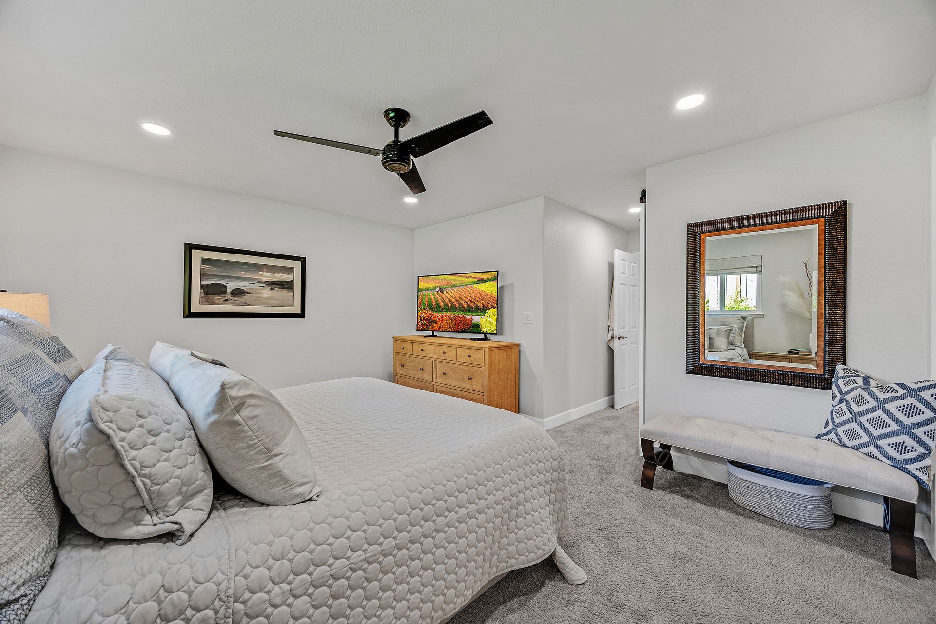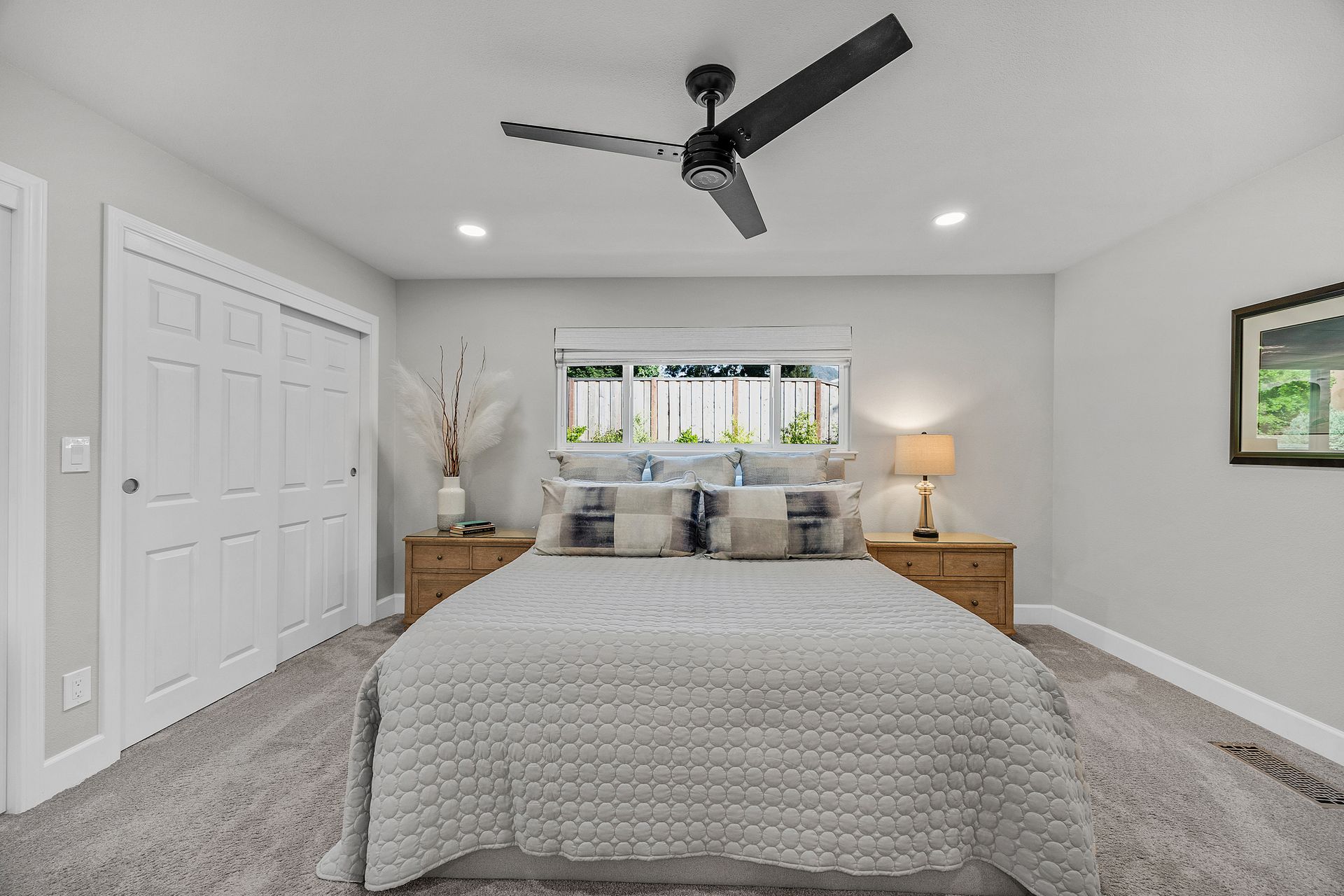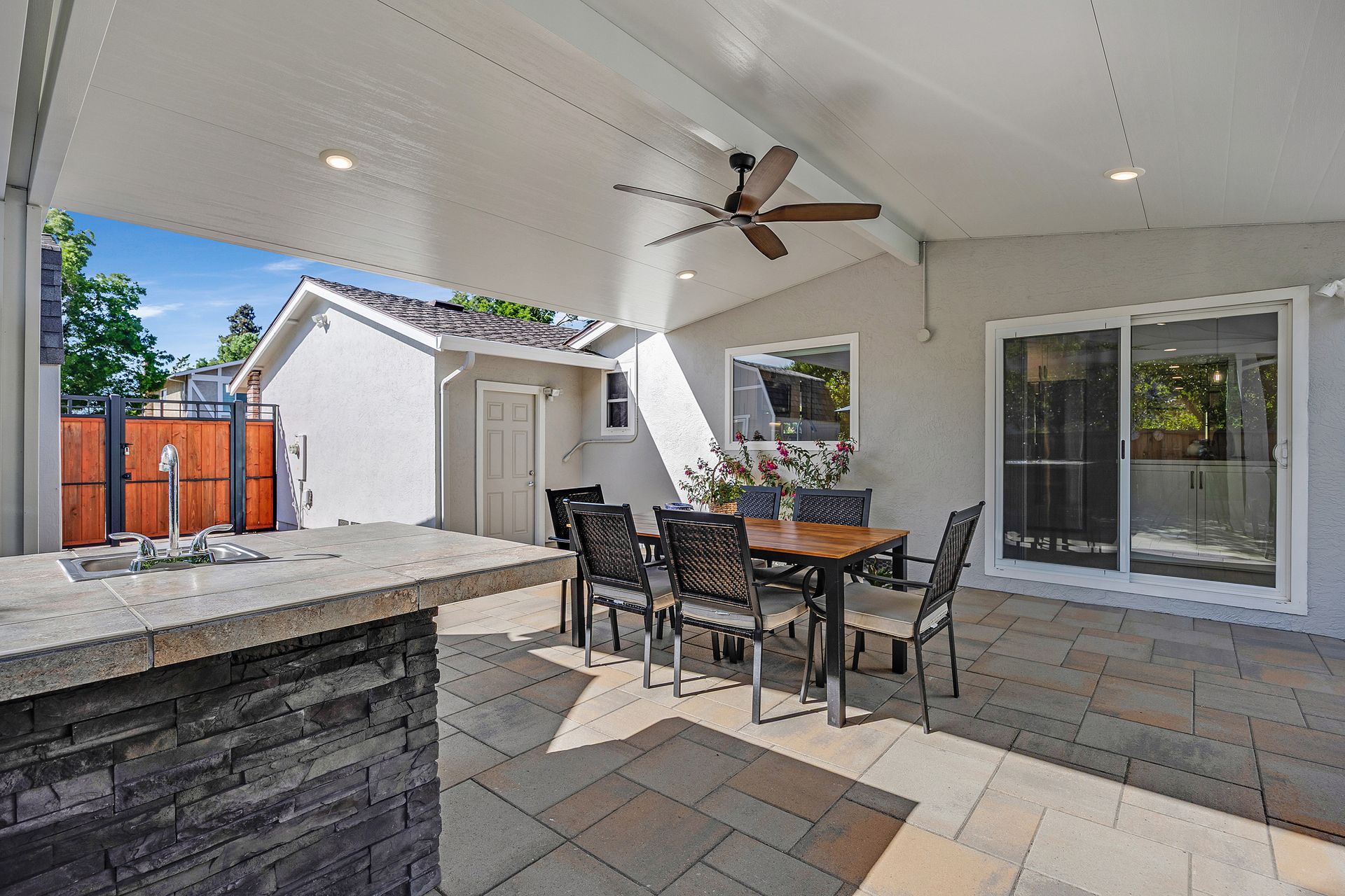 Unwind at the end of the day in the spacious primary suite with views of the backyard or relax in the spa-like soaking tub. The dream yard is ideal for outdoor living and entertaining. Cool off in the sparkling pool with a Cabo shelf surrounded by beautiful views of Mt. Diablo. The built-in BBQ area, complete with a grill, burner, sink, and a covered patio area, makes hosting cookouts a breeze. There is also a huge lawn area, citrus trees, and RV parking for your recreational vehicle or boat. Keep your energy costs low with owned solar. Other recent updates include: LVP Flooring, interior and exterior paint, remodeled pool with Pebble Finish, built-in garage cabinets and epoxy flooring, upgraded electrical panel, updated bathrooms, recessed lighting, front yard landscaping, and newer fencing. This home is nestled near the base of Mt Diablo and close to historical downtown Clayton, schools, parks, restaurants, and hiking/biking trails.