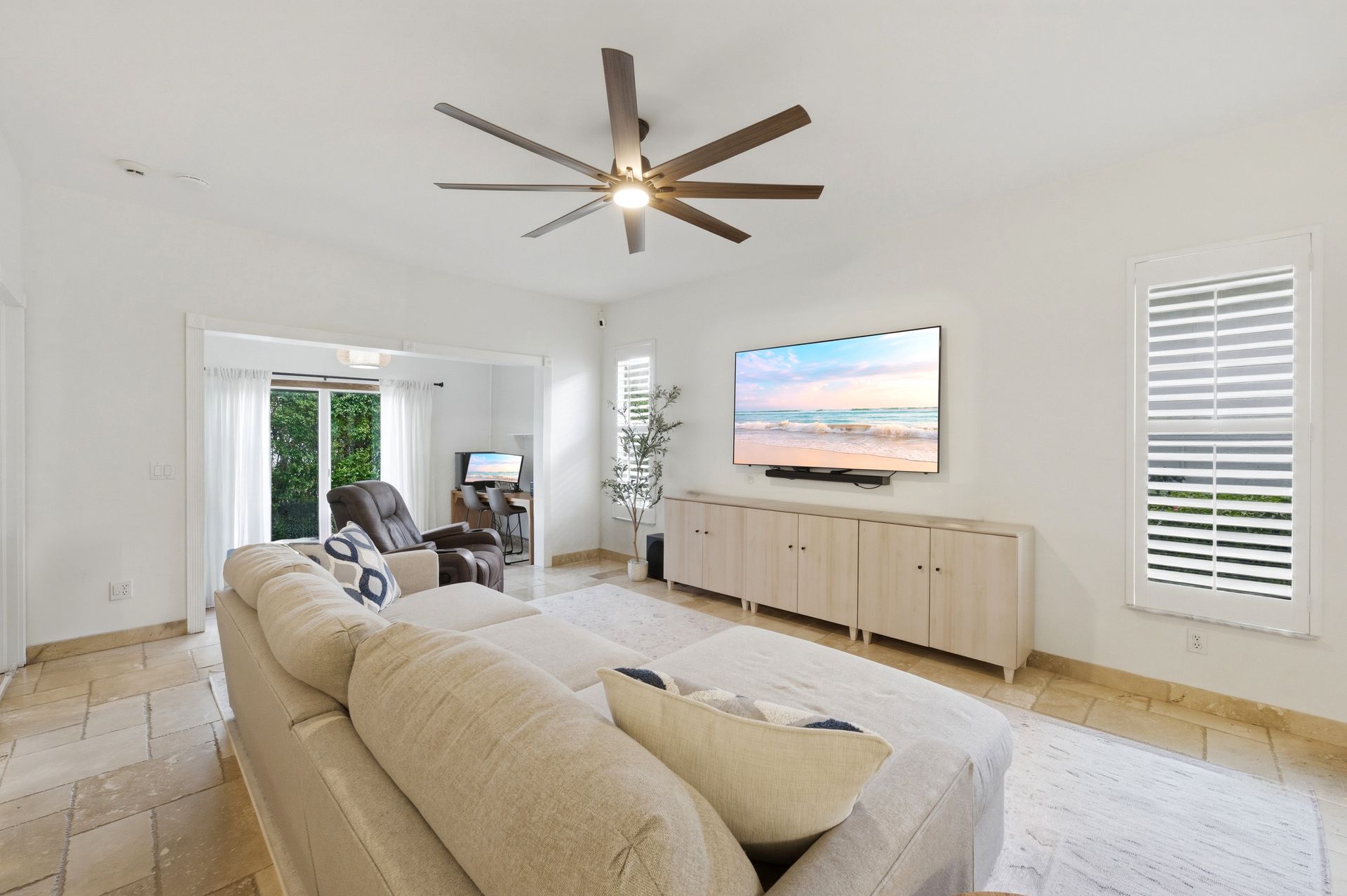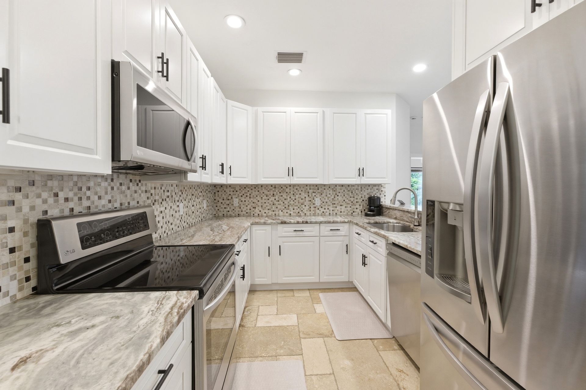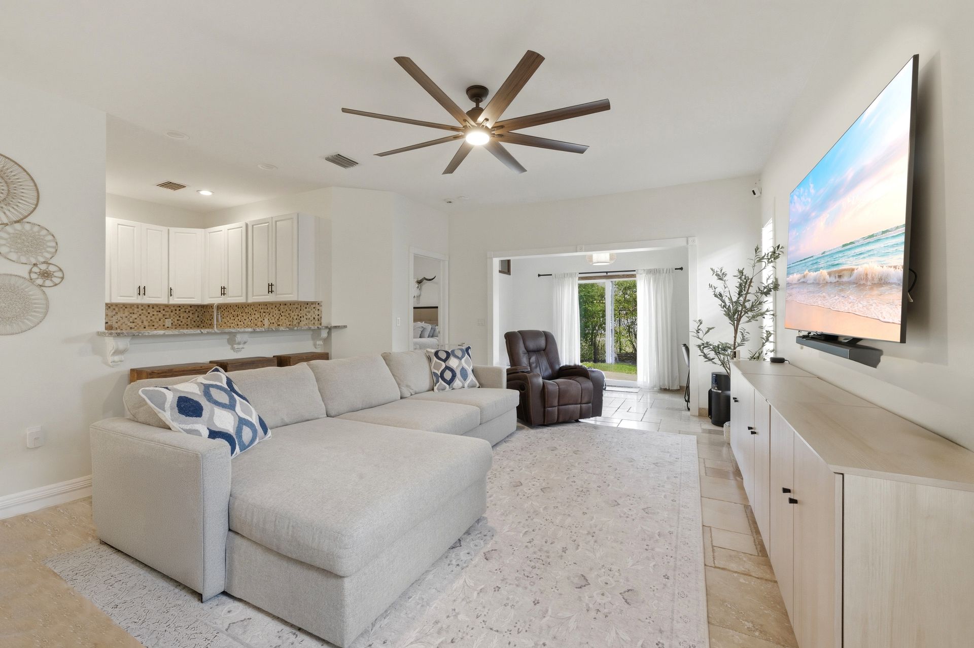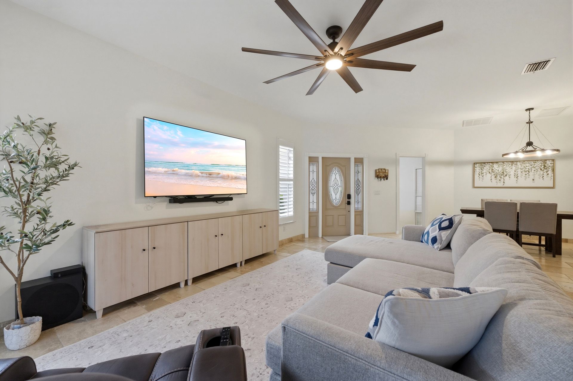 Welcome Home! This property offers approximately 1,639 square feet of living space with three bedrooms, two bathrooms, an office/sunroom area, and an oversized 2-car garage. The inviting entryway leads to a spacious layout filled with abundant natural light. The interior features tiled flooring, modern lighting fixtures, plantation shutters and ample cabinetry in the kitchen, which is equipped with newer stainless steel appliances, white soft-close raised panel cabinets and granite countertops, giving the cooking enthusiast ample workspace. Throughout the home, modern ceiling fans and natural lighting create a comfortable living environment.