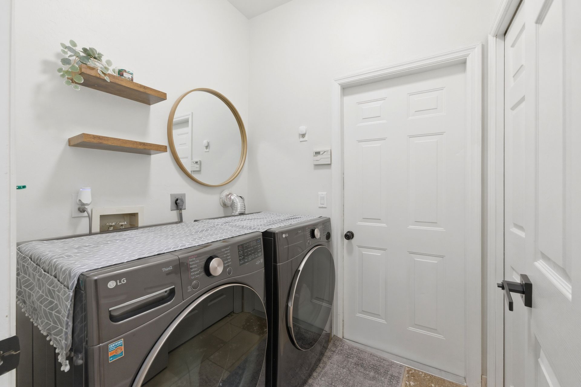 The home also features new washer and dryer, newer a/c, smart tech garage door, new interior and exterior paint, new hot water heater and a 7-year-old roof.