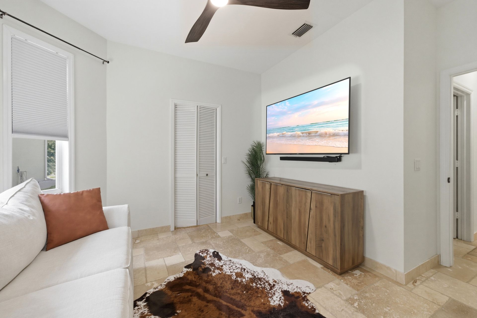 The primary bedroom provides a walk-in closet and generous space, while the additional bedrooms are also well-sized. The bathrooms showcase modern design elements. The laundry room and office/sunroom offer versatile use of the home's square footage.