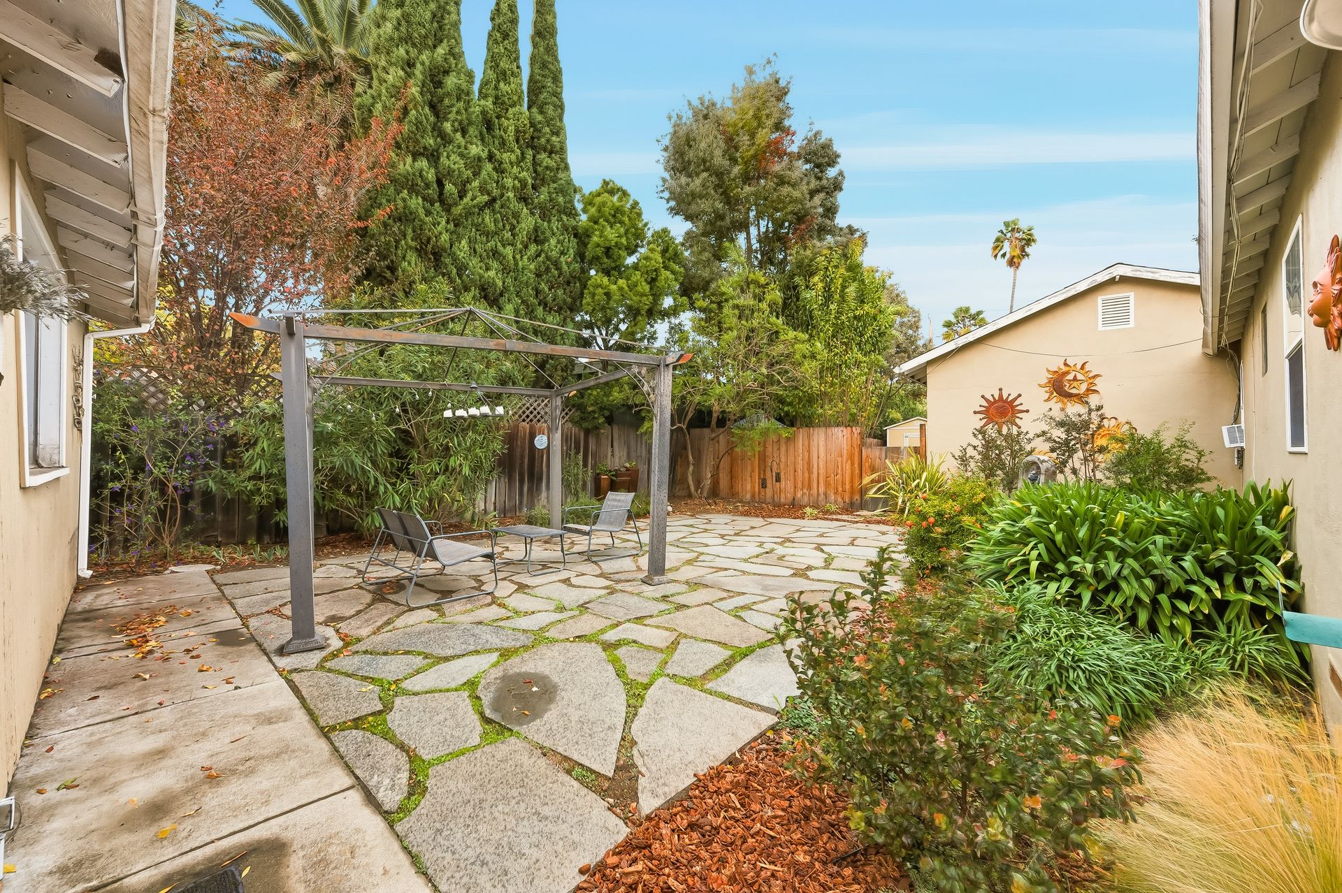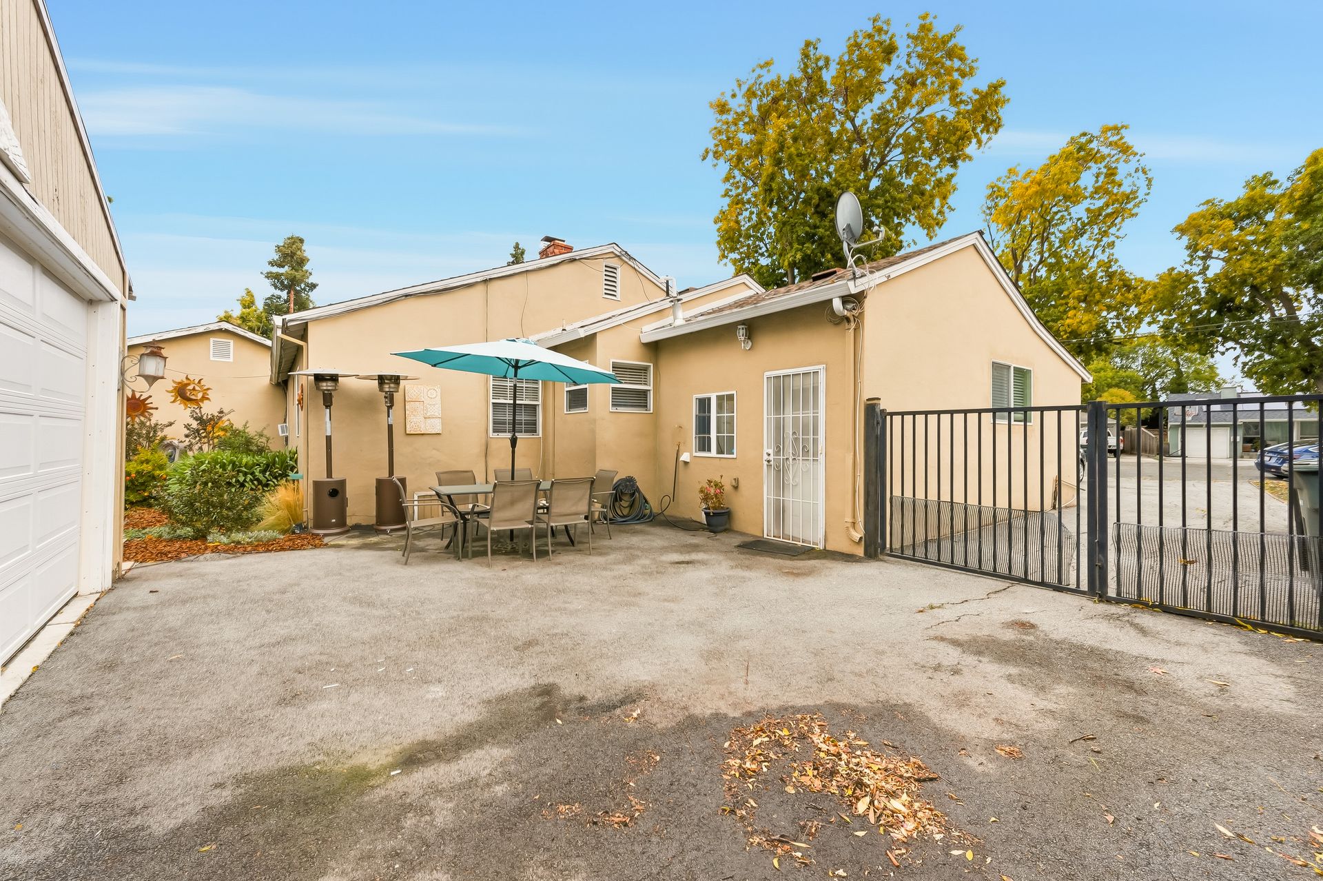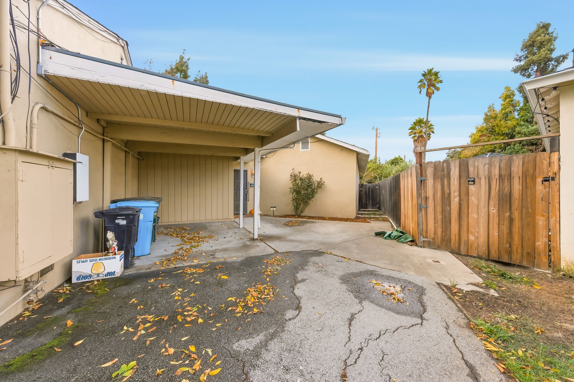 Two units with two distinct personalities. Each private and comfortable. Front unit has hardwood floors, crown molding, cozy fireplace, granite countertops, cherry-wood cabinets, solar roof panels, built-in security system, private laundry room, tankless water heater, and access to the backyard with mature foliage and watering system. Main bathroom is done up in tile. Additional half-bath is tucked into the third bedroom/office area. There is also a detached two-car garage behind a wrought-iron fence with garage door and side door access. Back unit is separated from the front via a carport and back unit's laundry room. This three-bedroom unit has a woodsy feel with luxury vinyl tile that looks like hardwood in the living area, chunky wooden beams, carpeting in the bedrooms, granite countertops in the kitchen, sliding-glass back door that leads to private backyard, and patio. Both have been lovingly maintained since 2007 remodel, and both have gas ranges. Conveniently close to Marsh Manor Shopping Center on Florence Street with Delucchi's Market, Feast and Floral, Starbucks, etc. Easy commute to Google and Meta as it is just two streets north of Marsh Road.