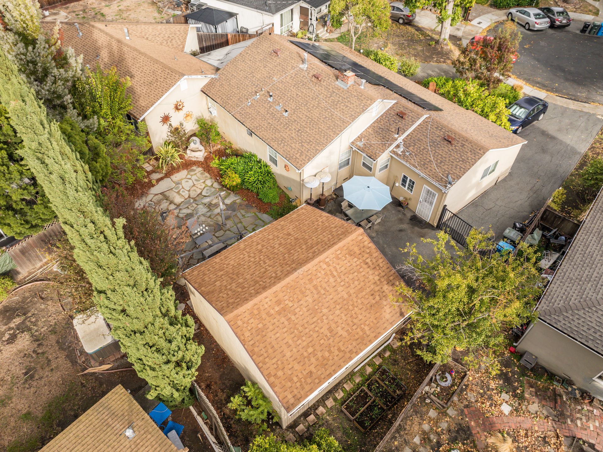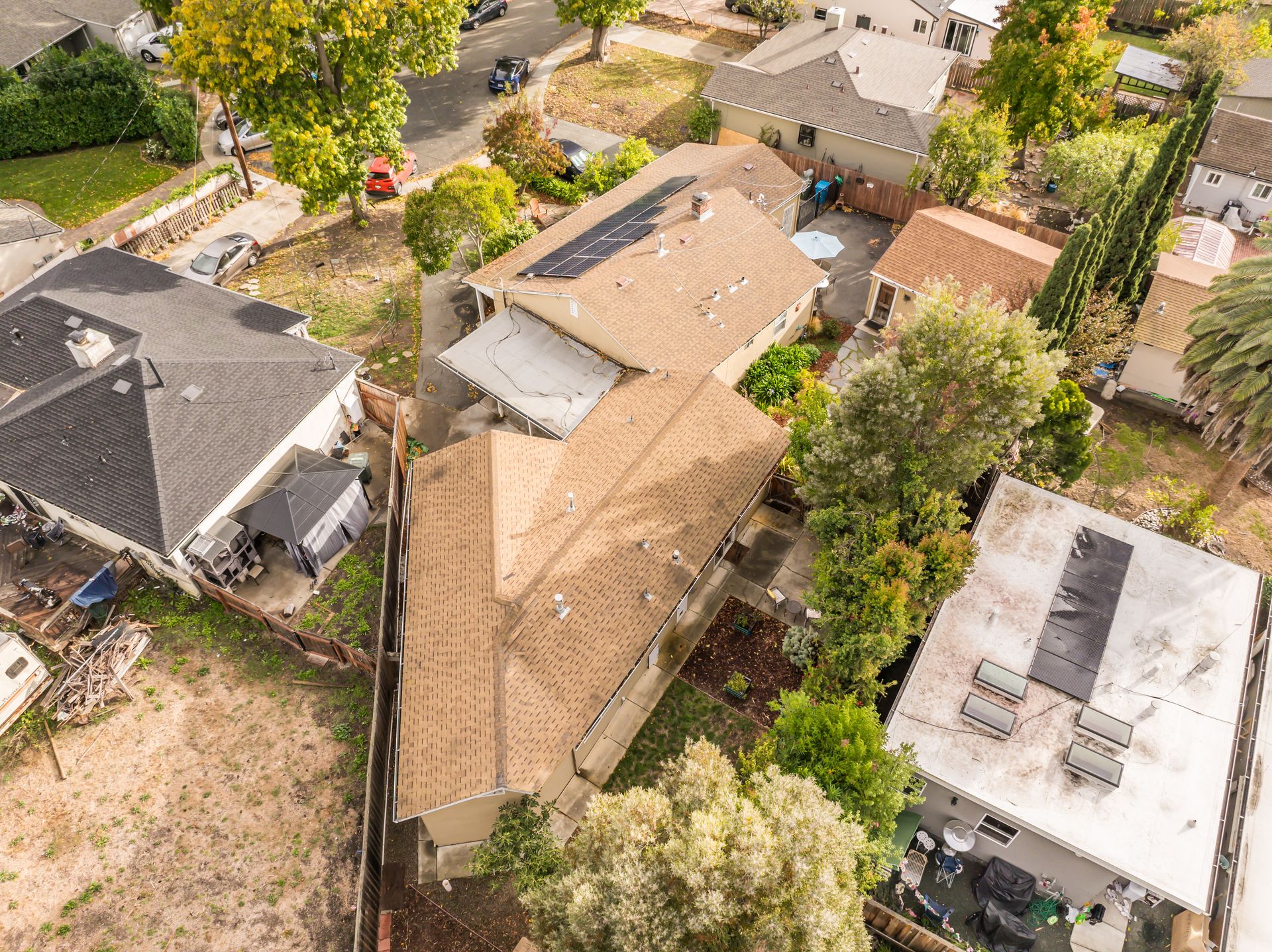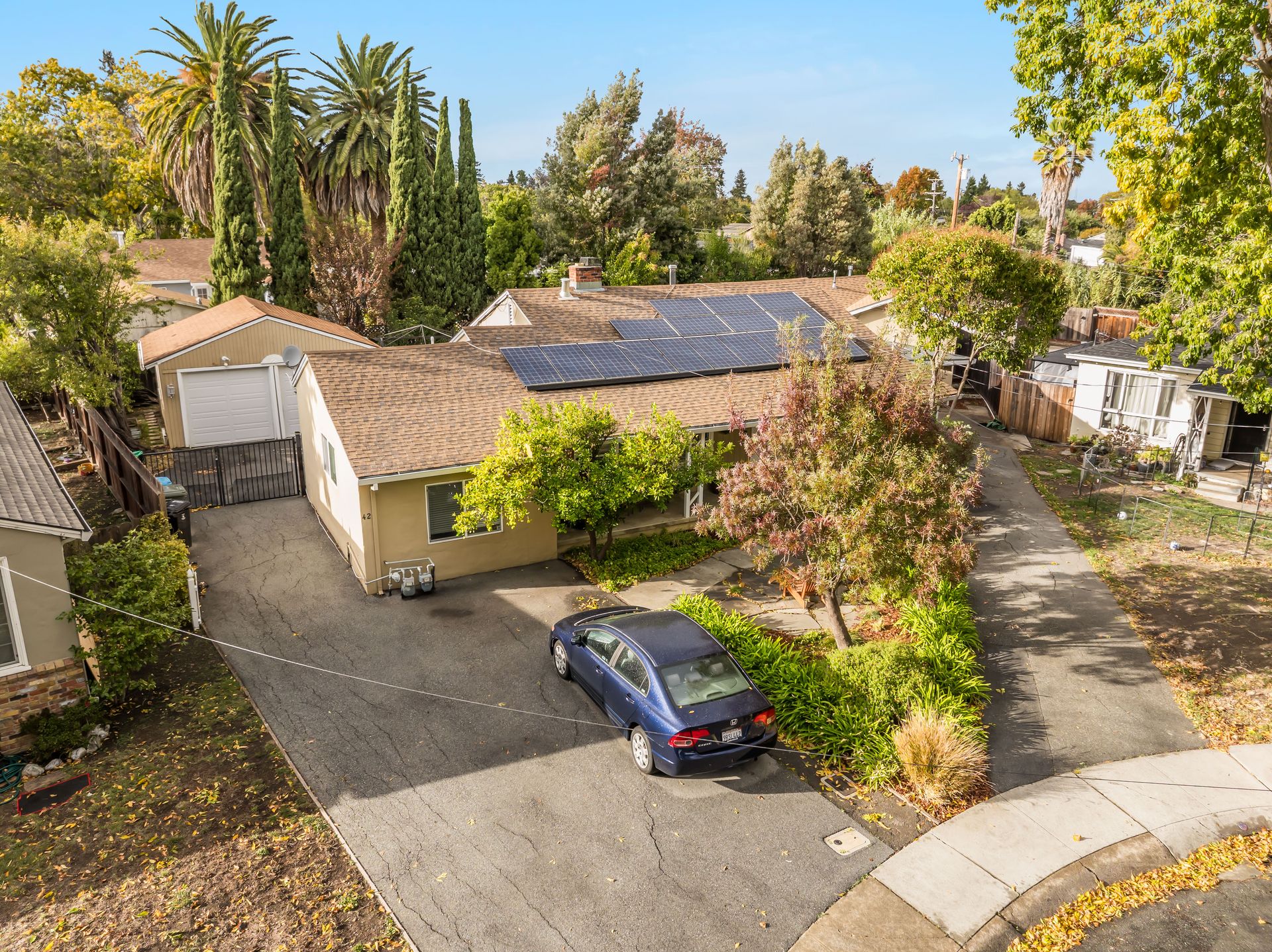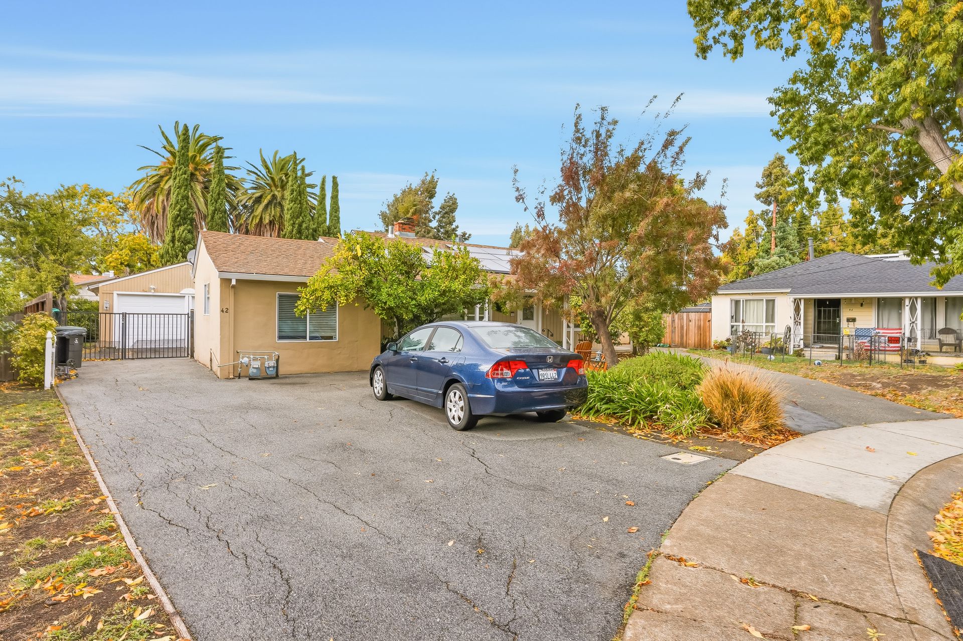 Two units with two distinct personalities. Each private and comfortable. Front unit has hardwood floors, crown molding, cozy fireplace, granite countertops, cherry-wood cabinets, solar roof panels, built-in security system, private laundry room, tankless water heater, and access to the backyard with mature foliage and watering system. Main bathroom is done up in tile. Additional half-bath is tucked into the third bedroom/office area. There is also a detached two-car garage behind a wrought-iron fence with garage door and side door access. Back unit is separated from the front via a carport and back unit's laundry room. This three-bedroom unit has a woodsy feel with luxury vinyl tile that looks like hardwood in the living area, chunky wooden beams, carpeting in the bedrooms, granite countertops in the kitchen, sliding-glass back door that leads to private backyard, and patio. Both have been lovingly maintained since 2007 remodel, and both have gas ranges. Conveniently close to Marsh Manor Shopping Center on Florence Street with Delucchi's Market, Feast and Floral, Starbucks, etc. Easy commute to Google and Meta as it is just two streets north of Marsh Road.