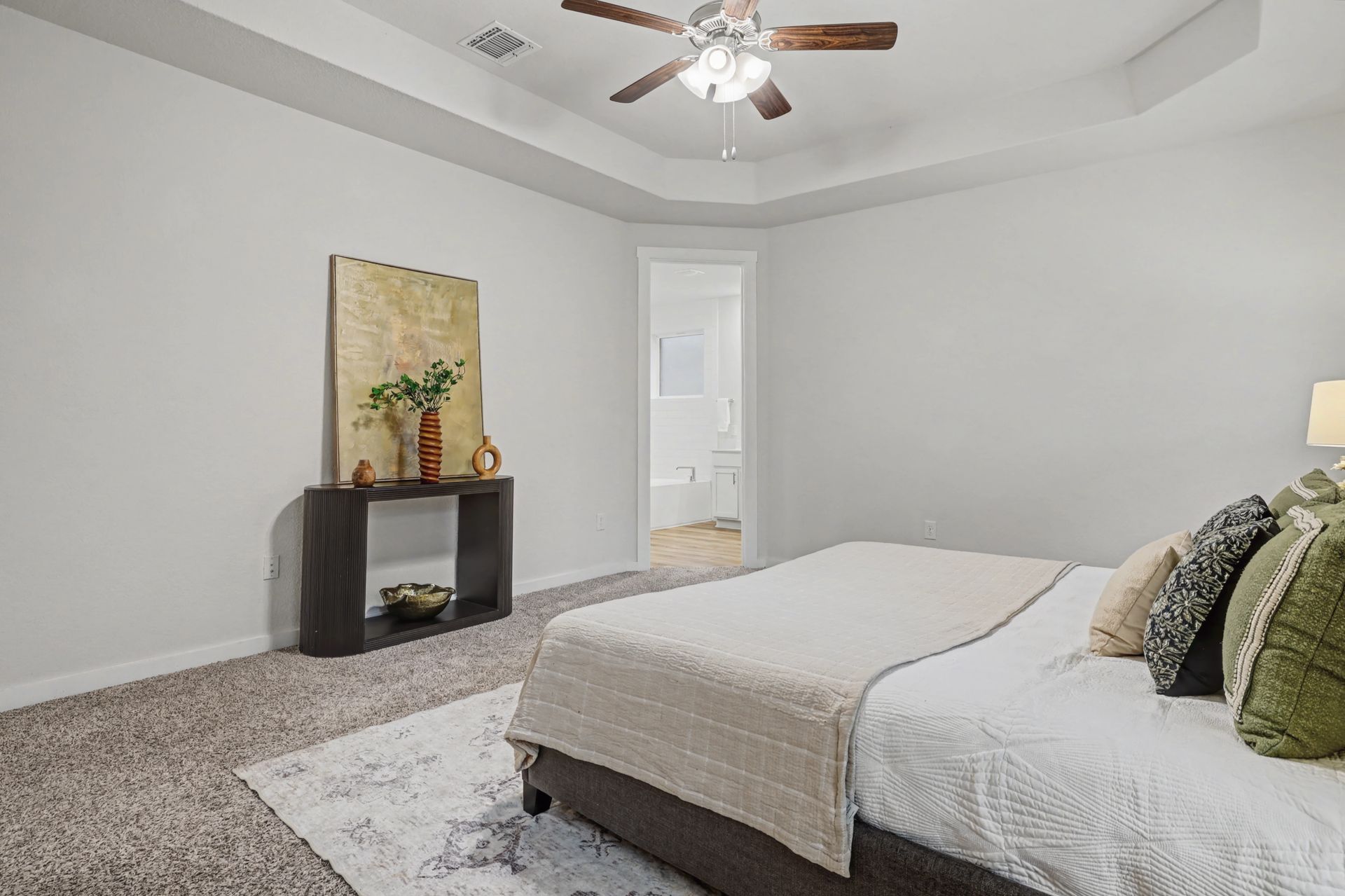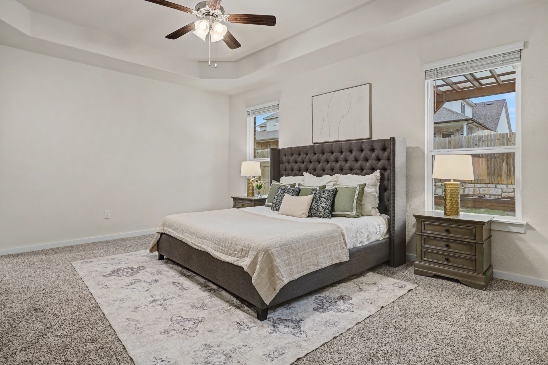 Unique one-of-a-kind north-east facing residence in Rosenbusch Ranch! Thoughtfully upgraded and impeccably maintained. An enclosed sunroom adds approximately 236 square feet of temperature-controlled living space, bringing the total living area to nearly 2,976 square feet. This highly sought-after Whistler single-story floor plan features an open, airy design with eight-foot doorways, four generously sized bedrooms, three full baths and a dedicated study. The chef’s kitchen showcases a large center island, Quartz countertops, stainless steel appliances and an oversized walk-in pantry, all flowing seamlessly into the main living spaces. Recent premium upgrades include hard-wired Ethernet for a private office, whole-house water softener and a reverse-osmosis water filtration system. Lose power? No worries, just add a battery back up to the prewired whole home outlet. Outdoors, an extended patio with pergola is complemented by professionally landscaped and irrigated grounds. Expansive raised garden beds provide an exceptional opportunity for gardening enthusiasts. Every detail of this thoughtfully enhanced home reflects comfort, quality and understated luxury—truly a rare offering.