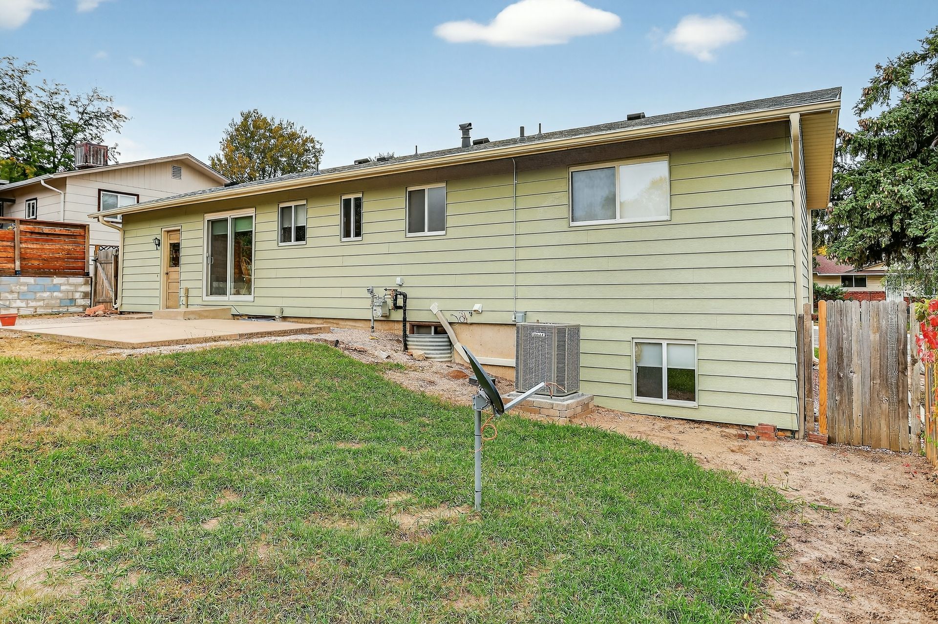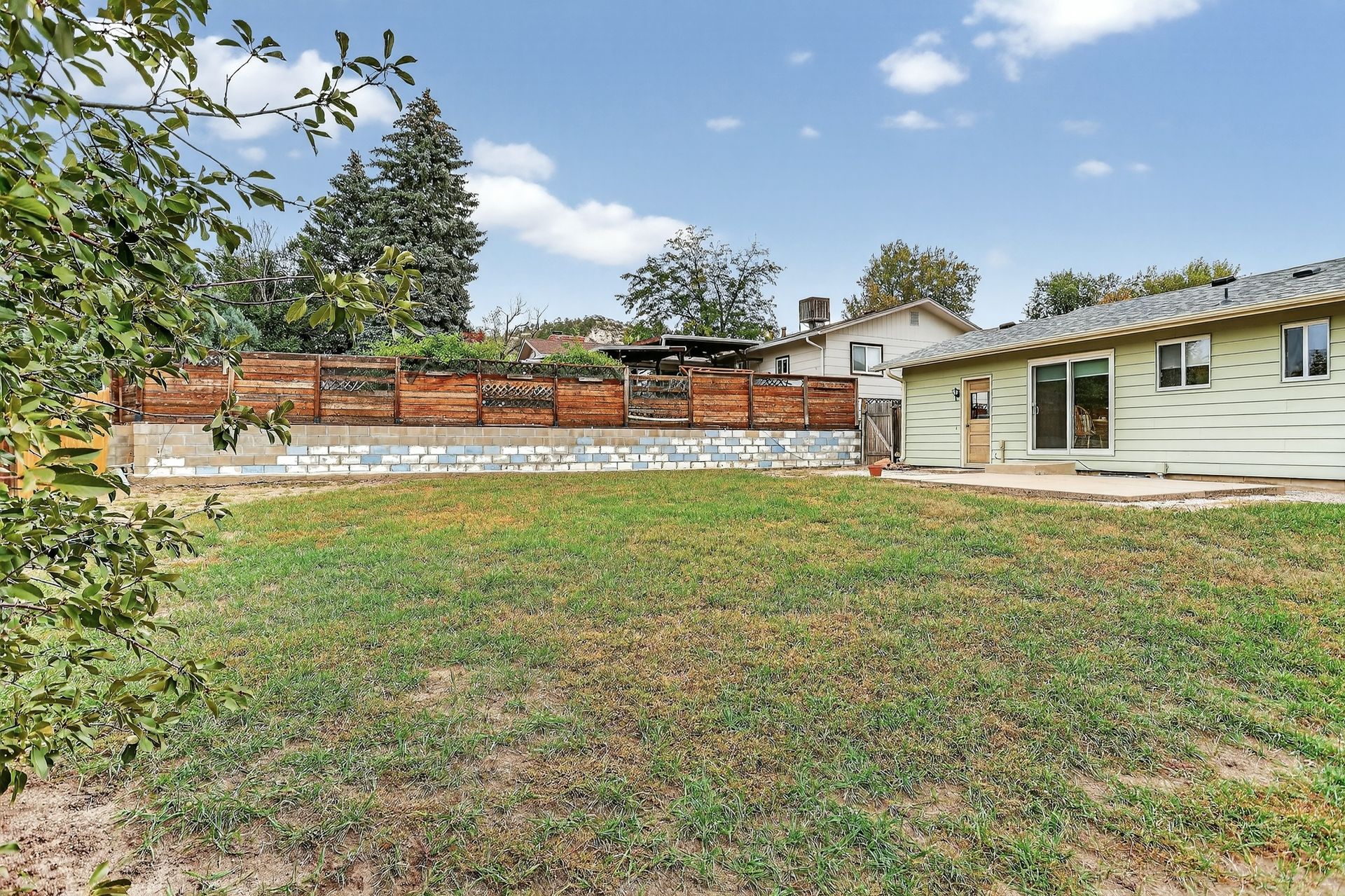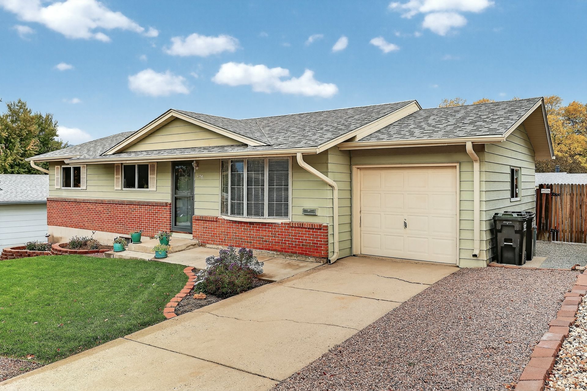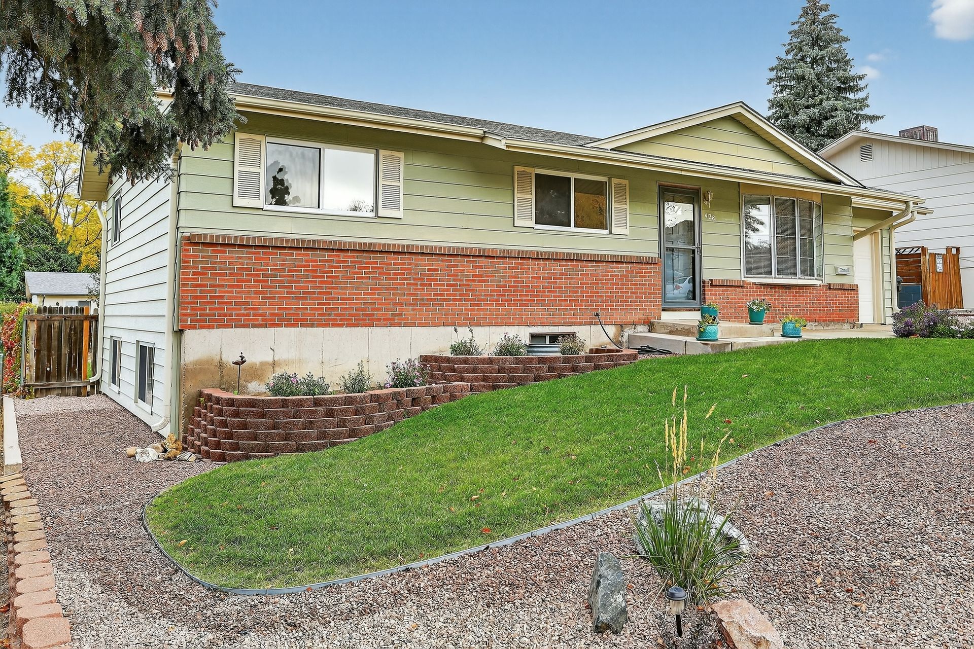 Meticulously maintained! This lovingly cared for home features...a sunny, south-facing 15'x17' living room with bay window, original paneling, and hardwood floors underneath the newer carpet...charming eat-in kitchen with gleaming original cabinetry and scrollwork detail, window that overlooks the backyard, all appliances including electric smooth-top range, French door refrigerator and rolling dishwasher, and automated shades on the door out to the concrete patio...primary bedroom with hardwood floors under the newer carpet, two windows to let in the light, step-in closet and direct access to the roomy full hall bath with solid surface extended countertop and vanity seat space, built-in linen cabinet and marble-look tub/shower surround...2 additional main level bedrooms, both freshly painted and with refinished hardwood floors. In the basement you'll enjoy the cozy 12'x37' family room with original paneling, new carpet, two storage closets and plenty of space to use as a game/office/TV/playroom or gym...4th bedroom with above-grade windows, newer carpet, original paneling and ensuite 3/4 bath...laundry/mechanical room with included W/D...and 10'x11' workshop with ample built-in cabinetry and extra refrigerator. Outside, you'll enjoy the...spacious backyard with cherry tree and partial mountain views...and extra parking on the side of the driveway. Just a short distance to Portal Park, UCCS, University Village shops and restaurants, and access to several bike trails. Furnace, AC, storm door ('24); garage door opener ('22); roof ('19); 50 gallon water heater ('14); almost all vinyl windows, too!