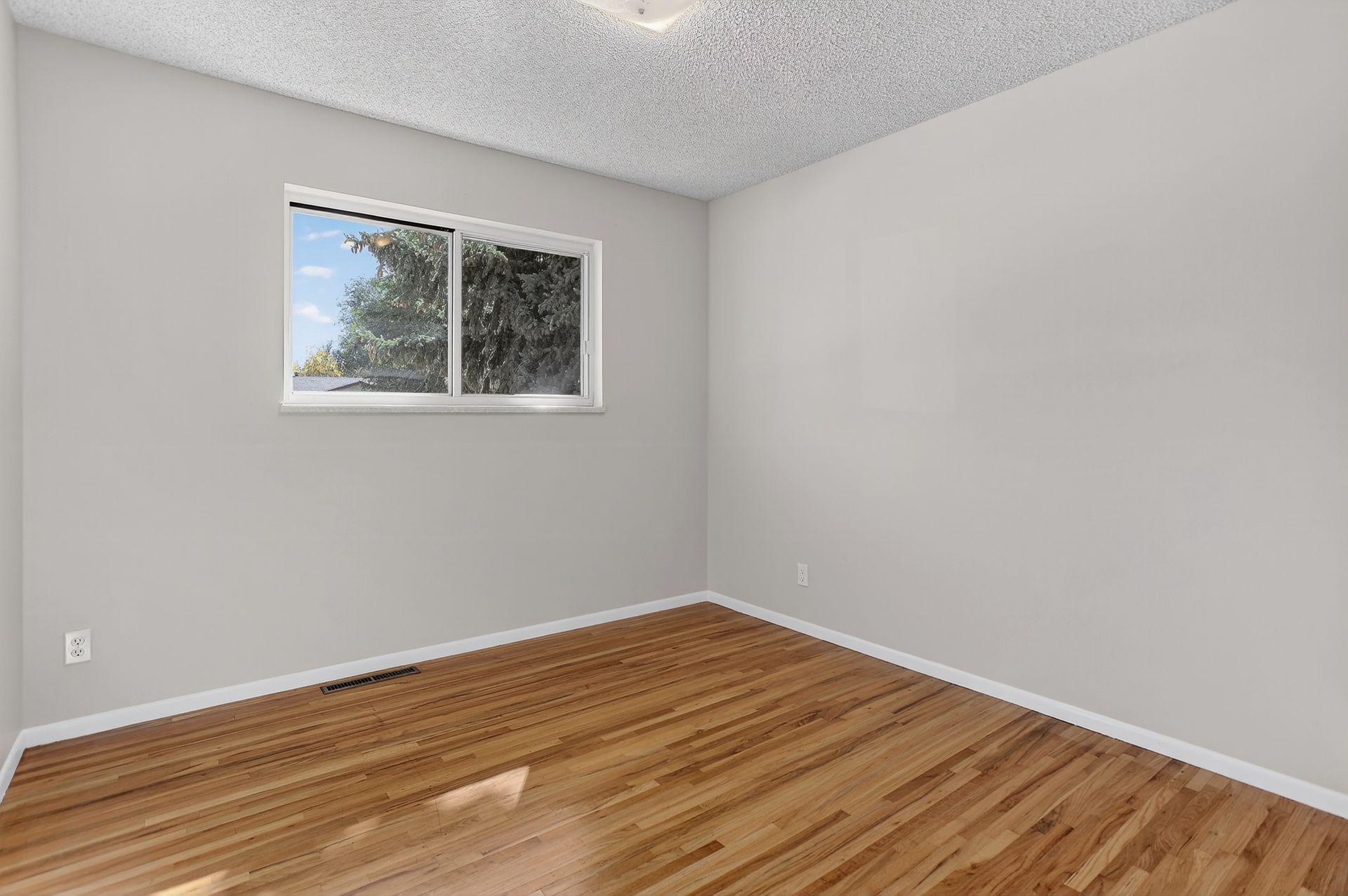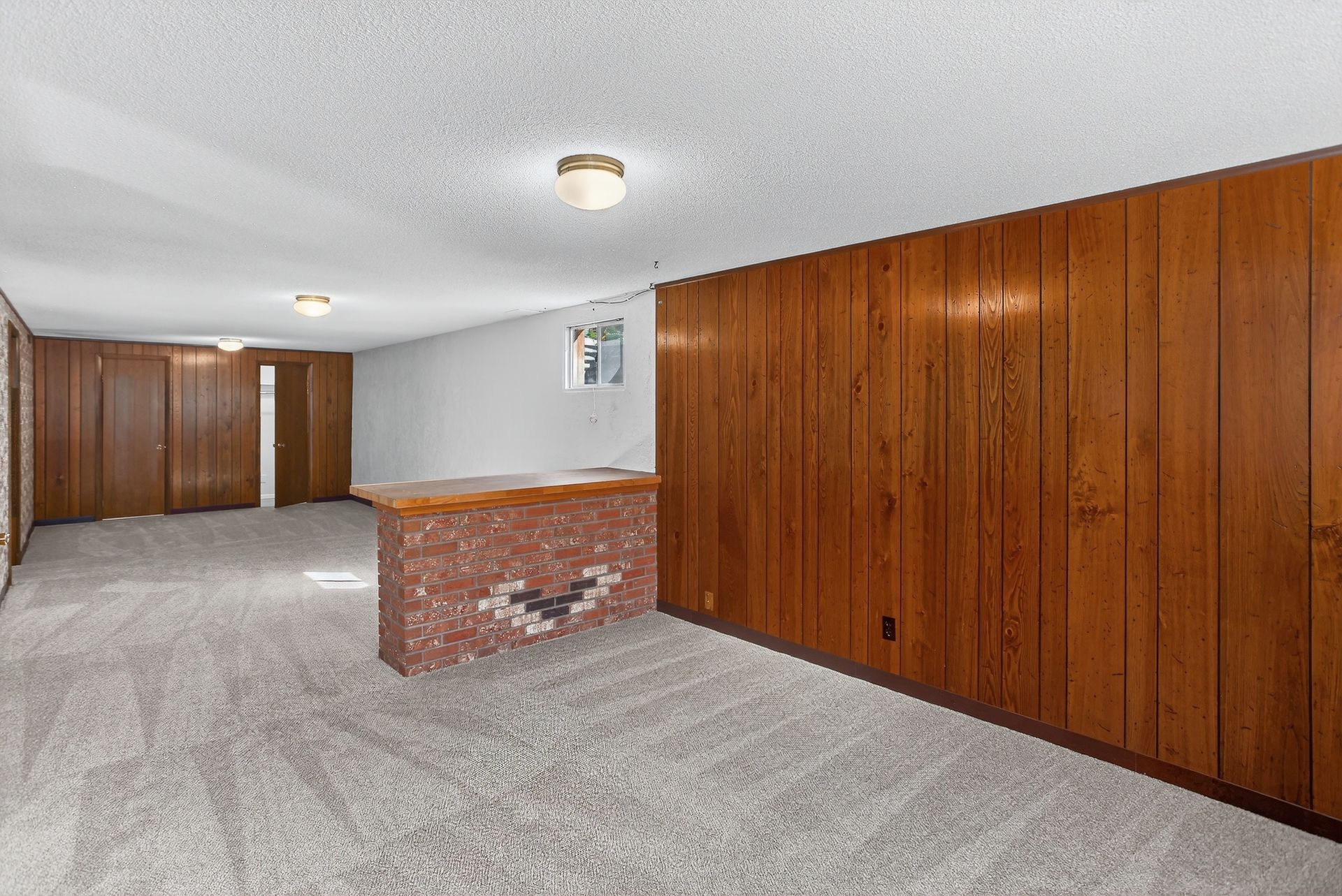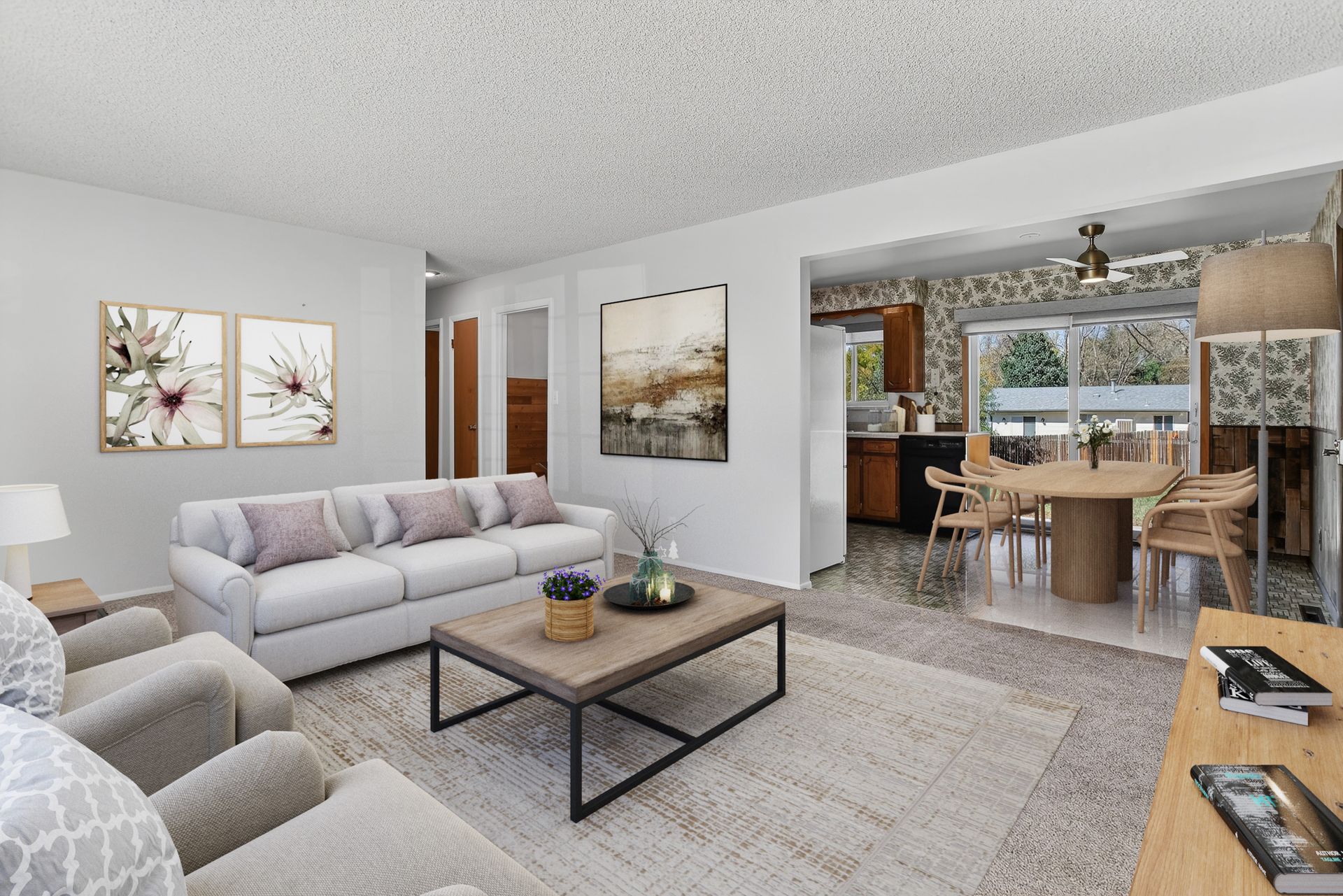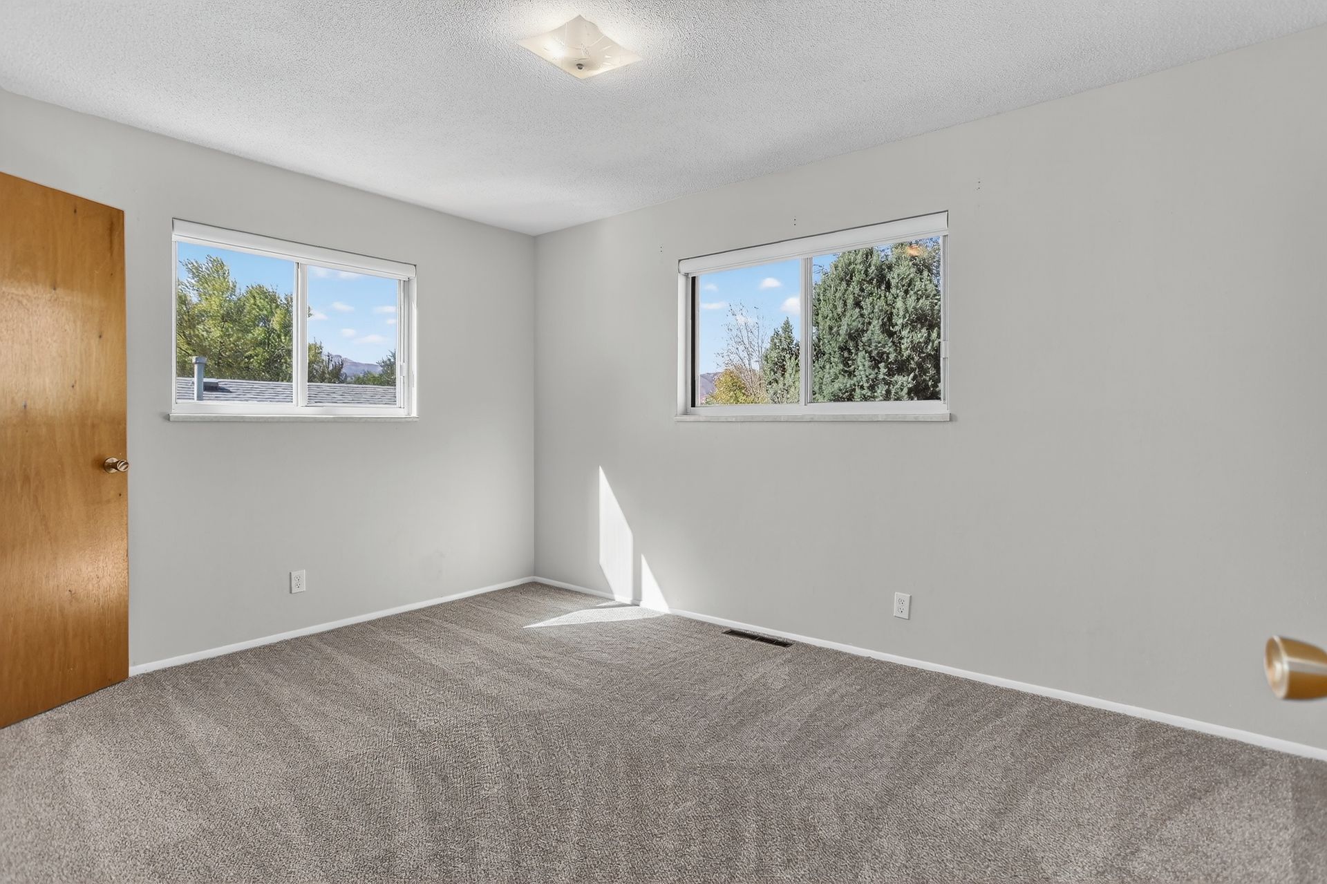 Meticulously maintained! This lovingly cared for home features...a sunny, south-facing 15'x17' living room with bay window, original paneling, and hardwood floors underneath the newer carpet...charming eat-in kitchen with gleaming original cabinetry and scrollwork detail, window that overlooks the backyard, all appliances including electric smooth-top range, French door refrigerator and rolling dishwasher, and automated shades on the door out to the concrete patio...primary bedroom with hardwood floors under the newer carpet, two windows to let in the light, step-in closet and direct access to the roomy full hall bath with solid surface extended countertop and vanity seat space, built-in linen cabinet and marble-look tub/shower surround...2 additional main level bedrooms, both freshly painted and with refinished hardwood floors. In the basement you'll enjoy the cozy 12'x37' family room with original paneling, new carpet, two storage closets and plenty of space to use as a game/office/TV/playroom or gym...4th bedroom with above-grade windows, newer carpet, original paneling and ensuite 3/4 bath...laundry/mechanical room with included W/D...and 10'x11' workshop with ample built-in cabinetry and extra refrigerator. Outside, you'll enjoy the...spacious backyard with cherry tree and partial mountain views...and extra parking on the side of the driveway. Just a short distance to Portal Park, UCCS, University Village shops and restaurants, and access to several bike trails. Furnace, AC, storm door ('24); garage door opener ('22); roof ('19); 50 gallon water heater ('14); almost all vinyl windows, too!
