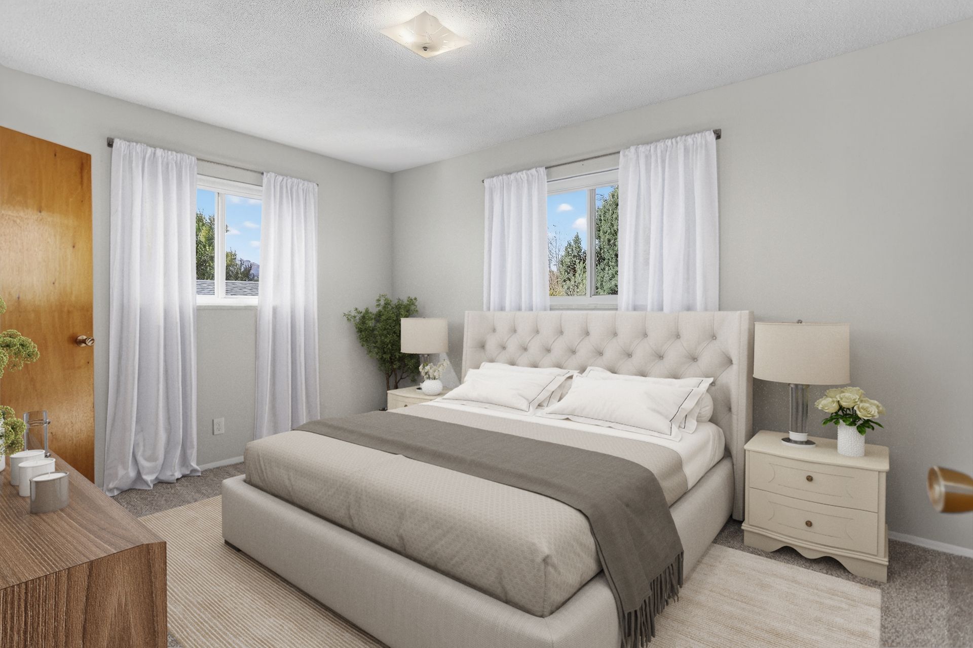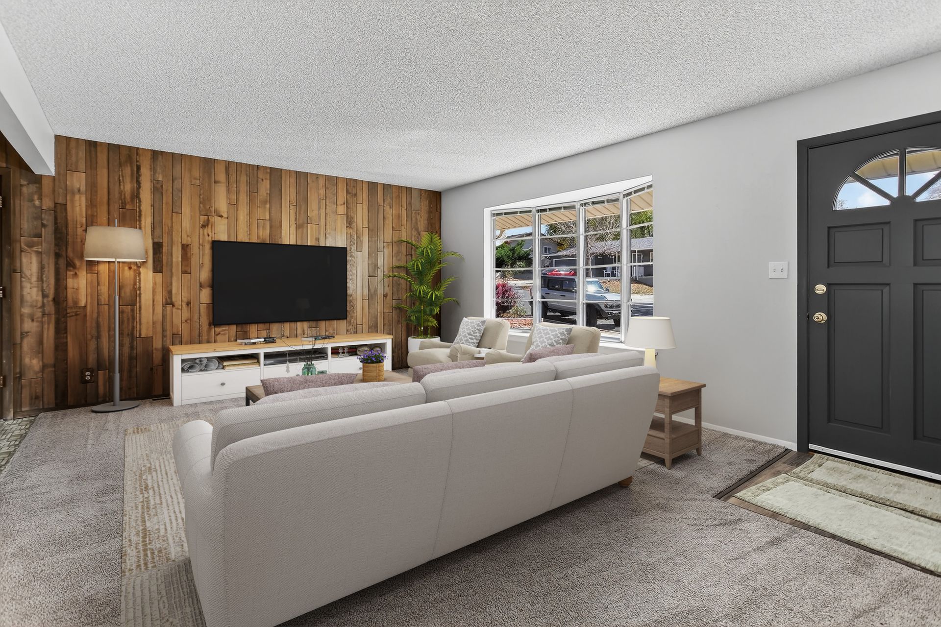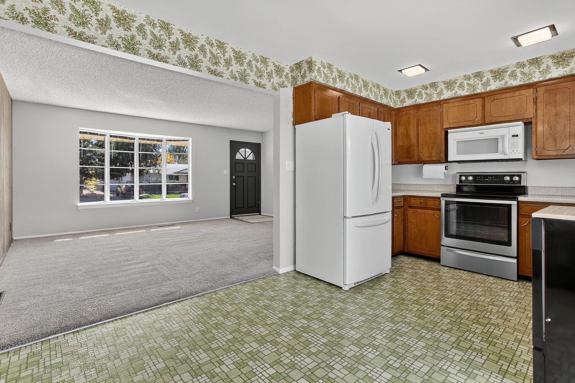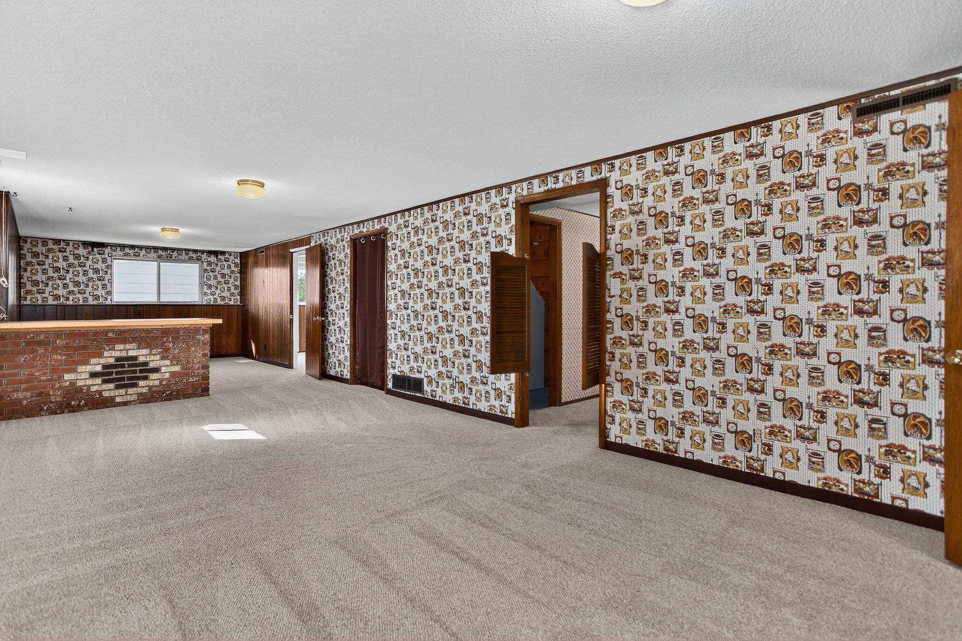 Meticulously maintained! This lovingly cared for home features...a sunny, south-facing 15'x17' living room with bay window, original paneling, and hardwood floors underneath the newer carpet...charming eat-in kitchen with gleaming original cabinetry and scrollwork detail, window that overlooks the backyard, all appliances including electric smooth-top range, French door refrigerator and rolling dishwasher, and automated shades on the door out to the concrete patio...primary bedroom with hardwood floors under the newer carpet, two windows to let in the light, step-in closet and direct access to the roomy full hall bath with solid surface extended countertop and vanity seat space, built-in linen cabinet and marble-look tub/shower surround...2 additional main level bedrooms, both freshly painted and with refinished hardwood floors. In the basement you'll enjoy the cozy 12'x37' family room with original paneling, new carpet, two storage closets and plenty of space to use as a game/office/TV/playroom or gym...4th bedroom with above-grade windows, newer carpet, original paneling and ensuite 3/4 bath...laundry/mechanical room with included W/D...and 10'x11' workshop with ample built-in cabinetry and extra refrigerator. Outside, you'll enjoy the...spacious backyard with cherry tree and partial mountain views...and extra parking on the side of the driveway. Just a short distance to Portal Park, UCCS, University Village shops and restaurants, and access to several bike trails. Furnace, AC, storm door ('24); garage door opener ('22); roof ('19); 50 gallon water heater ('14); almost all vinyl windows, too!