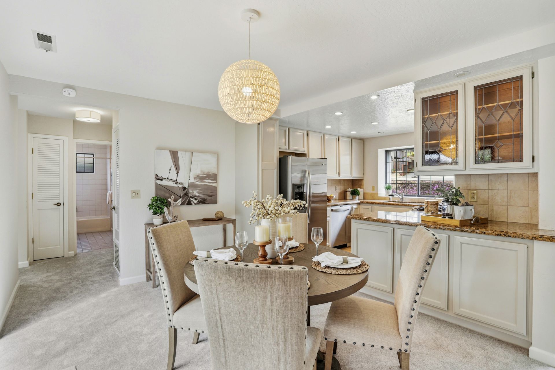 This very functional u-shaped home offers ample natural light, well-proportioned bedrooms with high ceilings and a convenient indoor laundry area. The primary suite has access to the private rear yard, a large walk-in closet and an updated bathroom with natural stone and Nu-Heat radiant floor heating. Attached is a two car garage and plenty of off street parking for guests. Don't miss this opportunity to own a charming home located in the heart of Rio del Mar, just moments to Hidden Beach, Seascape Golf, shopping, dining and more. Welcome home!