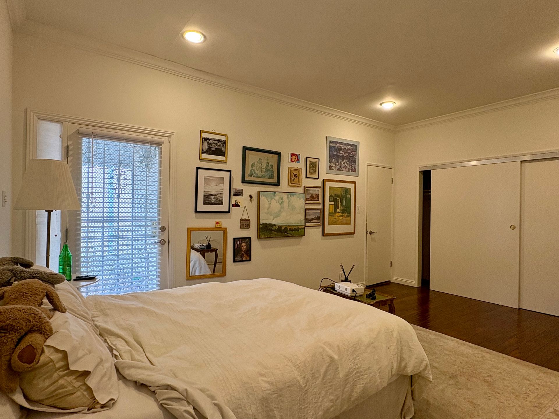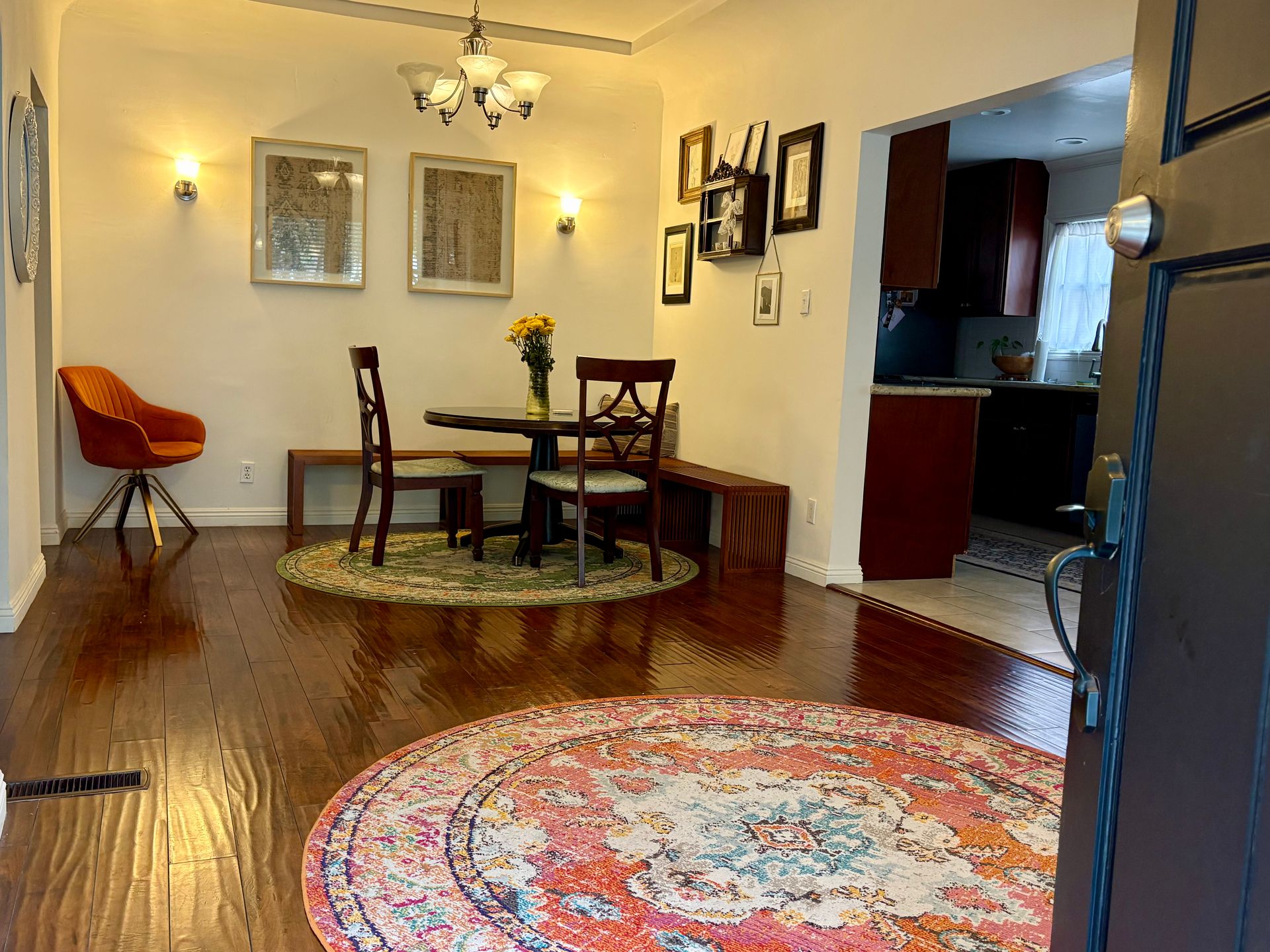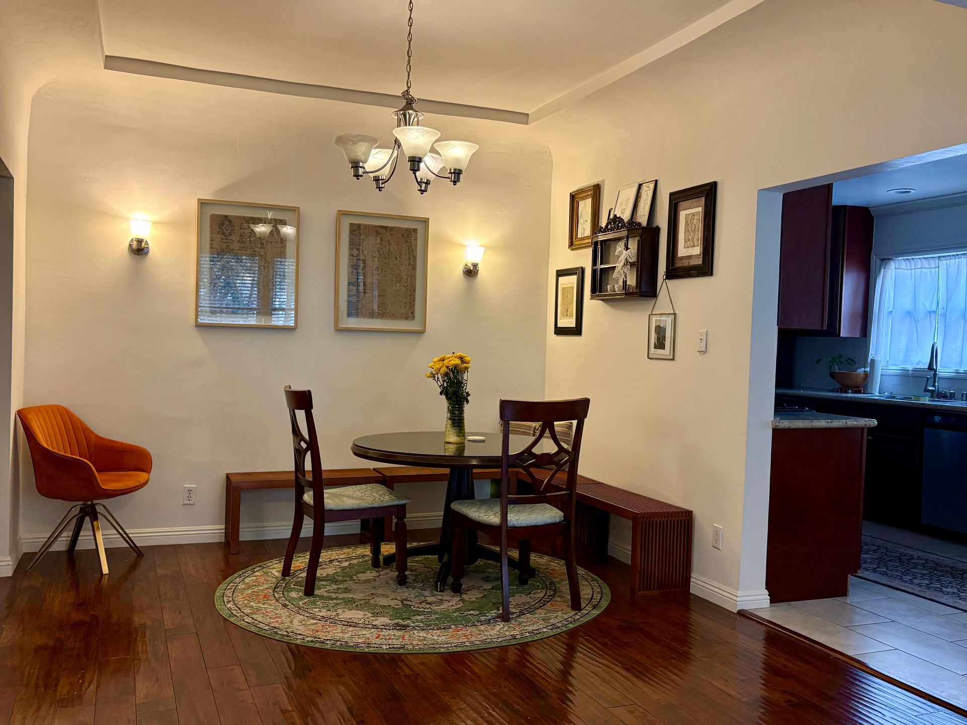This bright and airy home offers spacious formal living and dining rooms, 4 generously sized bedrooms, and 2 tastefully renovated bathrooms. The versatile fourth bedroom features direct outdoor access, making it ideal as a family room, guest suite, or home office. The gourmet kitchen features stainless steel appliances, granite countertops, abundant cabinetry, and a charming breakfast nook, a comfortable and functional space for daily living. Additional highlights include a separate laundry room with washer and dryer, hardwood floors throughout, excellent closet space, central A/C, and two dedicated parking spots. Ideally located near The Grove, top shopping and dining, boasting an impressive Walk Score of 86, this home offers the perfect blend of comfort, style, and convenience.