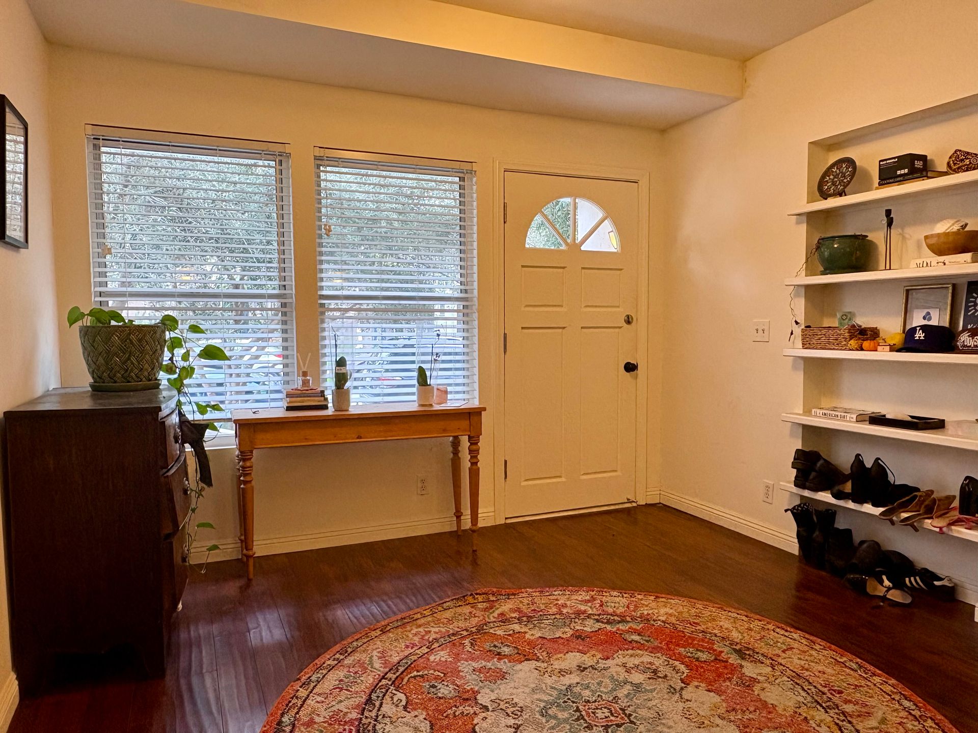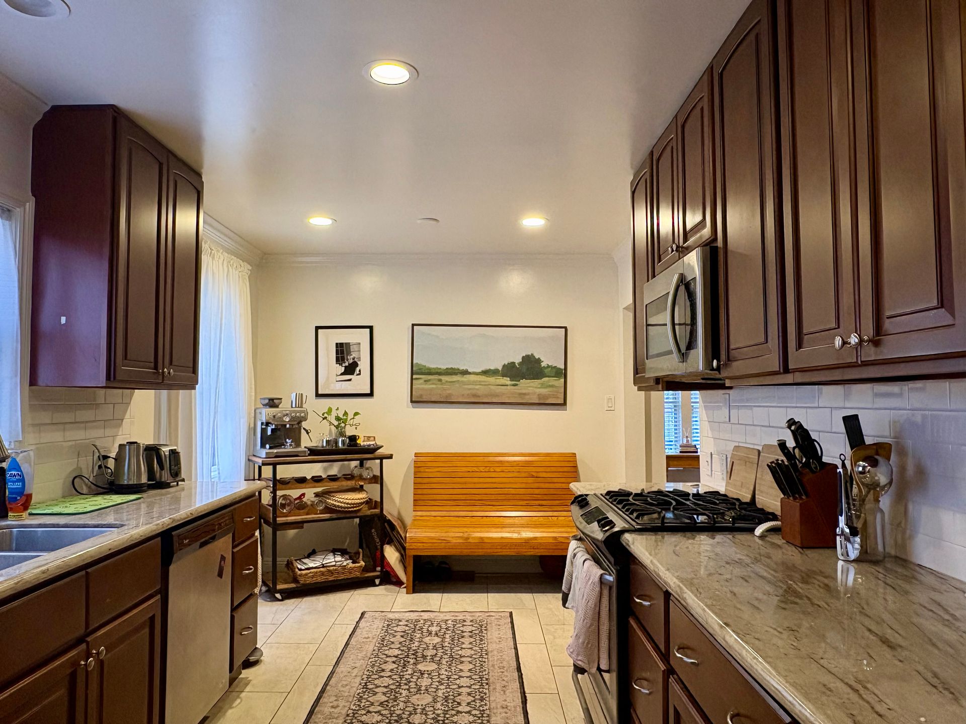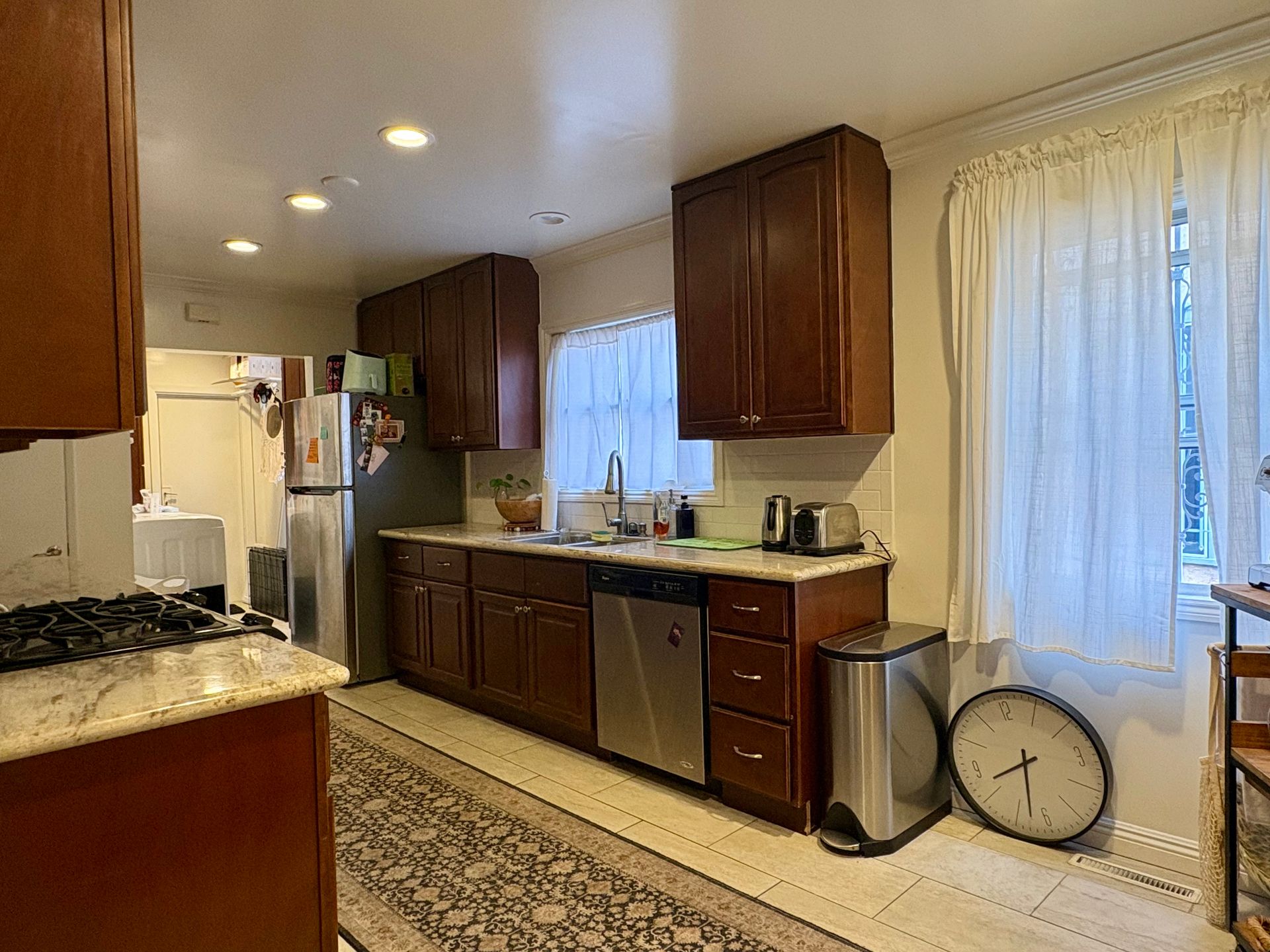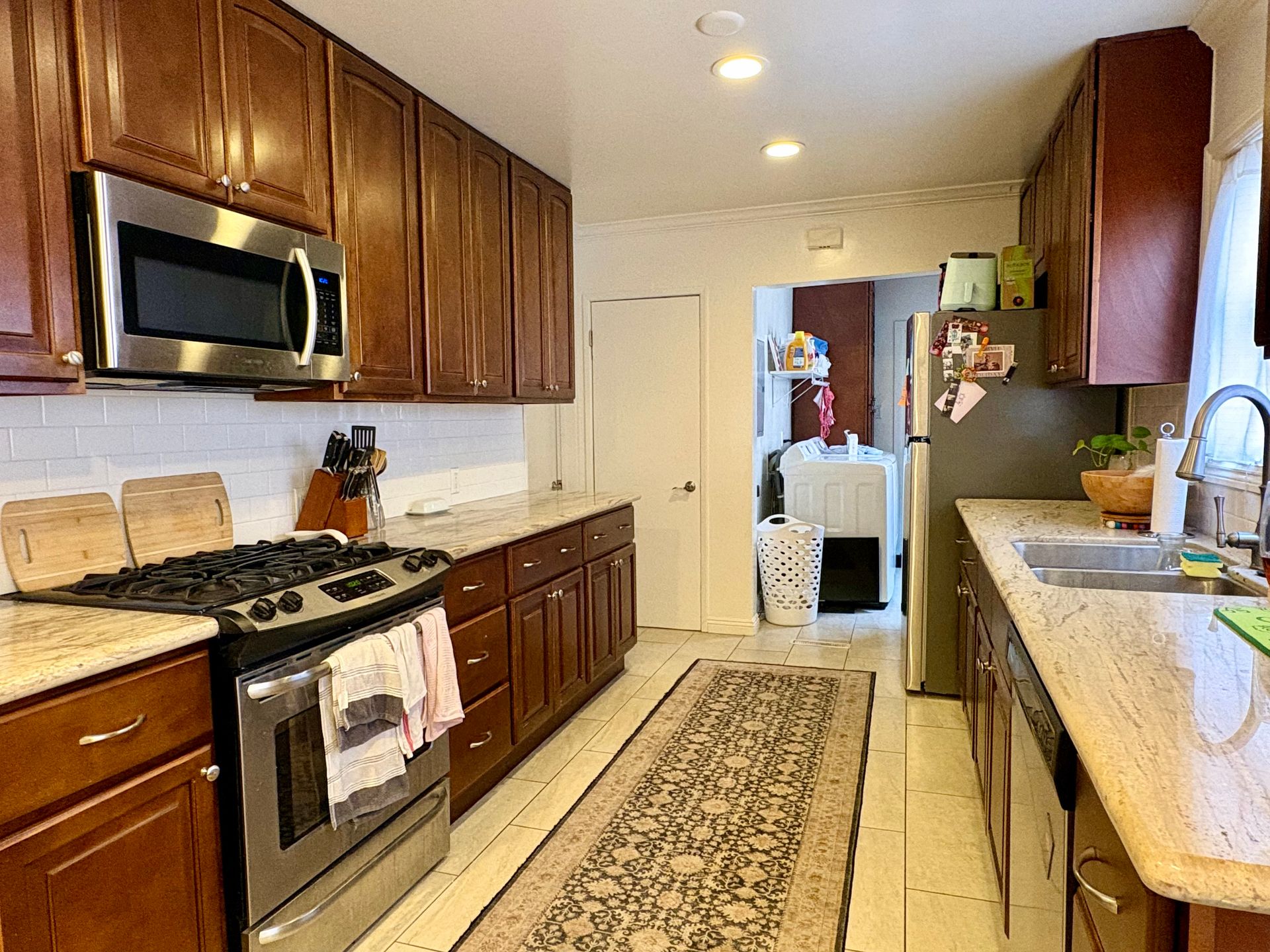 This bright and airy home offers spacious formal living and dining rooms, 4 generously sized bedrooms, and 2 tastefully renovated bathrooms. The versatile fourth bedroom features direct outdoor access, making it ideal as a family room, guest suite, or home office. The gourmet kitchen features stainless steel appliances, granite countertops, abundant cabinetry, and a charming breakfast nook, a comfortable and functional space for daily living. Additional highlights include a separate laundry room with washer and dryer, hardwood floors throughout, excellent closet space, central A/C, and two dedicated parking spots. Ideally located near The Grove, top shopping and dining, boasting an impressive Walk Score of 86, this home offers the perfect blend of comfort, style, and convenience.