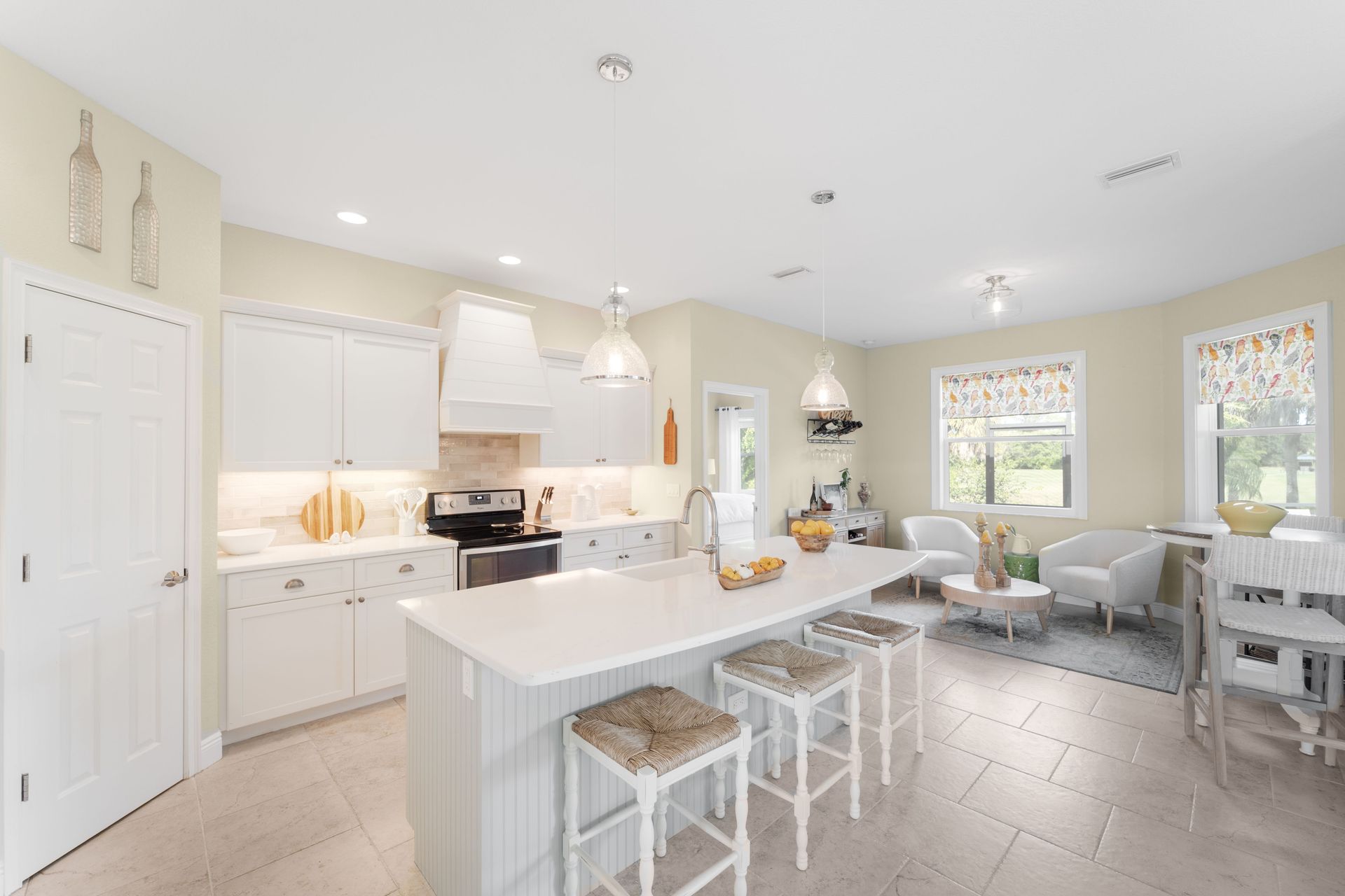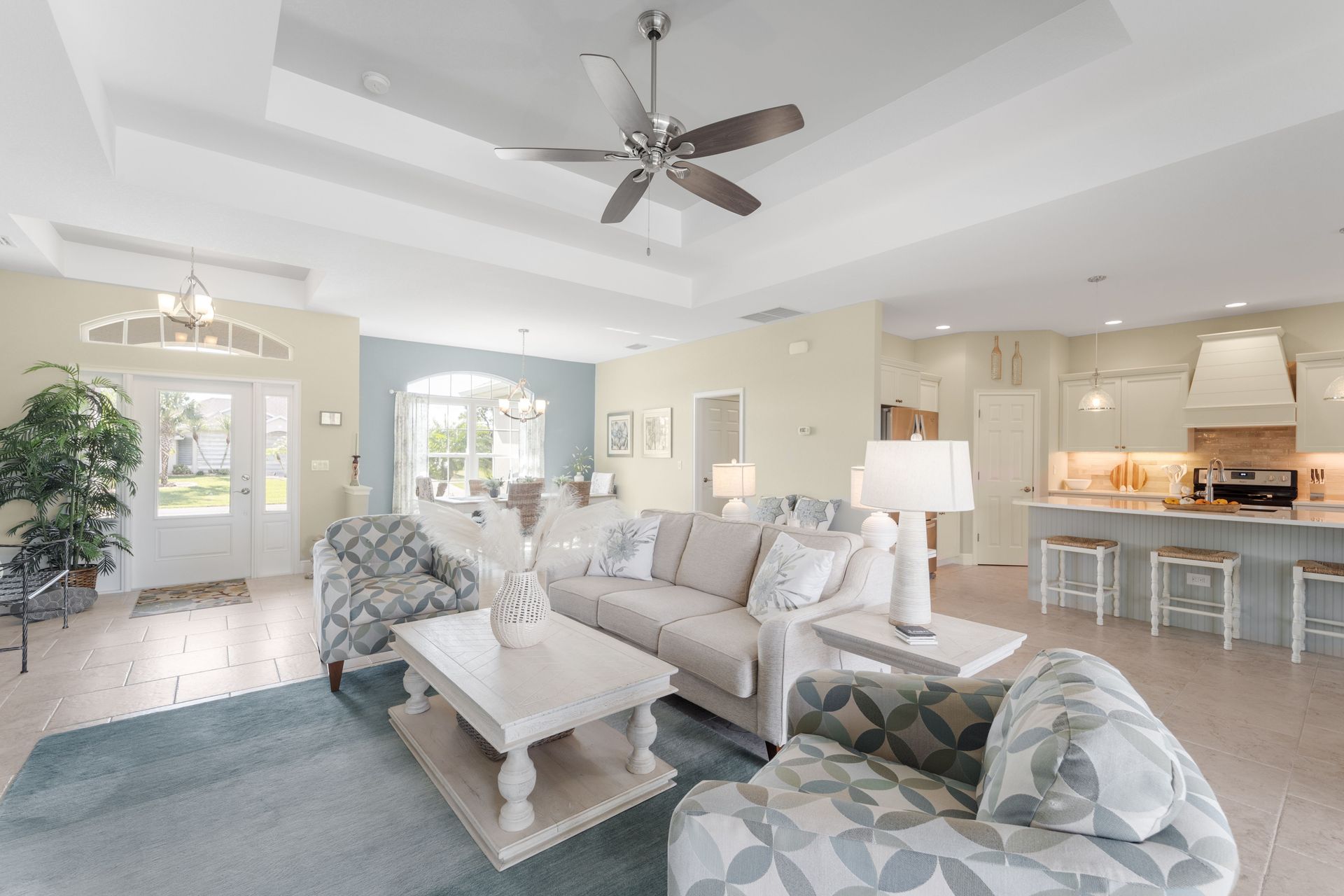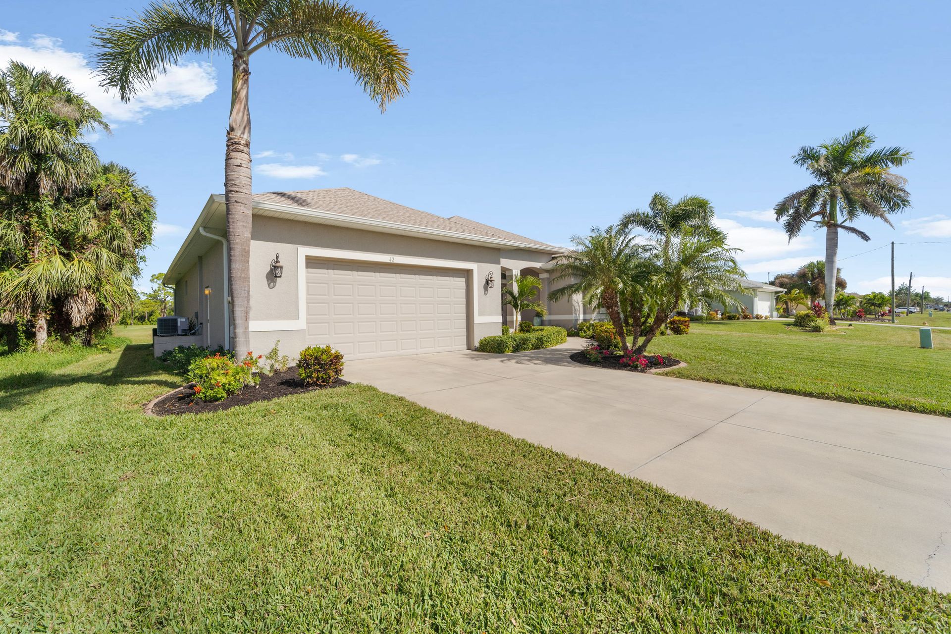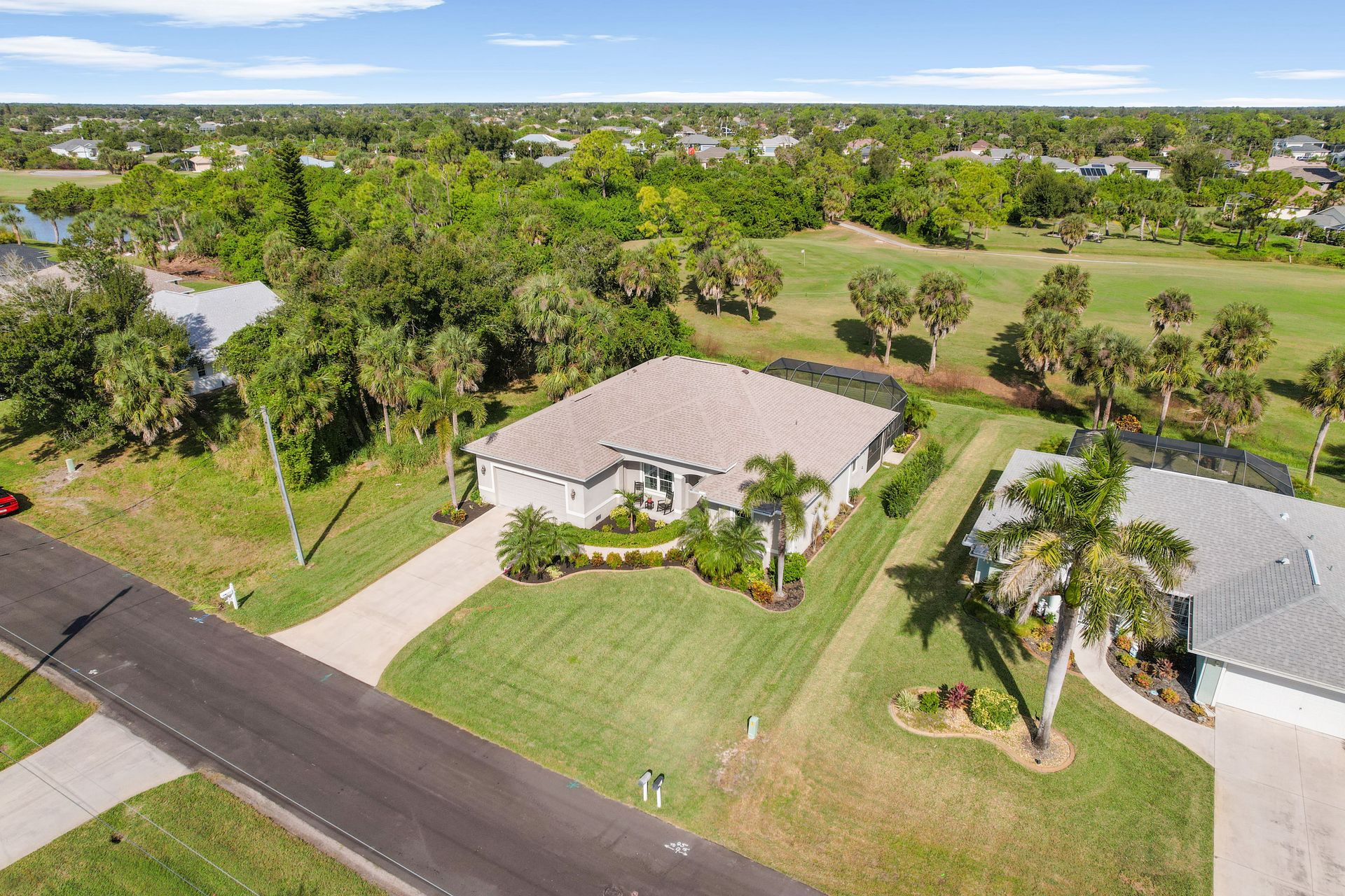 Beautifully updated three bedroom, two bath single-family home located on a quiet dead-end street with stunning views of the third green of the Longmeadow Golf Course. This home offers an inviting open floor plan with pocket doors and accordion sliders that fully open the interior to the outdoor living space, creating seamless indoor–outdoor living. The split-bedroom floor plan provides privacy for owners and guests. Recent improvements include a new roof, new kitchen countertops, new backsplash, new farmhouse sink and faucet, new exhaust hood, and new dishwasher, offering modern style and peace of mind. The expansive lanai features a large covered area with Storm Smart hurricane shades and a heated inground pool overlooking the golf course—perfect for entertaining or relaxing year-round. With a prime location, valuable upgrades, and exceptional living space, this home is truly a must-see.