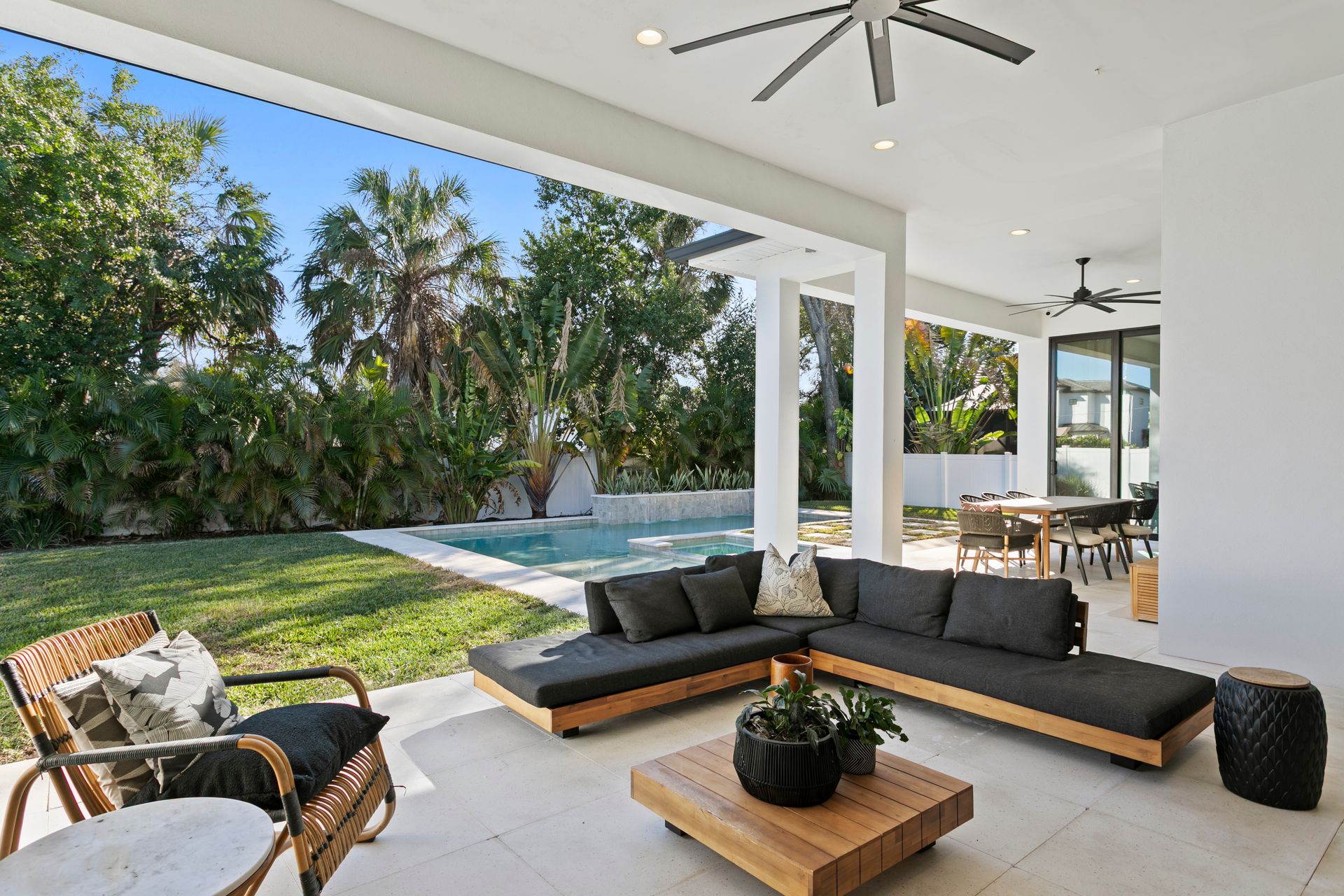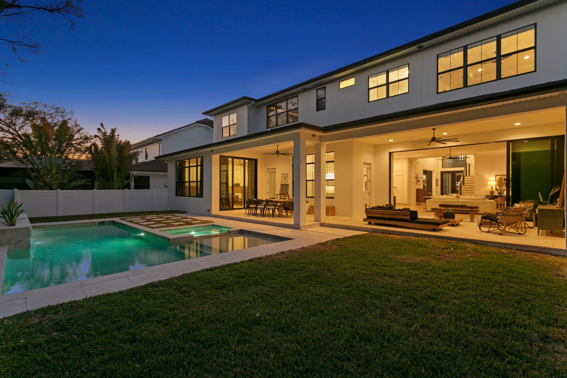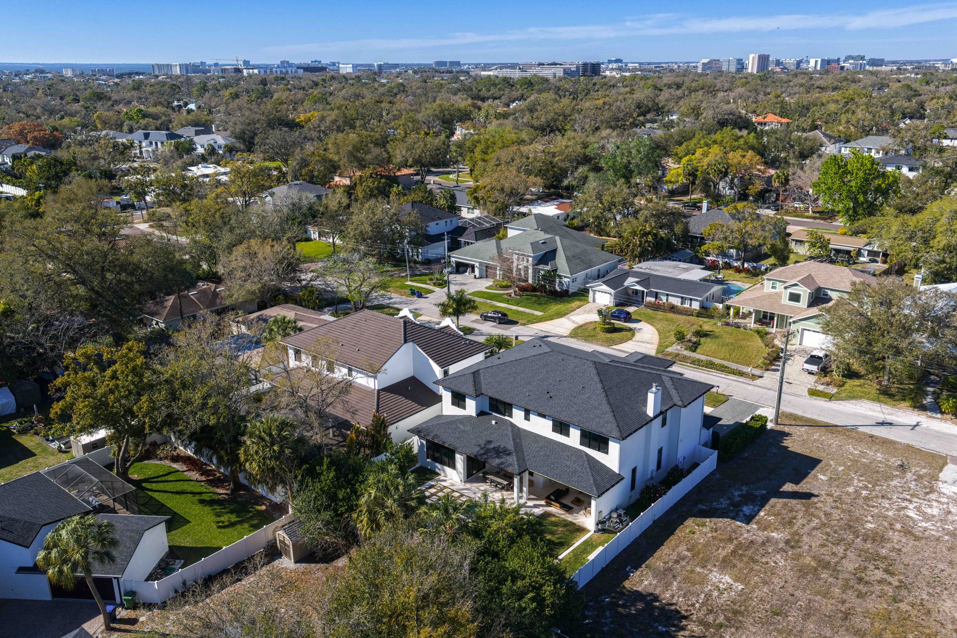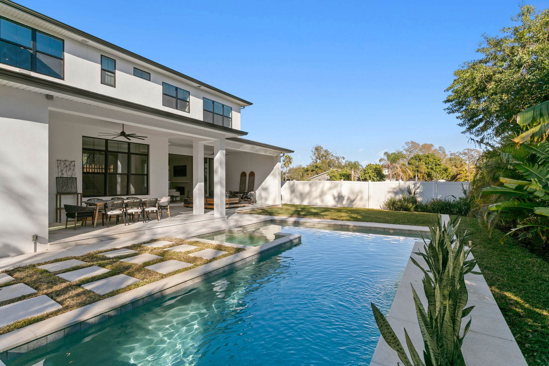 Experience refined coastal contemporary living in this exceptional Taralon Homes semi-custom residence, completed in 2022 and set on a 0.24-acre homesite in South Tampa. Offering 5,293 square feet of thoughtfully designed living space, the home blends timeless architecture with modern comfort and effortless elegance. A grand entry introduces a light-filled interior defined by 11-foot ceilings, a Level 5 drywall finish, wide-plank hardwood floors, and curated architectural detailing. The open-concept great room flows seamlessly into a chef’s kitchen featuring custom cabinetry, an oversized island, a Wolf natural gas cooktop, and a fully equipped butler’s pantry with beverage refrigeration and a Scotsman ice maker. Retractable sliding glass doors create a seamless indoor-outdoor connection to the covered lanai and resort-style backyard, where a heated saltwater pool and spa with sun shelf, dedicated pool bath, and generous green space provide a private outdoor setting.The flexible floor plan includes five bedrooms, five full and one half baths, along with a private office, bonus room, media room with wet bar, and a first-floor guest suite. The upstairs primary suite offers a serene retreat with a spa-inspired bath and spacious walk-in closet. Additional highlights include impact-rated windows and doors, smart home features, zoned high-efficiency HVAC, tankless water heaters, an in-wall pest system, and an oversized 3+ car split garage with workshop space. Ideally located in a non-flood zone, just minutes from TPA, downtown Tampa, and premier dining, shopping, and waterfront destinations.