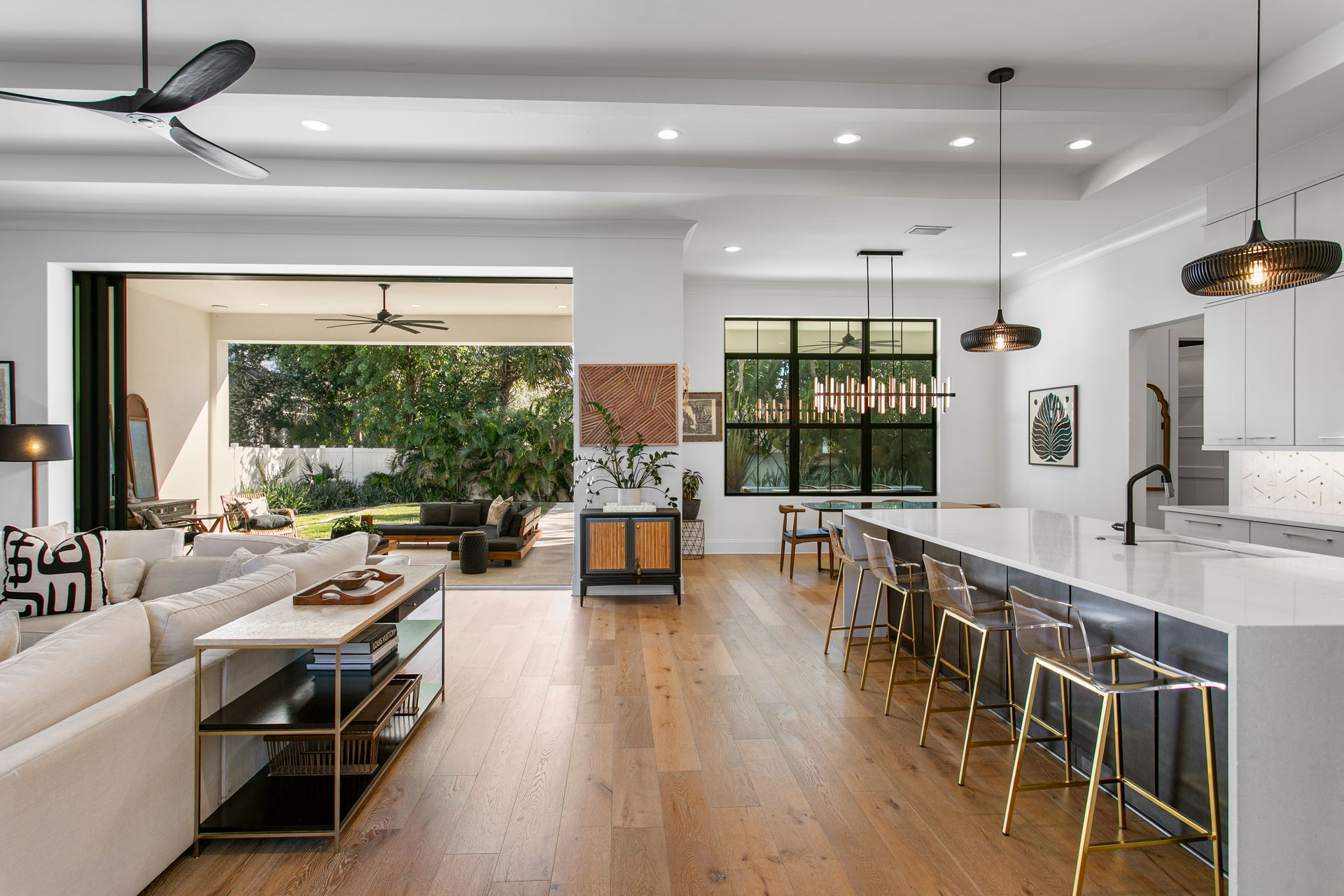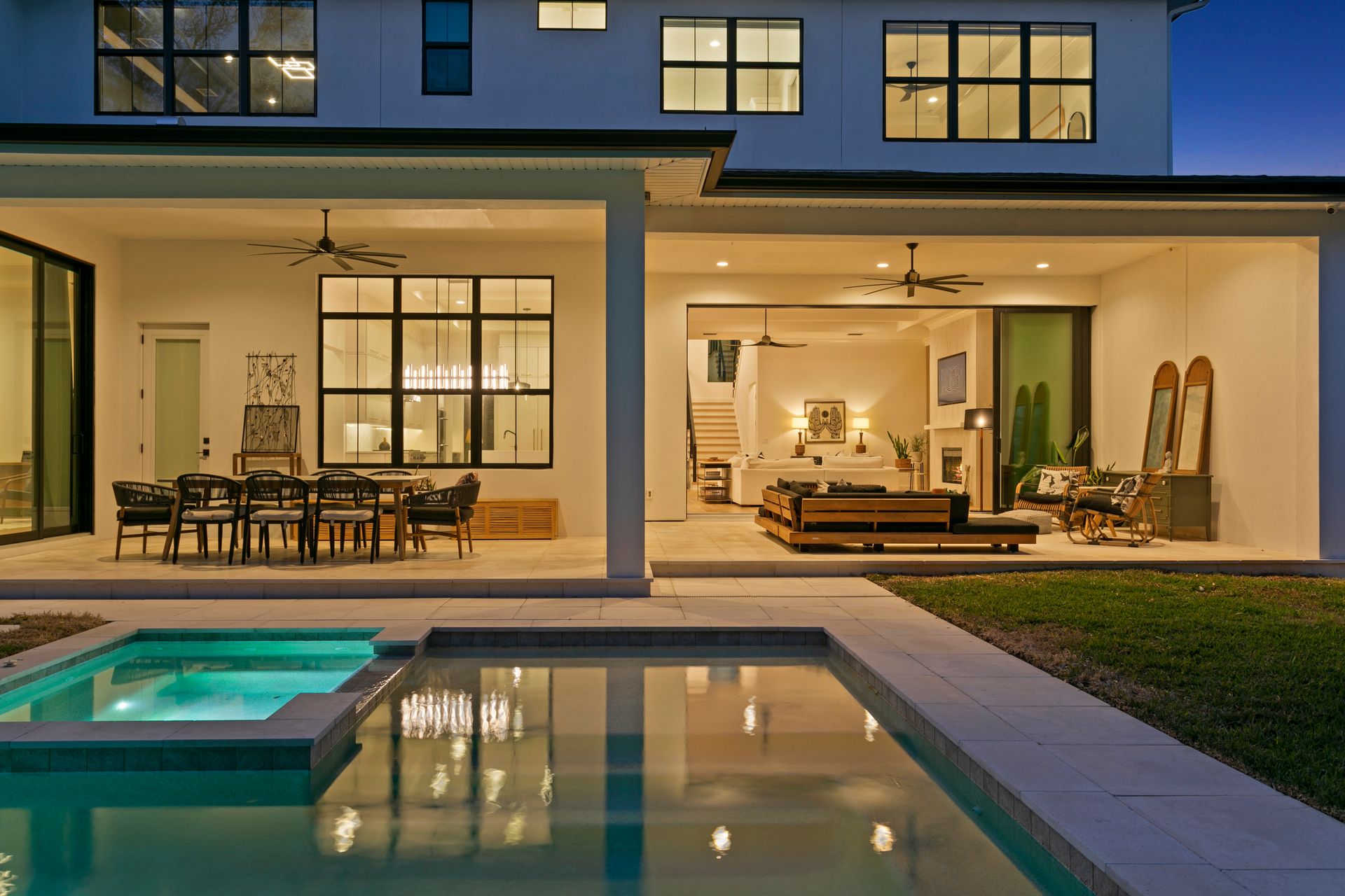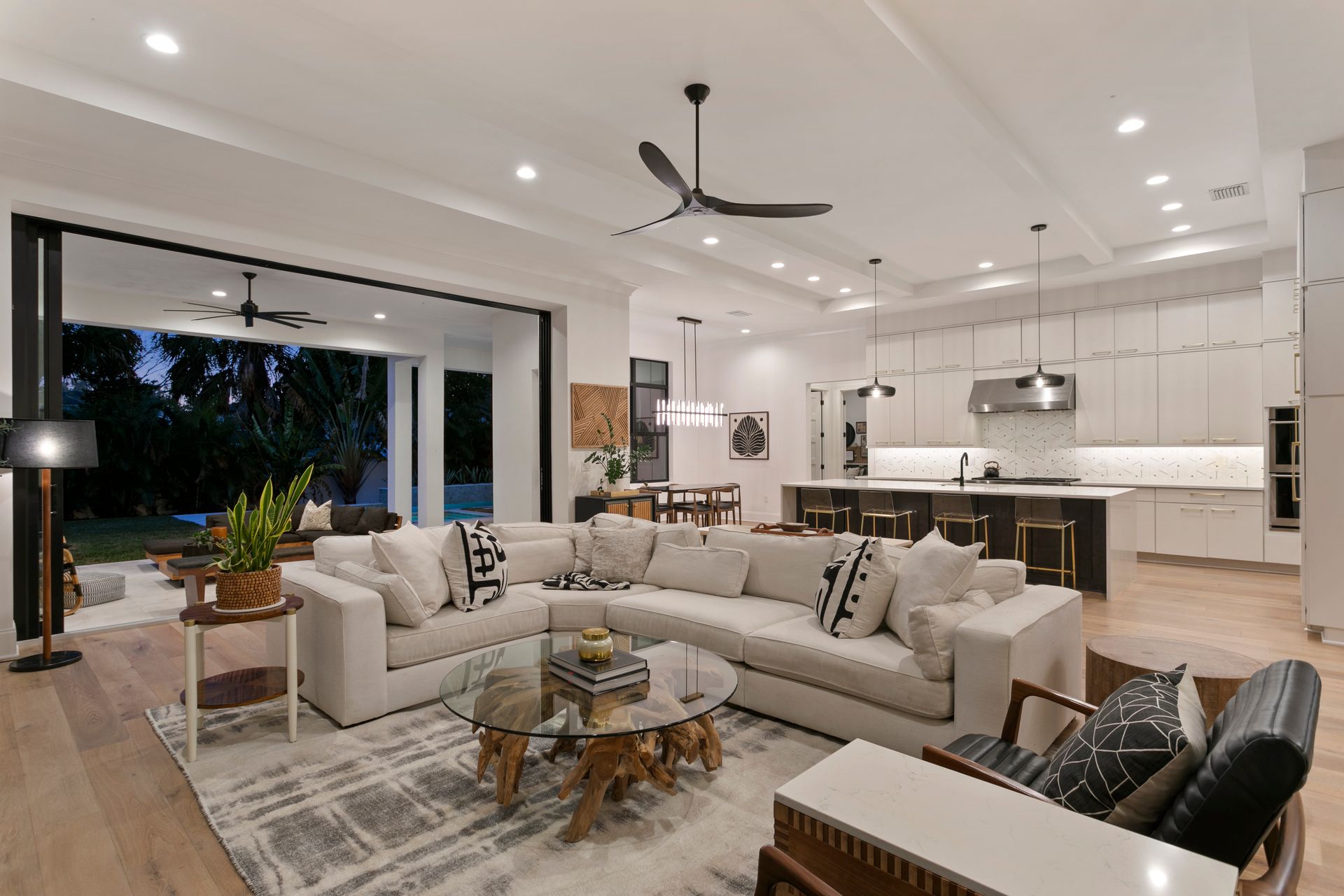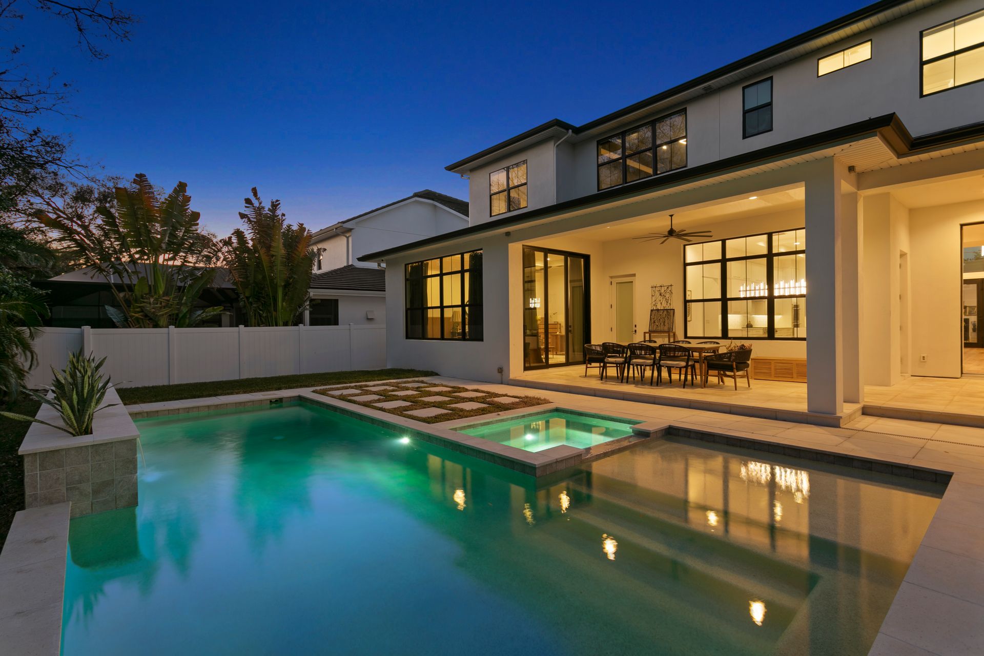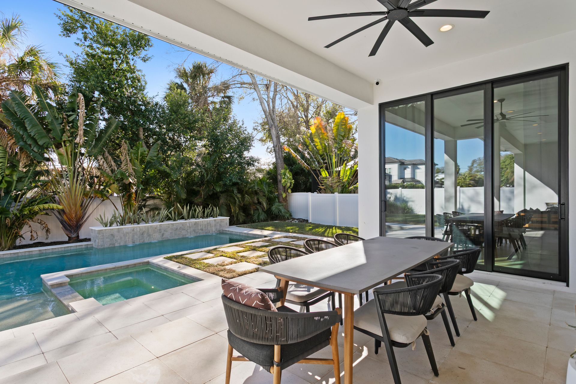 Experience refined coastal contemporary living in this exceptional Taralon Homes semi-custom residence, completed in 2022 and set on a 0.24-acre homesite in South Tampa. Offering 5,293 square feet of thoughtfully designed living space, the home blends timeless architecture with modern comfort and effortless elegance. A grand entry introduces a light-filled interior defined by 11-foot ceilings, a Level 5 drywall finish, wide-plank hardwood floors, and curated architectural detailing. The open-concept great room flows seamlessly into a chef’s kitchen featuring custom cabinetry, an oversized island, a Wolf natural gas cooktop, and a fully equipped butler’s pantry with beverage refrigeration and a Scotsman ice maker. Retractable sliding glass doors create a seamless indoor-outdoor connection to the covered lanai and resort-style backyard, where a heated saltwater pool and spa with sun shelf, dedicated pool bath, and generous green space provide a private outdoor setting.The flexible floor plan includes five bedrooms, five full and one half baths, along with a private office, bonus room, media room with wet bar, and a first-floor guest suite. The upstairs primary suite offers a serene retreat with a spa-inspired bath and spacious walk-in closet. Additional highlights include impact-rated windows and doors, smart home features, zoned high-efficiency HVAC, tankless water heaters, an in-wall pest system, and an oversized 3+ car split garage with workshop space. Ideally located in a non-flood zone, just minutes from TPA, downtown Tampa, and premier dining, shopping, and waterfront destinations.