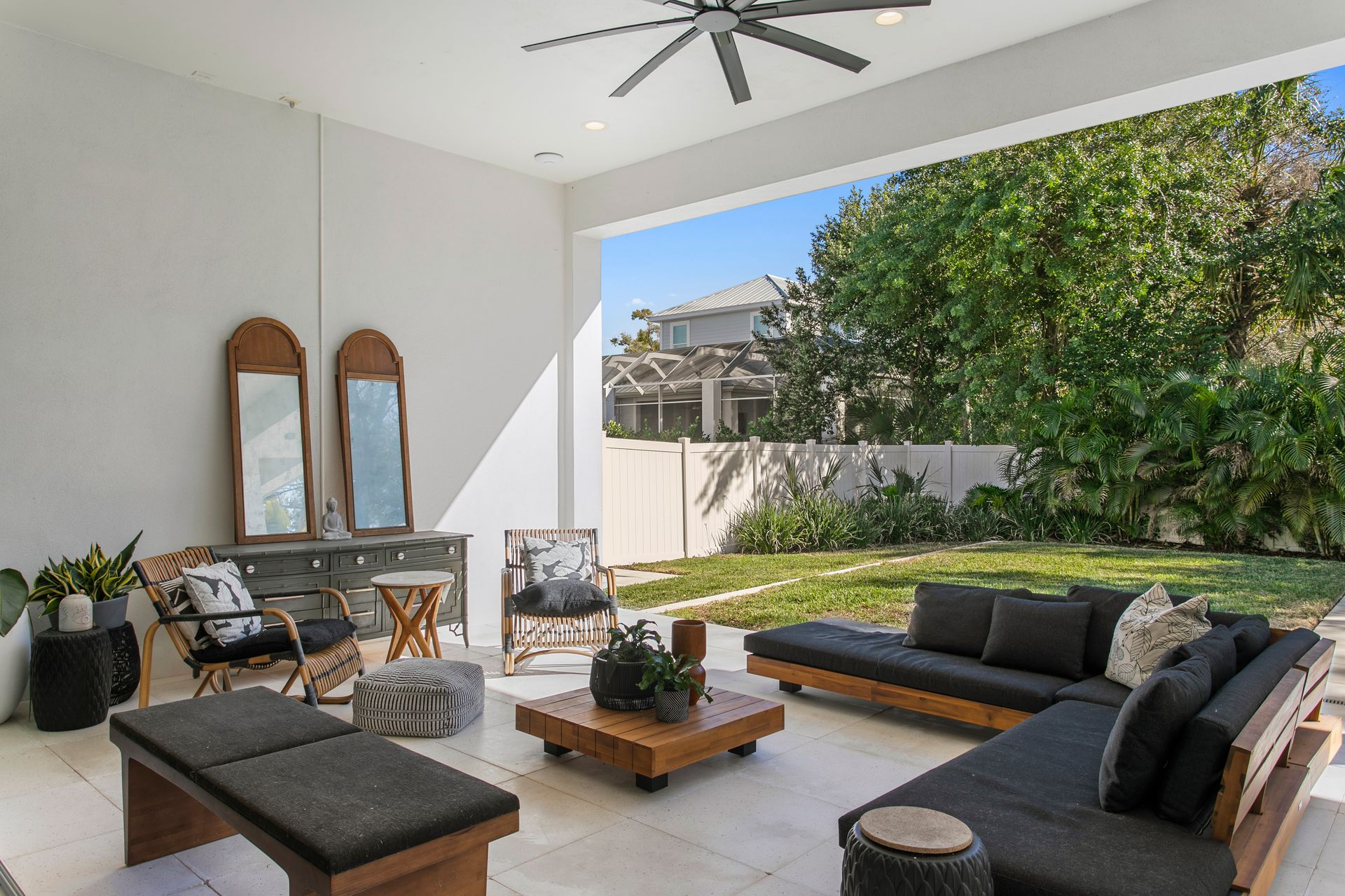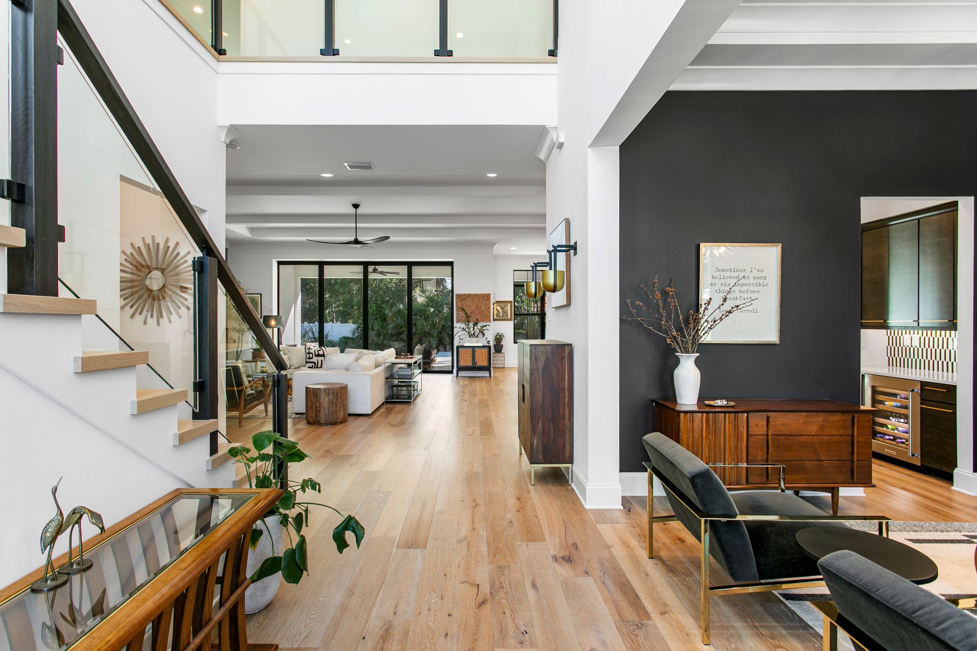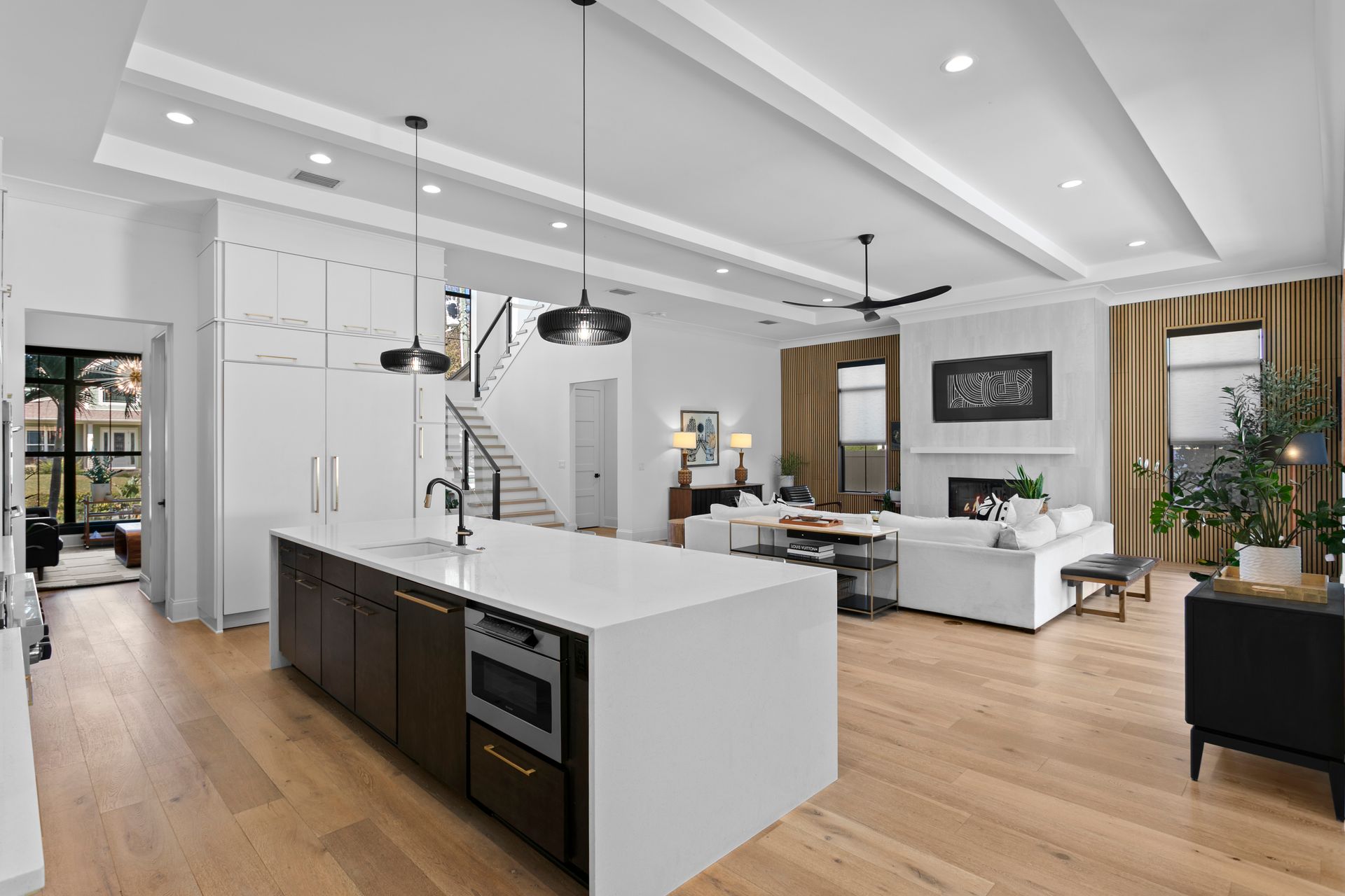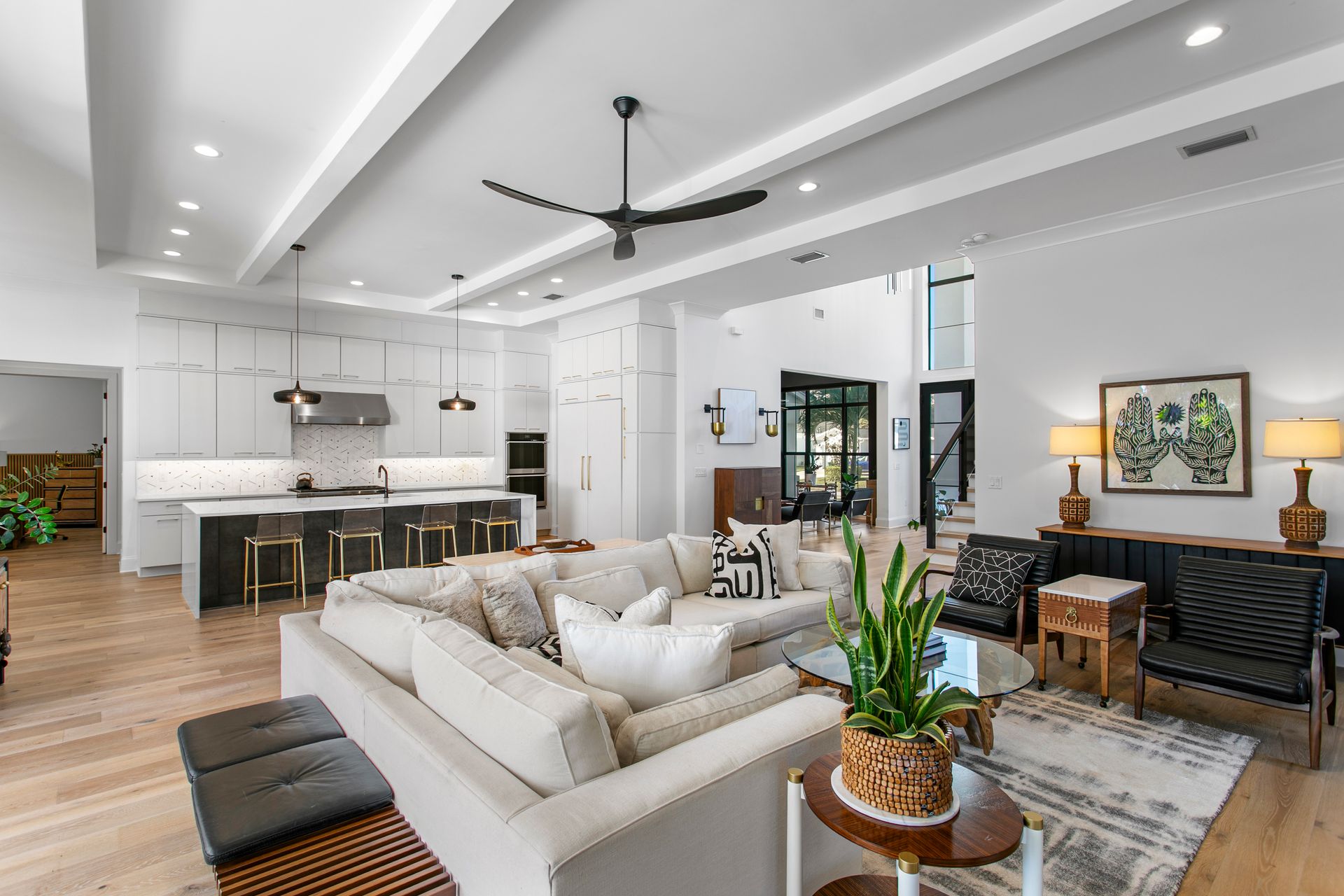 Experience refined coastal contemporary living in this exceptional Taralon Homes semi-custom residence, completed in 2022 and set on a 0.24-acre homesite in South Tampa. Offering 5,293 square feet of thoughtfully designed living space, the home blends timeless architecture with modern comfort and effortless elegance. A grand entry introduces a light-filled interior defined by 11-foot ceilings, a Level 5 drywall finish, wide-plank hardwood floors, and curated architectural detailing. The open-concept great room flows seamlessly into a chef’s kitchen featuring custom cabinetry, an oversized island, a Wolf natural gas cooktop, and a fully equipped butler’s pantry with beverage refrigeration and a Scotsman ice maker. Retractable sliding glass doors create a seamless indoor-outdoor connection to the covered lanai and resort-style backyard, where a heated saltwater pool and spa with sun shelf, dedicated pool bath, and generous green space provide a private outdoor setting.The flexible floor plan includes five bedrooms, five full and one half baths, along with a private office, bonus room, media room with wet bar, and a first-floor guest suite. The upstairs primary suite offers a serene retreat with a spa-inspired bath and spacious walk-in closet. Additional highlights include impact-rated windows and doors, smart home features, zoned high-efficiency HVAC, tankless water heaters, an in-wall pest system, and an oversized 3+ car split garage with workshop space. Ideally located in a non-flood zone, just minutes from TPA, downtown Tampa, and premier dining, shopping, and waterfront destinations.