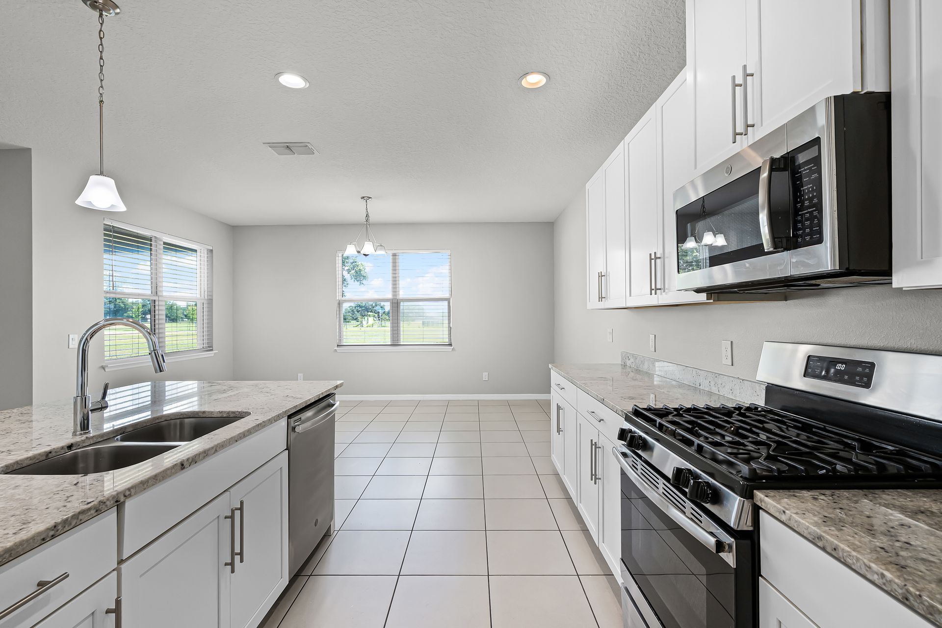 Welcome to 4307 Tigris Drive, Apopka, FL 32712—a stunning 4-bedroom, 3-bathroom home with a 3-car garage that’s completely move-in ready. Designed with a desirable three-way split floor plan with two primary bedroom ensuite, this single-story residence combines privacy, space, and style with modern upgrades throughout. From the moment you arrive, the charming front porch sets a welcoming tone. Inside, you’ll find fresh interior paint, new carpet in the bedrooms, and elegant tile flooring across the main living areas. Features like double-pane windows, a tankless gas water heater, a formal dining room, and a dry bar add comfort and convenience to everyday living. The heart of the home is the chef’s kitchen, showcasing 42” cabinets, quartz countertops, new soft-close cabinetry, stainless-steel appliances, and a large island with breakfast bar seating. This space blends seamlessly into the open living room, making it ideal for both everyday meals and entertaining. The primary suite is a relaxing retreat with a tray ceiling, spacious layout, and en-suite bathroom featuring dual sinks, a walk-in shower, and a large walk-in closet. Two bedrooms share a stylish bath with dual sinks, quartz counters, and a tub, while the fourth bedroom enjoys a private bath with quartz counters and a glass shower door. Step outside to the expansive lanai, perfect for morning coffee or al fresco dining. The oversized 3-car garage offers ample storage and versatility. Just steps away, the Northwest Recreation Complex offers lakes, sports fields, picnic areas, and trails. With its thoughtful design, modern upgrades, and prime location, 4307 Tigris Drive is more than a home—it’s a lifestyle. Schedule your private showing today!