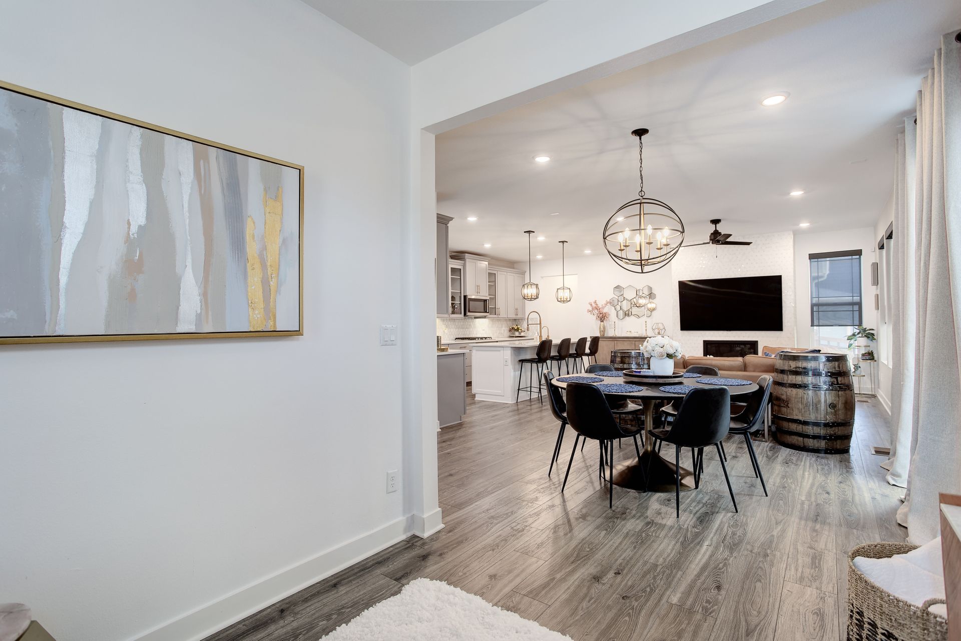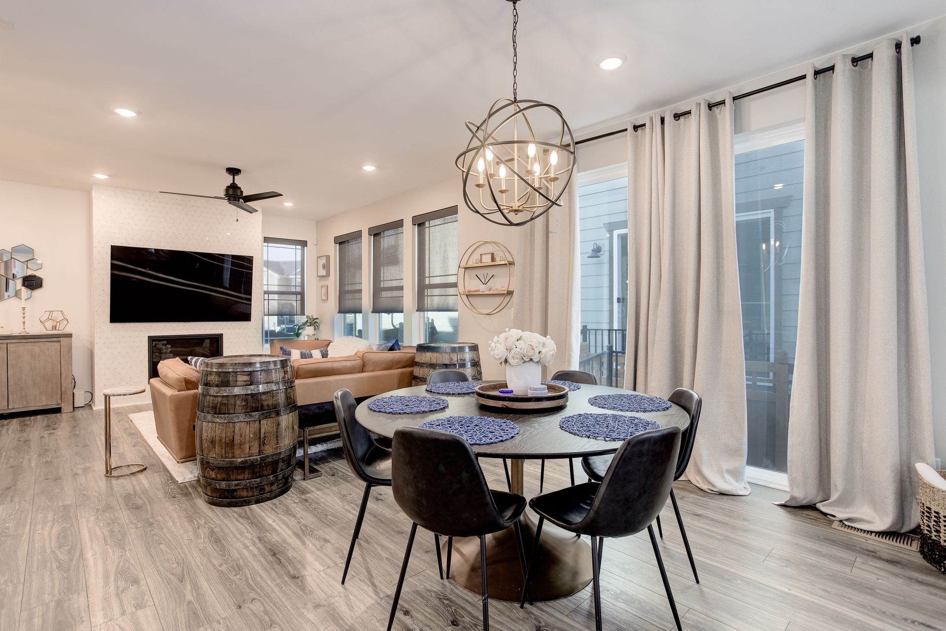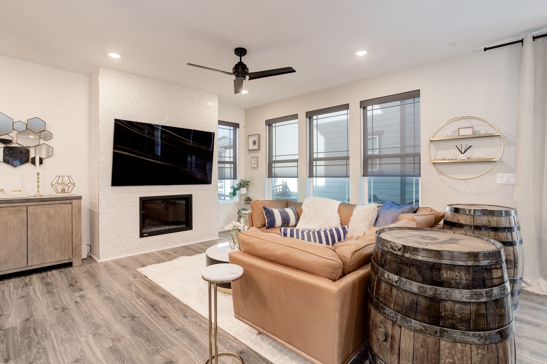 Discover modern elegance in this beautifully upgraded 3-bedroom, 3-bathroom townhome, designed for both style and comfort. With $50,000 in premium upgrades, this home features high-end finishes, custom details, and meticulous craftsmanship throughout. Venture inside to an inviting open-concept living space showcasing a gourmet kitchen with sleek countertops, stylish cabinetry, a large walk-in pantry, and top-tier appliances. The living room is highlighted by a breathtaking floor-to-ceiling fireplace adorned with luxury upgraded tile. Just off the spacious dining area, a flexible den or office space adds extra versatility. The primary suite offers a spa-like ensuite bath and a generous walk-in closet, while two additional bedrooms provide ample space for guests or a home office. For ultimate convenience, the laundry room is thoughtfully located on the second floor. Every detail has been carefully considered, from custom blinds and built-in closets to premium fireplace tiles, making this home truly stand out. Enjoy the convenience of an attached garage, energy-efficient features, and a low-maintenance lifestyle. Nestled in a highly desirable community with easy access to shopping, dining, and top-rated schools, this townhome is truly a must-see!