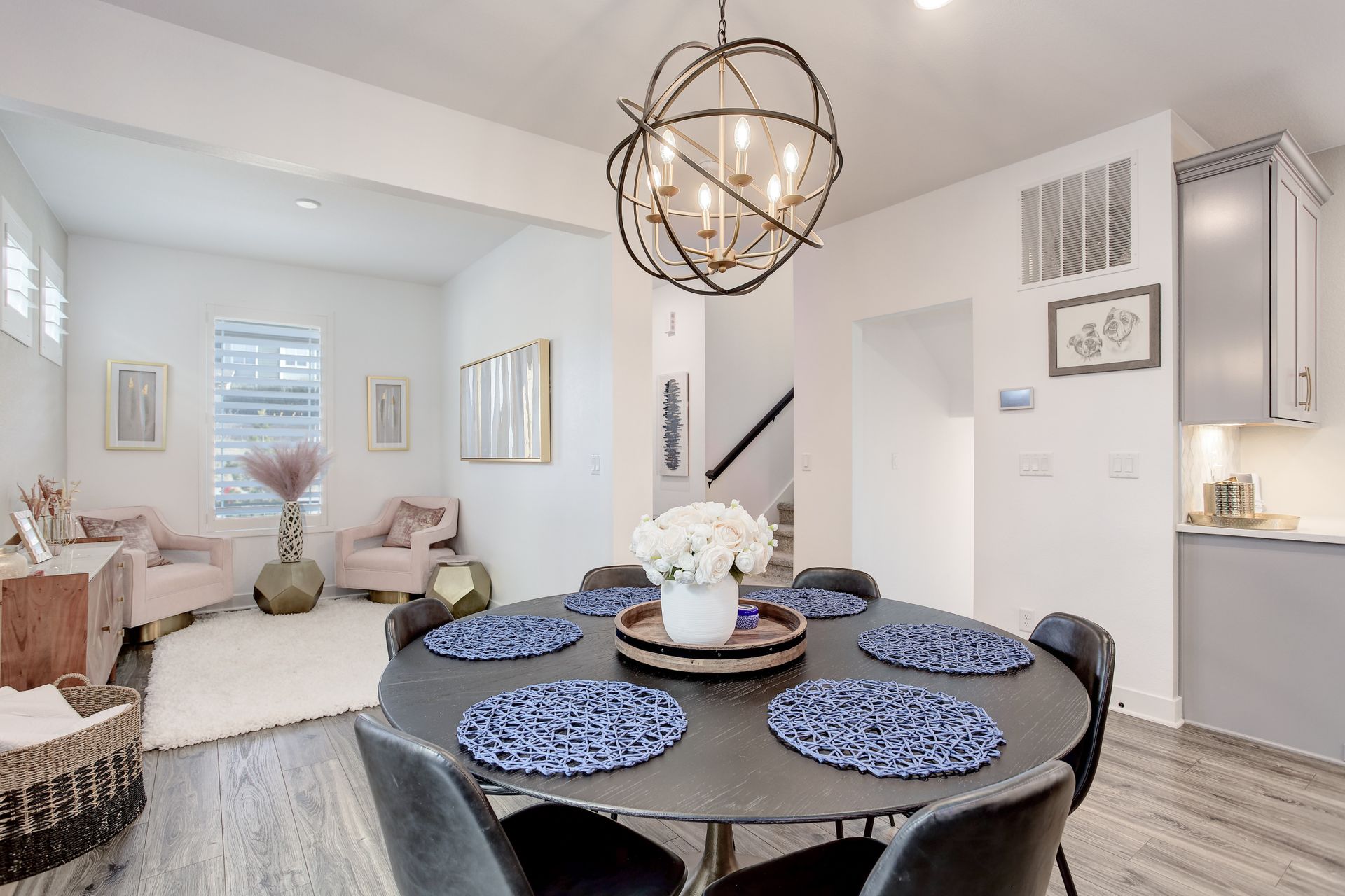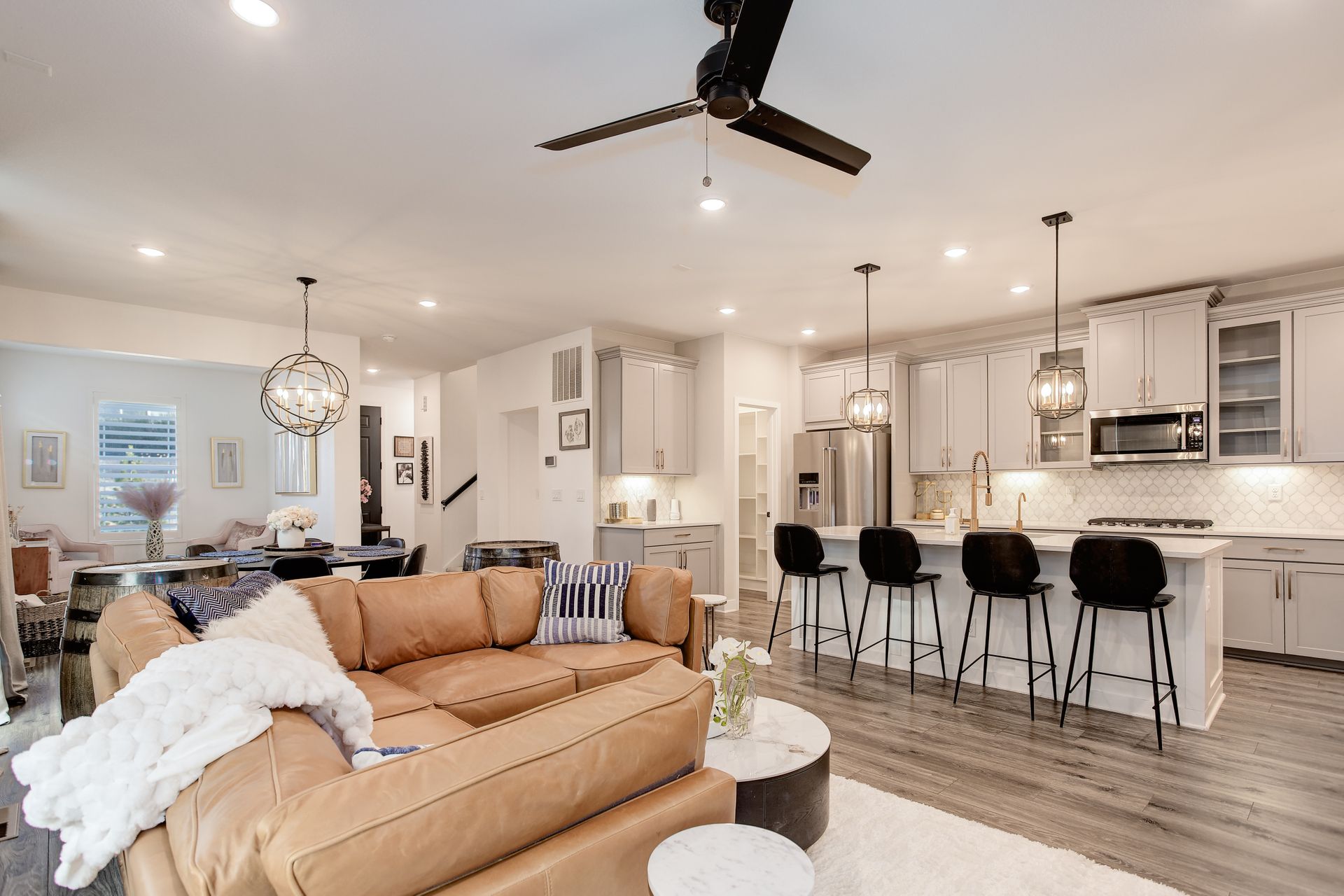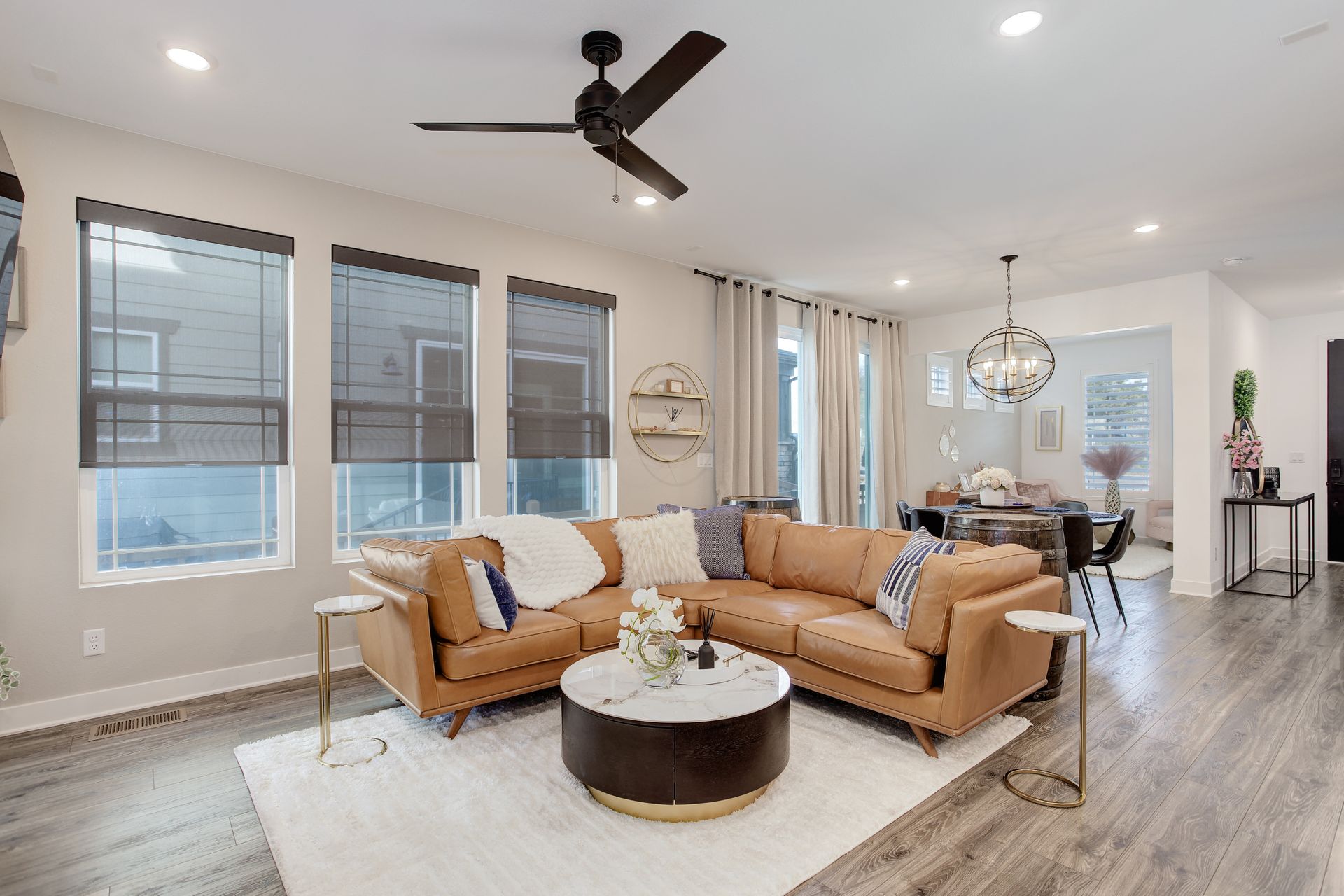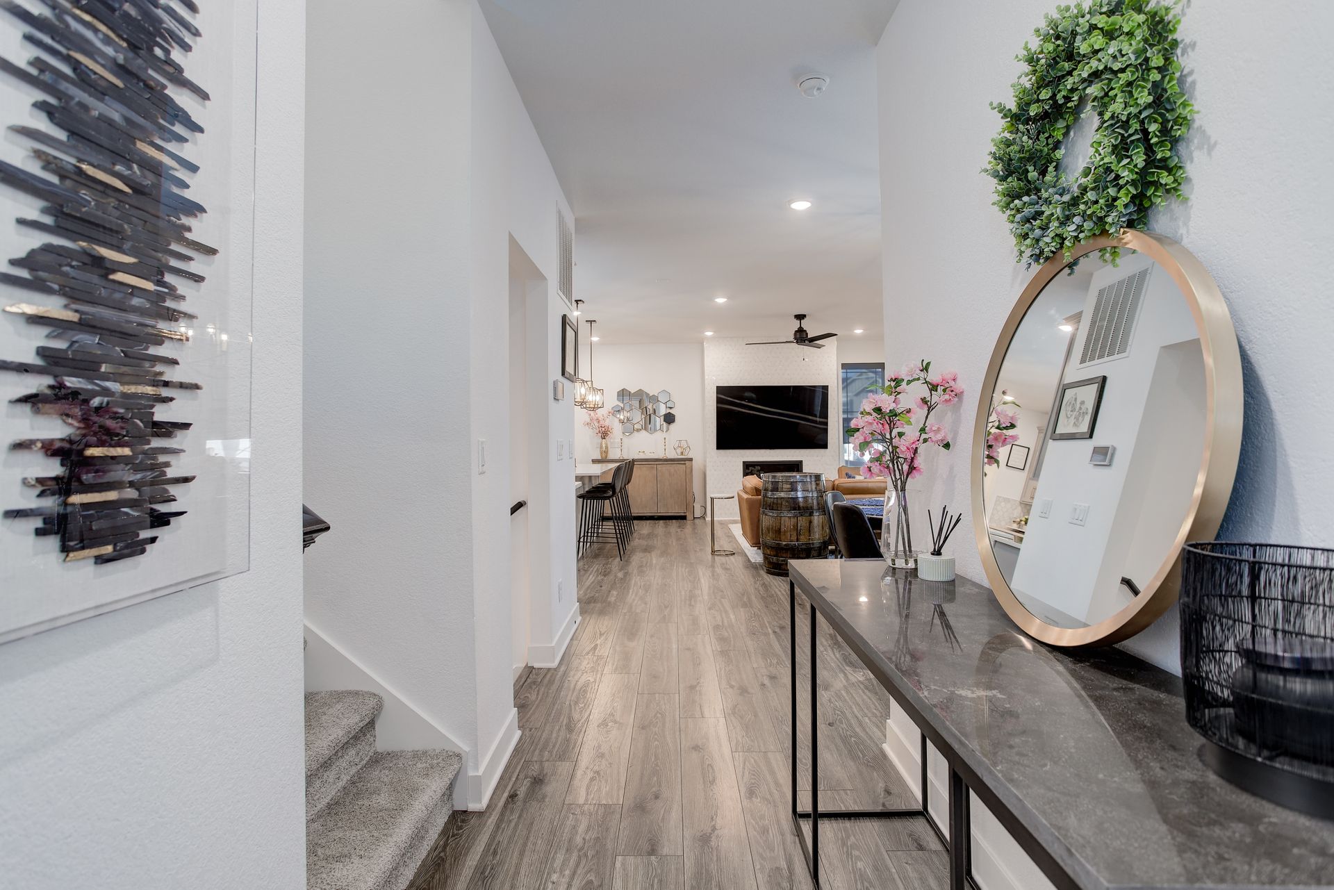 Discover modern elegance in this beautifully upgraded 3-bedroom, 3-bathroom townhome, designed for both style and comfort. With $50,000 in premium upgrades, this home features high-end finishes, custom details, and meticulous craftsmanship throughout. Venture inside to an inviting open-concept living space showcasing a gourmet kitchen with sleek countertops, stylish cabinetry, a large walk-in pantry, and top-tier appliances. The living room is highlighted by a breathtaking floor-to-ceiling fireplace adorned with luxury upgraded tile. Just off the spacious dining area, a flexible den or office space adds extra versatility. The primary suite offers a spa-like ensuite bath and a generous walk-in closet, while two additional bedrooms provide ample space for guests or a home office. For ultimate convenience, the laundry room is thoughtfully located on the second floor. Every detail has been carefully considered, from custom blinds and built-in closets to premium fireplace tiles, making this home truly stand out. Enjoy the convenience of an attached garage, energy-efficient features, and a low-maintenance lifestyle. Nestled in a highly desirable community with easy access to shopping, dining, and top-rated schools, this townhome is truly a must-see!