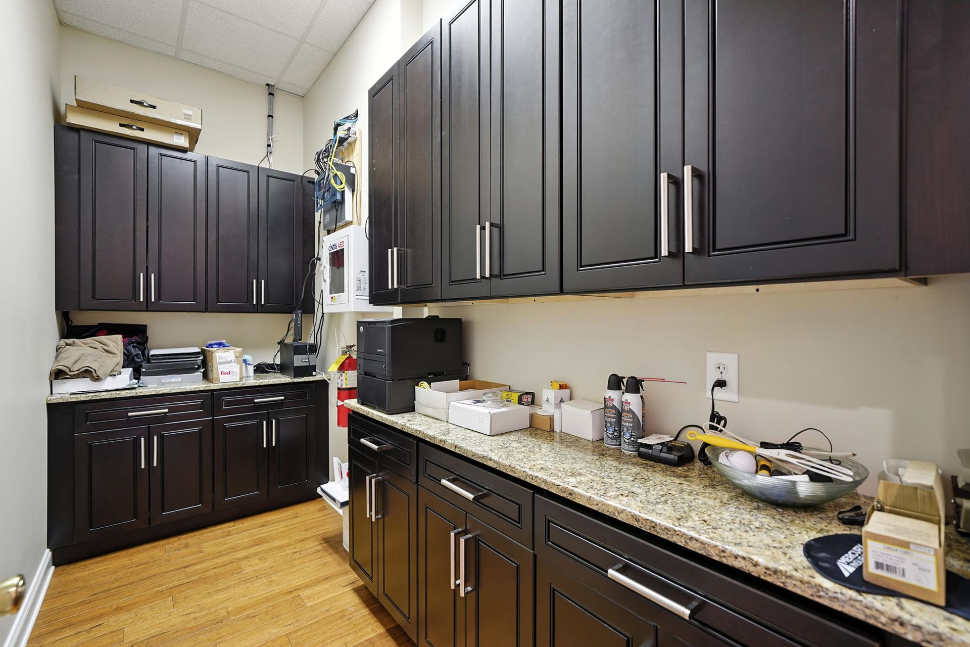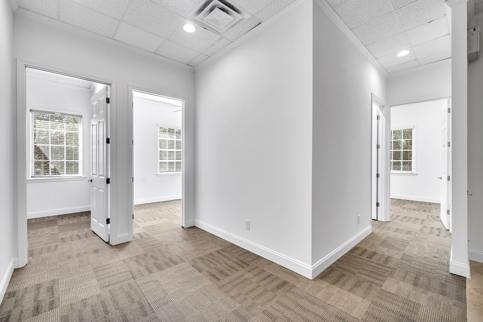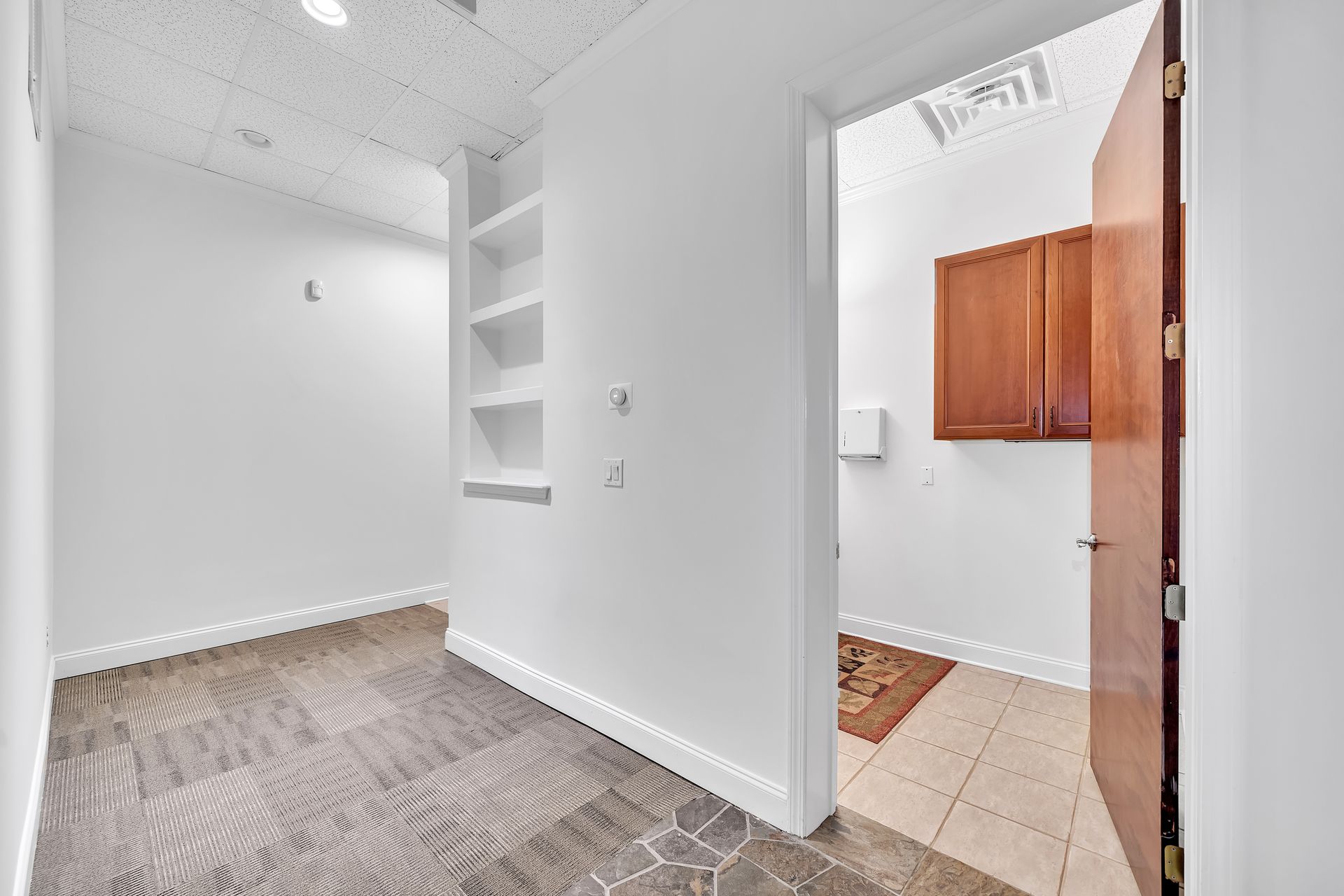 Suite 203 - 1,516 square feet of office space featuring 6 private offices, a welcoming reception area, a storage room, and a convenient break area with cabinetry, sink, and space for a refrigerator/coffee station, and one restroom. Offices vary in size, offering flexibility for team members, executives, or meeting spaces. Offered at $24/SF on a Modified Gross Lease, which includes water/gas utilities, taxes, trash, and exterior maintenance with no additional CAM charges.