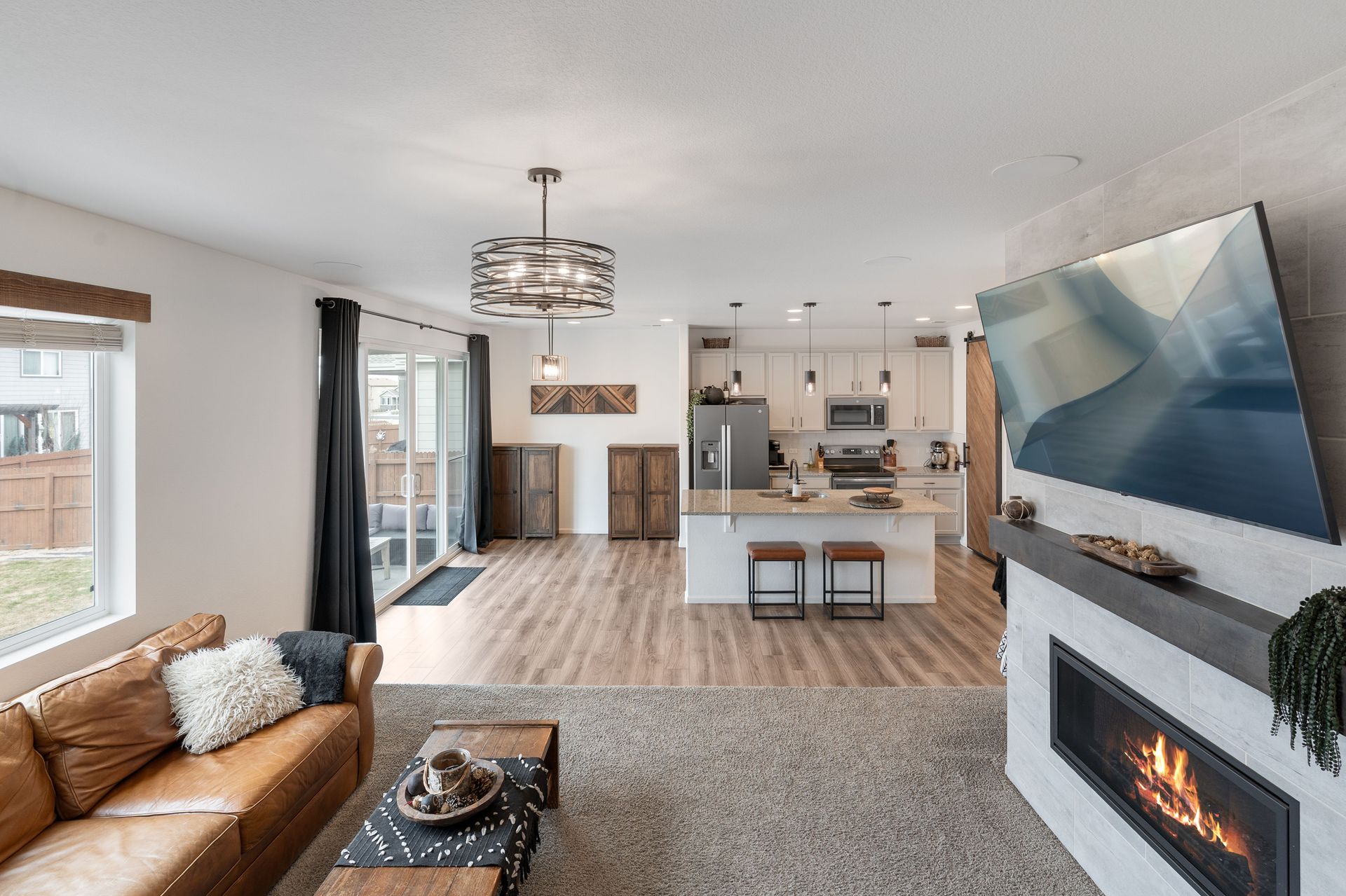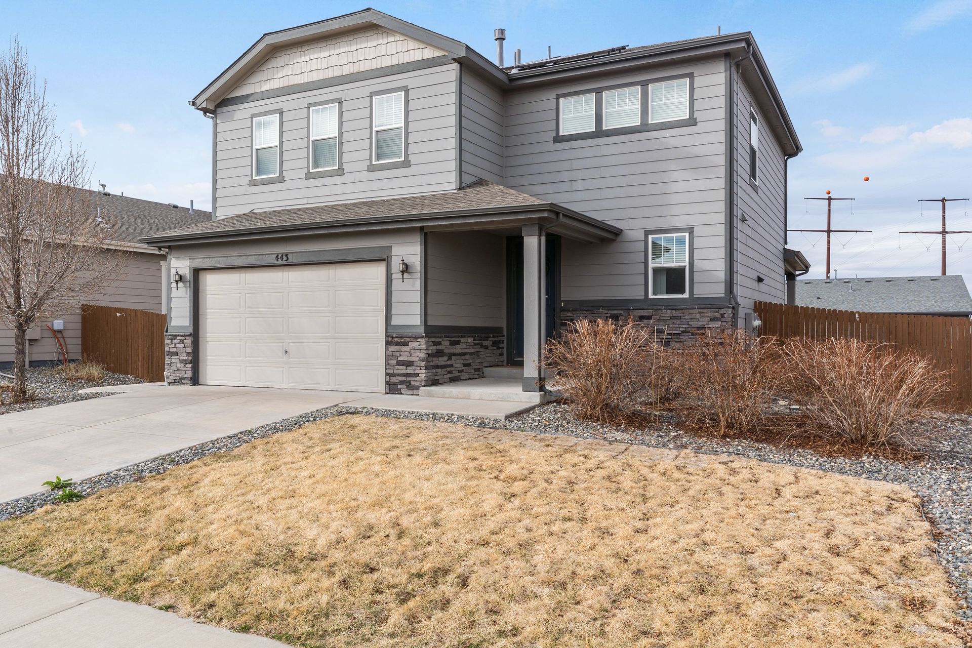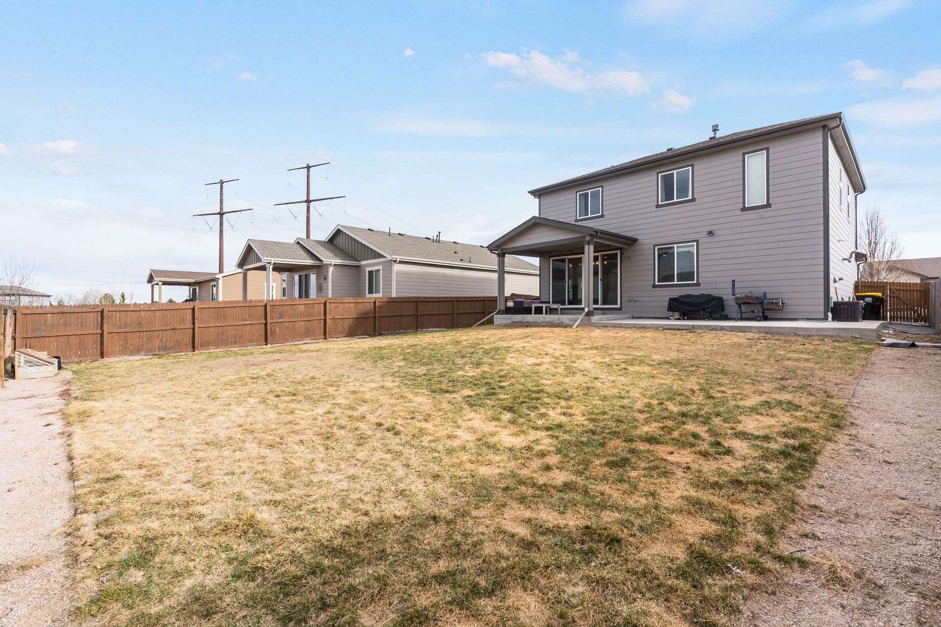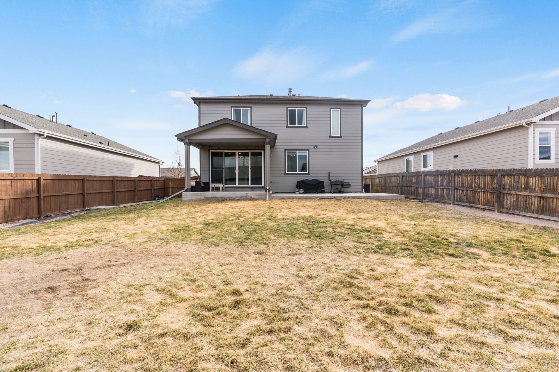 Beautiful two-story Richmond home in Founders Village, located within a cul-de-sac location. Modern contemporary with three bedrooms plus a loft. Kitchen includes GE Slate appliances, gray cabinets, large granite island, and pantry with a sliding barn door. Dining area with a dual patio door system to a covered patio in the backyard. Main level family room with soaring ceilings, impressive modern gas fireplace and surround sound speaker system. Wrought iron spindle staircase leads to the loft, all three bedrooms, and a full bathroom. Primary bedroom suite includes a walk-in closet and ceiling fan. Primary bath has a gray barn door entry, upgraded spa-like shower, and dual vanities. Convenient upper-level laundry room with attached cabinets. Fully fenced flat backyard with covered concrete patio and additional concrete pad for a gas grill and patio furniture. Located within the highly rated Douglas County School District, with easy access to Rock Ridge Elementary. Close to neighborhood walking trails, Founders Community Park, and local shopping. Easy access to the Outlets at Castle Rock, Castle Rock Hospital, and I-25.
