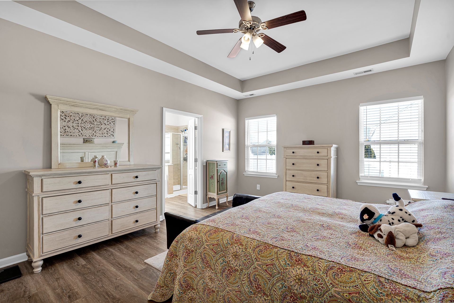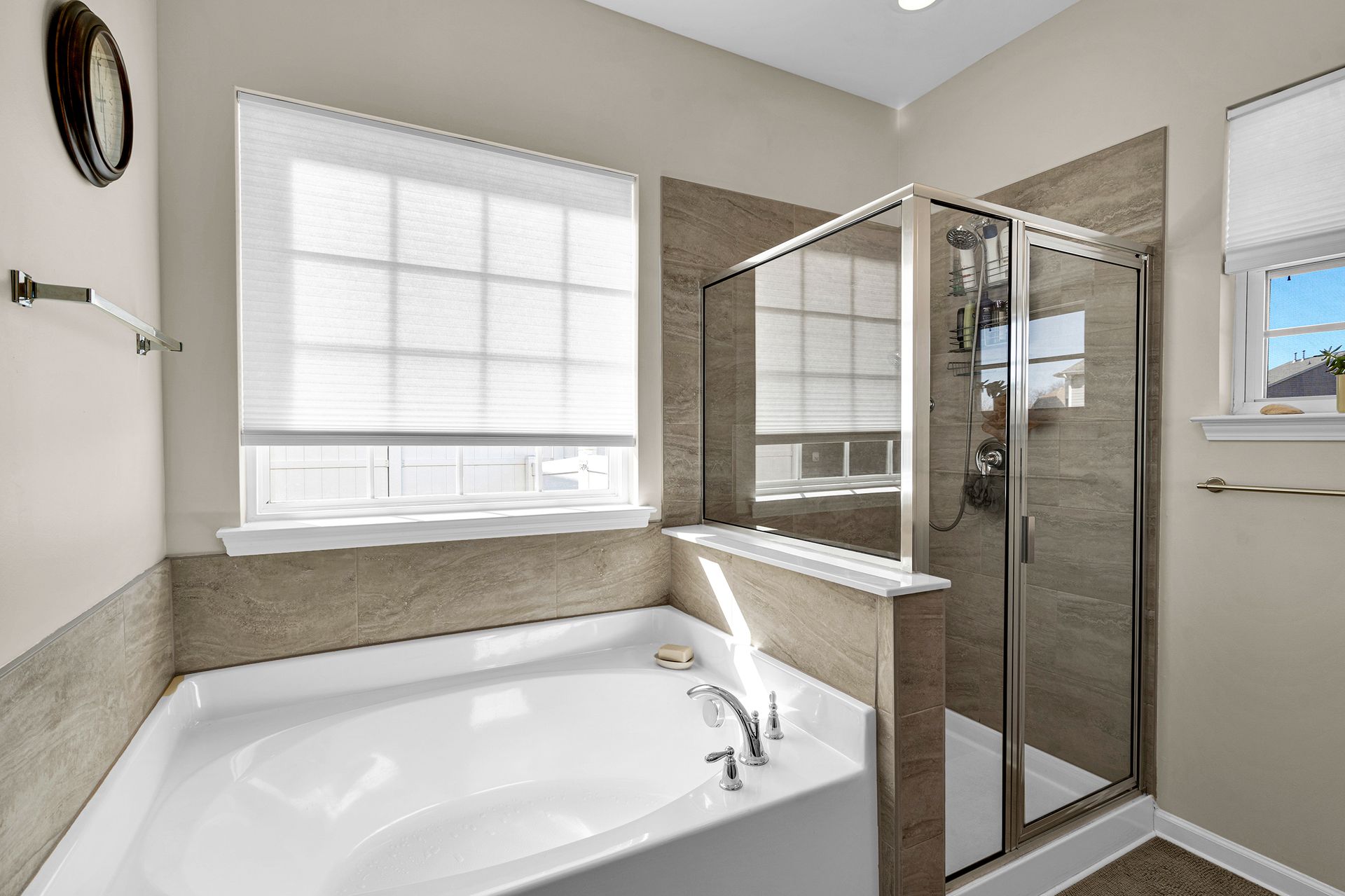 Inside, the updates shine. The kitchen features new quartz countertops, white tile backsplash and a dual convection oven, creating a modern, efficient space for everyday meals or weekend gatherings. Fresh interior paint brightens every room, and the primary bathroom now includes a beautiful new shower update for a spa‑like touch.