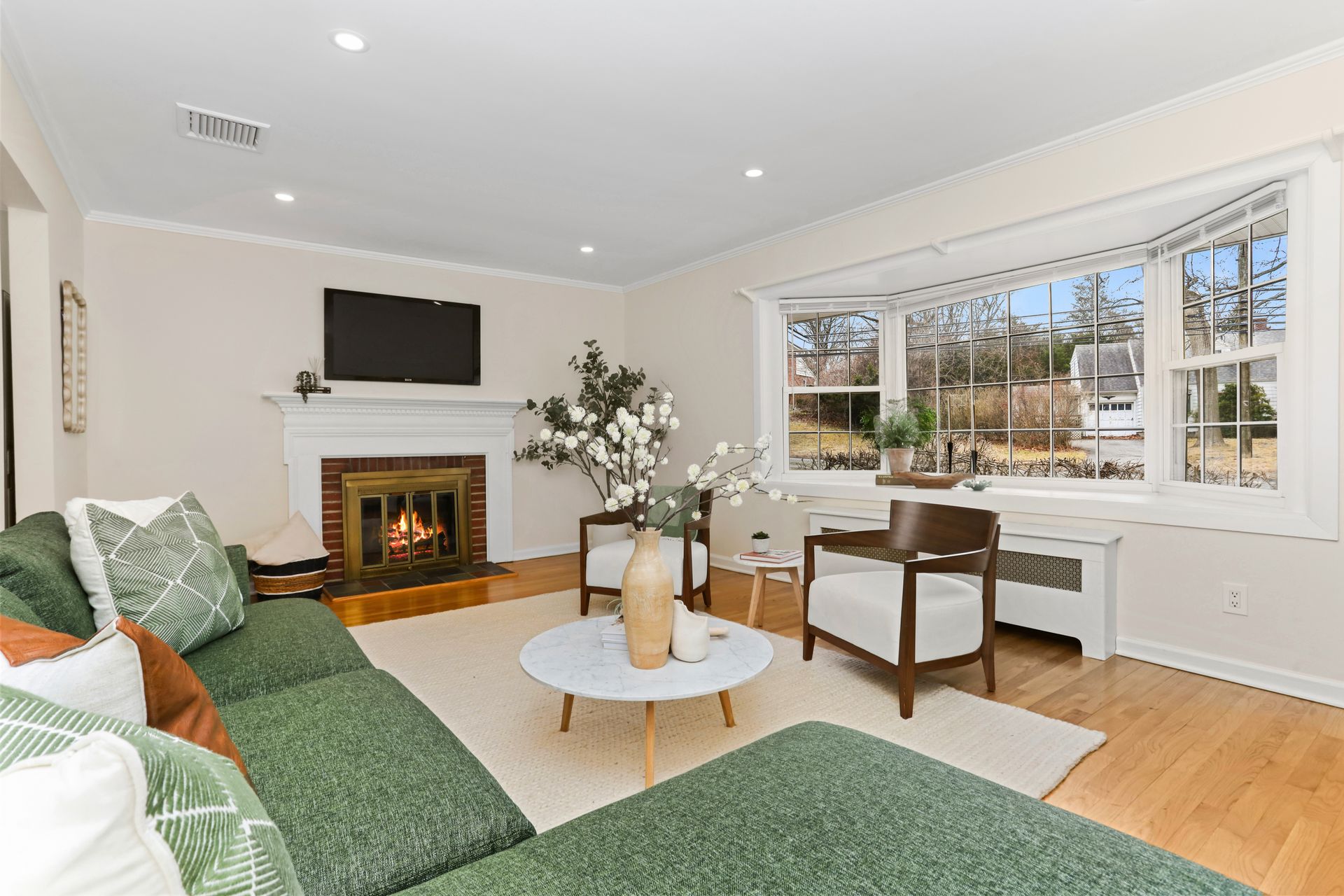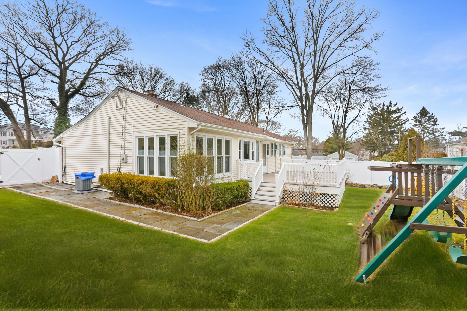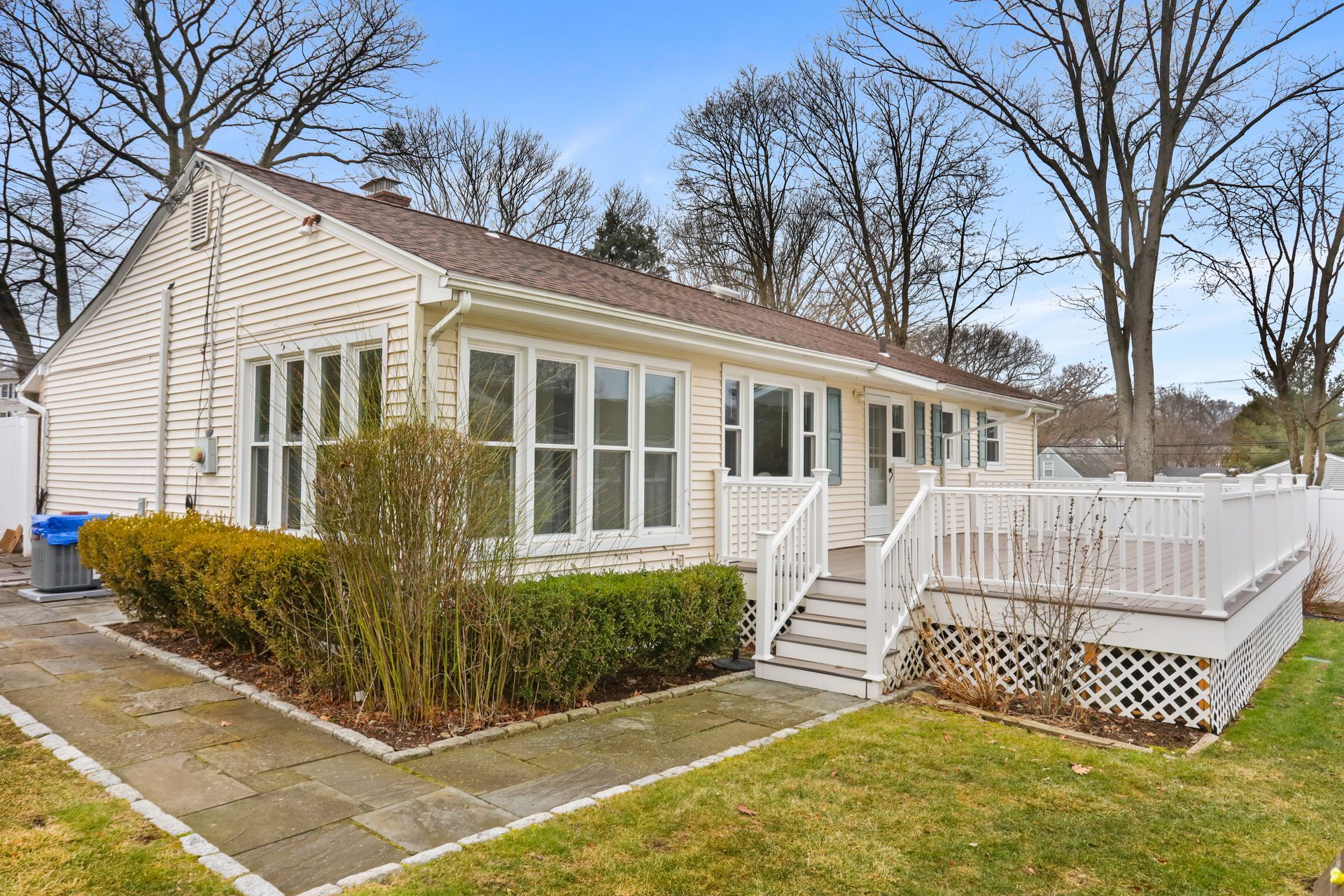 Updated ranch in Riverside offering easy one-level living. This three bedroom, two bath home features a light-filled living room with large bay window and fireplace, a spacious eat-in kitchen with granite countertops, and a sunroom that works well as an office or casual living space. A spacious deck off the kitchen looks out over the fenced, level backyard. The finished lower-level adds flexible space for a playroom, gym or media room, along with separate laundry and generous storage. Attached one car garage. Recent improvements include new HVAC and new water heater. Set on an oversized 0.28 acre corner lot with room to expand, this home is close to Metro North, beaches, parks and shopping. Zoned for North Mianus School and Eastern Middle School, two of the top ranked public schools in Connecticut.