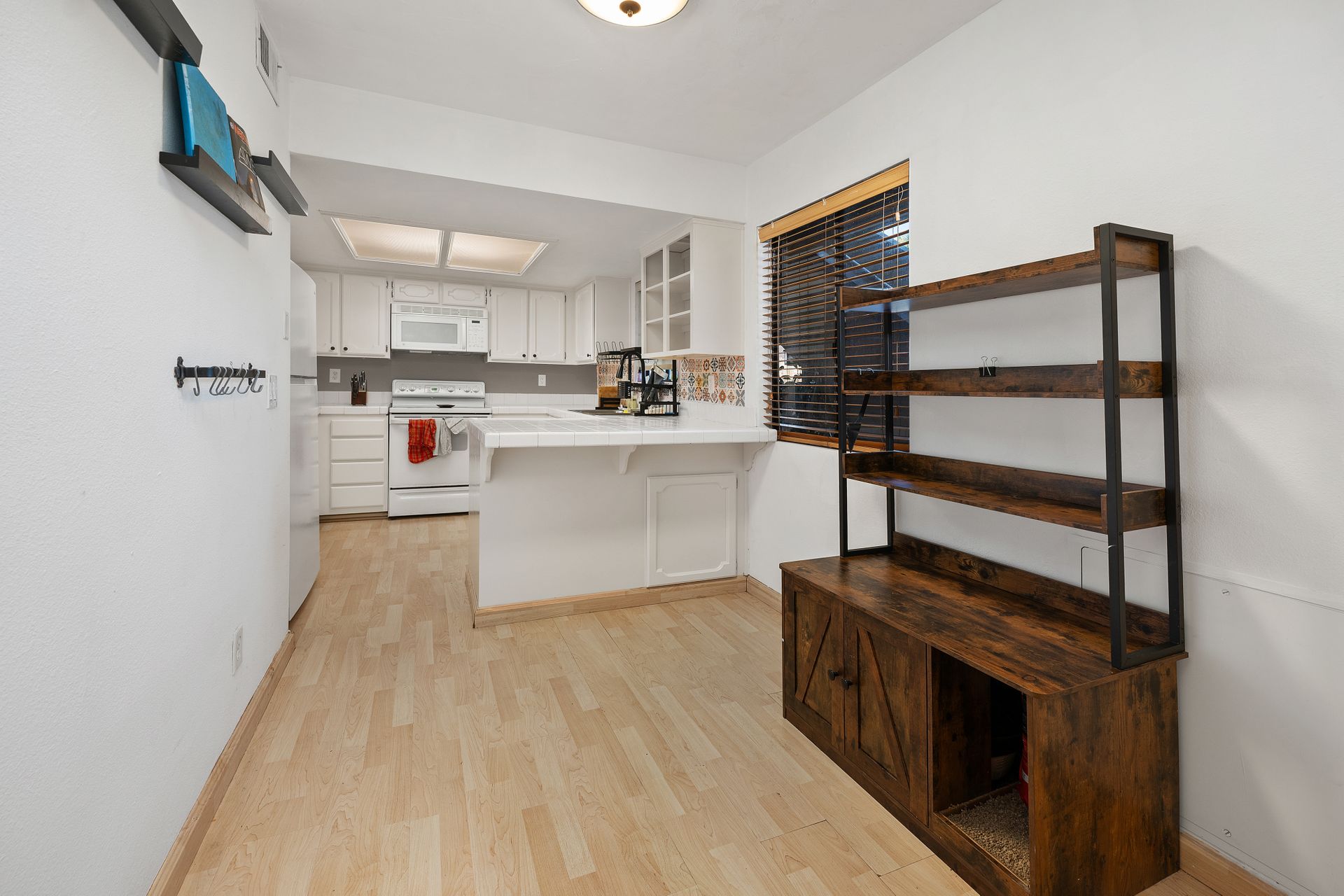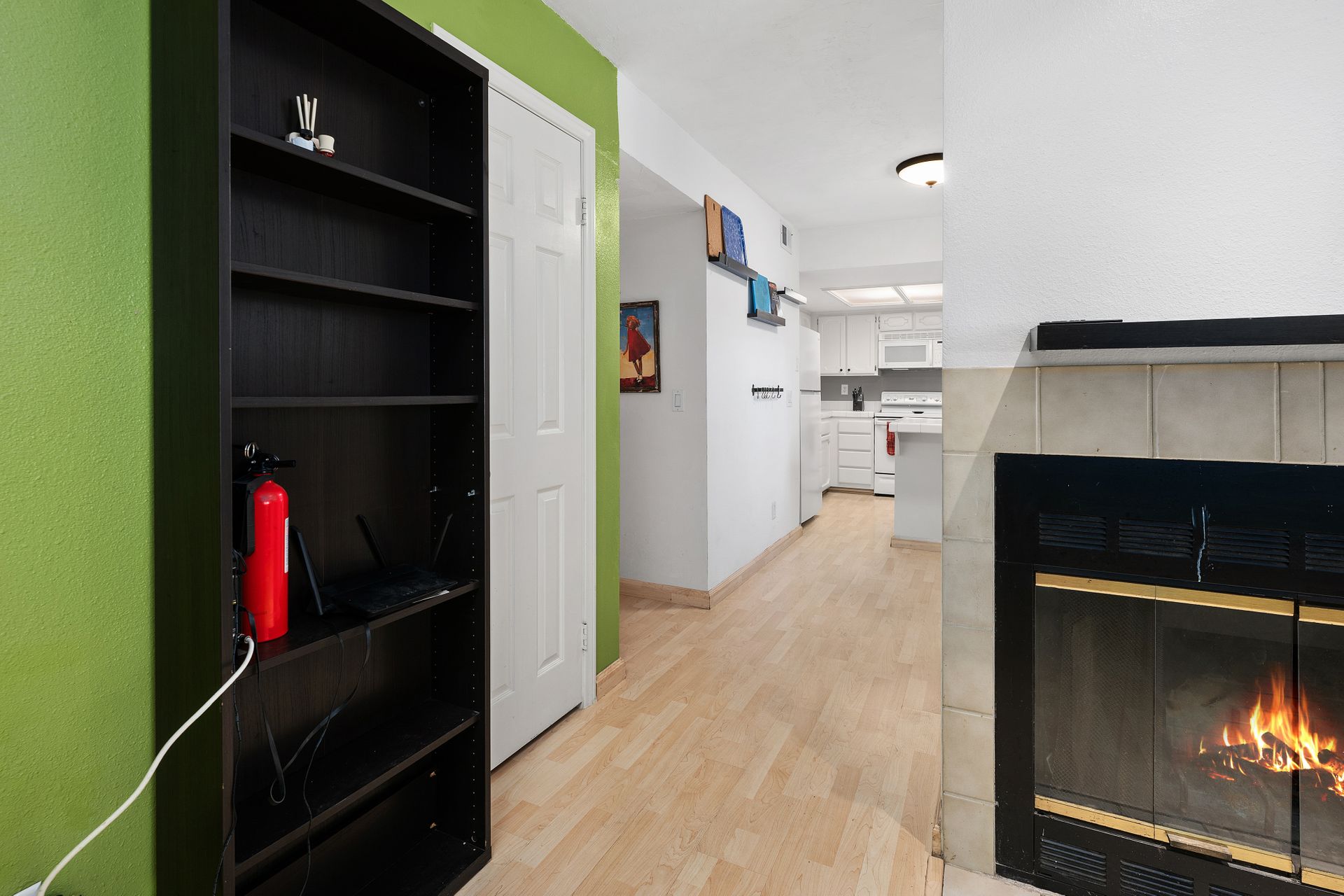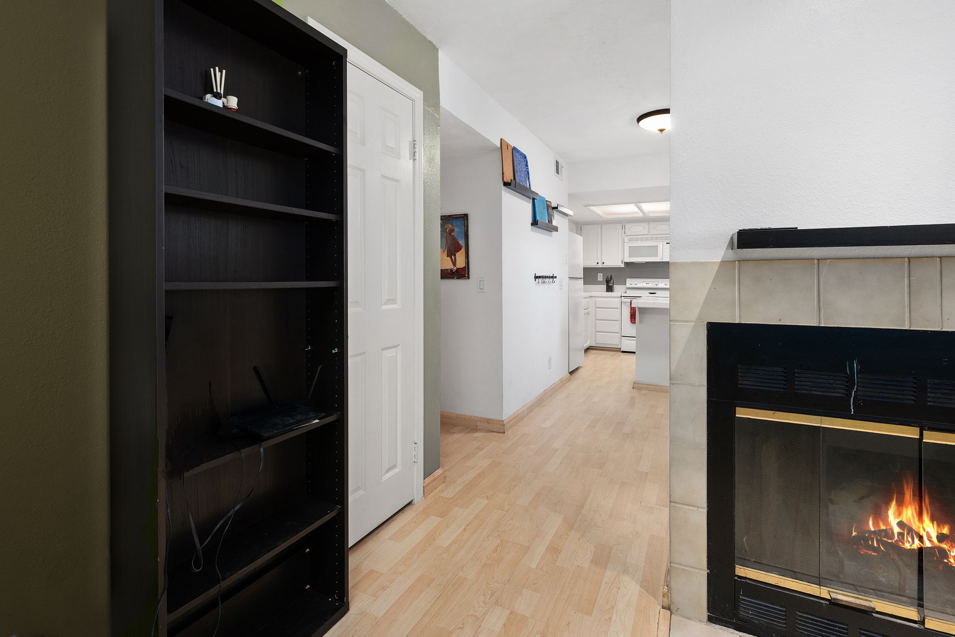 Welcome to this University Heights condo, where you are close to everything San Diego has to offer! Step inside this ground-floor, two-bedroom, two-bathroom property and be greeted by the living room, which is equipped with a fireplace, hardwood floors, and recessed lighting. Adjacent, you will find the well-maintained kitchen boasting plenty of storage and counter space for the chef at heart. This home comes with a washer and dryer in the unit for easy laundry days. The primary bedroom has an en-suite bathroom with a standing shower and a sliding glass door for access to the patio. The outside patio offers great sunlight, room for extra storage, and access to the street. This property has easy access to great shopping and dining, Downtown San Diego, Balboa Park, and the thriving Hillcrest neighborhood.