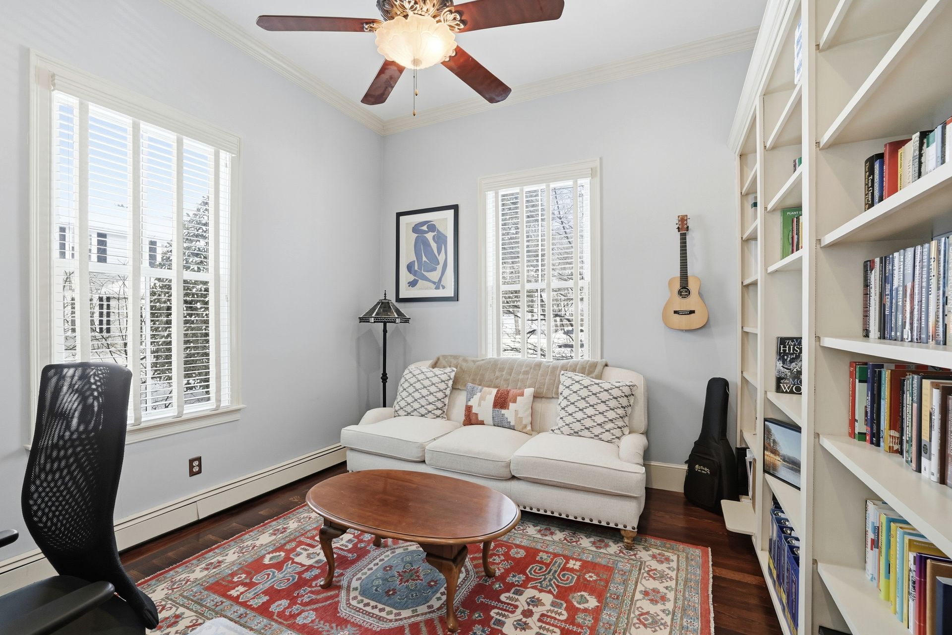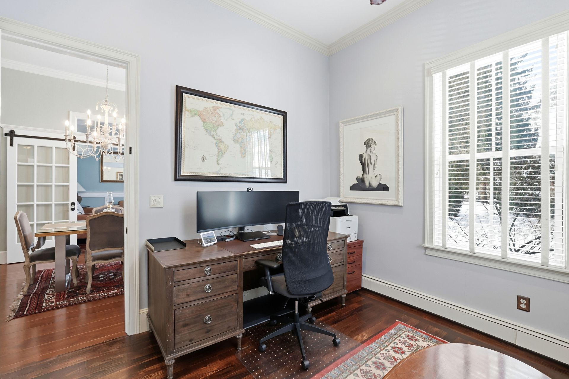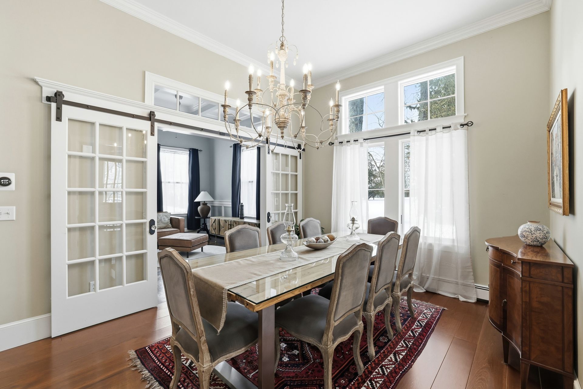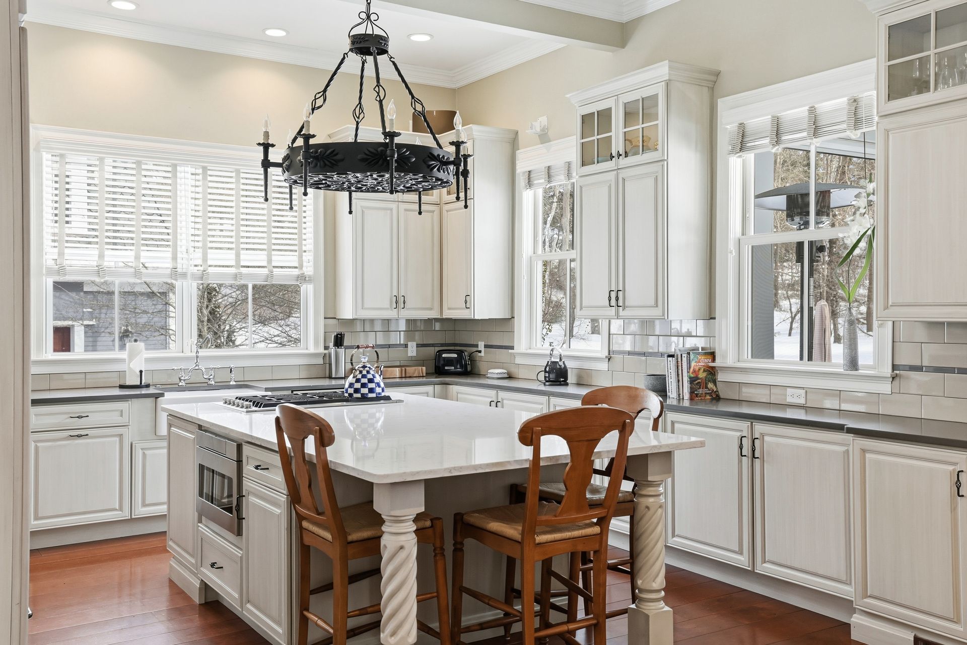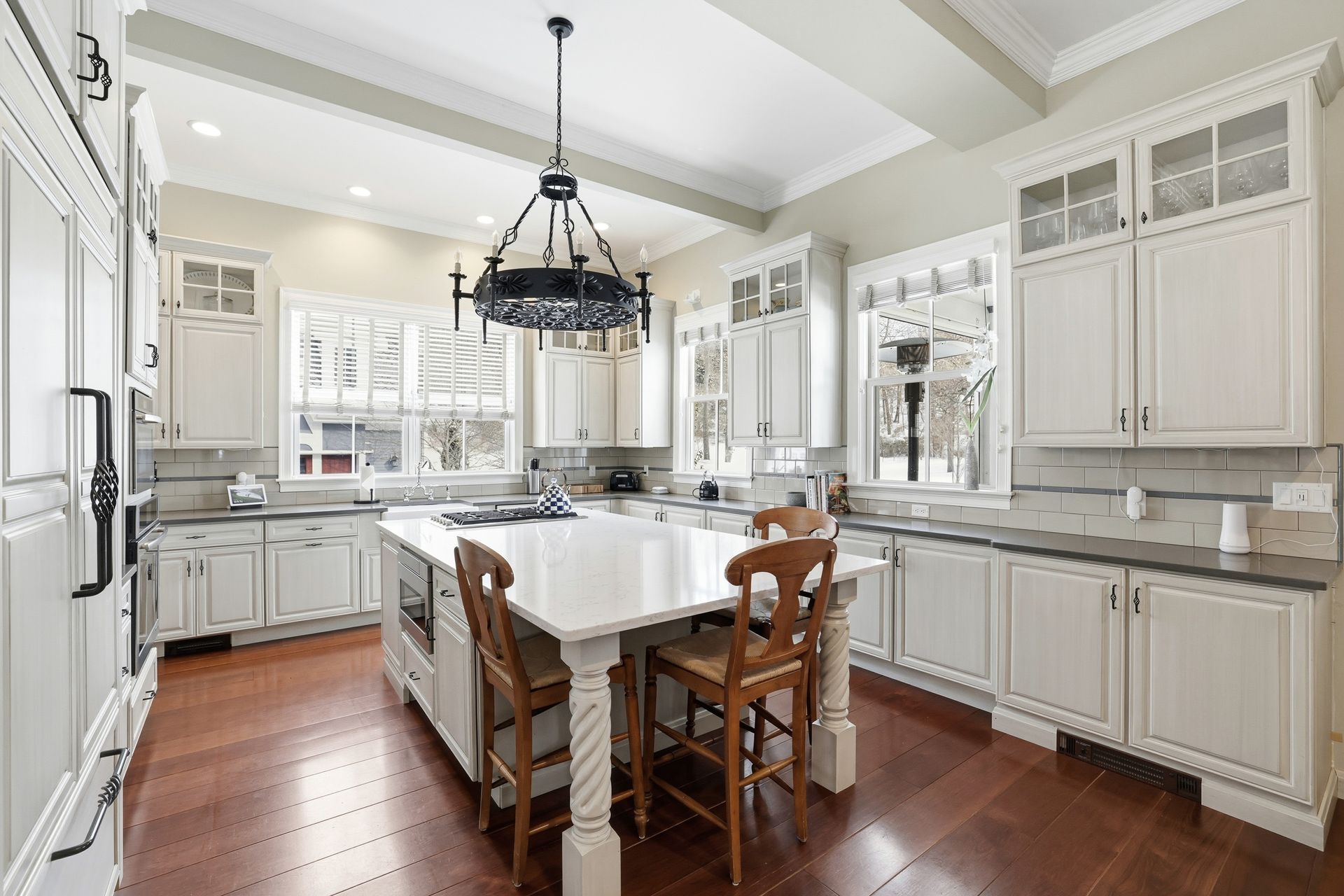 Ideally located in the heart of downtown Cohasset, just steps from the picturesque Common, this beautifully renovated residence is set on a serene, level .75-acre lot. Thoughtfully transformed in 2017, the home offers four bedrooms and 3.5 baths, with soaring 12-foot ceilings on the main level that enhance its timeless character and modern appeal. Rich millwork and custom built-ins are featured throughout. The expansive kitchen, appointed with high-end appliances, a wet bar, and a fireplaced sitting area, overlooks the beautifully landscaped grounds and opens to a covered porch with pull-down screens, creating a seamless screened-in porch. A stone patio with firepit and grill provides an ideal setting for entertaining and outdoor living. The primary suite features a fireplace, radiant heat in the bath and walk-in closet, and a private deck with a spiral staircase. A stunning carriage house built in 2016 offers exceptional flexibility, ideal for guests, a private office, studio, or rental opportunity.