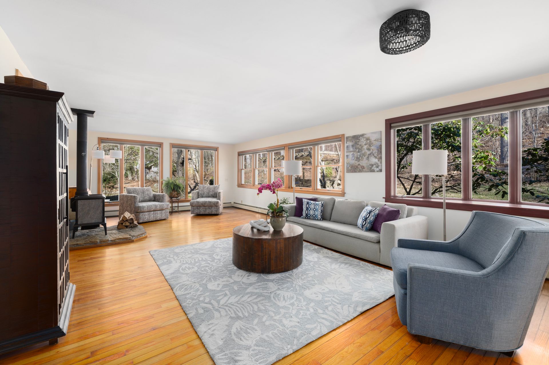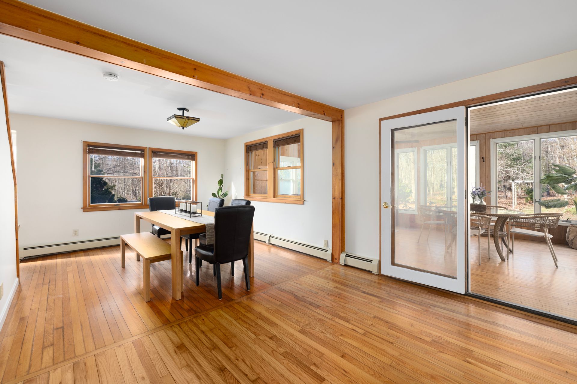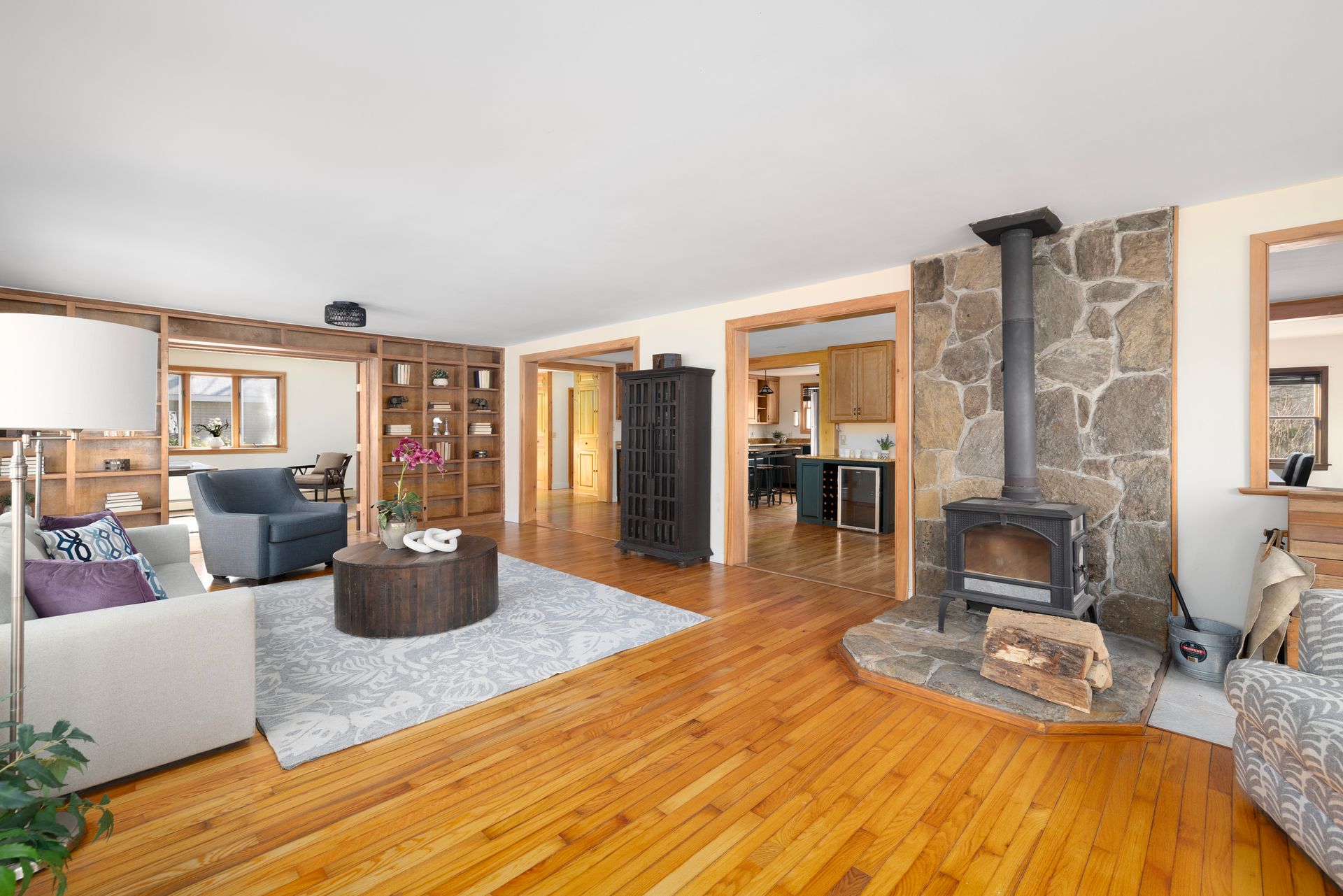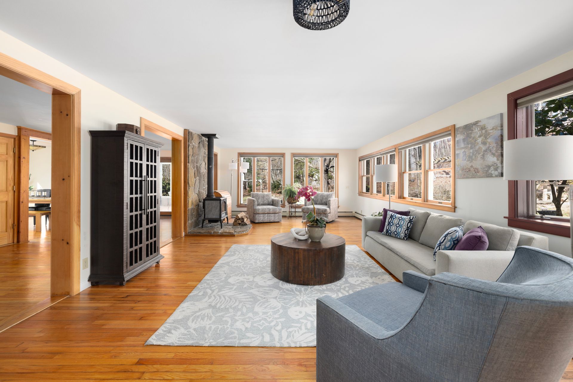 Blending timeless character with modern convenience, this updated historic home lies on approximately two acres within beloved Harmony Village. Surrounded by landscaped gardens, mature perennials, and natural beauty, it’s a serene haven just minutes from local shops and amenities. Inside, an abundance of natural light fills the open, inviting layout. Hardwood floors, a spacious living room with a wood stove, and a large dining area create a warm and welcoming atmosphere—ideal for everyday living and entertaining.