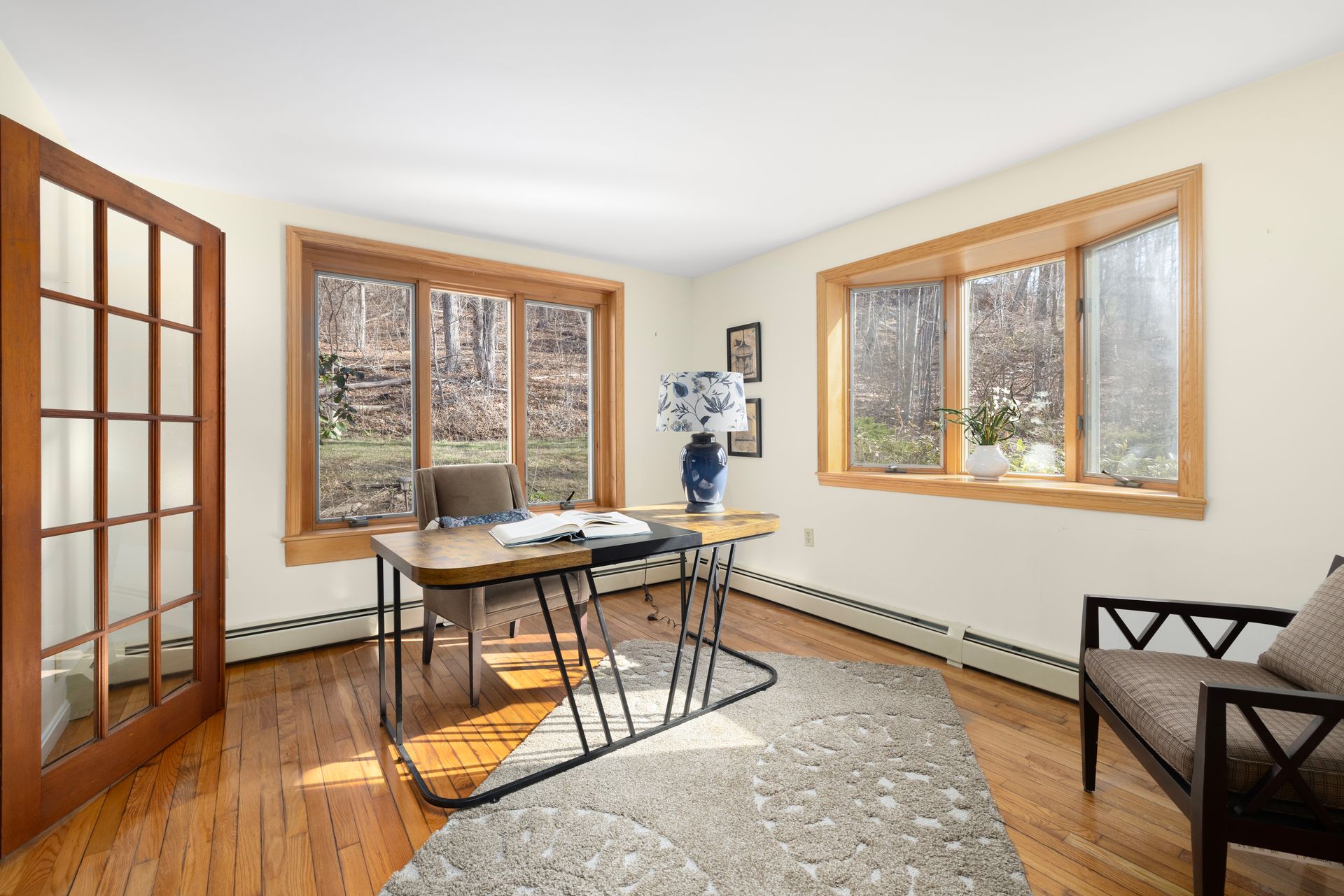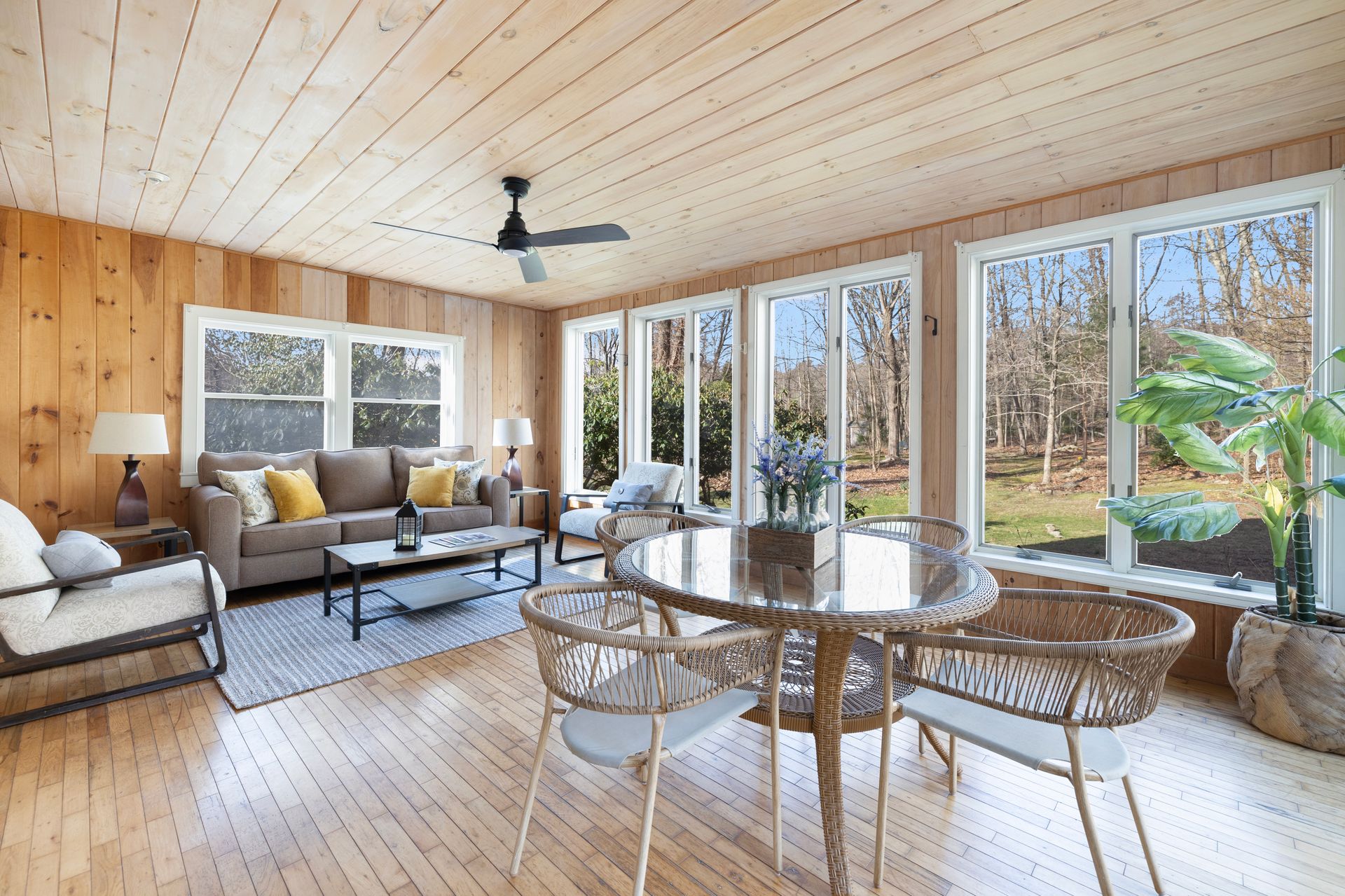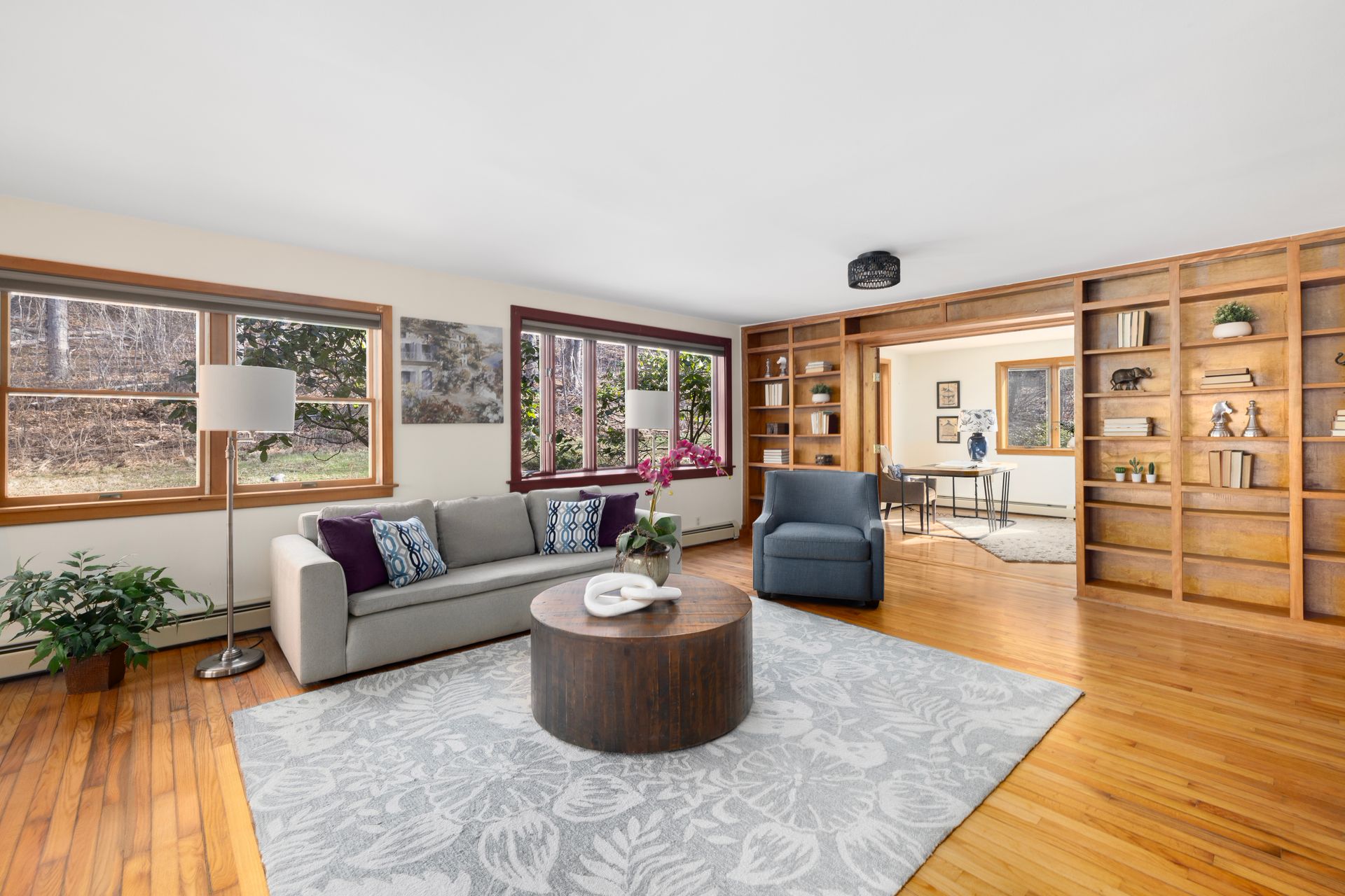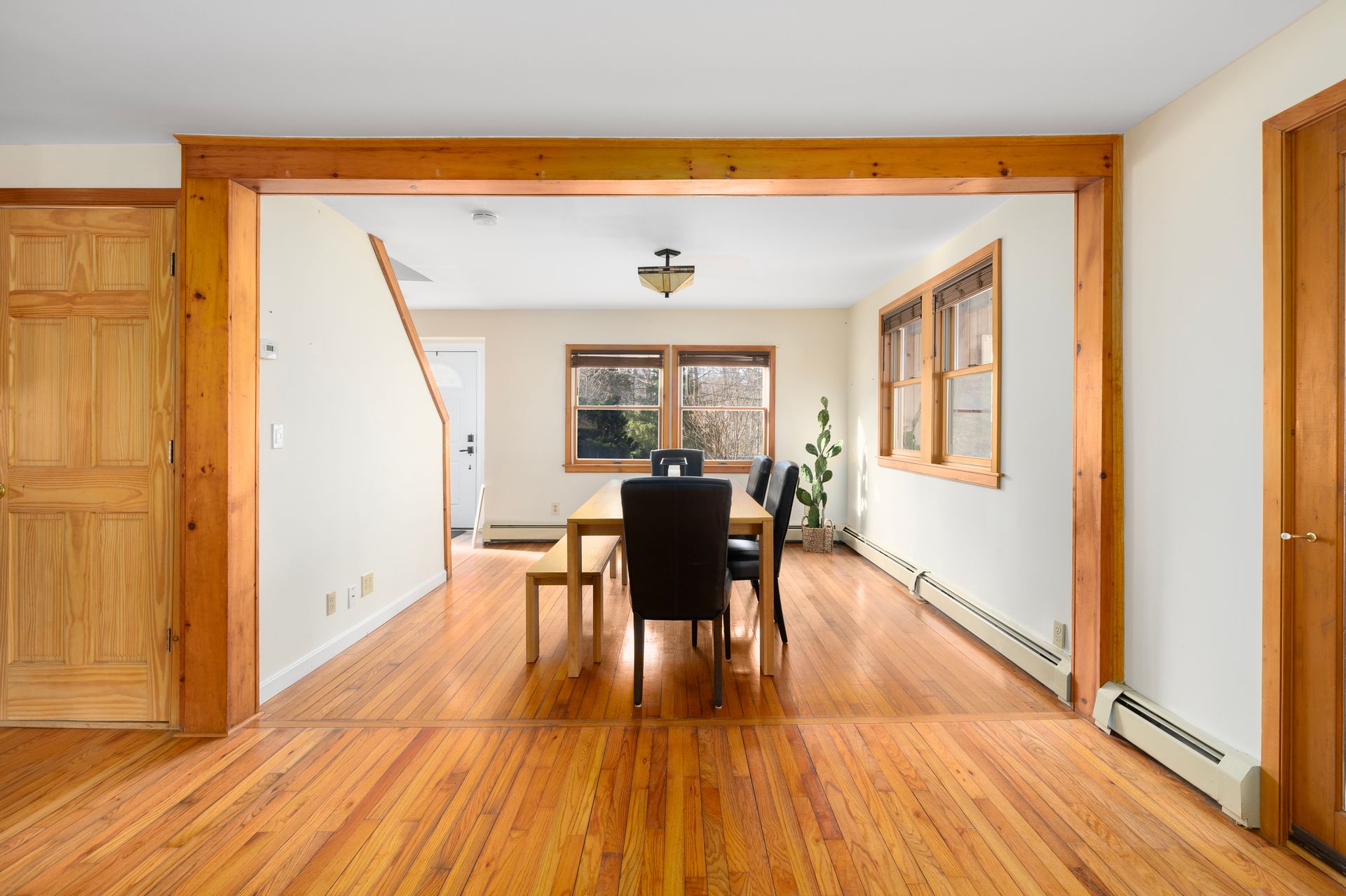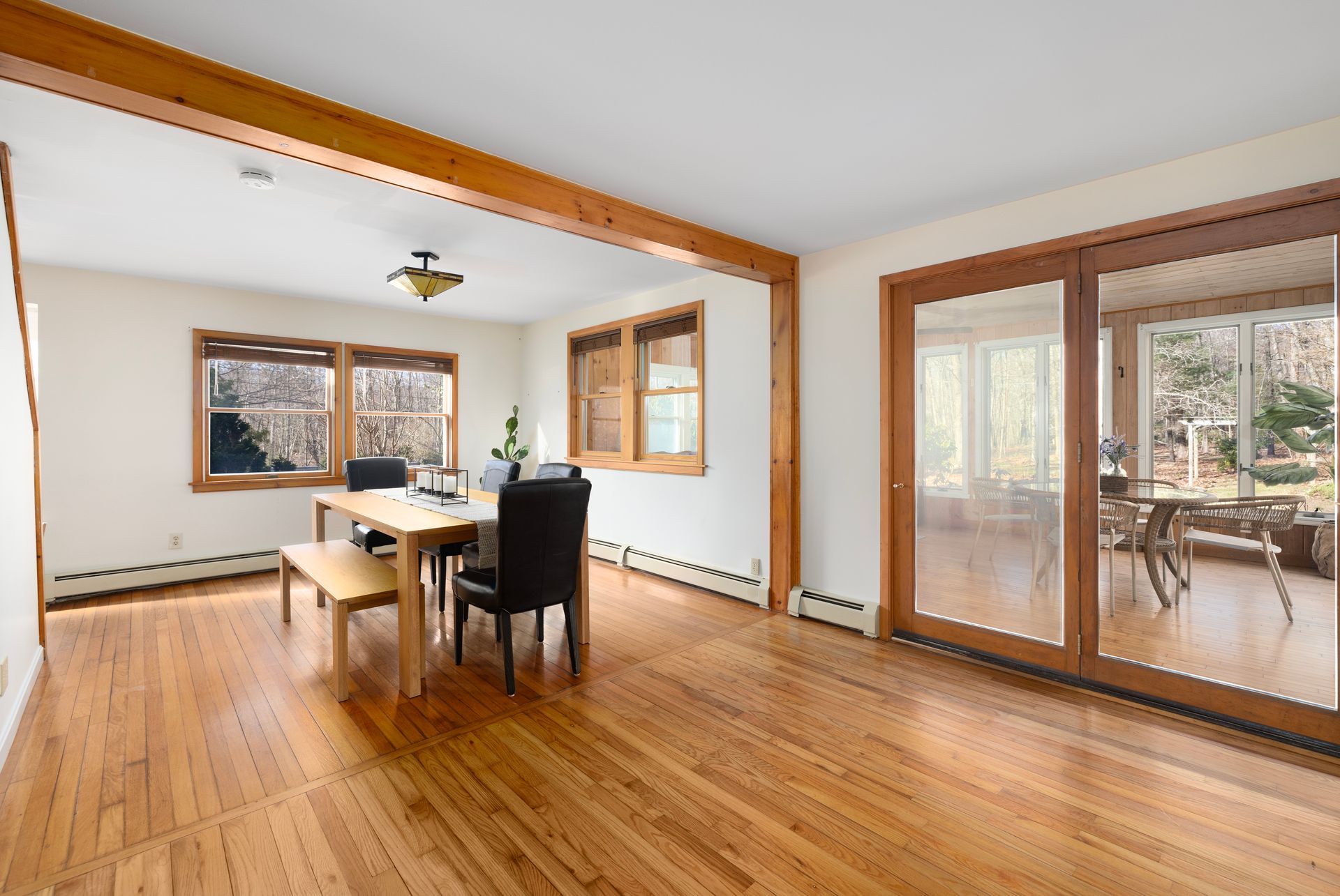 Blending timeless character with modern convenience, this updated historic home lies on approximately two acres within beloved Harmony Village. Surrounded by landscaped gardens, mature perennials, and natural beauty, it’s a serene haven just minutes from local shops and amenities. Inside, an abundance of natural light fills the open, inviting layout. Hardwood floors, a spacious living room with a wood stove, and a large dining area create a warm and welcoming atmosphere—ideal for everyday living and entertaining.