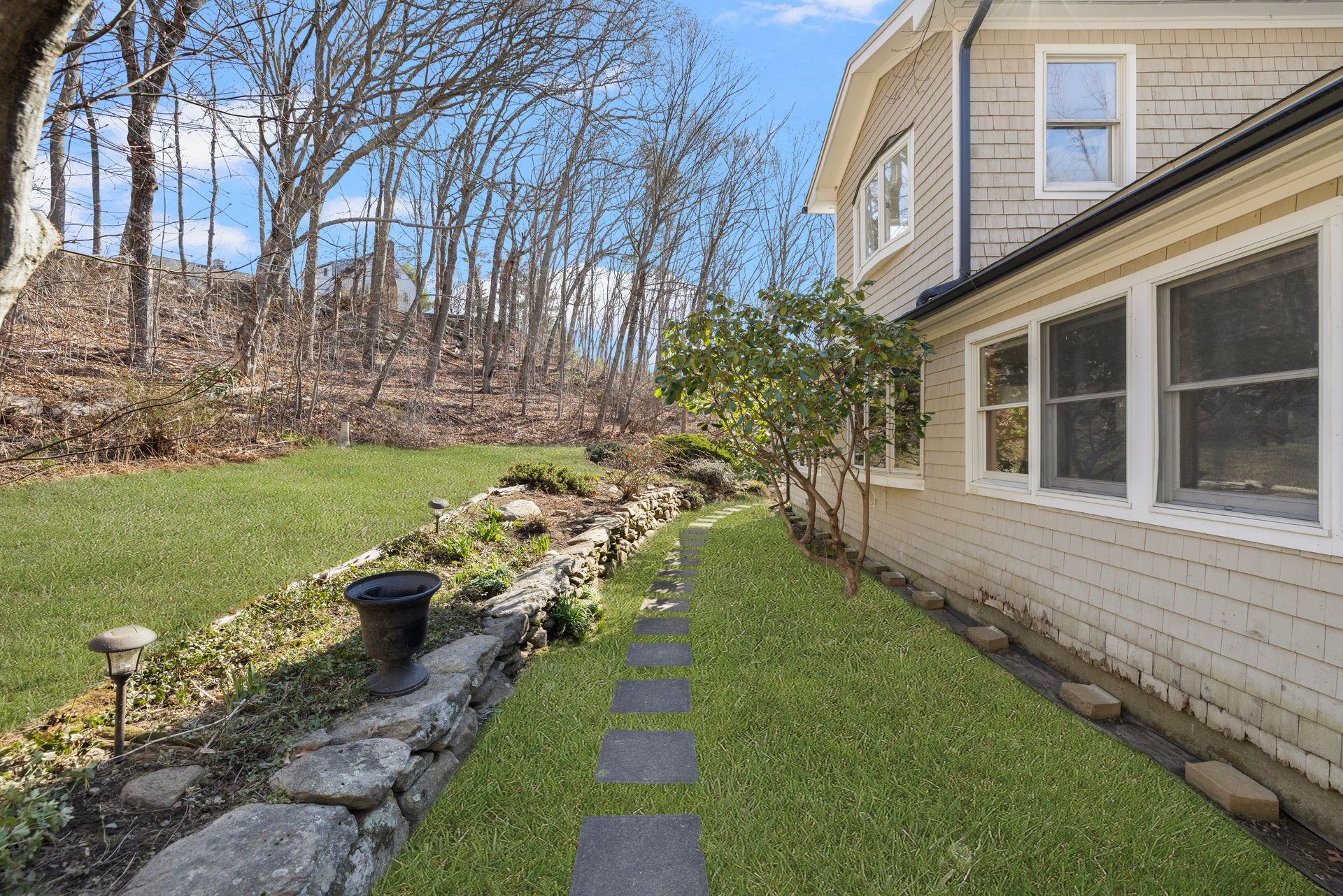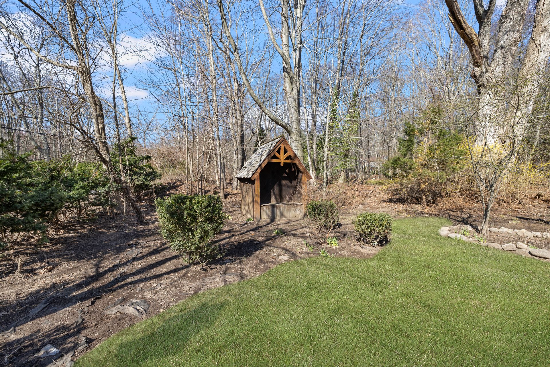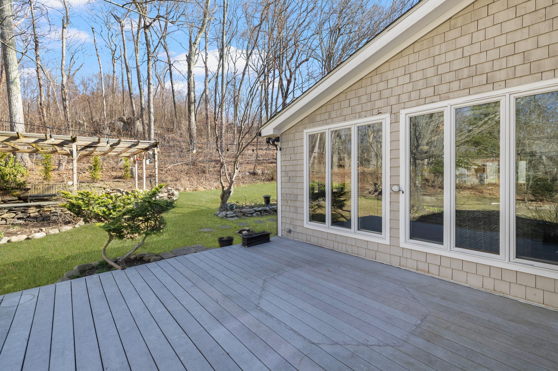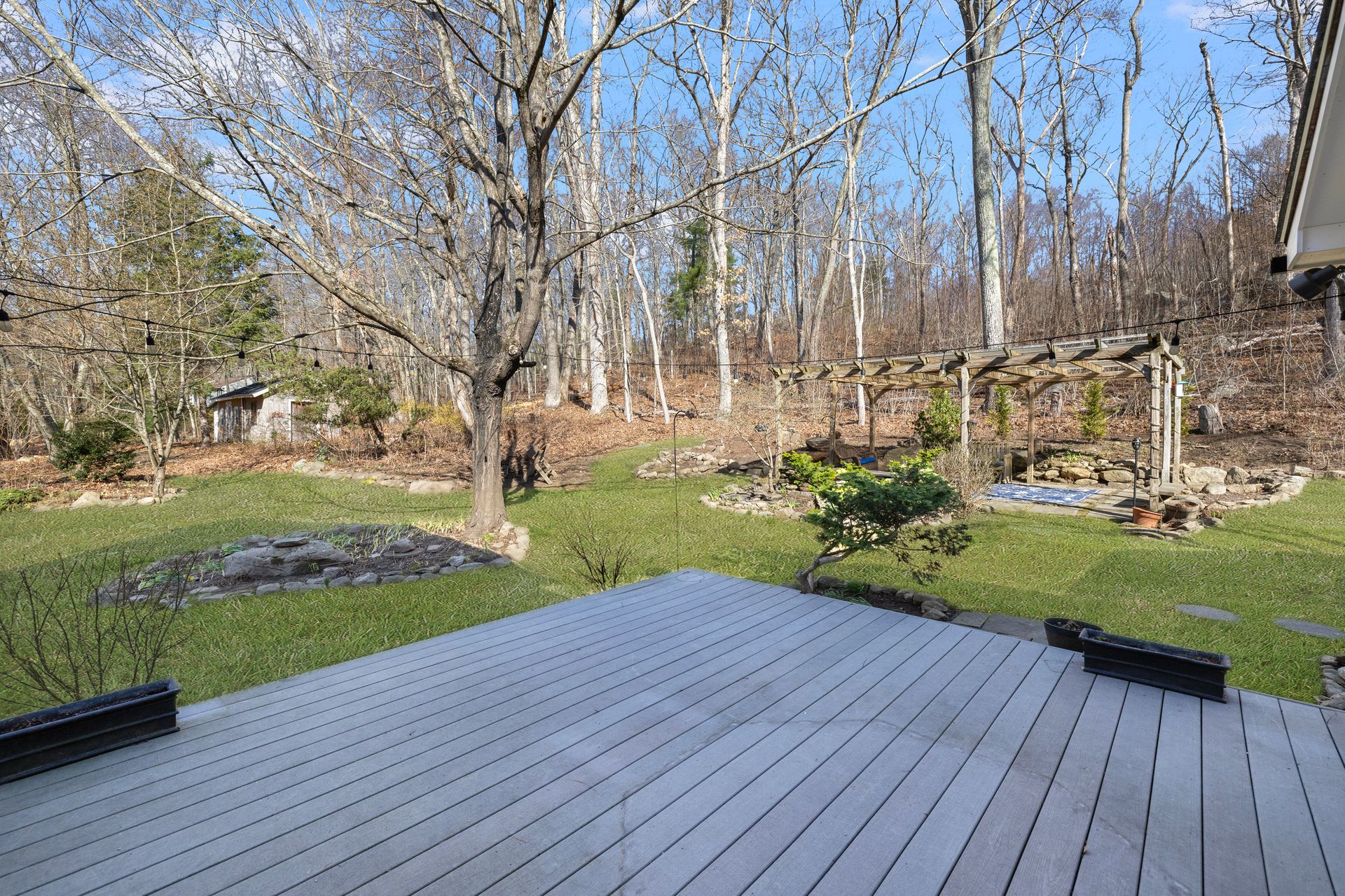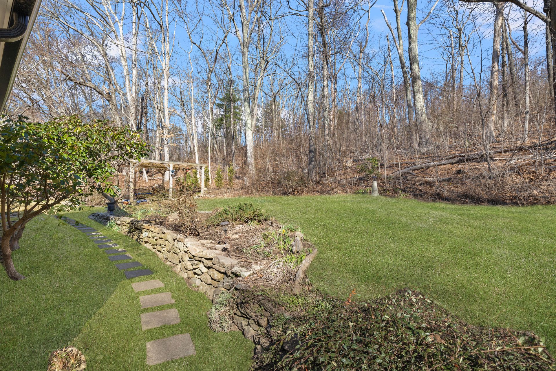 Designed for the culinary enthusiast, the custom kitchen boasts double ovens, stainless steel appliances, a wine fridge, and stylish finishes throughout. A versatile first-floor den or home office, along with a full bath and laundry, offers flexible living options. Upstairs, the oversized primary suite includes a walk-in closet and an ensuite bath. Two additional bedrooms and another full bath complete the second level. The three-season sunroom provides a serene retreat overlooking the tranquil yard and a charming pergola for summer gatherings. Multi-level landscaping adds year-round visual interest, especially as spring brings vibrant color to the grounds.